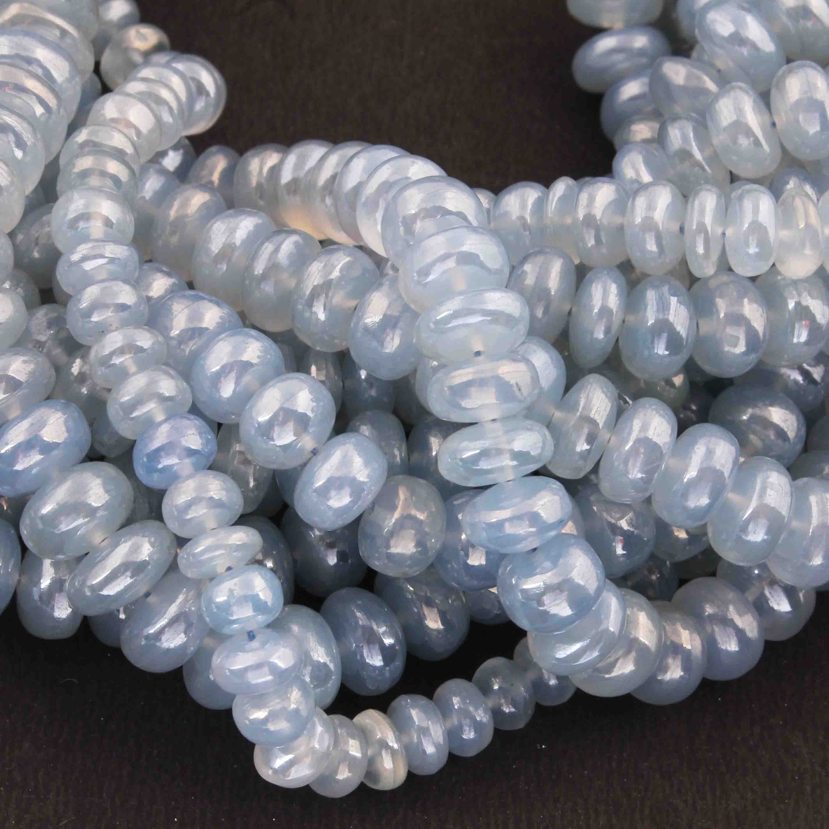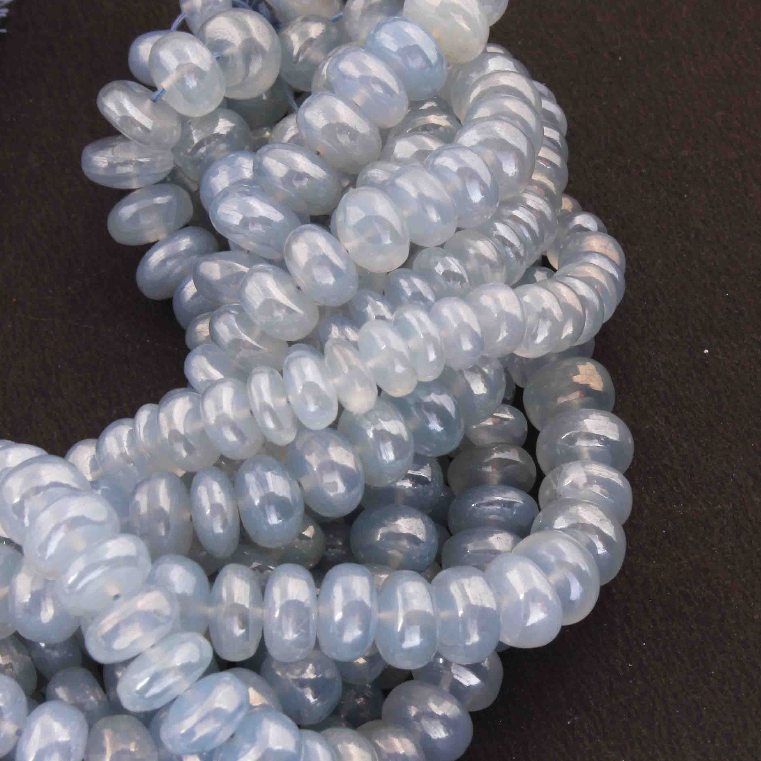 1 Strand Blue Chalcedony Silver Coated Faceted Rondelles - Roundel Beads 5mm-11mm 8.5 Inches BR3621