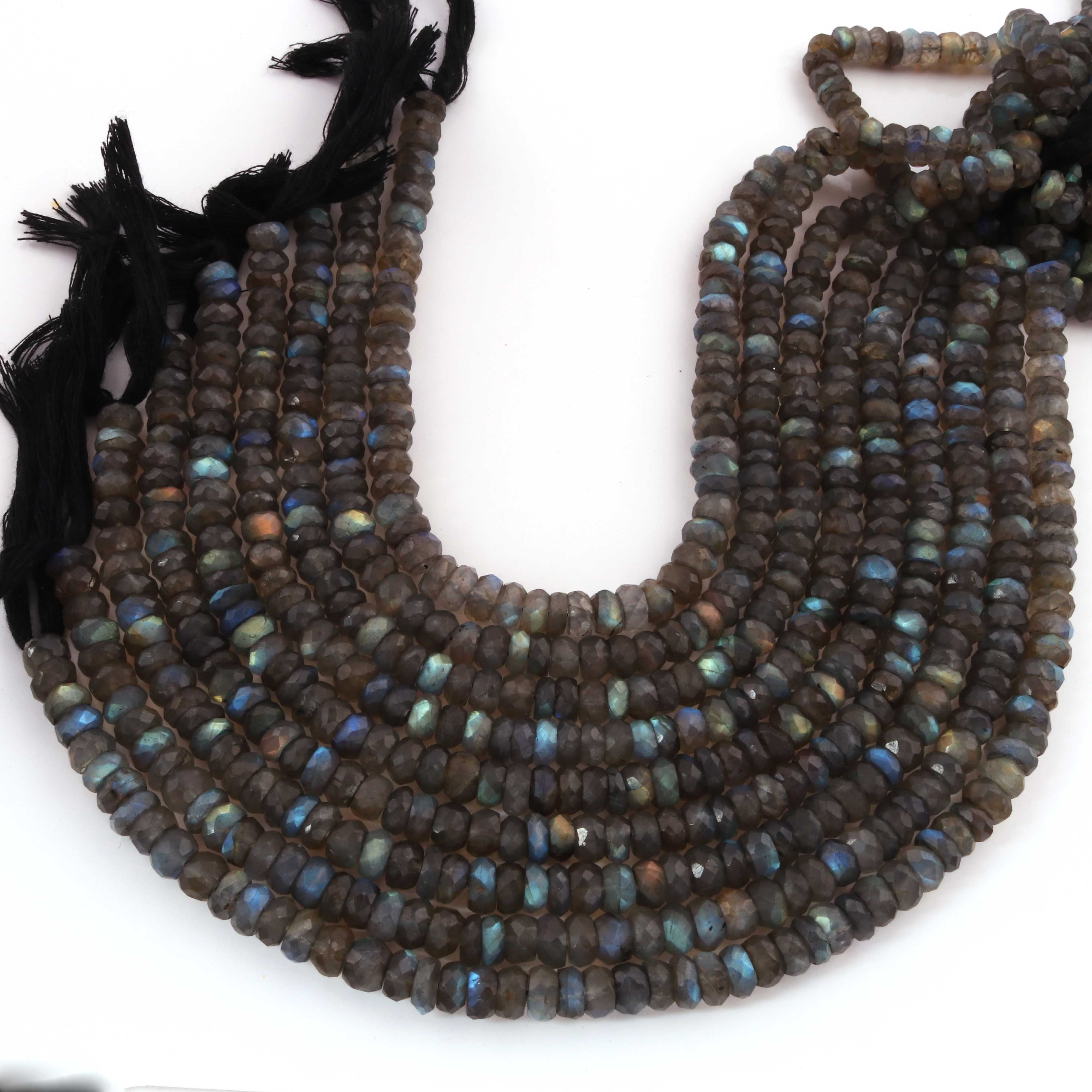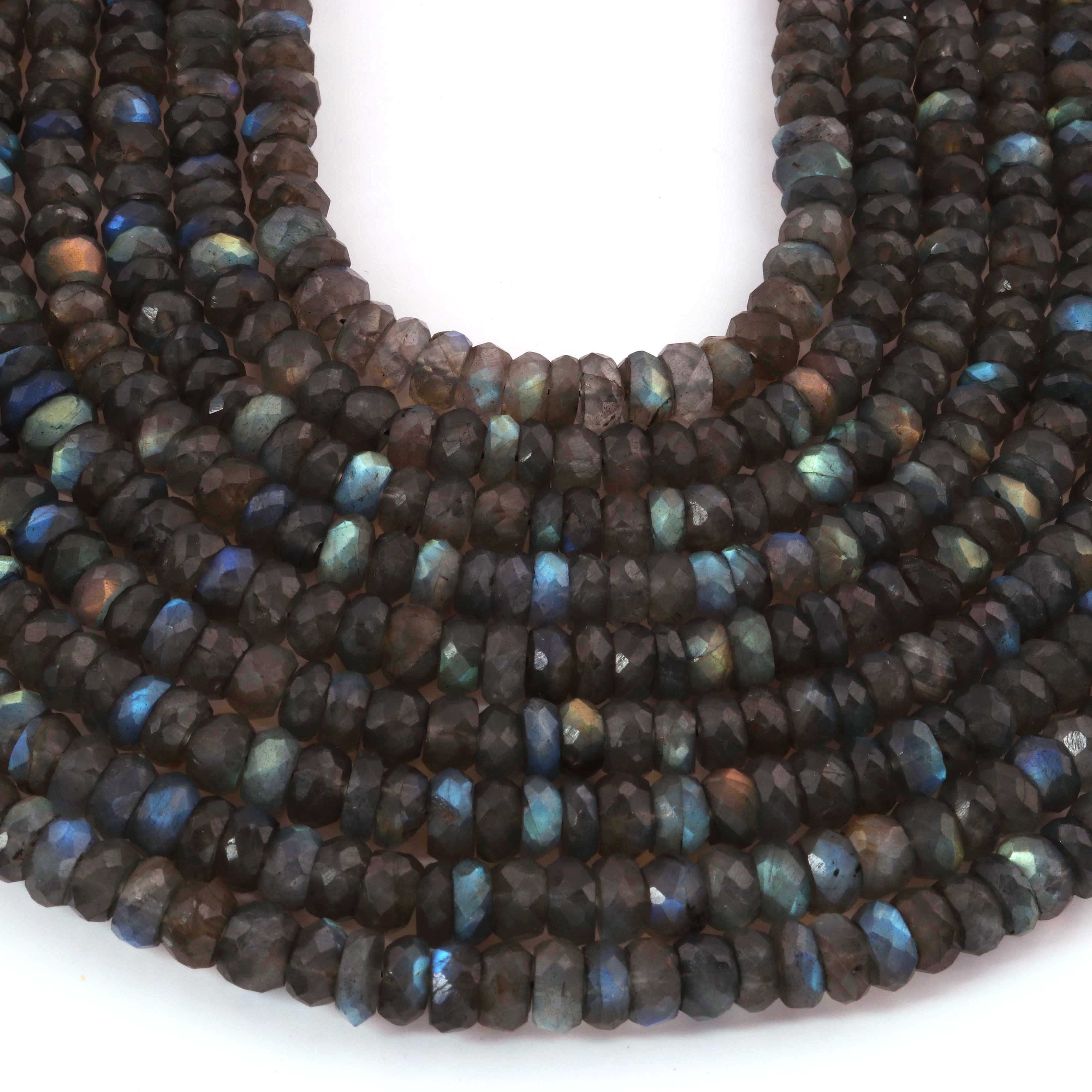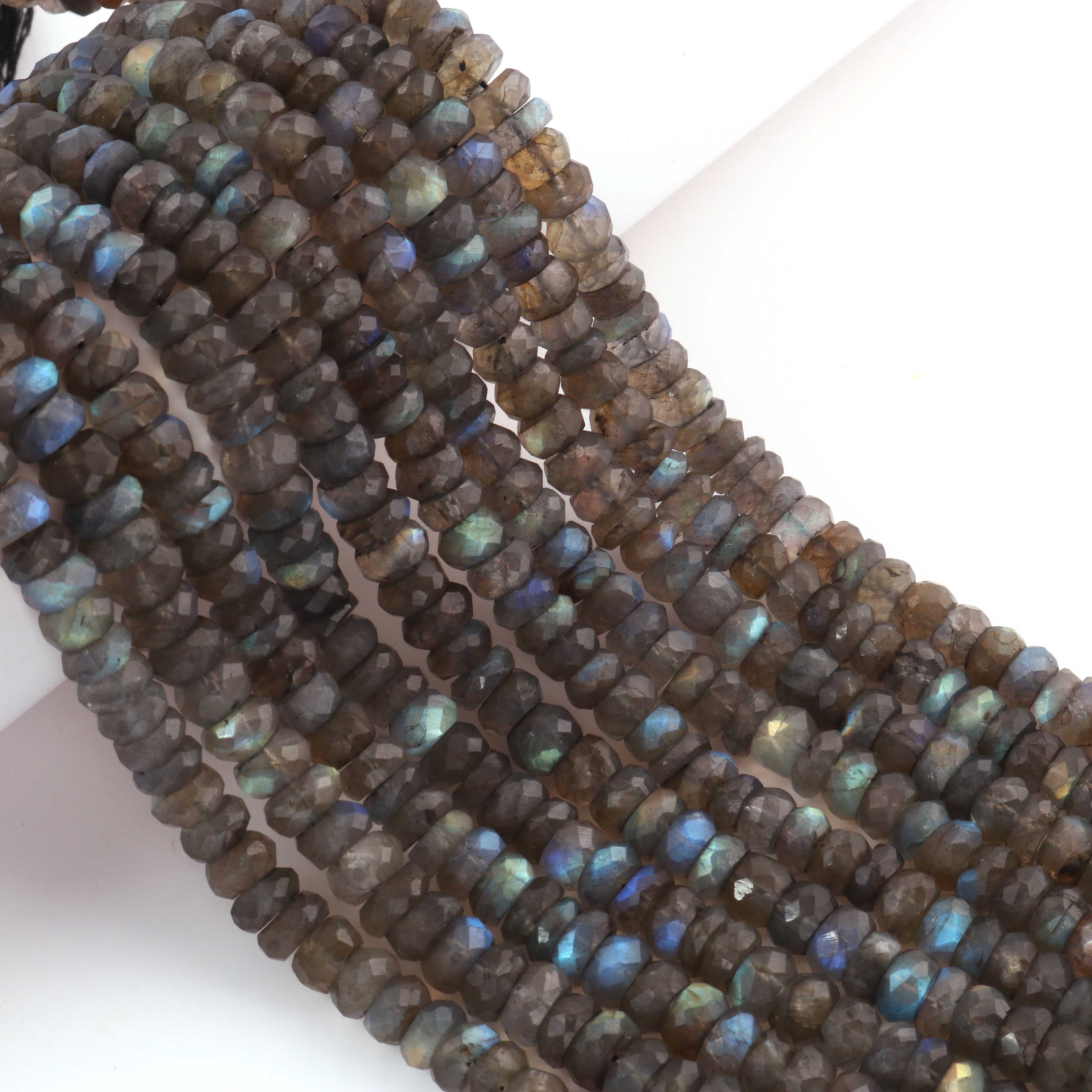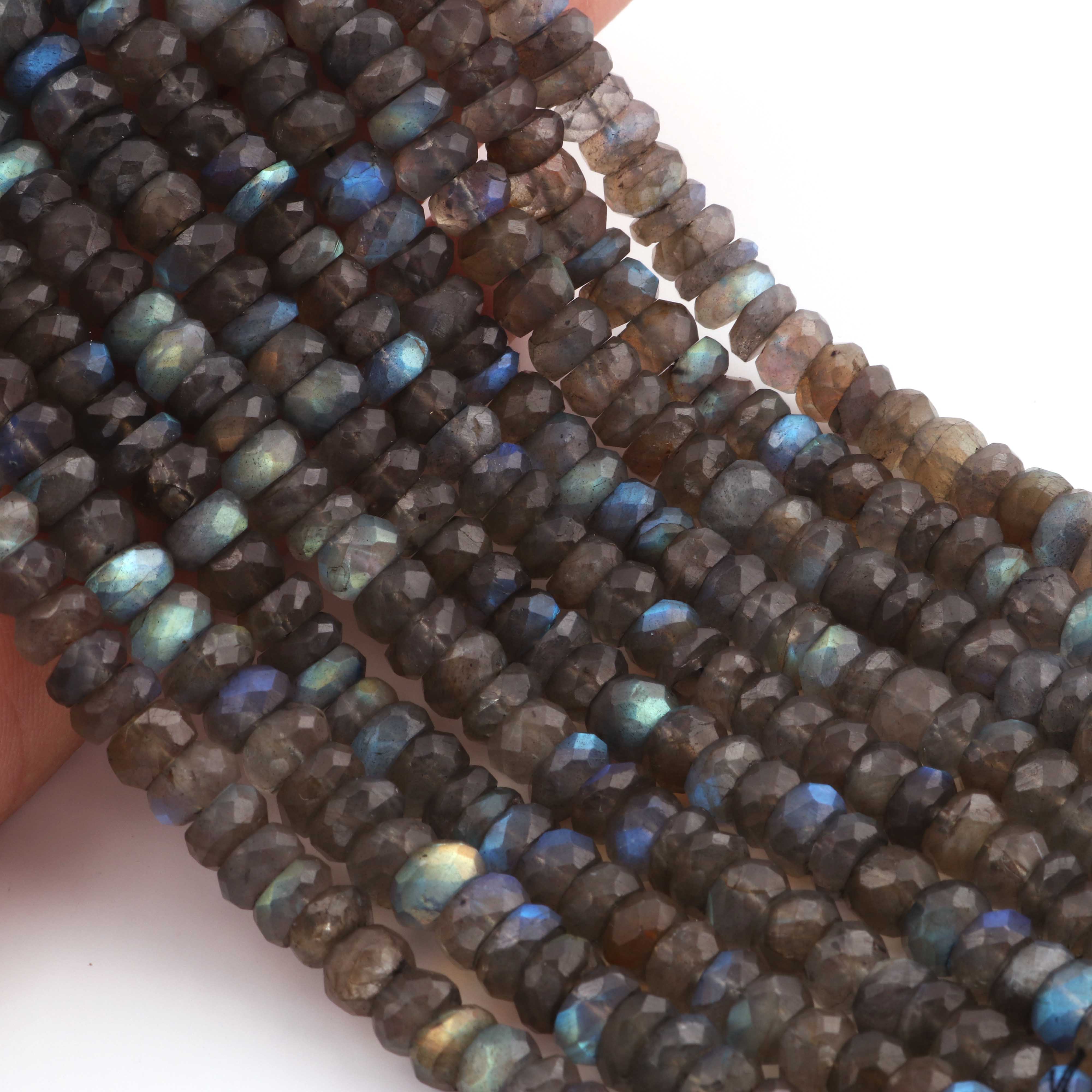 1 Strand Labradorite Faceted Rondelles - Roundel Beads 6mm-8mm 10 Inches BR03343