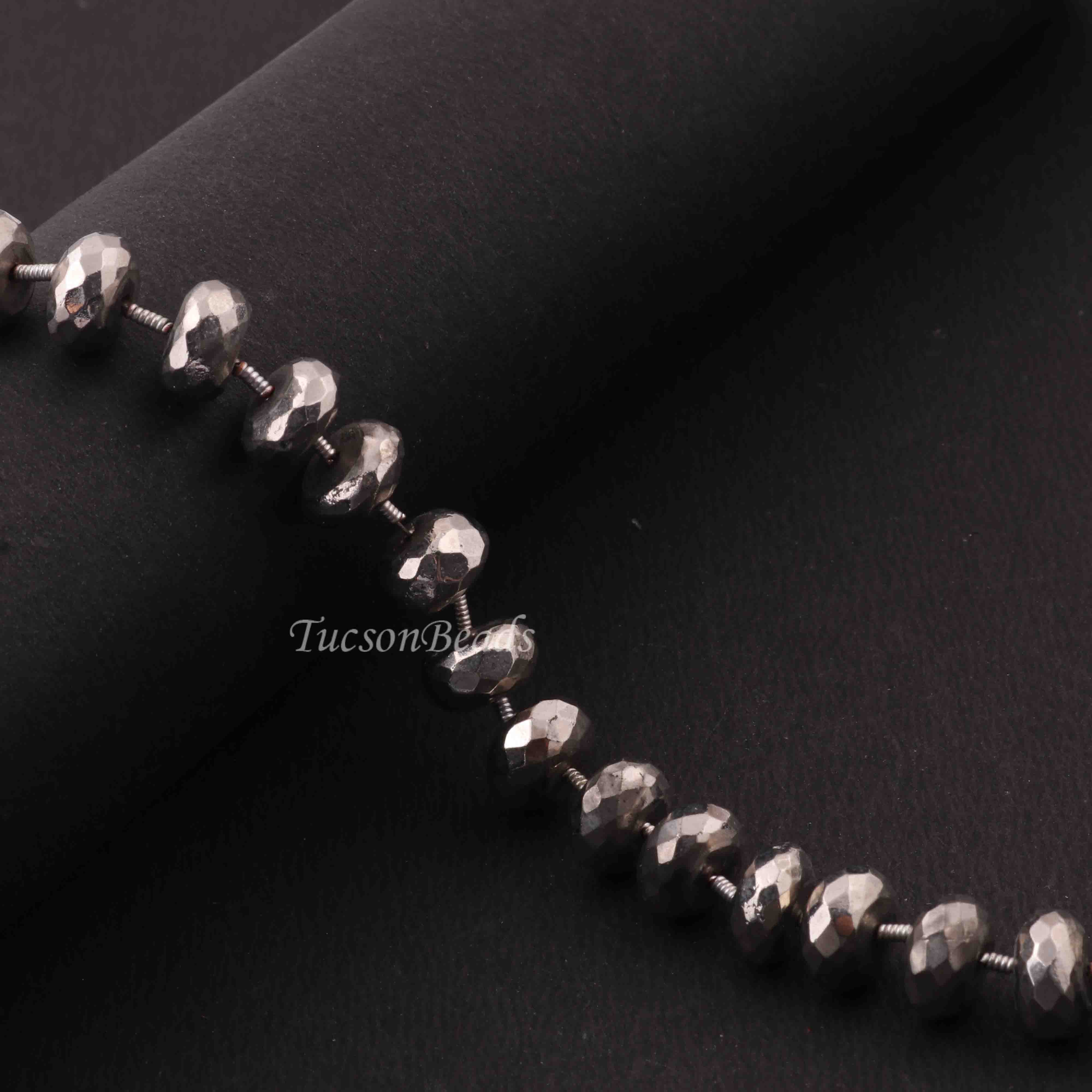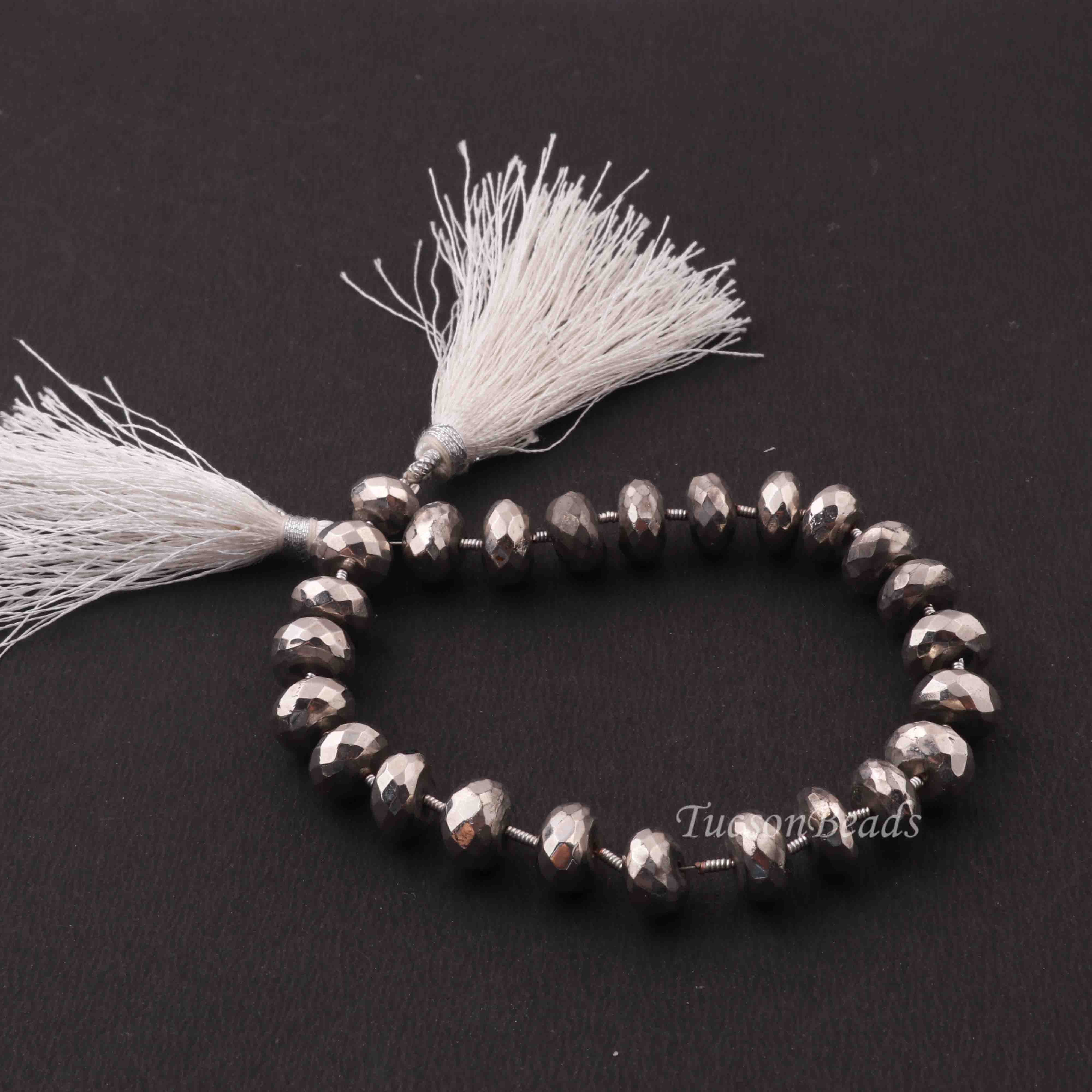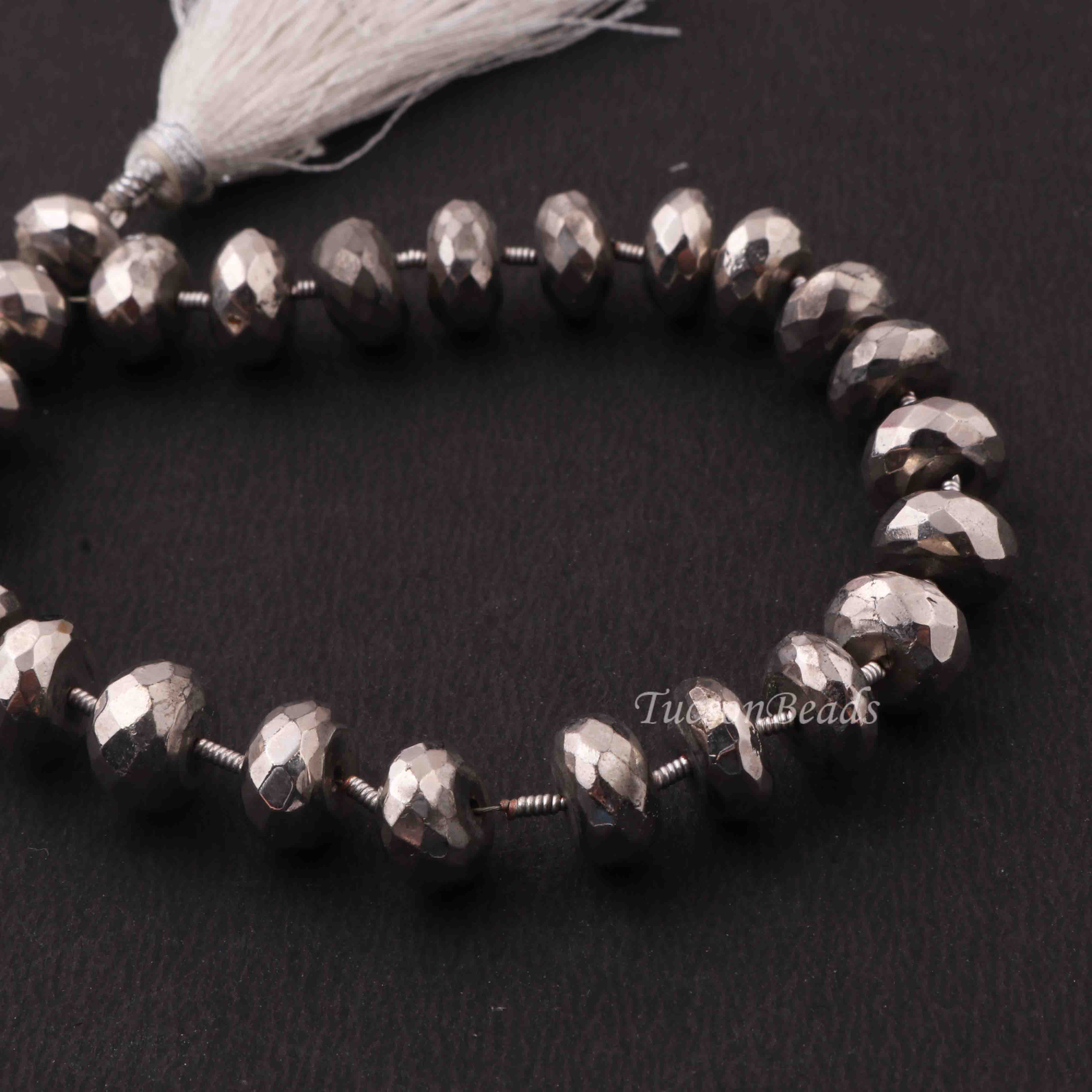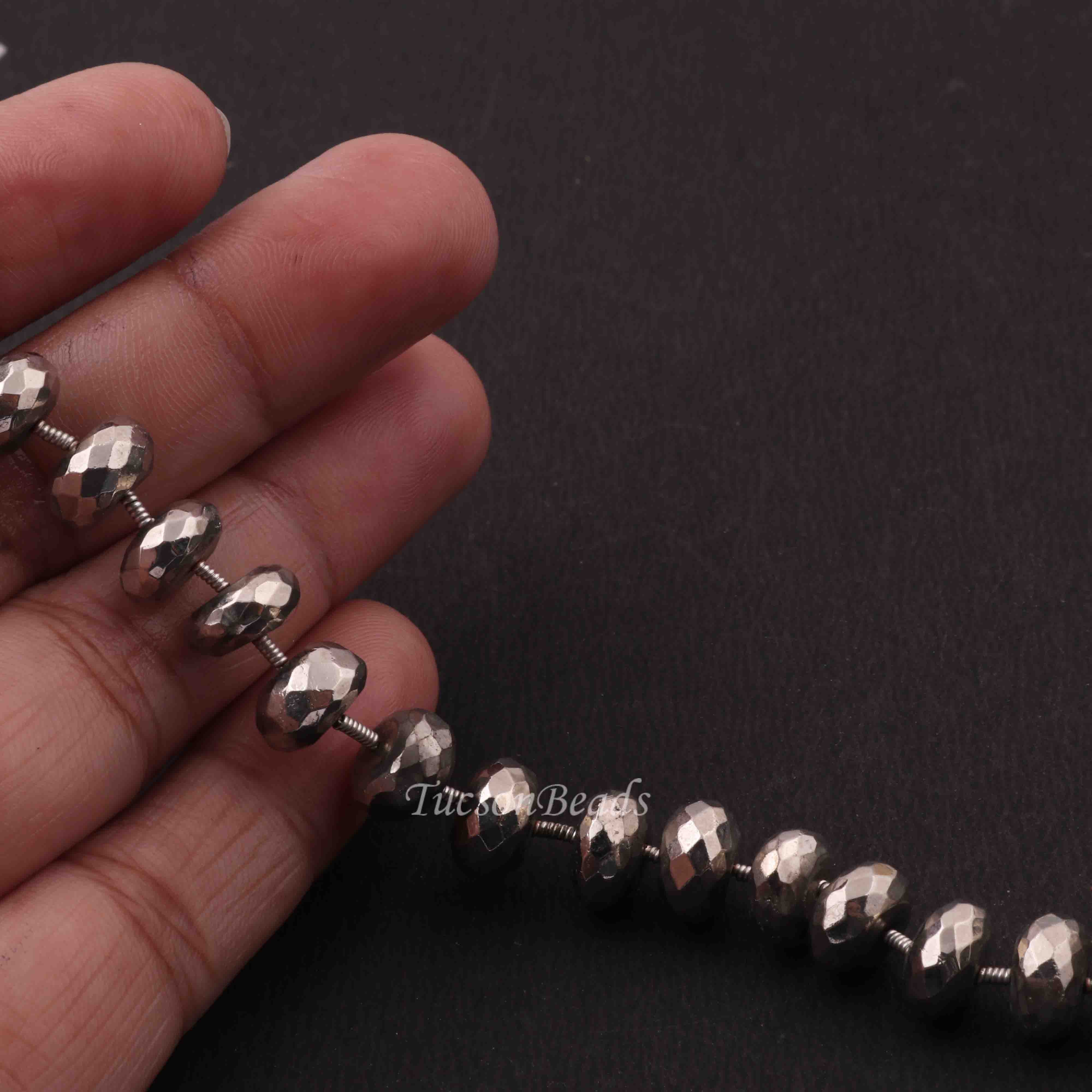 1 Strand Natural Pyrite Faceted Rondelles -Round Shape Rondelles - 7mm-10mm -8 Inches BR4216