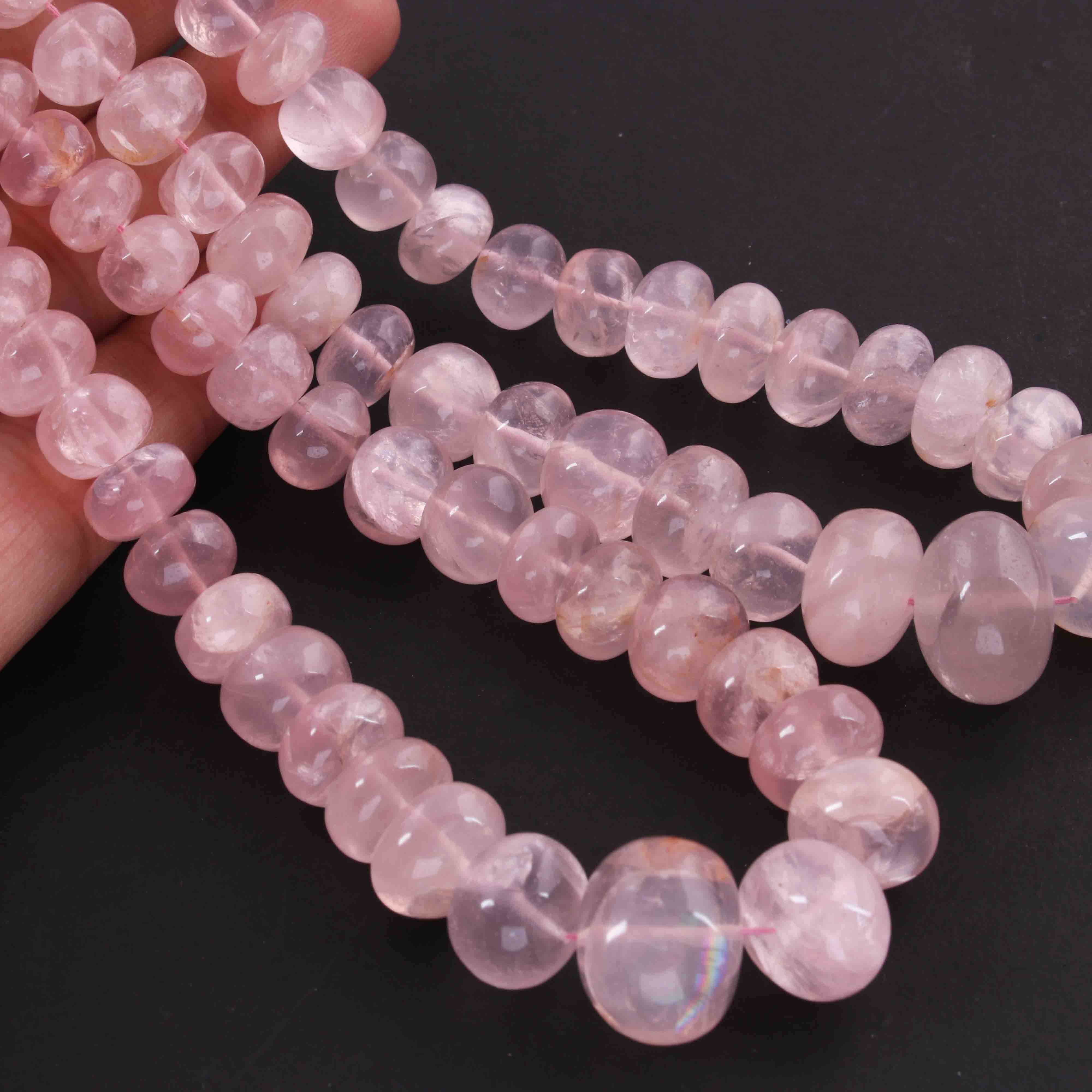 1  Strand Rose Quartz Smooth Rondelles - Gemstone Roundelles - 6mm-16mm- 8 Inches BR01880