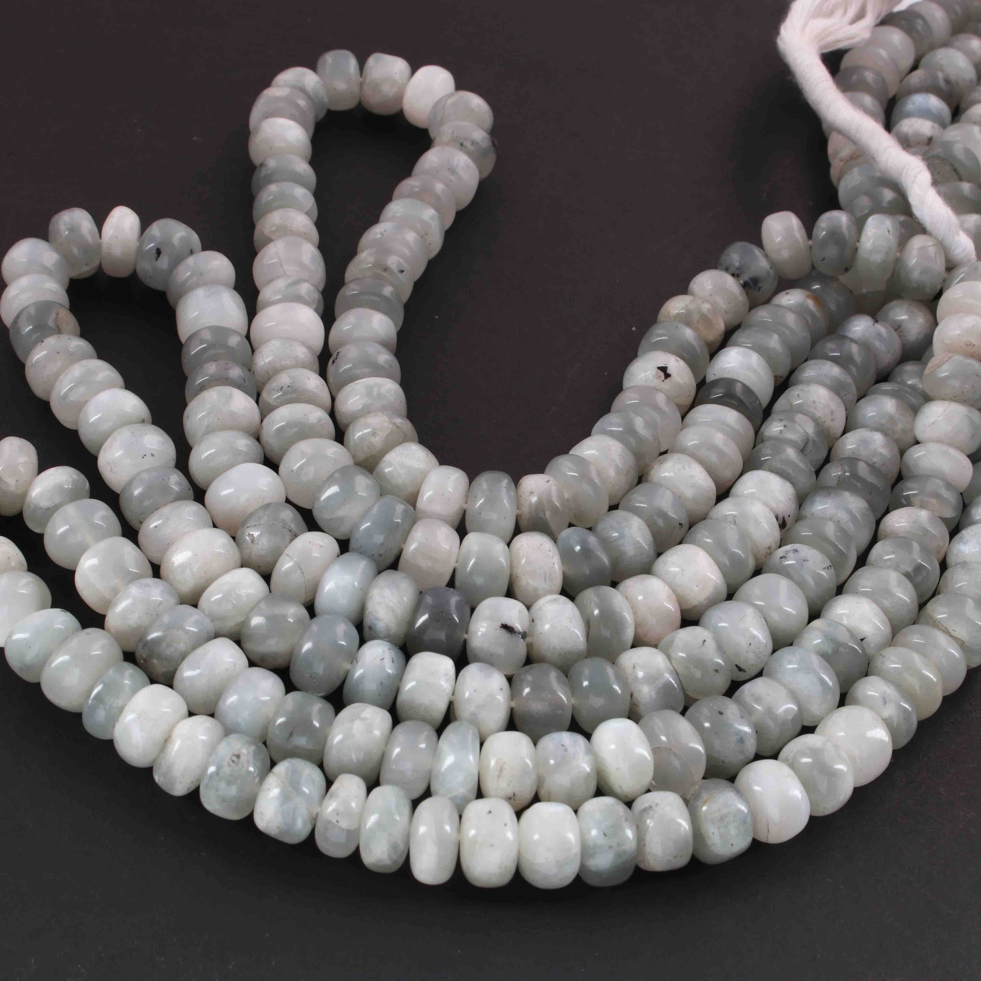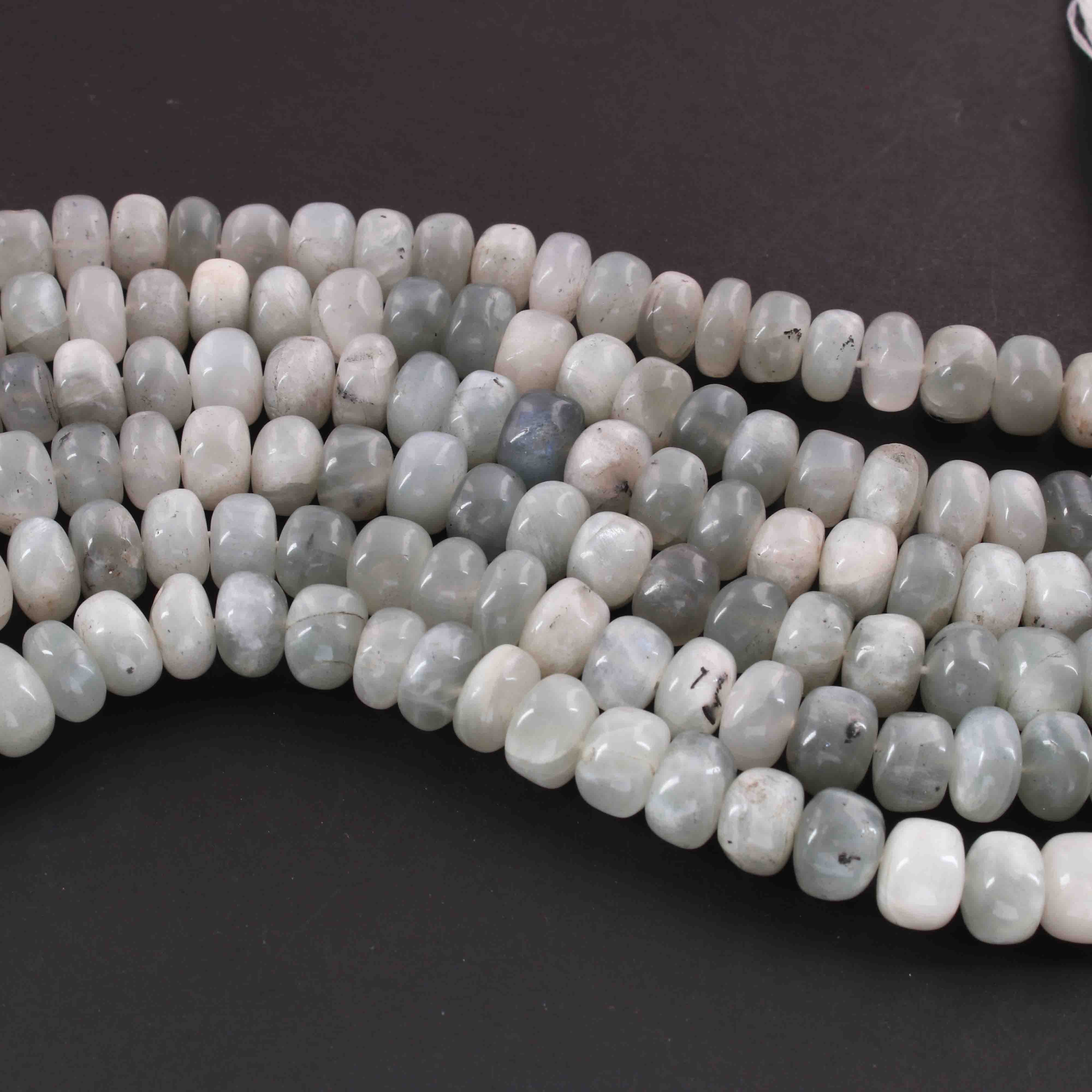 1 Strand Shaded Gray Moonstone Smooth Rondelles -Gemstone Rondelles Beads- 8mm-9mm -17 Inches BR01864