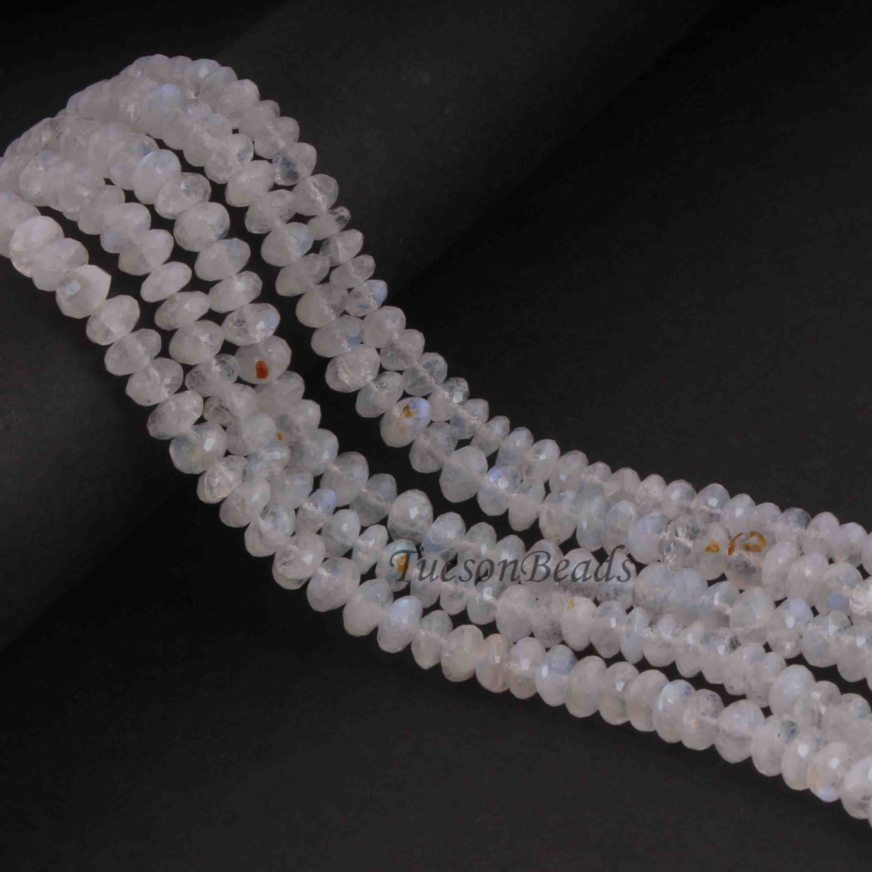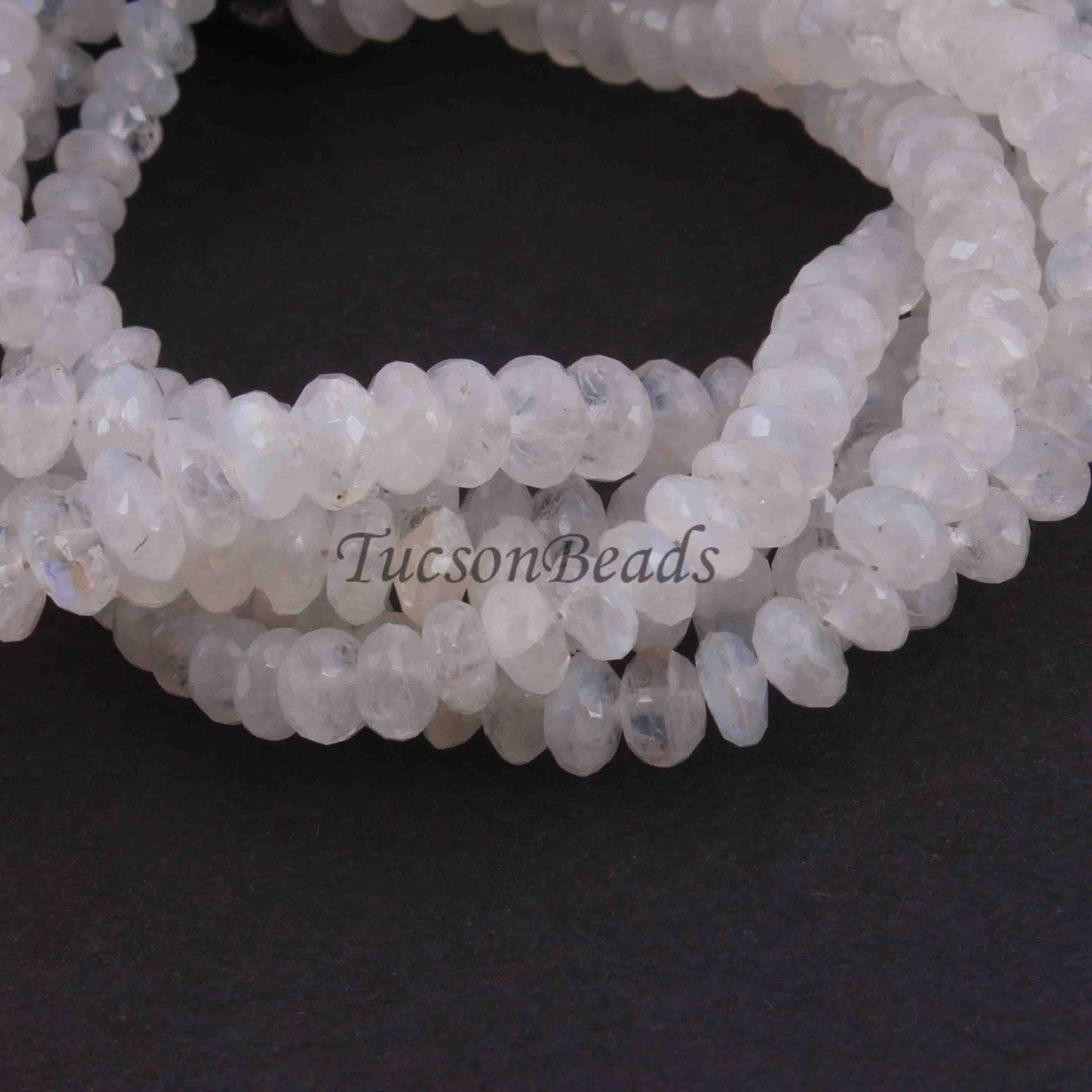 1 Strand White Rainbow Moonstone Faceted Rondelles  -Round Shape  Rondelles - 6mm - 8.5 Inches BR4252