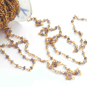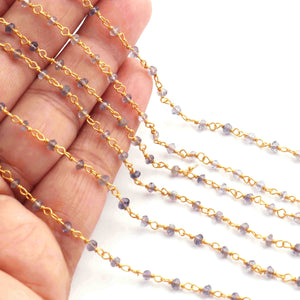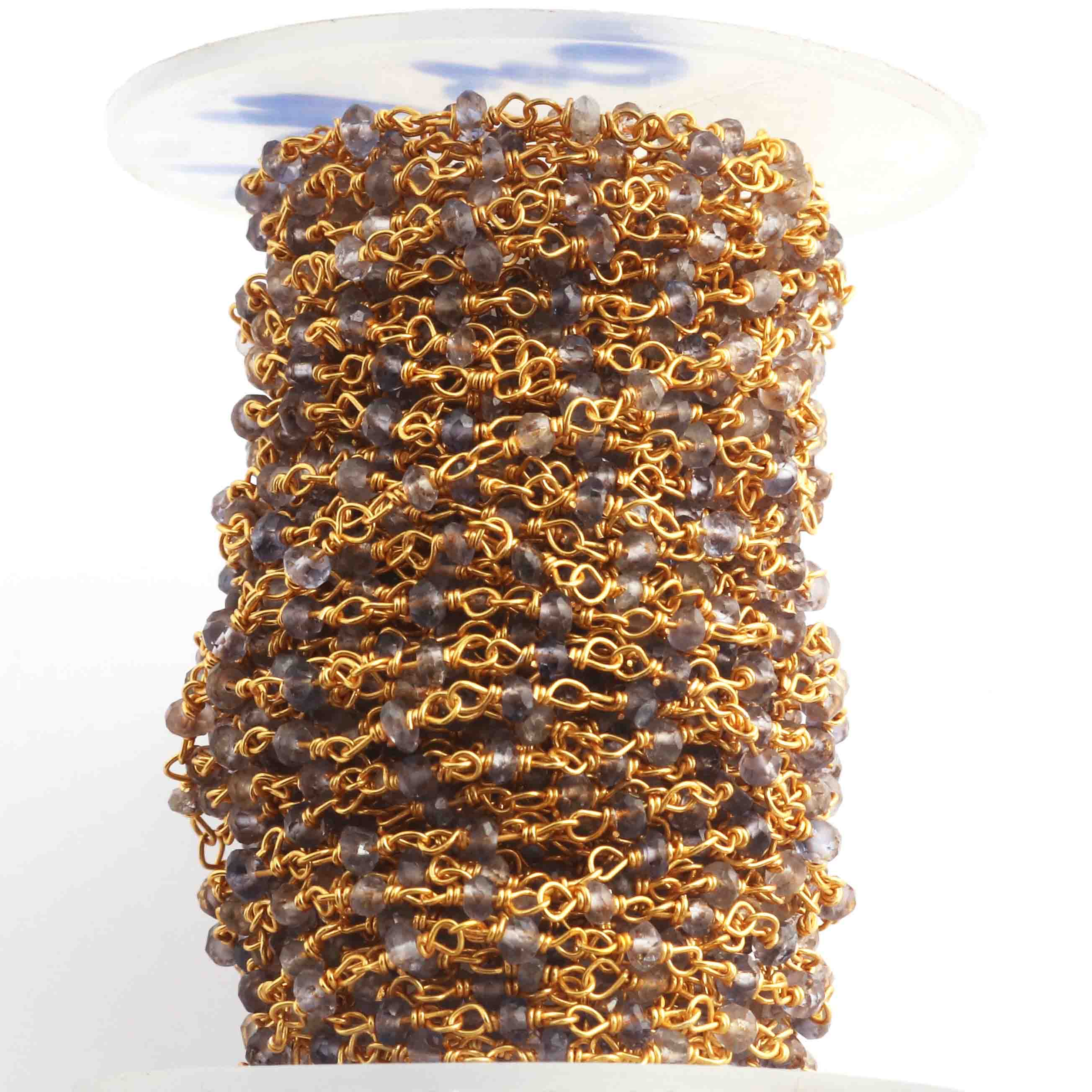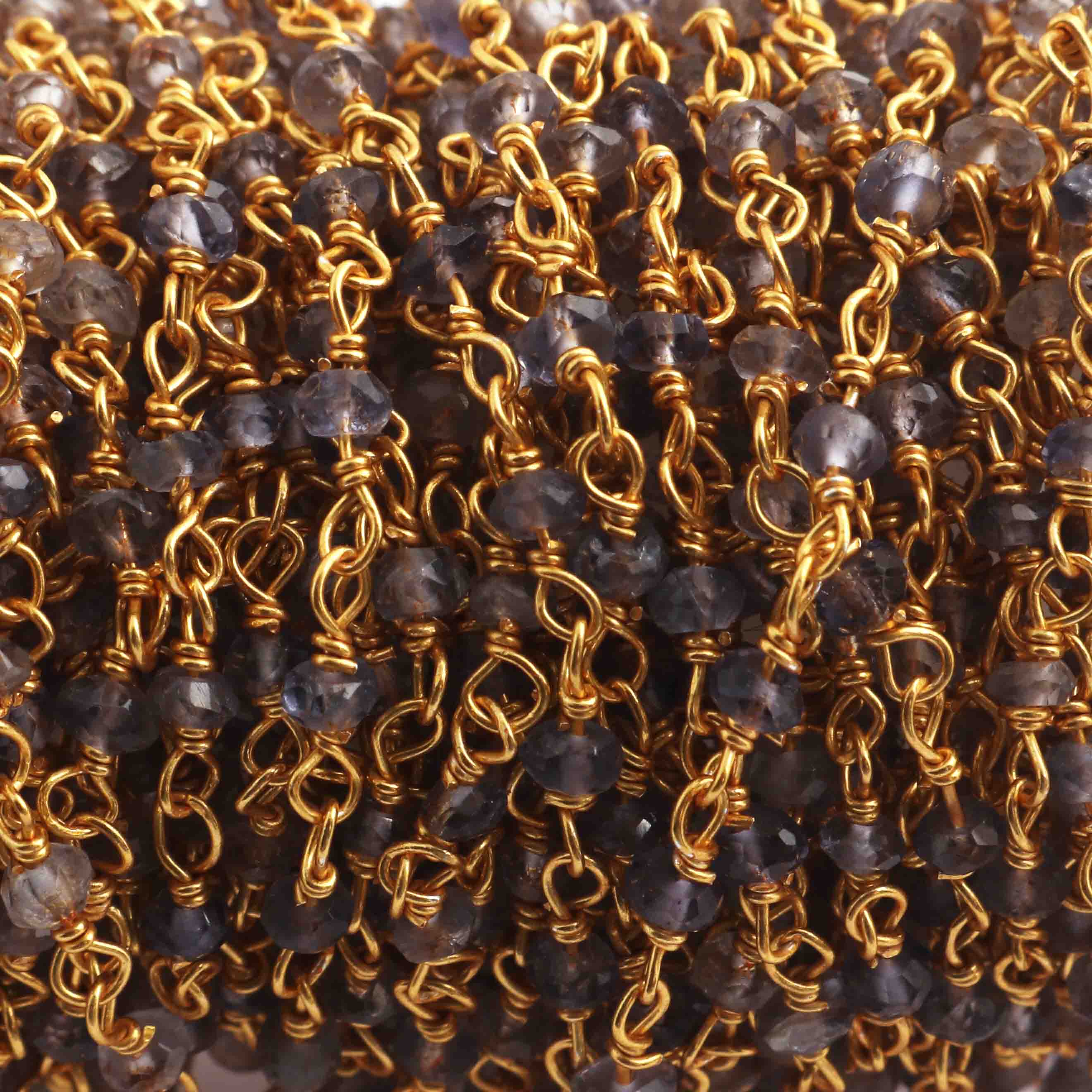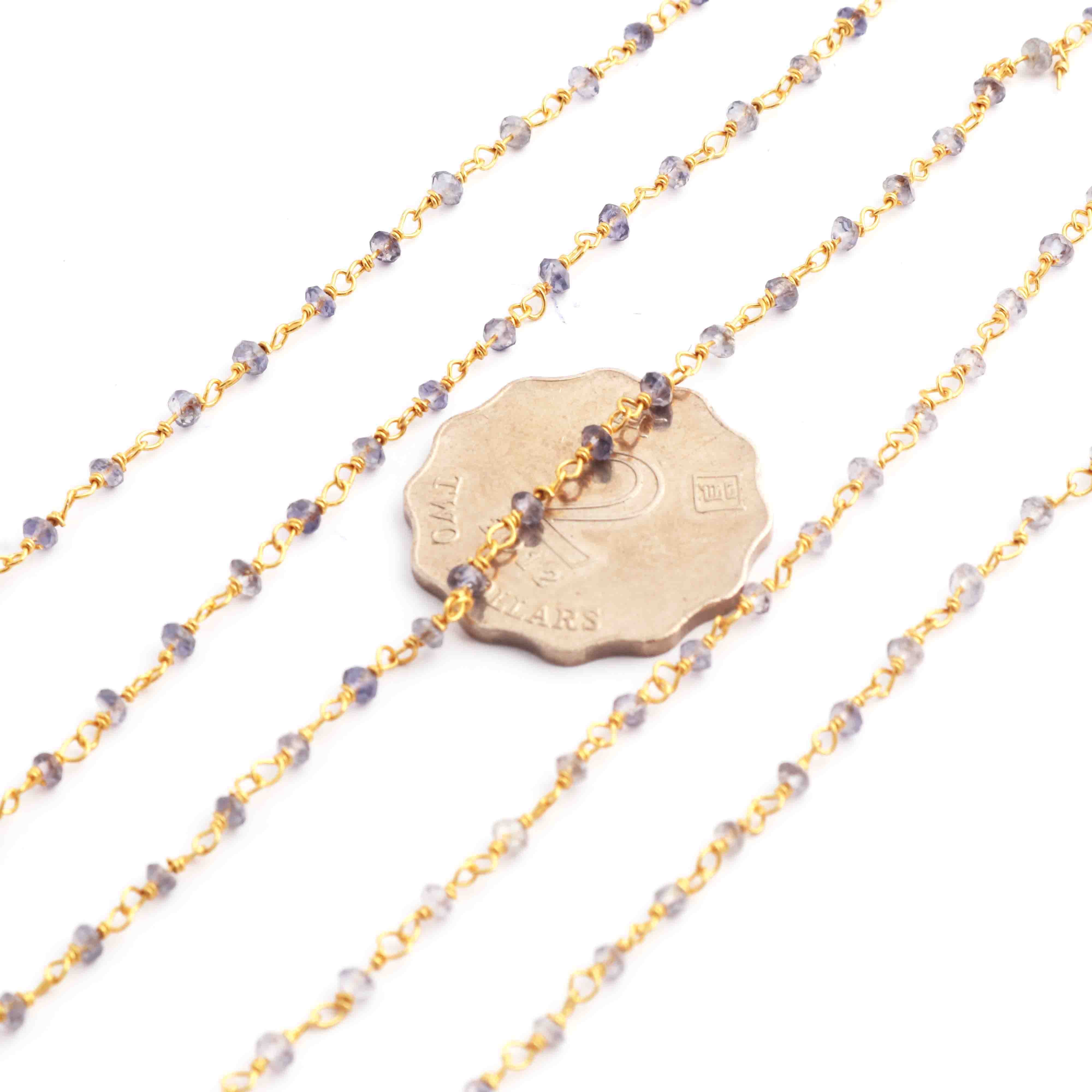 1 Feet Iolite Rondelle Rosary Style 925 Sterling Vermeil Beaded Chain- 2mm- Iolite Vermeil wire Chain SRC019