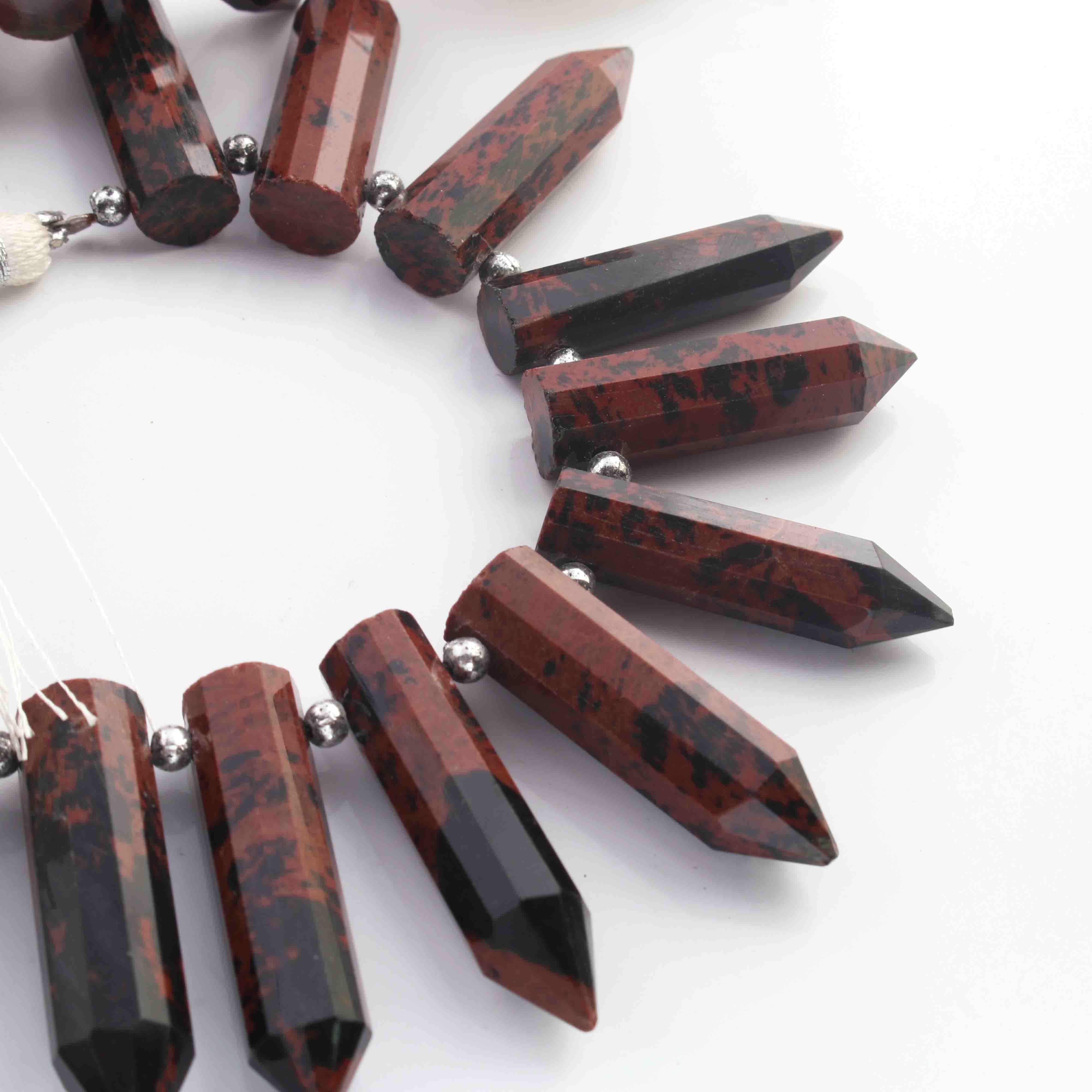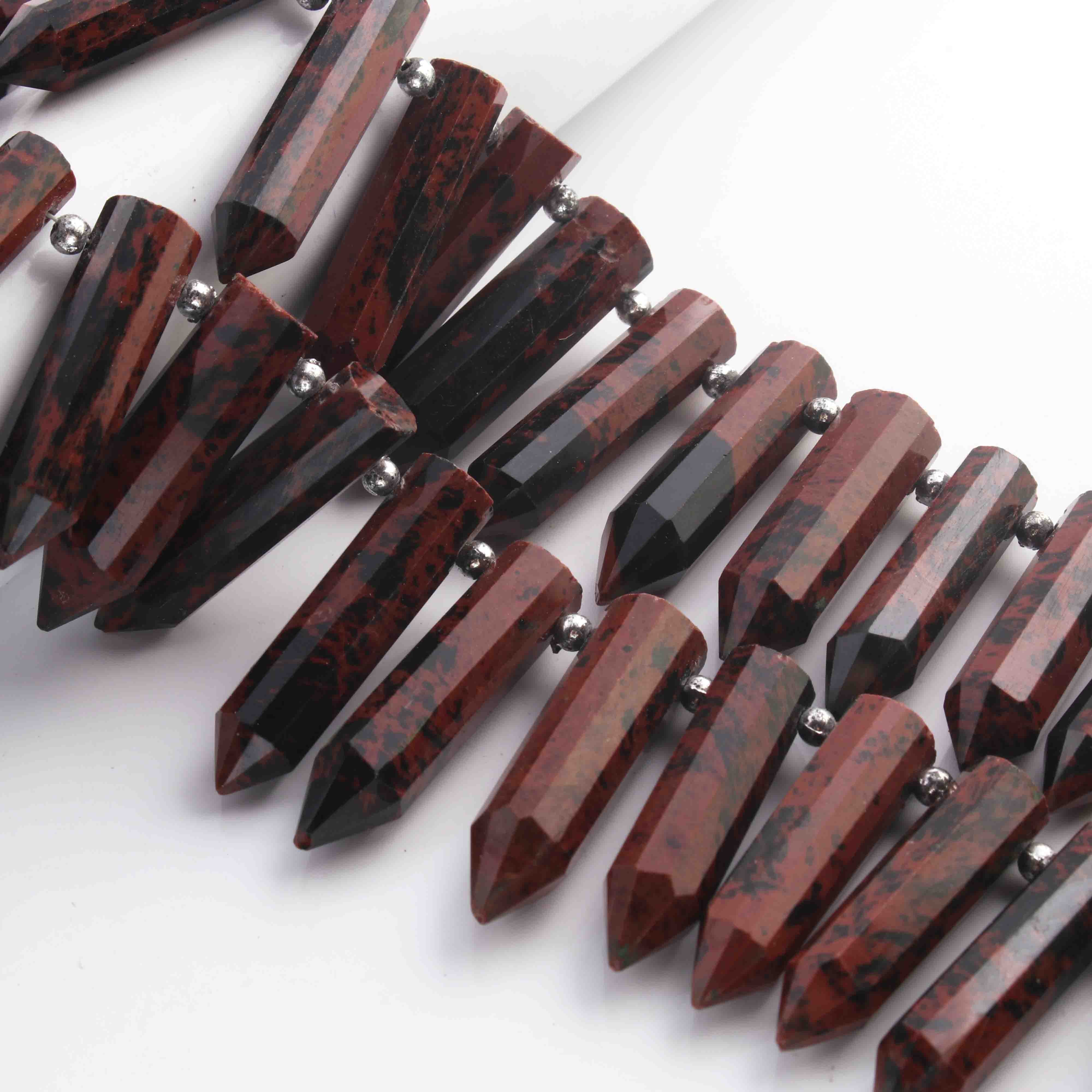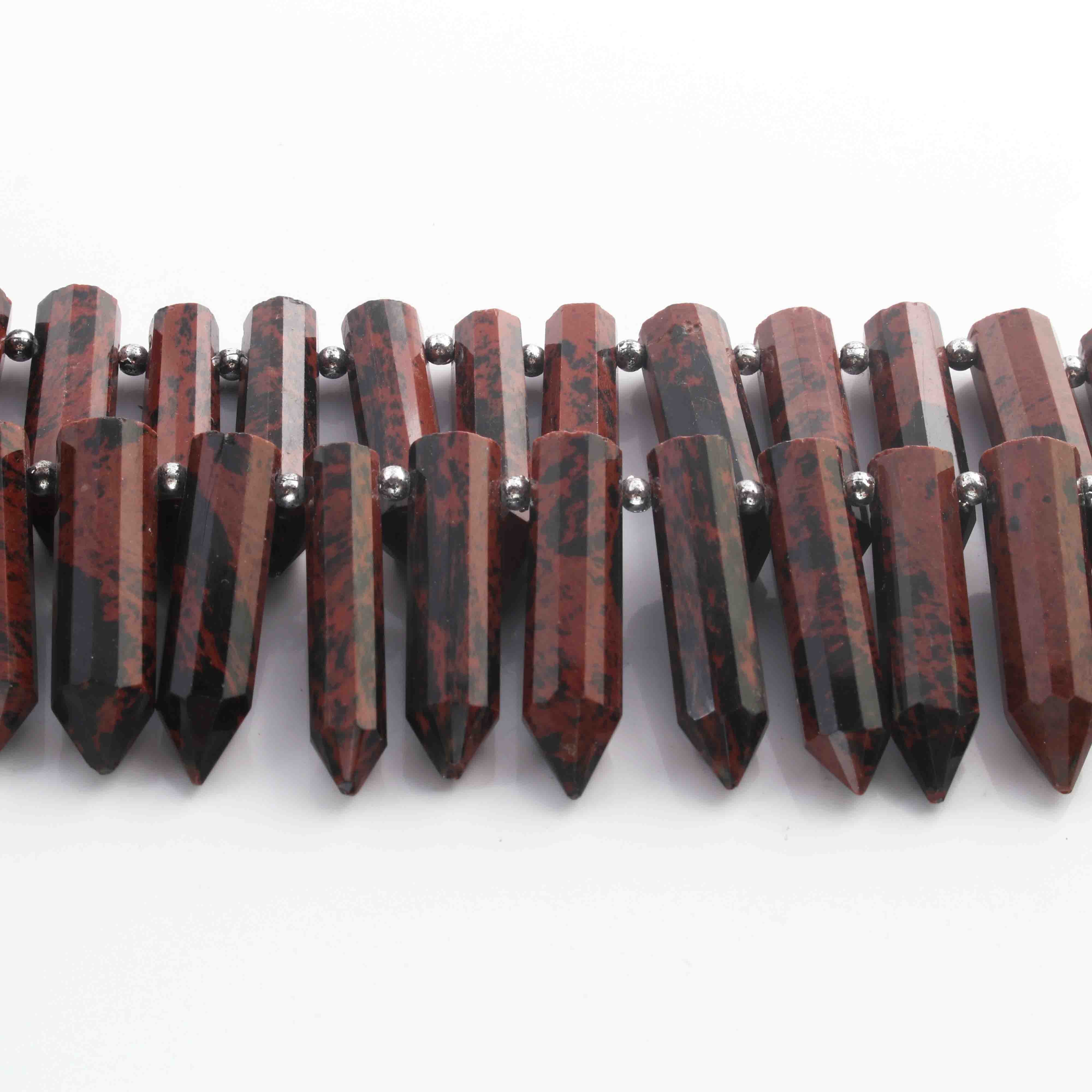 1 Long Strand Red Jasper Faceted Briolettes - Fancy Shape Briolettes -32mmx9mm-25mmx7mm - 9.5 Inches BR01633