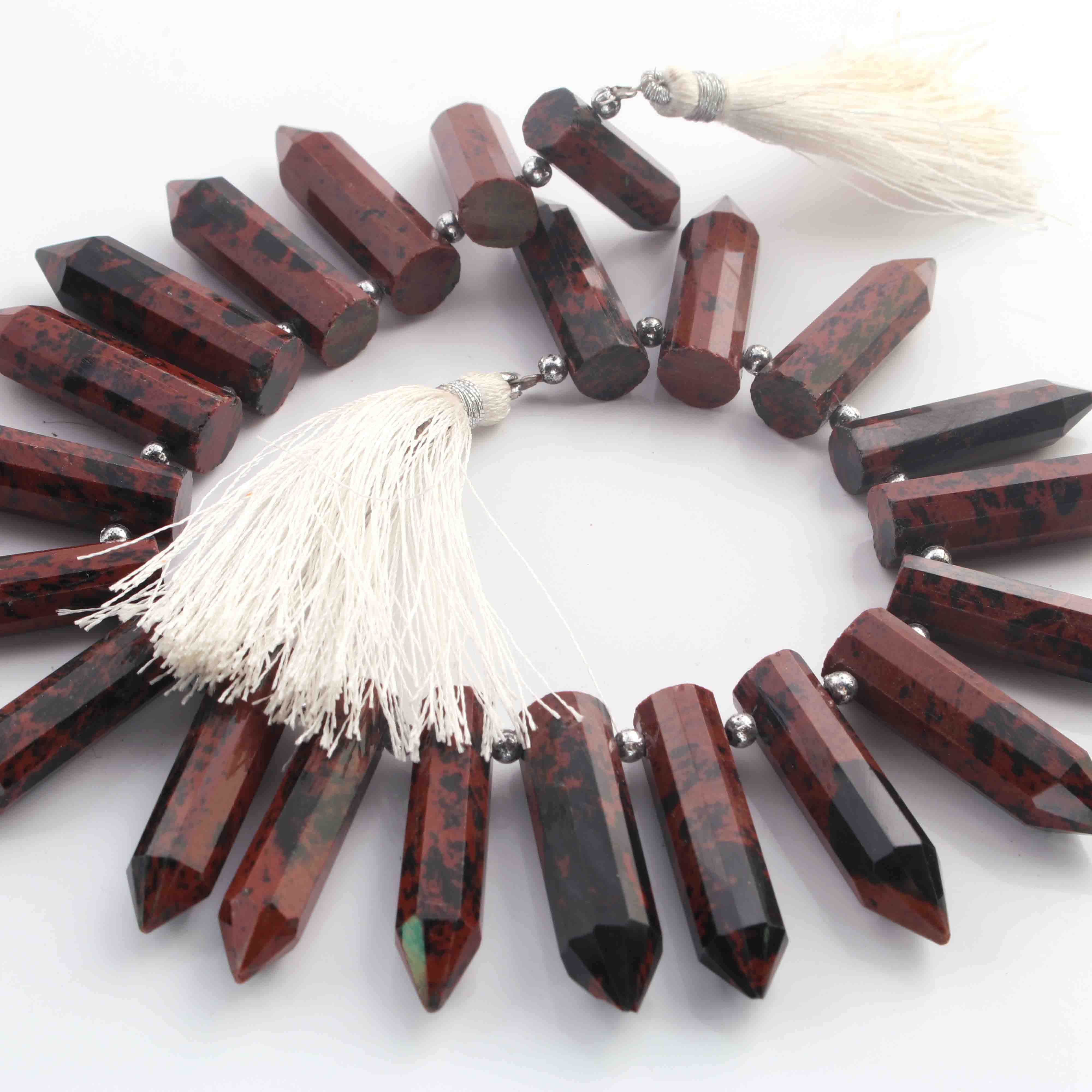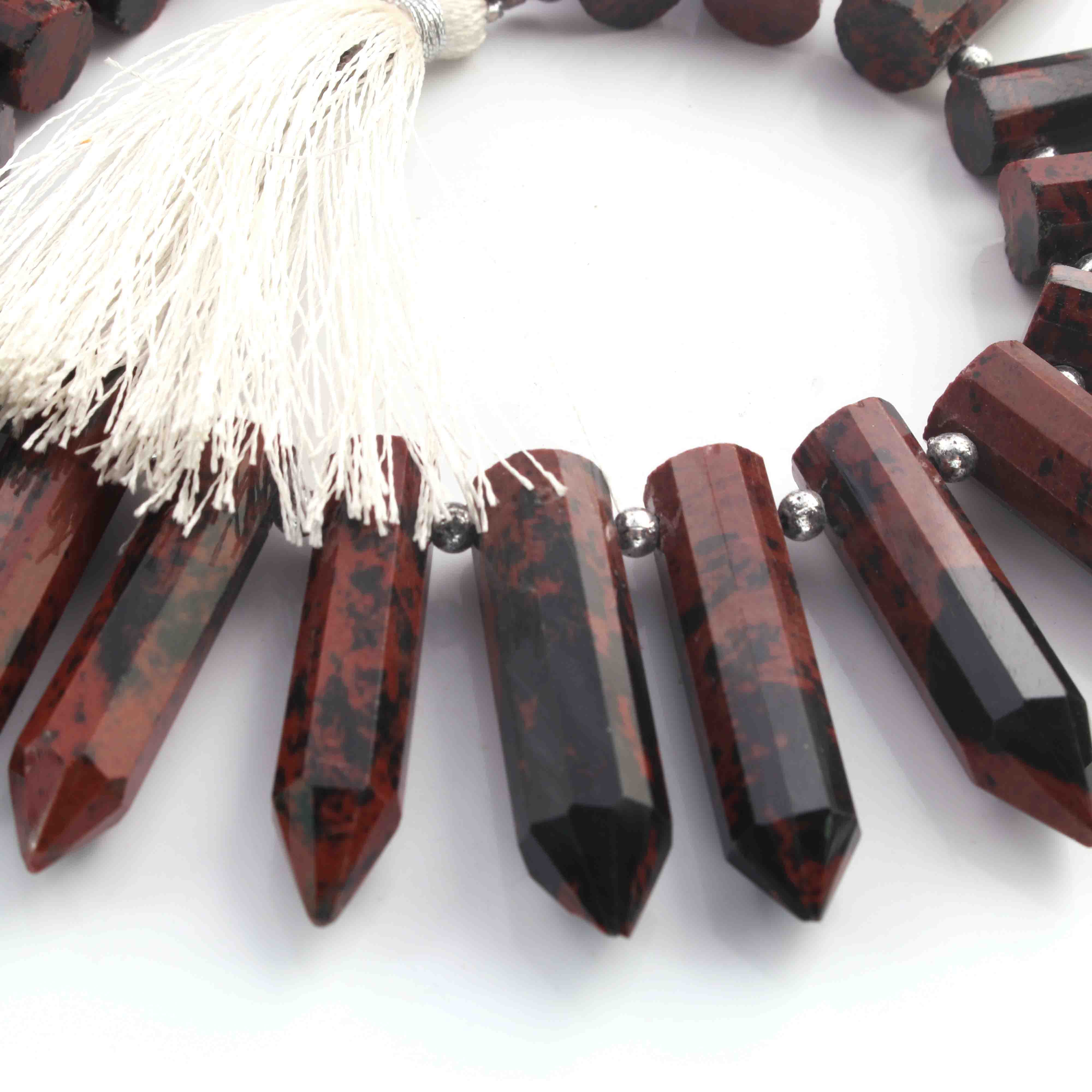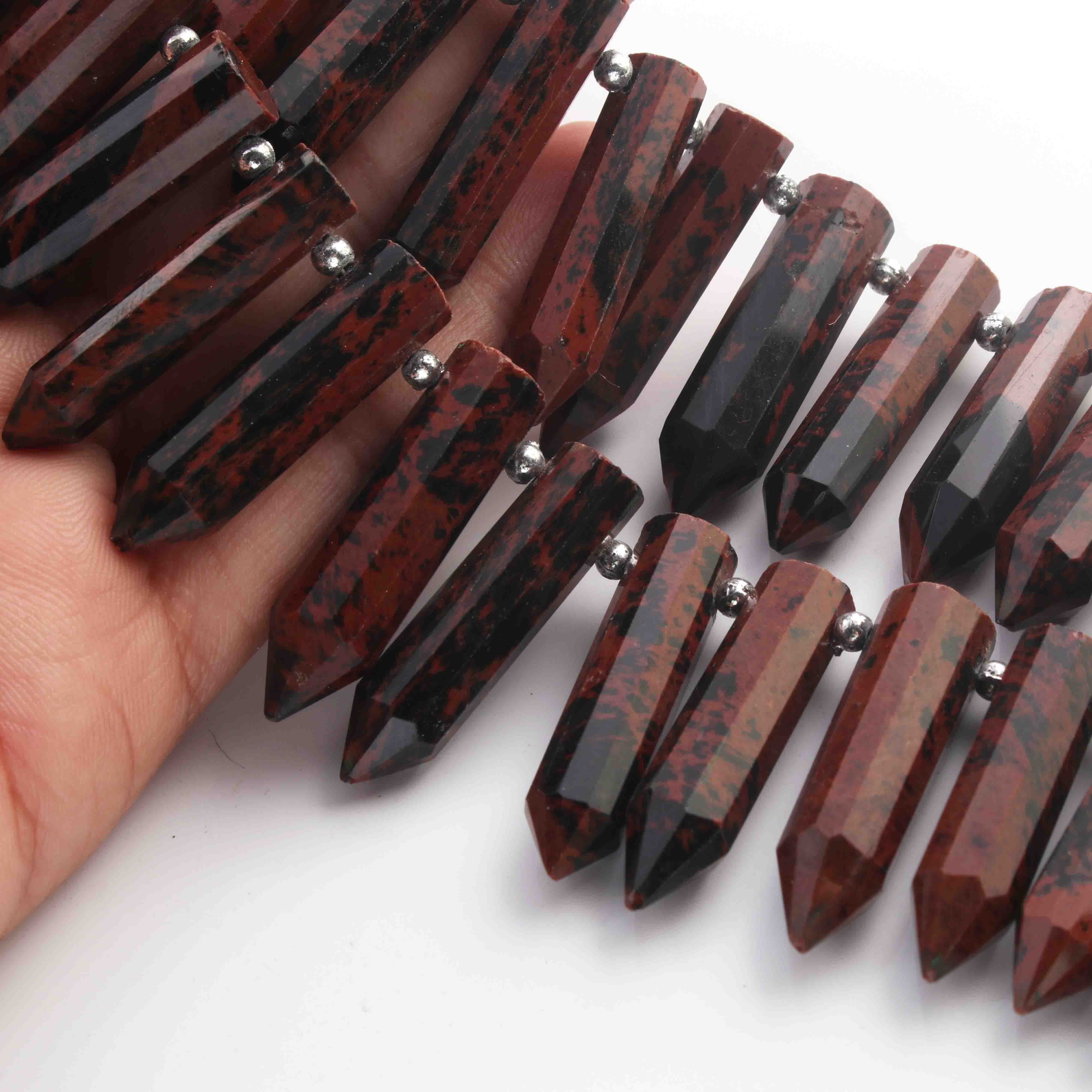 1 Long Strand Red Jasper Faceted Briolettes - Fancy Shape Briolettes -32mmx9mm-25mmx7mm - 9.5 Inches BR01633