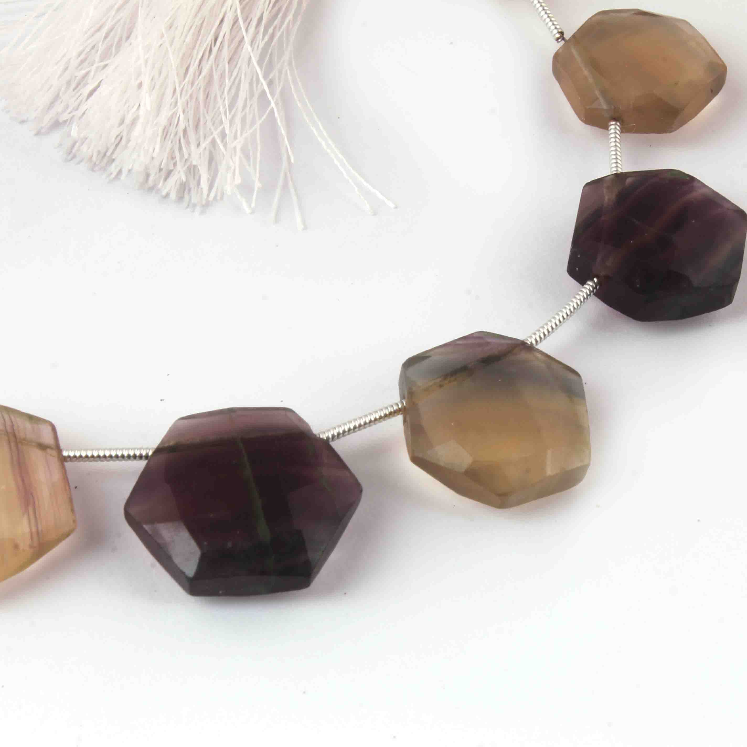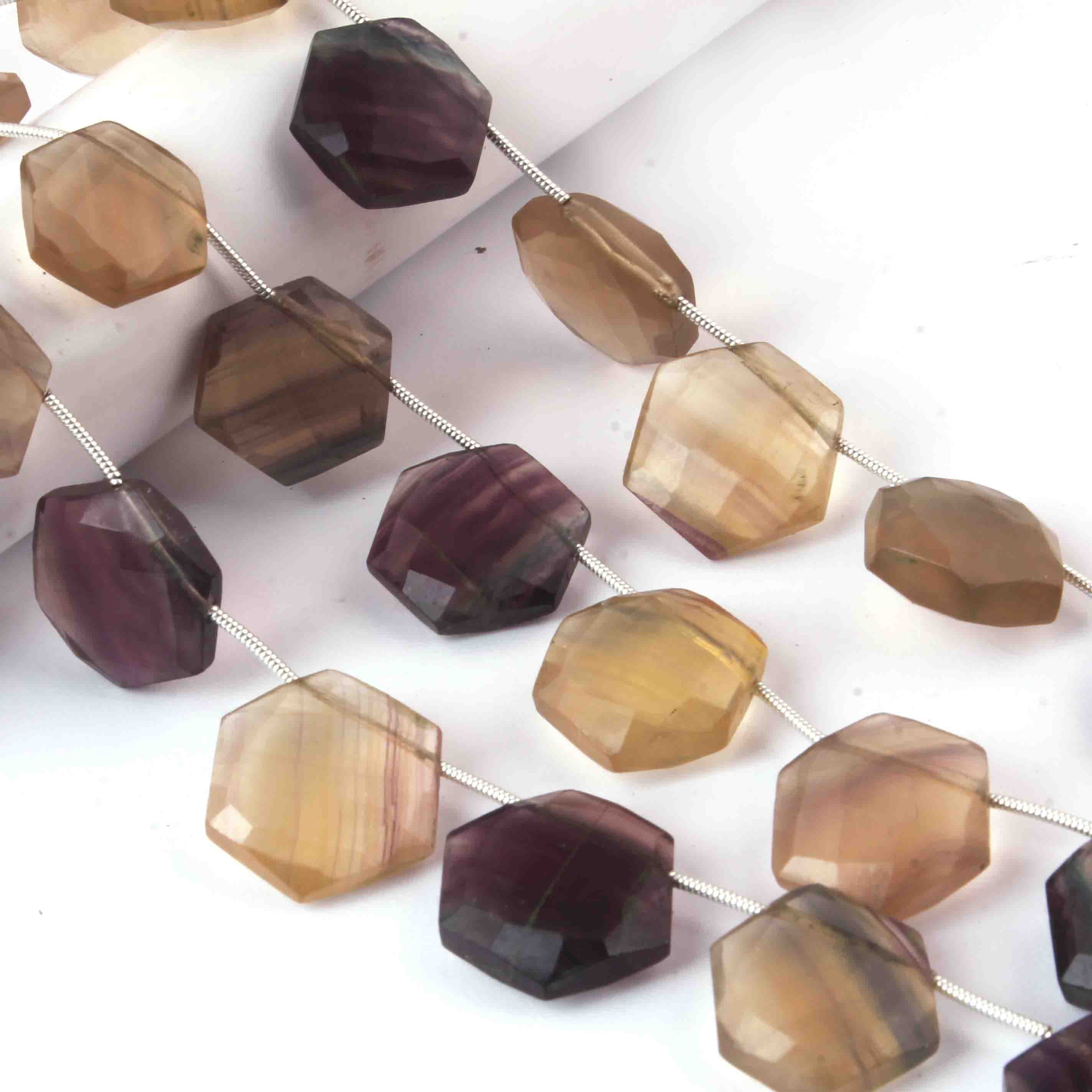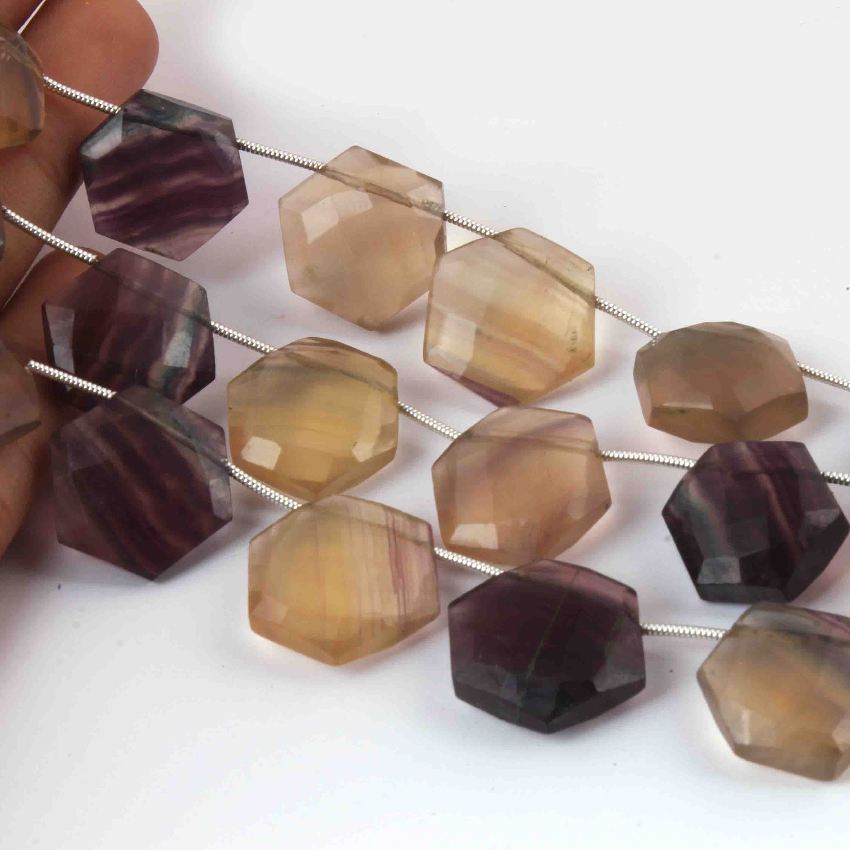 1 Strand Multi Fluorite Faceted Hexagon Shape Briolettes - Jewelry Making Supplies - 18mmx16mm-15mmx16mm 9 Inch BR3246