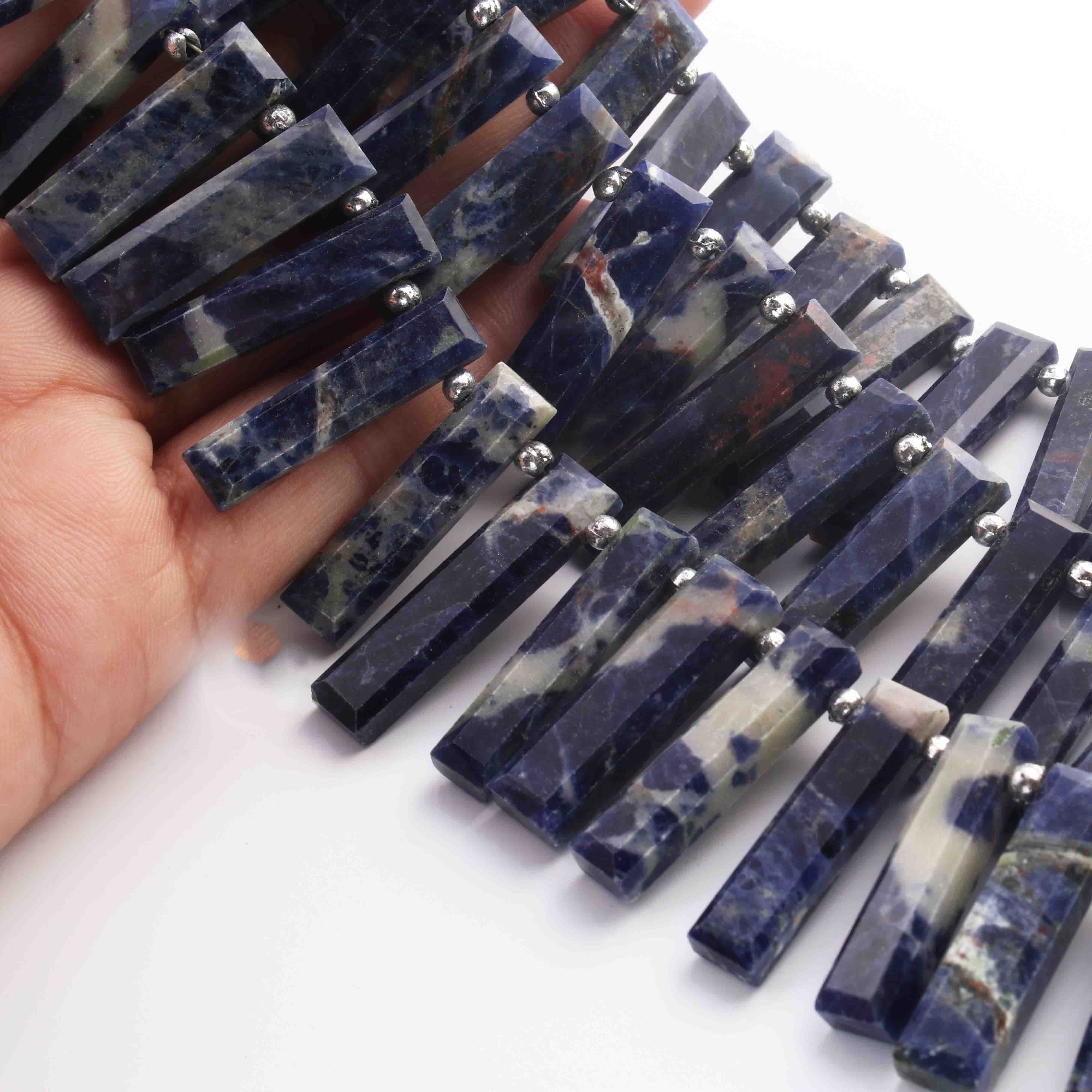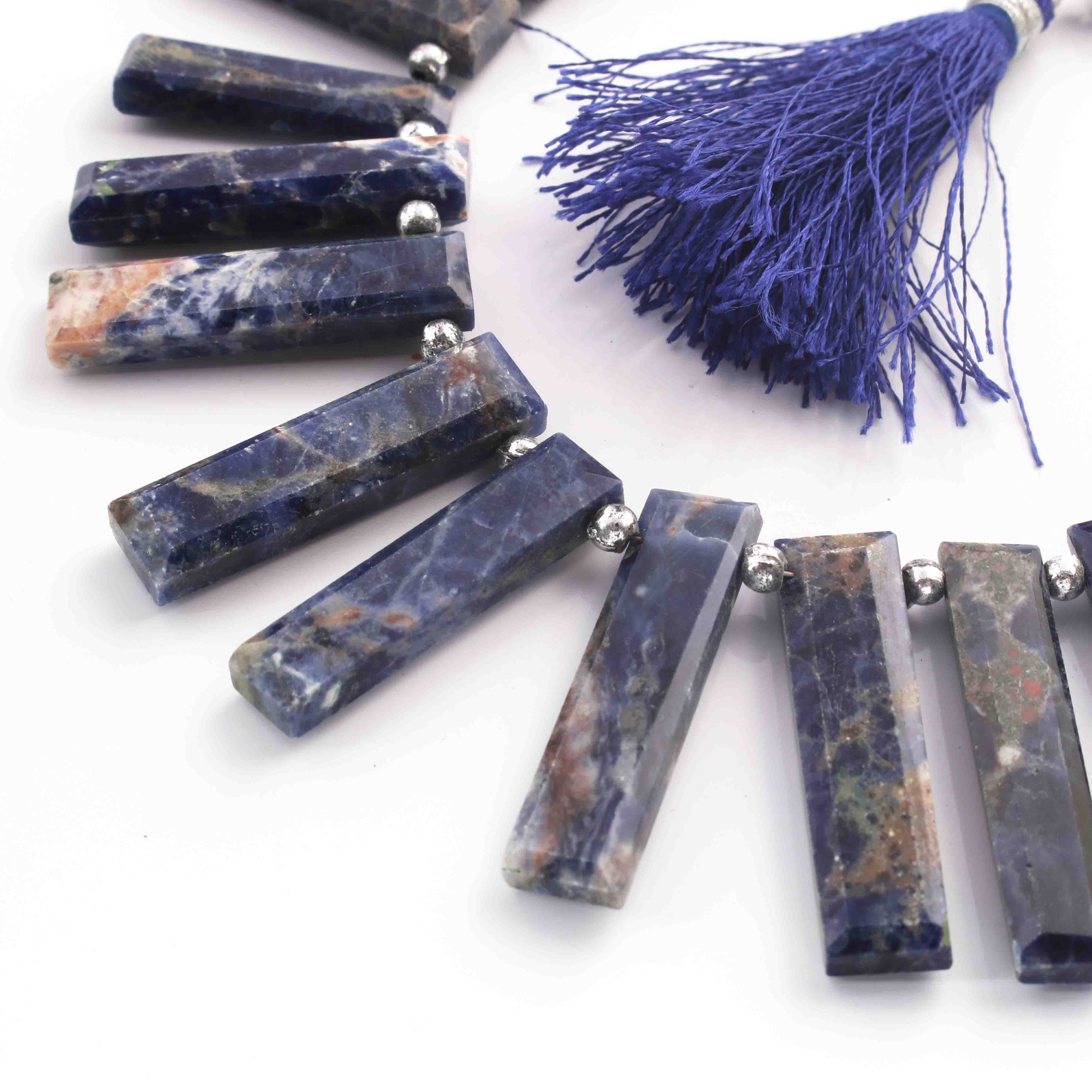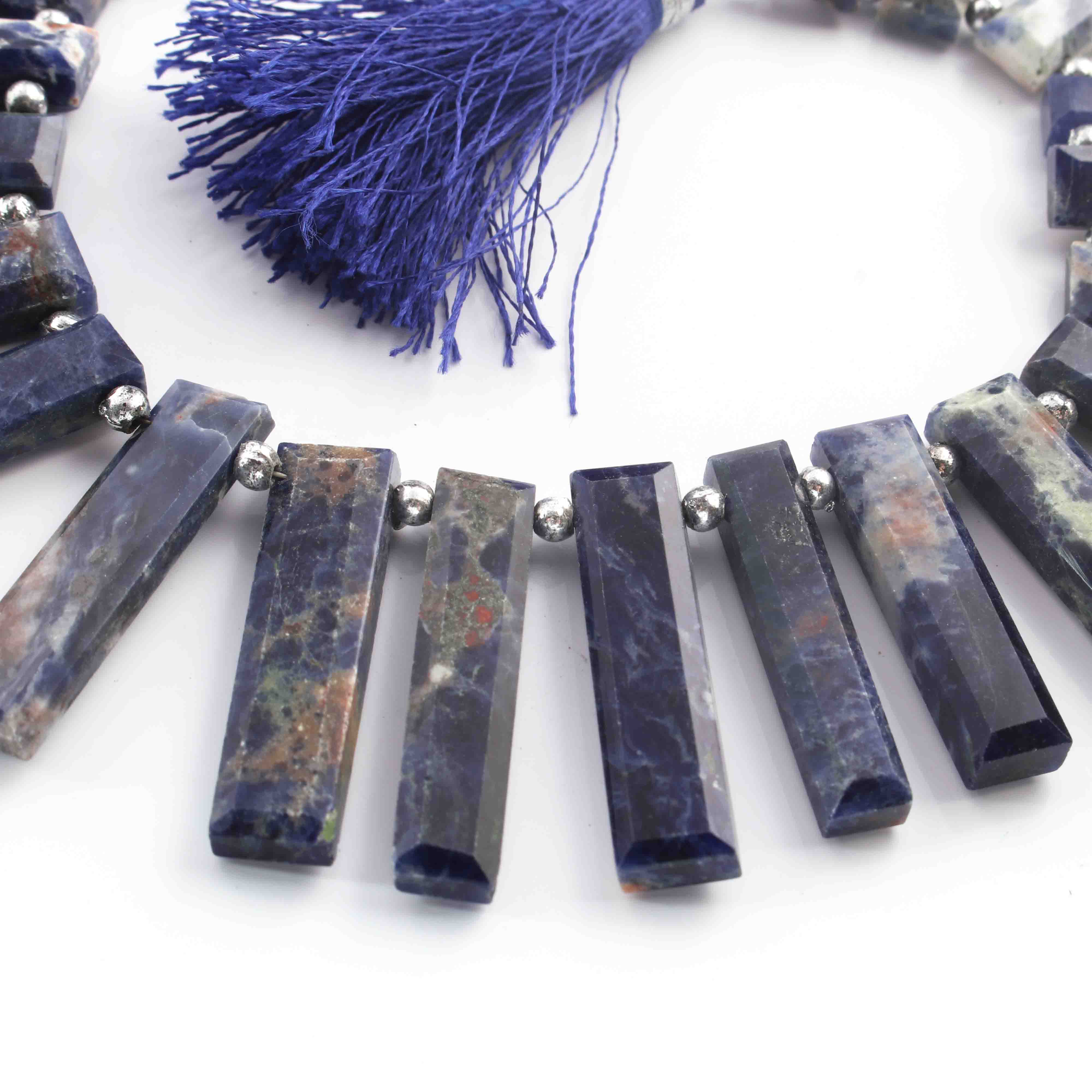 1 Strand Sodalite Rectangle shape Beads - Sodalite Smooth Rectangle Beads 32mmx8mm-17mmx7mm 9 Inches BR01642