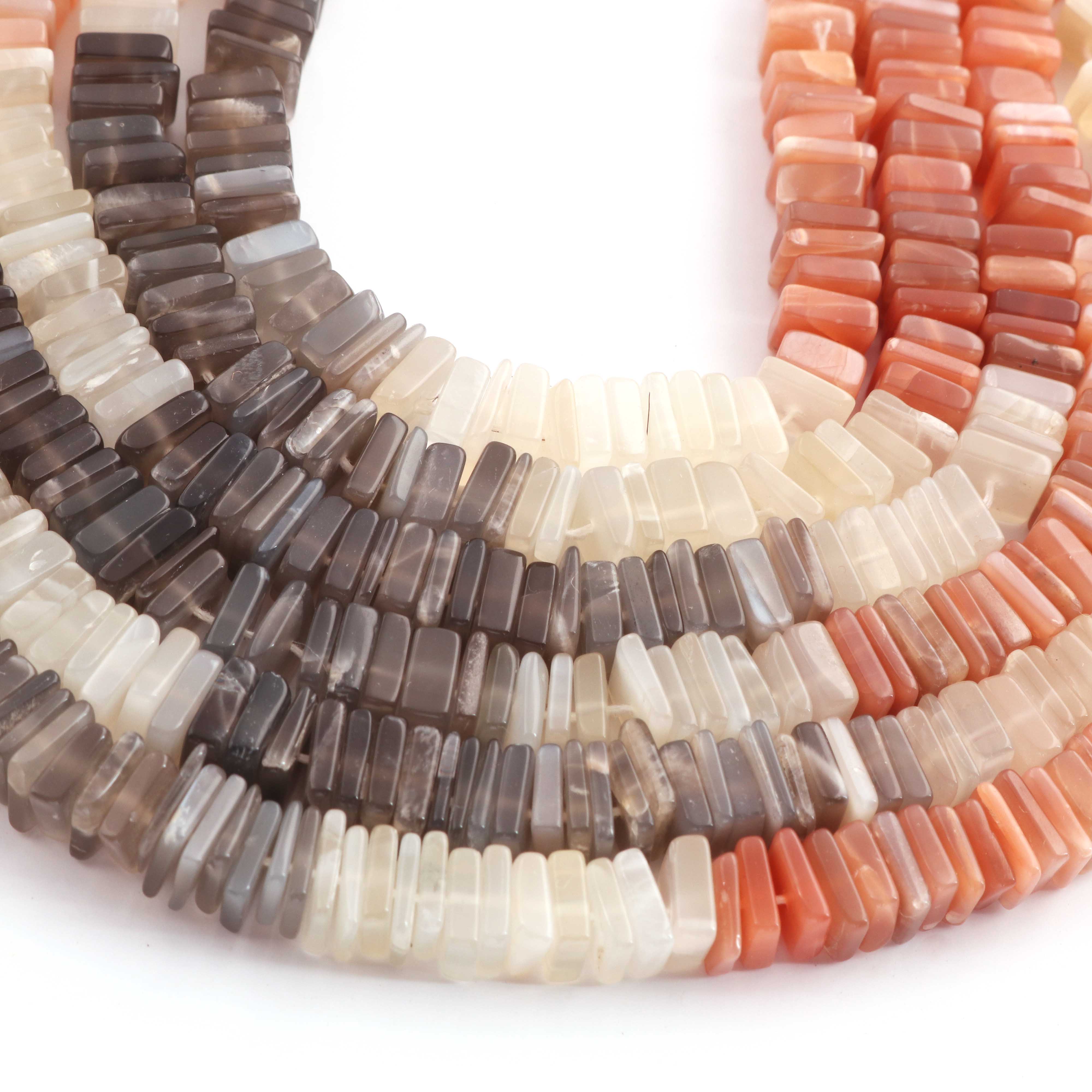 1 Long Strand Multi Moonstone Heshi Smooth Briolettes -Square Shape Briolettes 5mm- 16 Inches BR2216