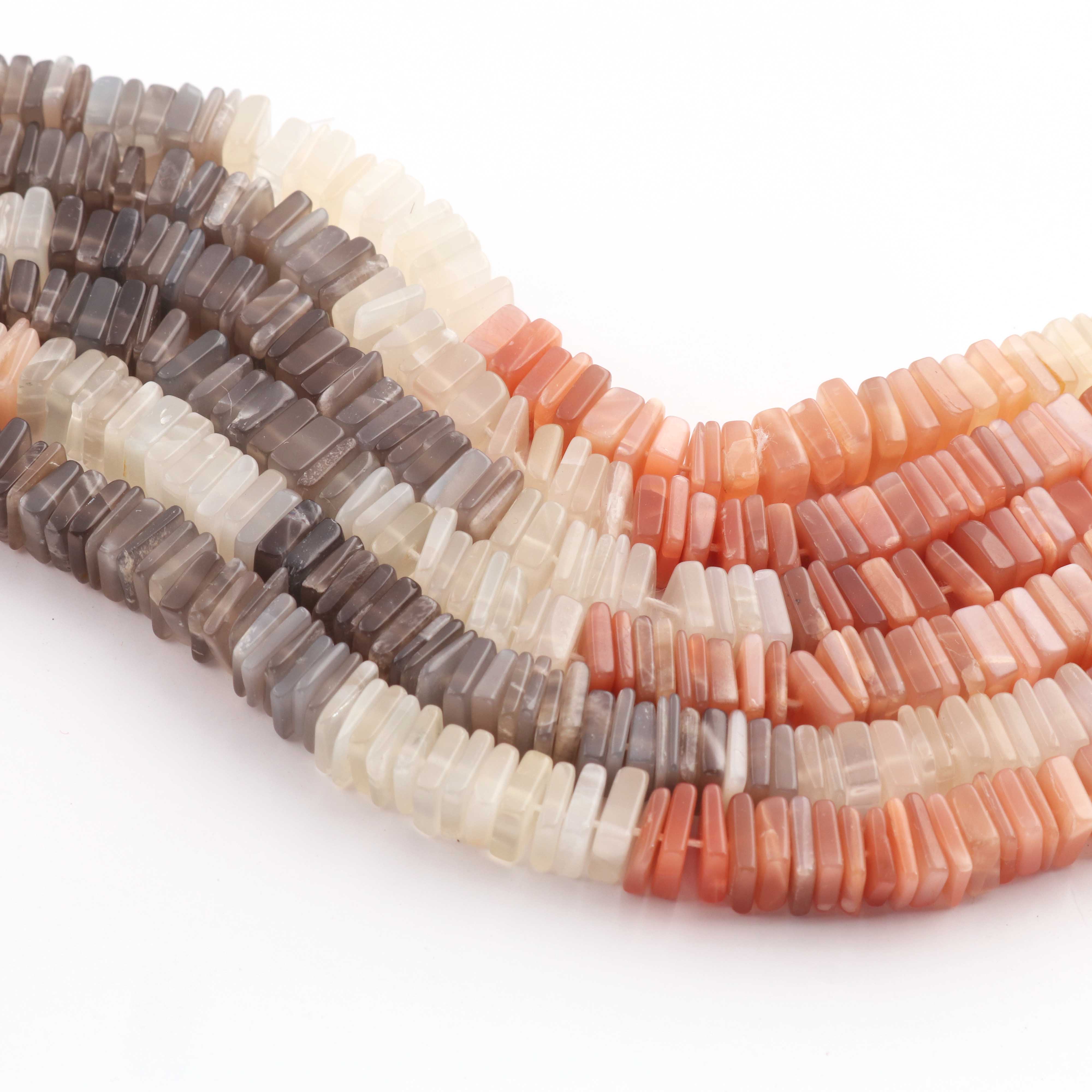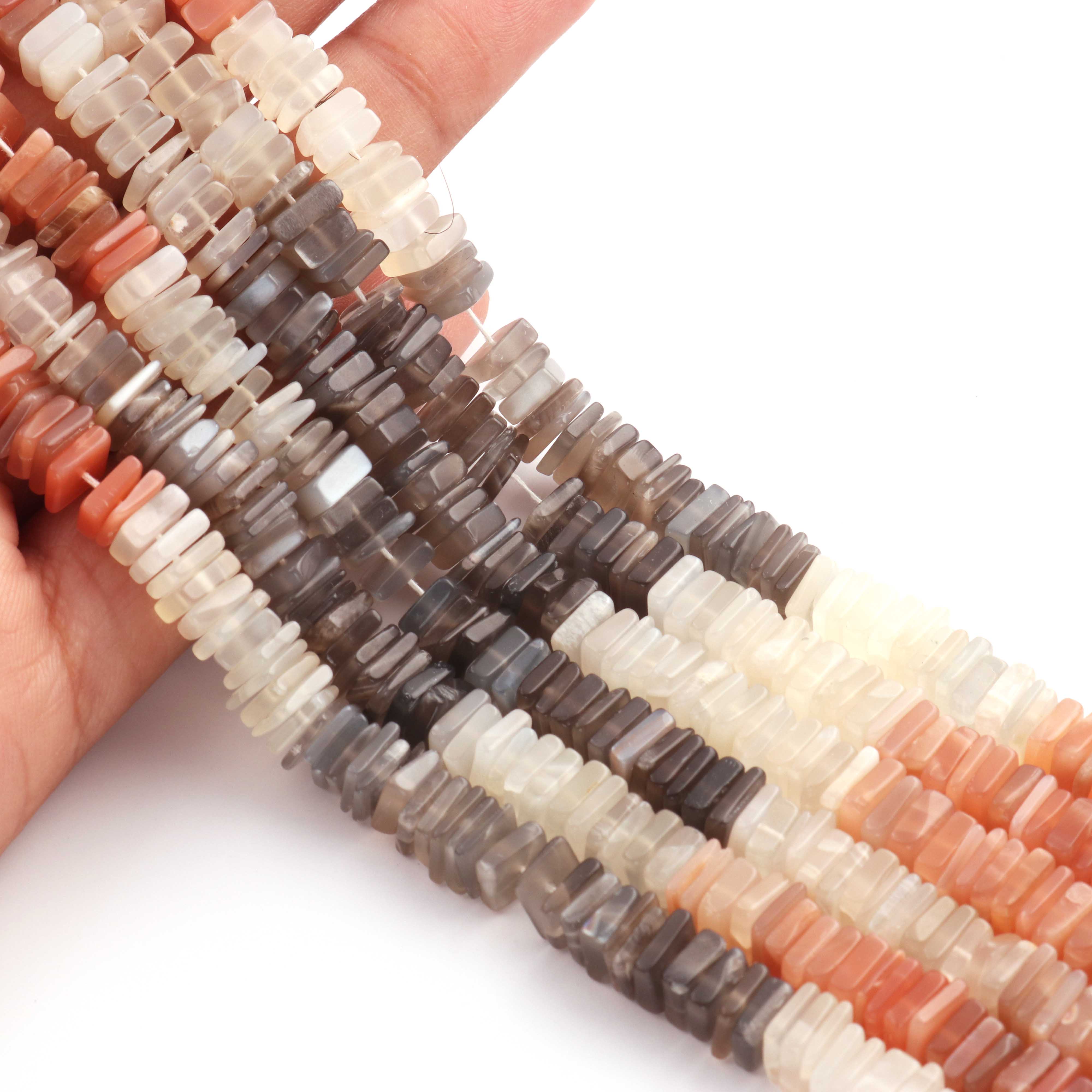 1 Long  Strand Multi Moonstone Heshi Smooth Briolettes  -Square Shape  Briolettes  5mm- 16 Inches BR2216