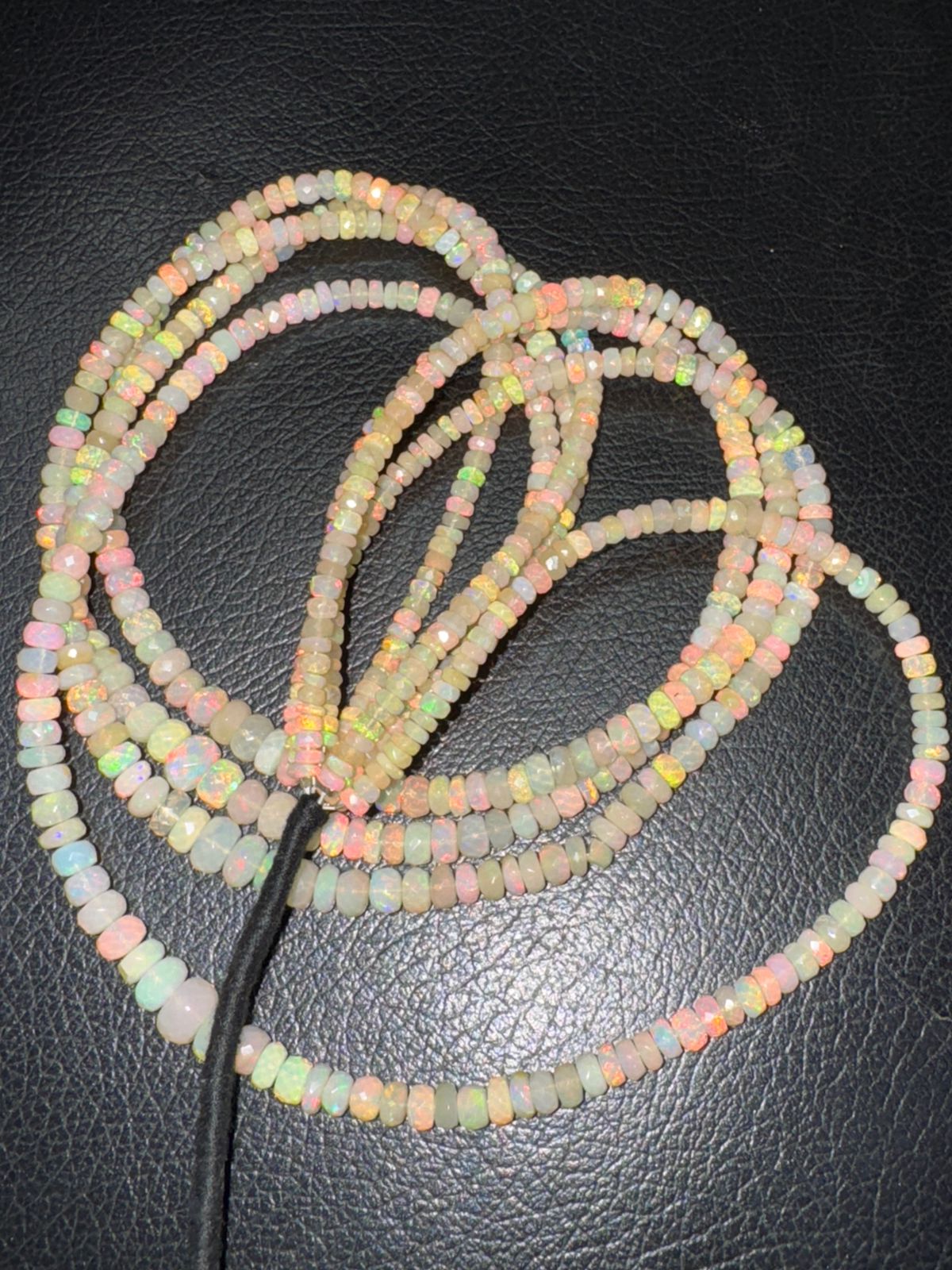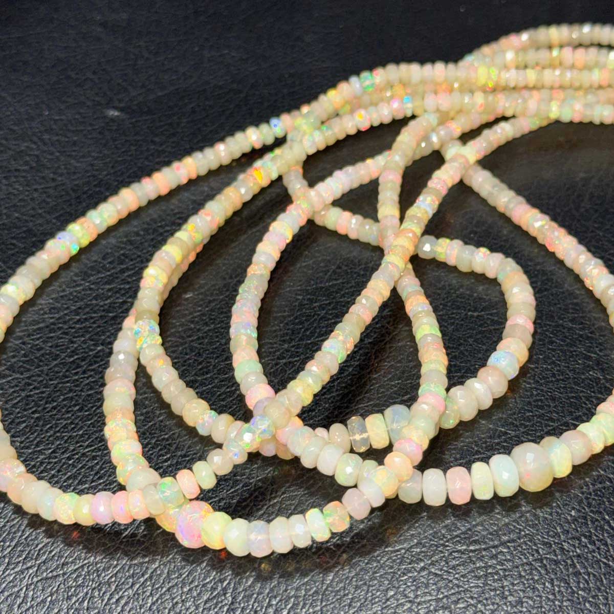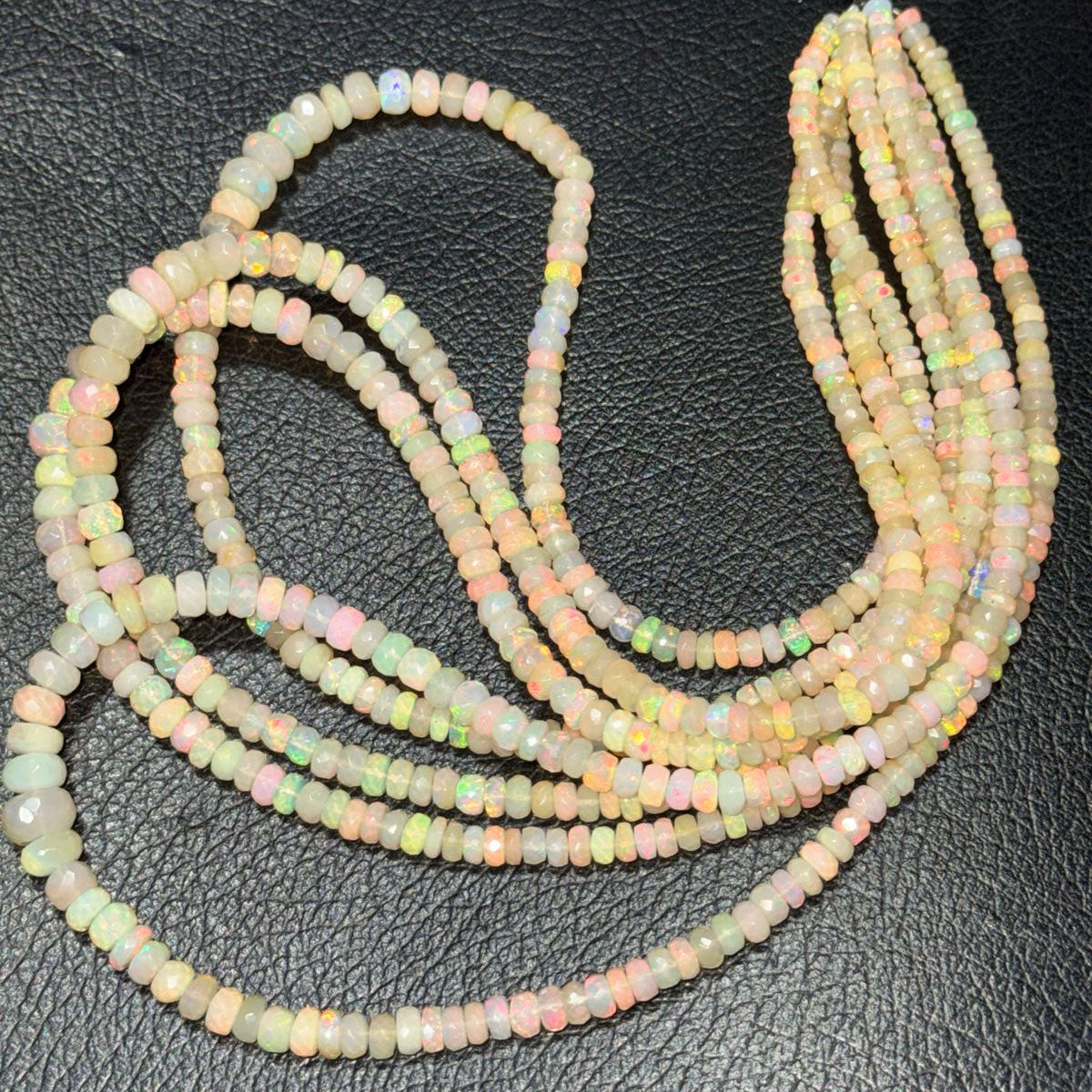 1 Strand 100% Natural Top Quality Ethiopian Welo Opal Faceted Gemstone Rondelles Beads - 4mm-8mm-17 Inches BR02156