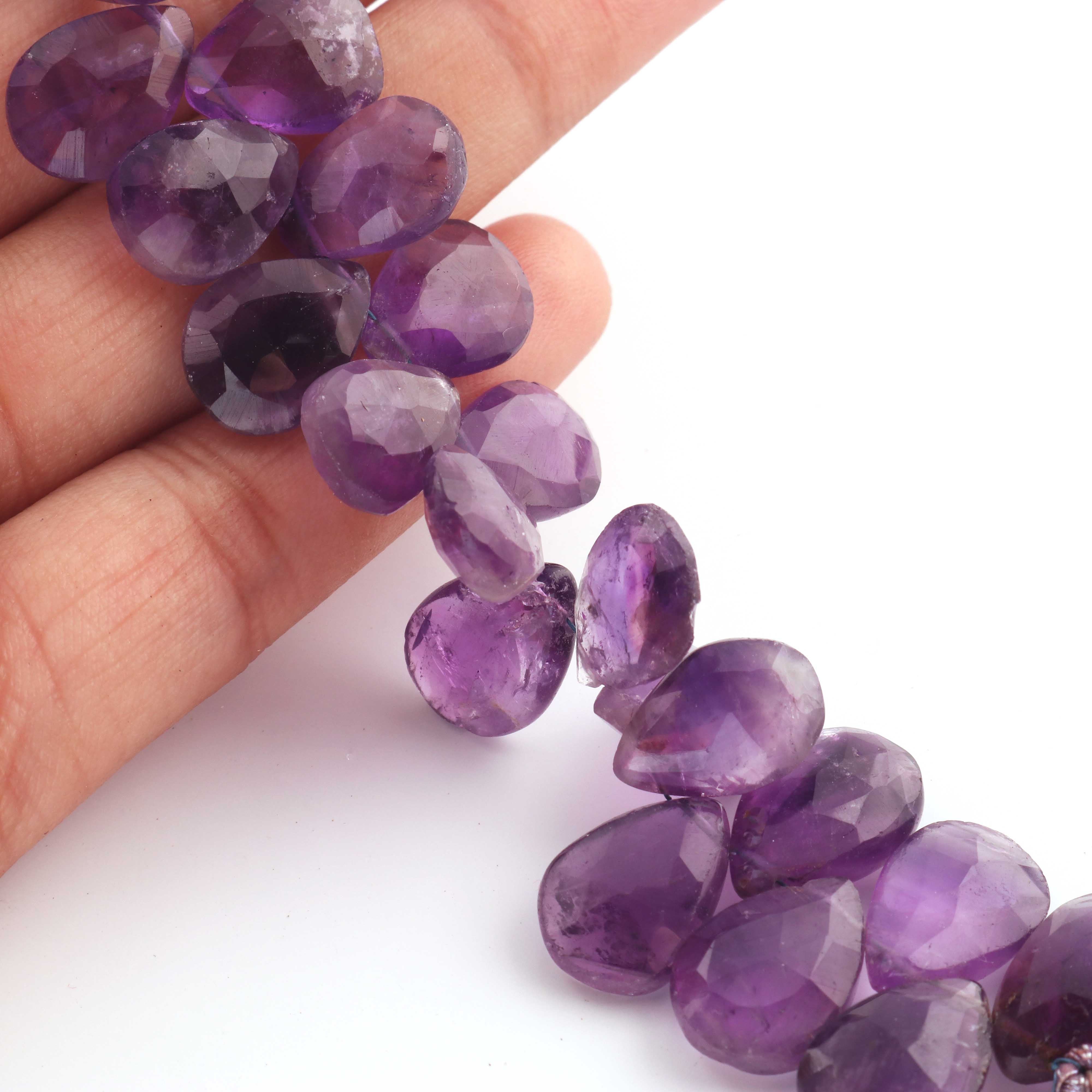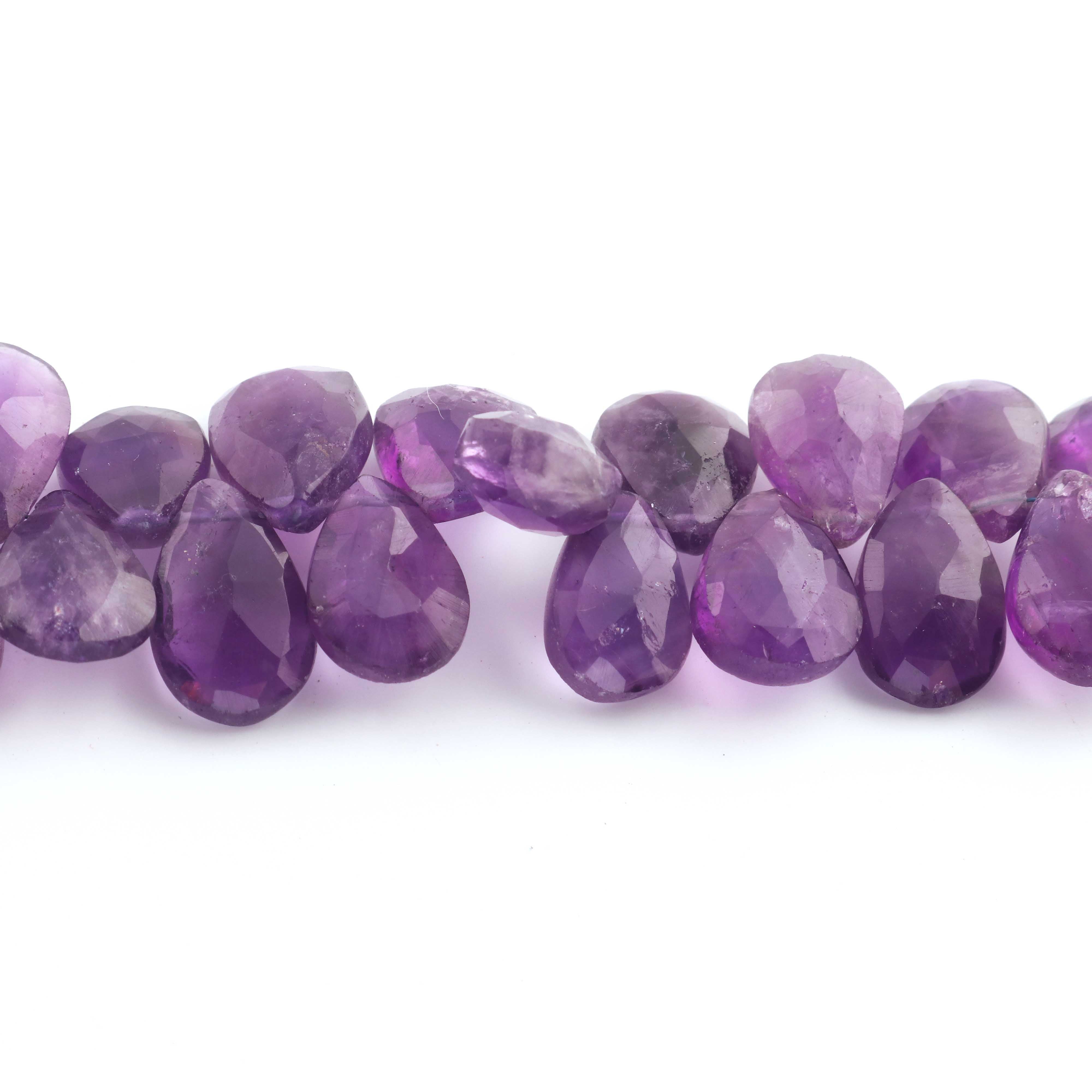 1 Strand Amethyst Faceted Briolettes - Pear Shape Briolettes 9mmx7mm-12mmx7mm- 7 Inches BR4224