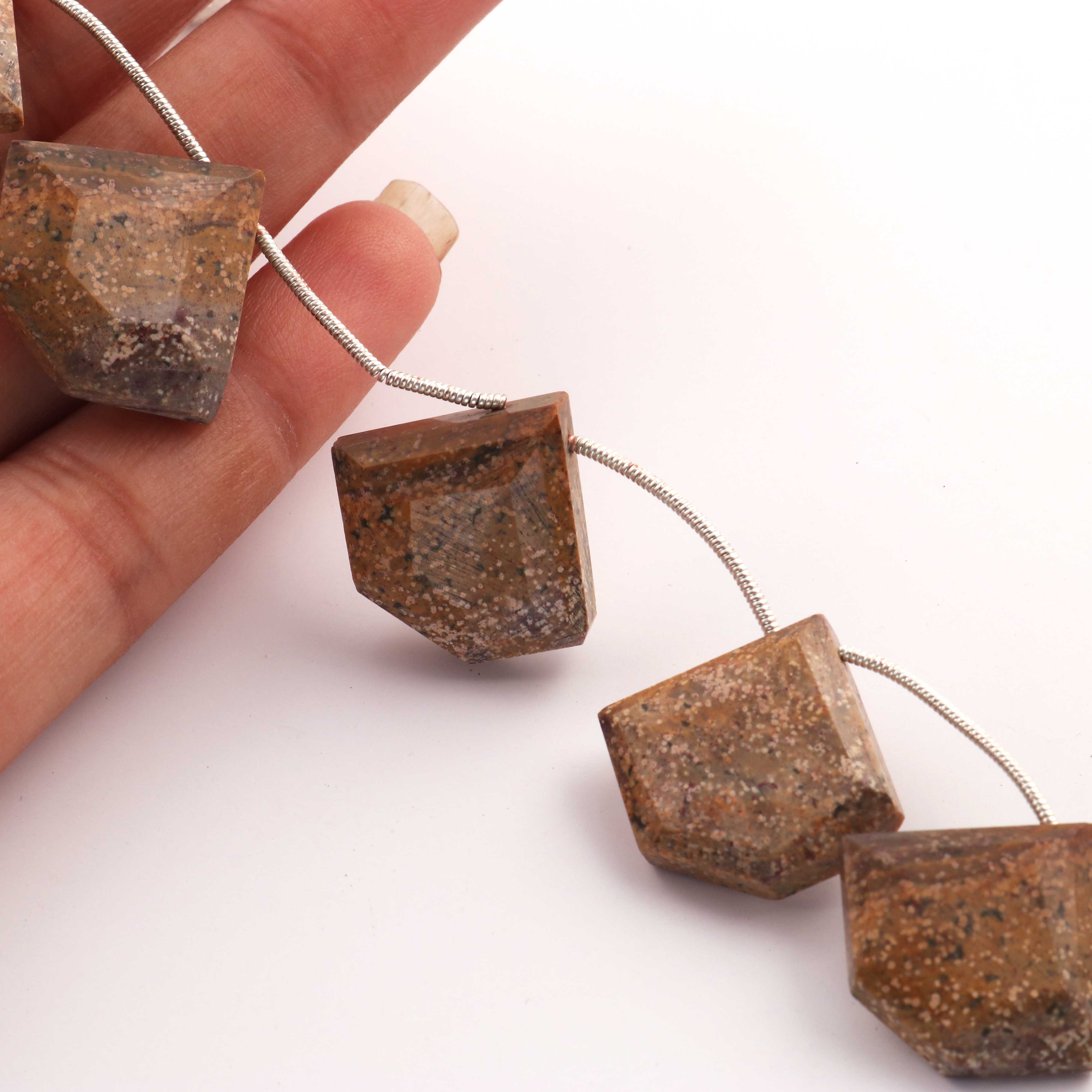 1  Strand Brown Jasper Faceted Briolettes  - Fancy  Briolettes  -18mmx21mm-21mmx23mm  8.5 Inches BR2606