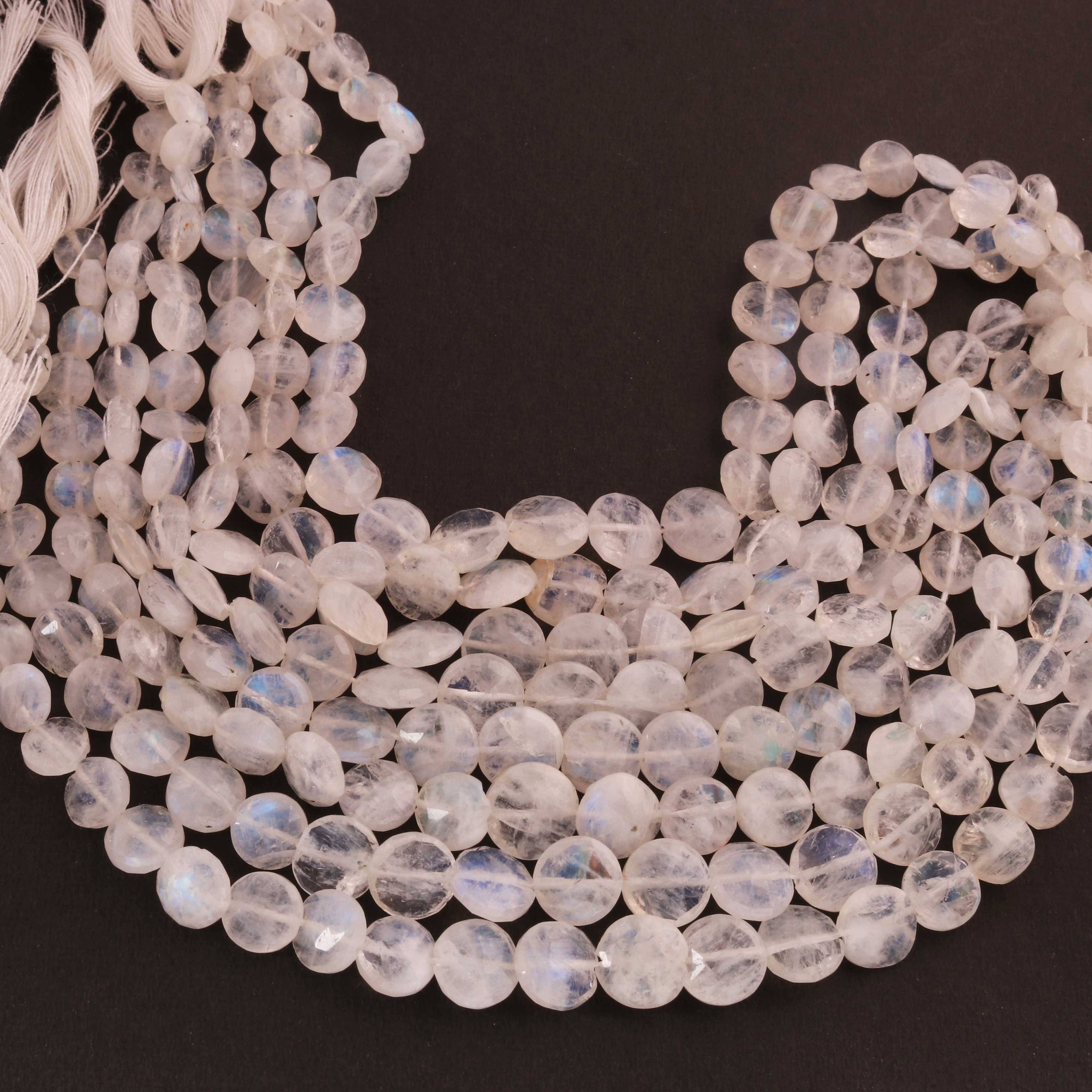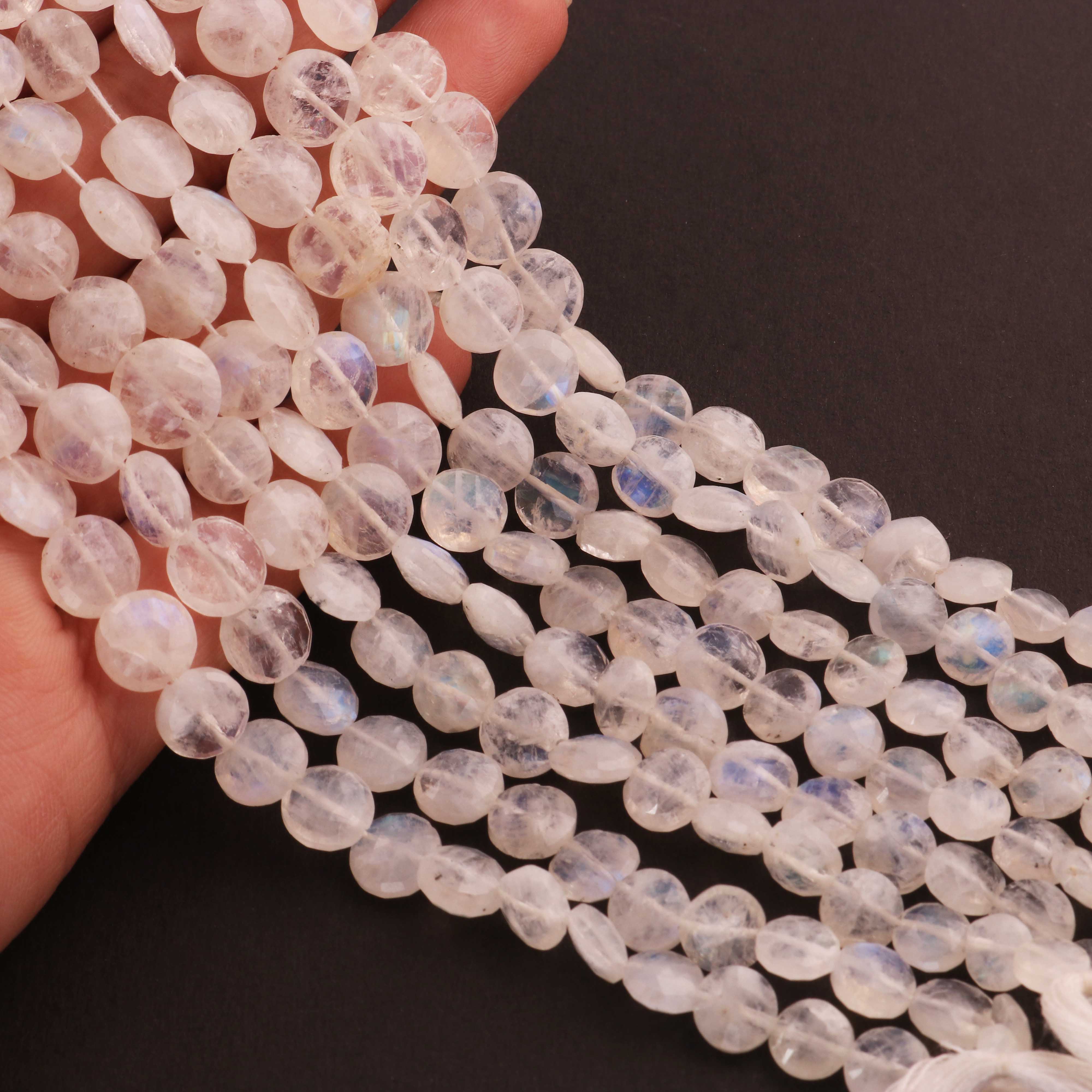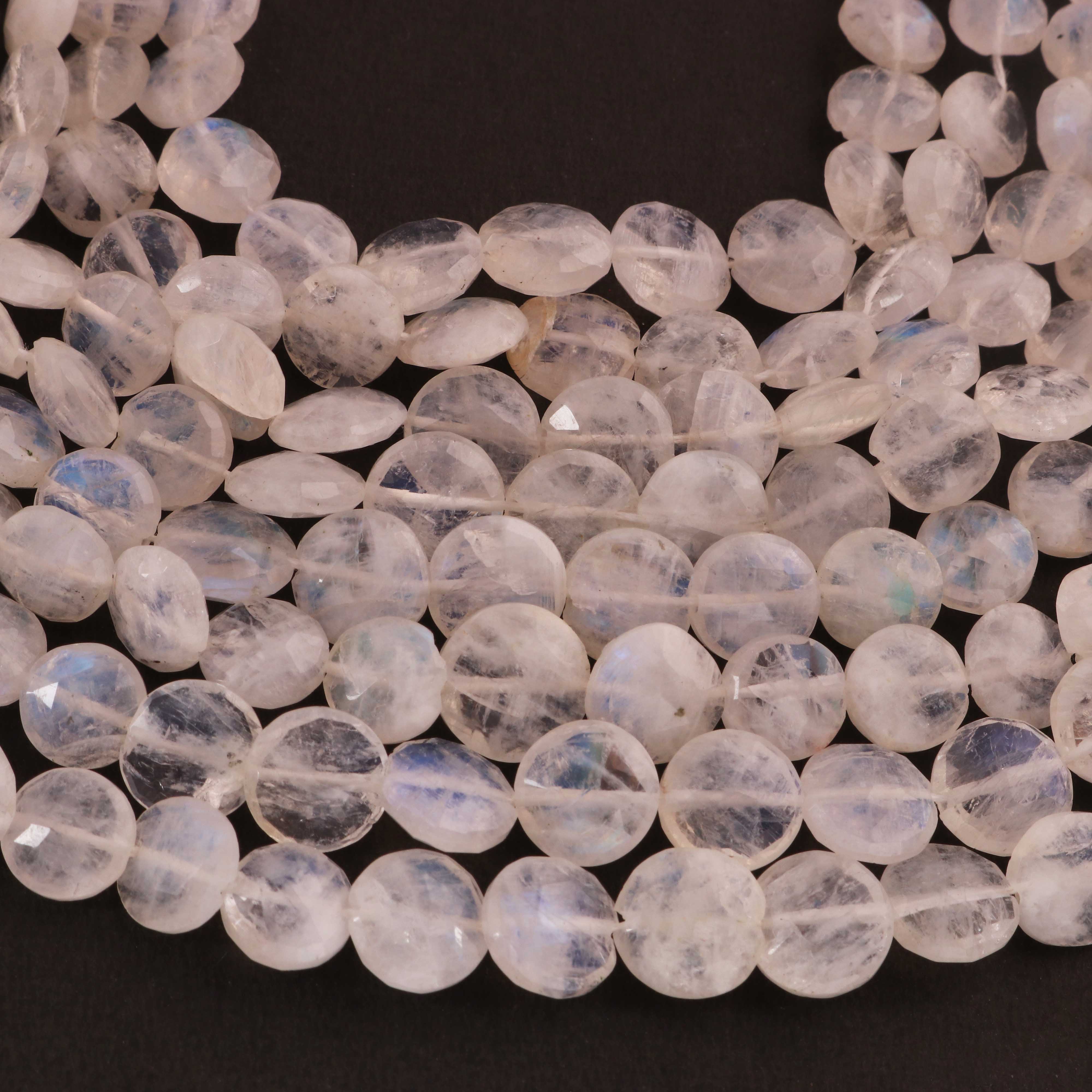 1 Strand White Rainbow Moonstone Faceted Briolettes -Coin Shape Briolettes -10mm -8 Inches BR03625