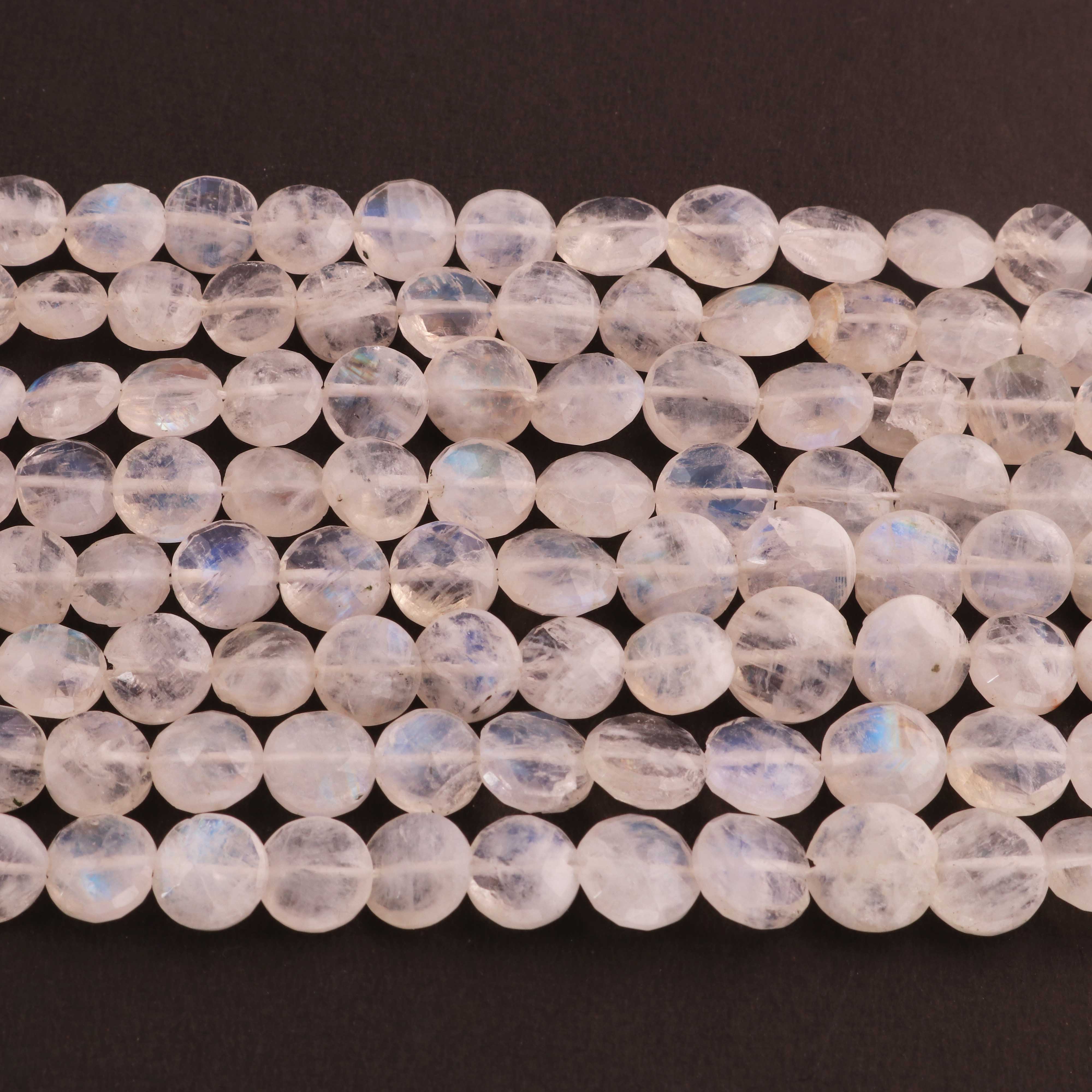 1  Strand White Rainbow Moonstone Faceted Briolettes -Coin Shape Briolettes  -10mm -8 Inches BR03625