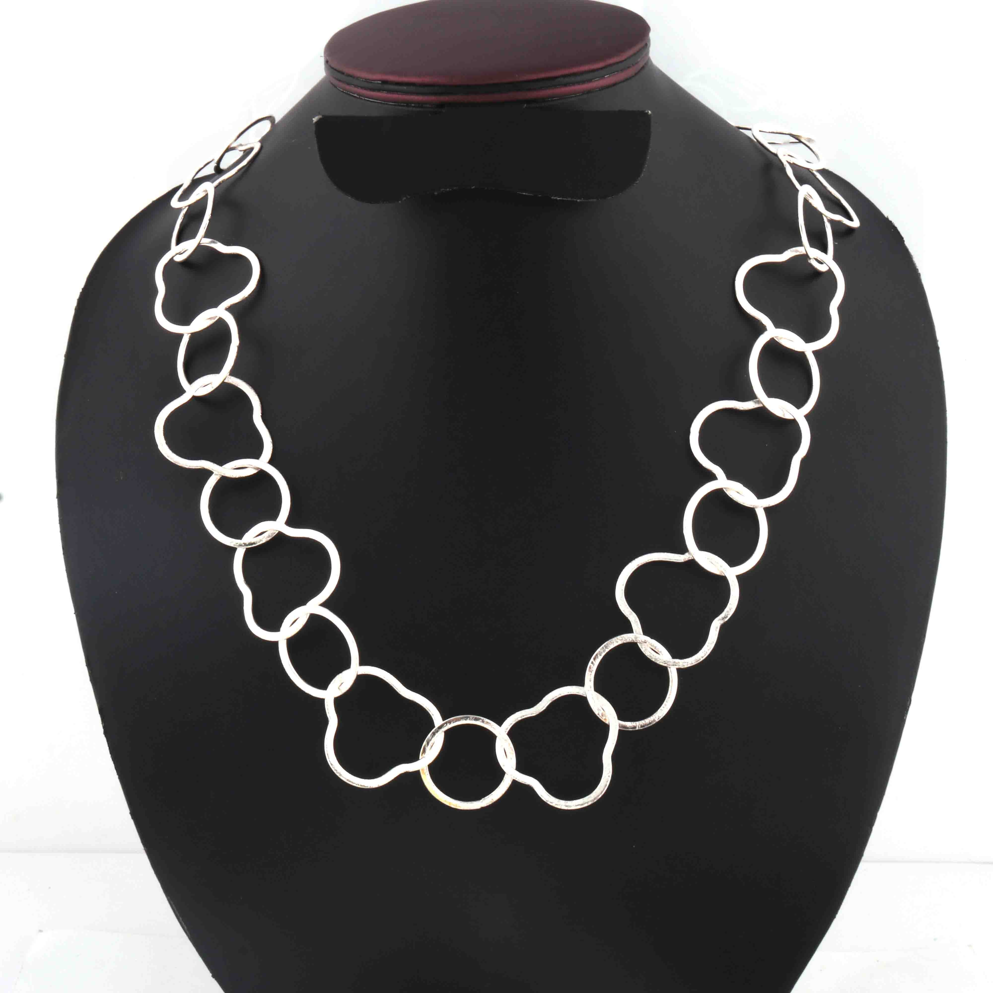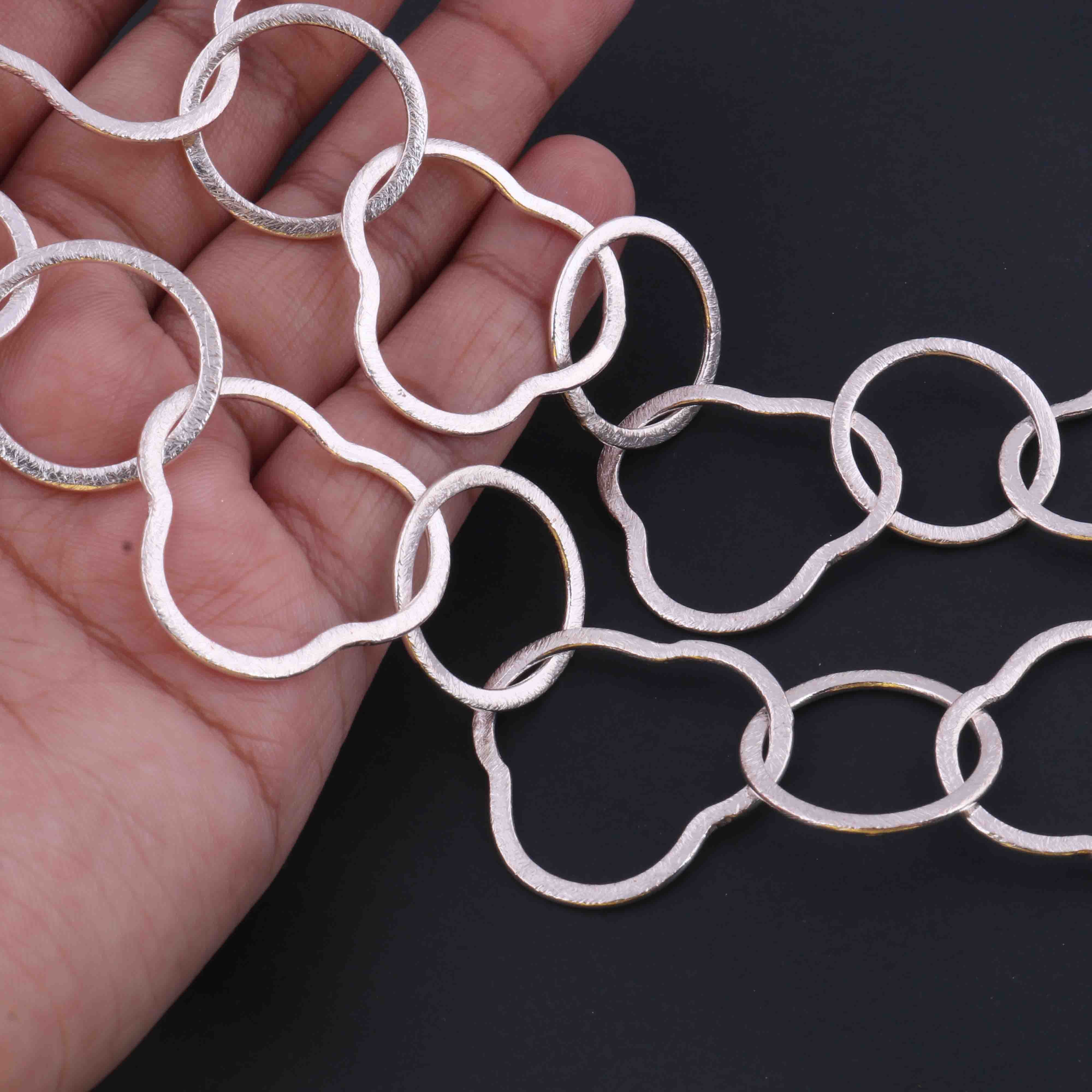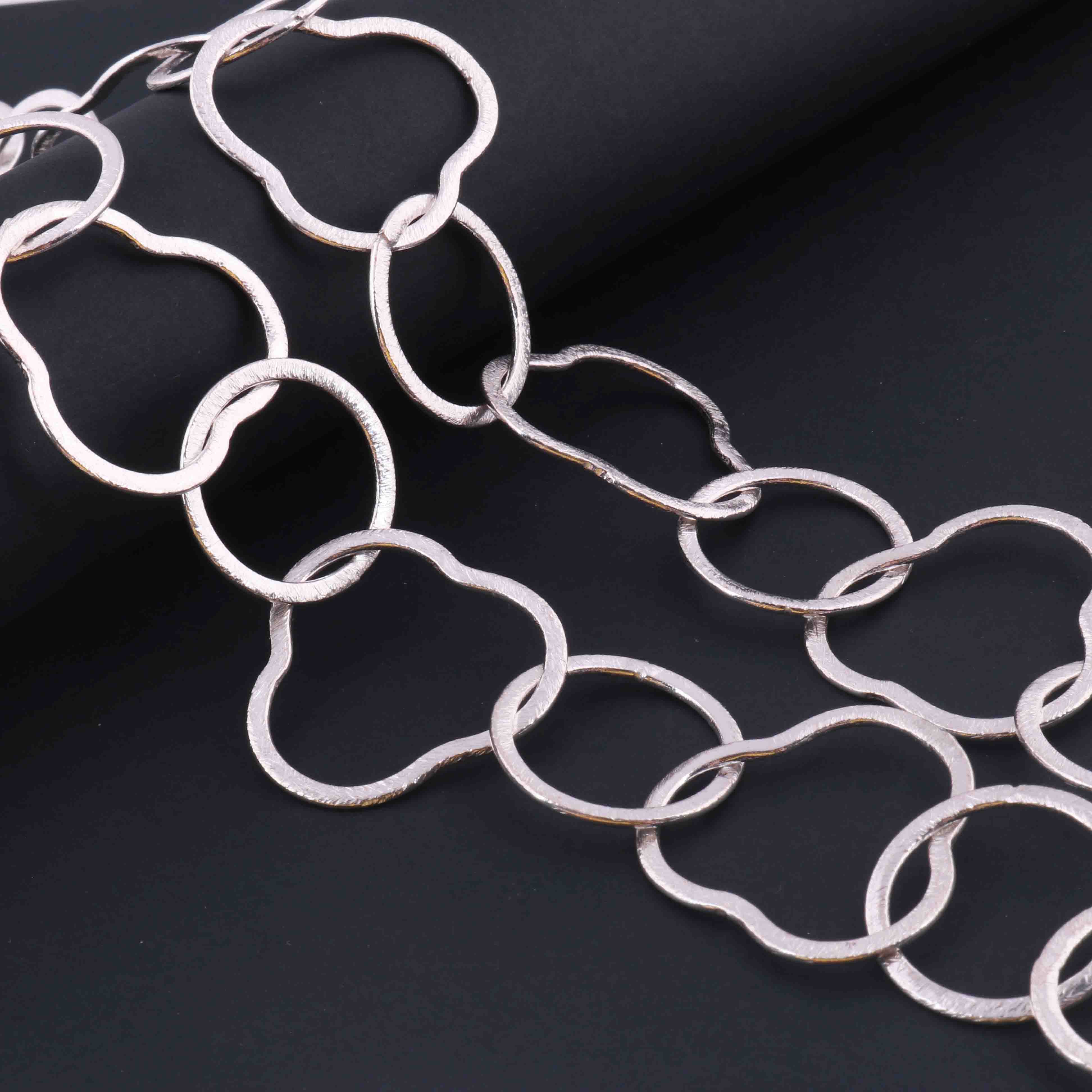 1 Necklace Top Quality 2 Feet Each Silver Plated Fancy&Round Shape Copper Link Chain - Each35 inch 32 mmx33mm-22mm GPC1257
