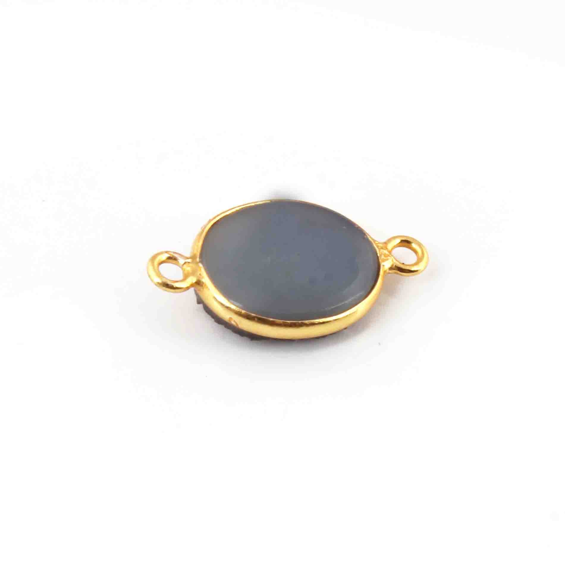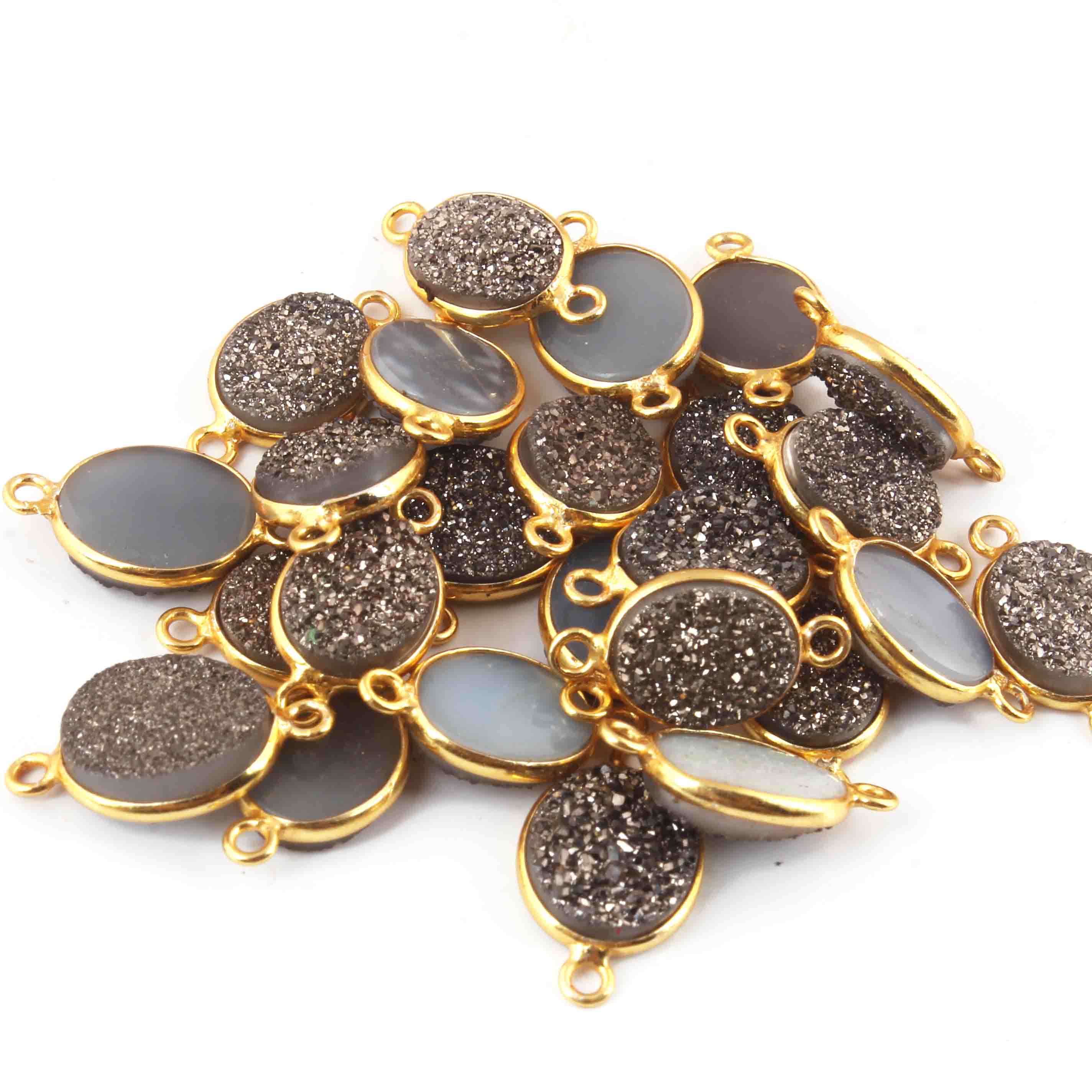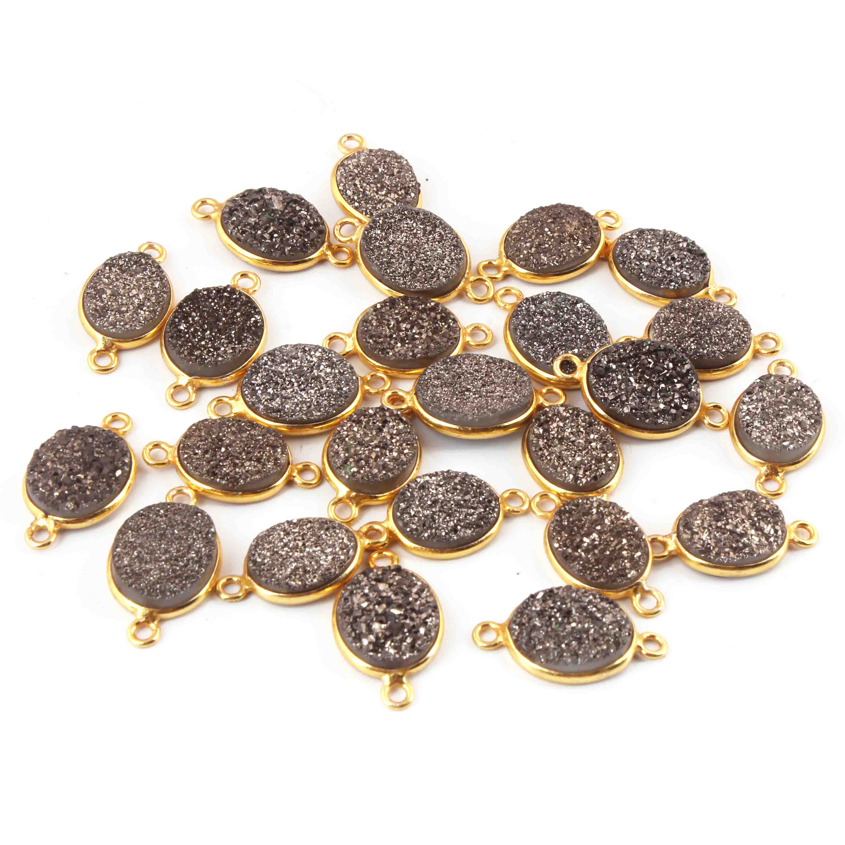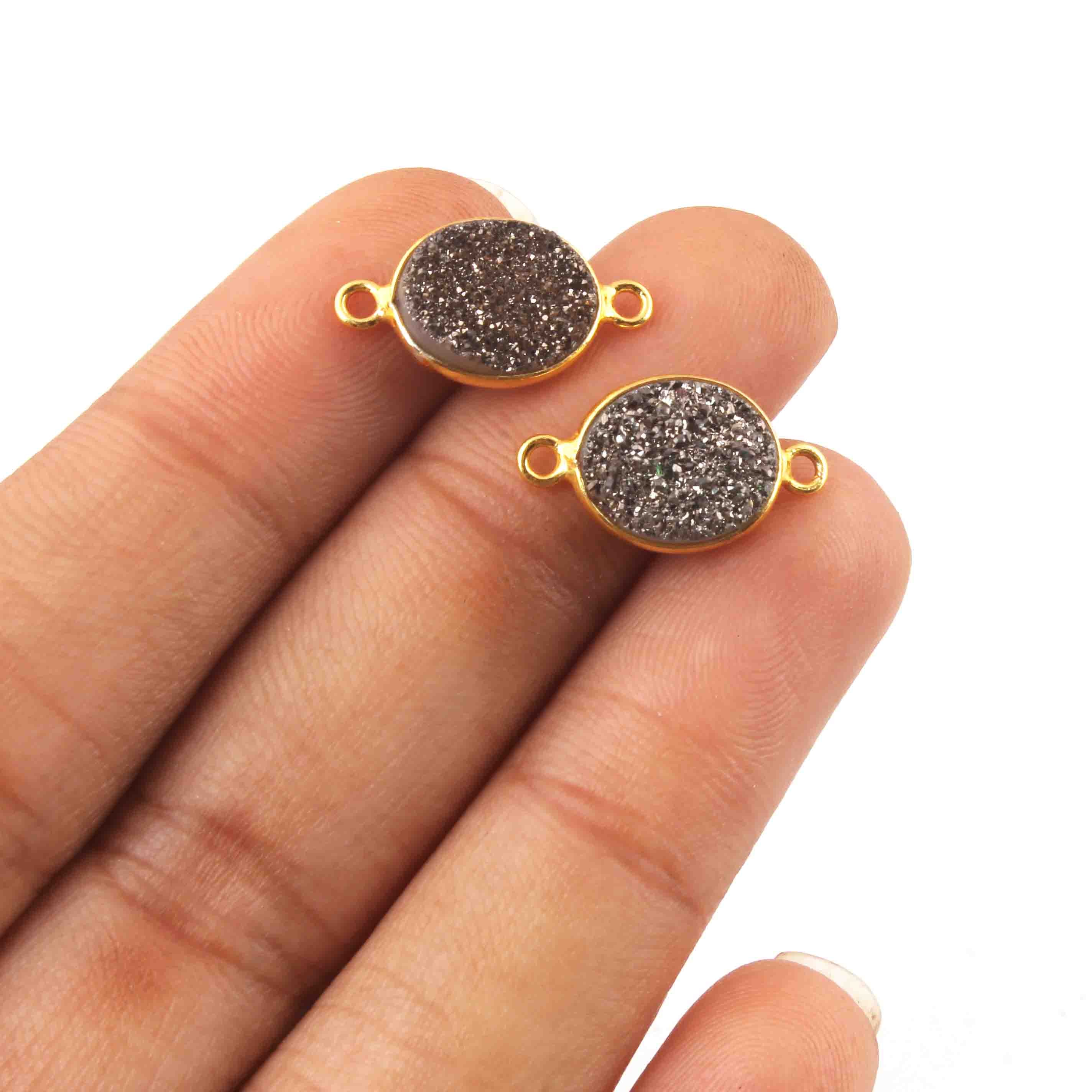 13 Mystic Gray Druzy Oval 925 Sterling Vermeil Double Bail Connector - 8mmx16mm-10mmx18mm SS421