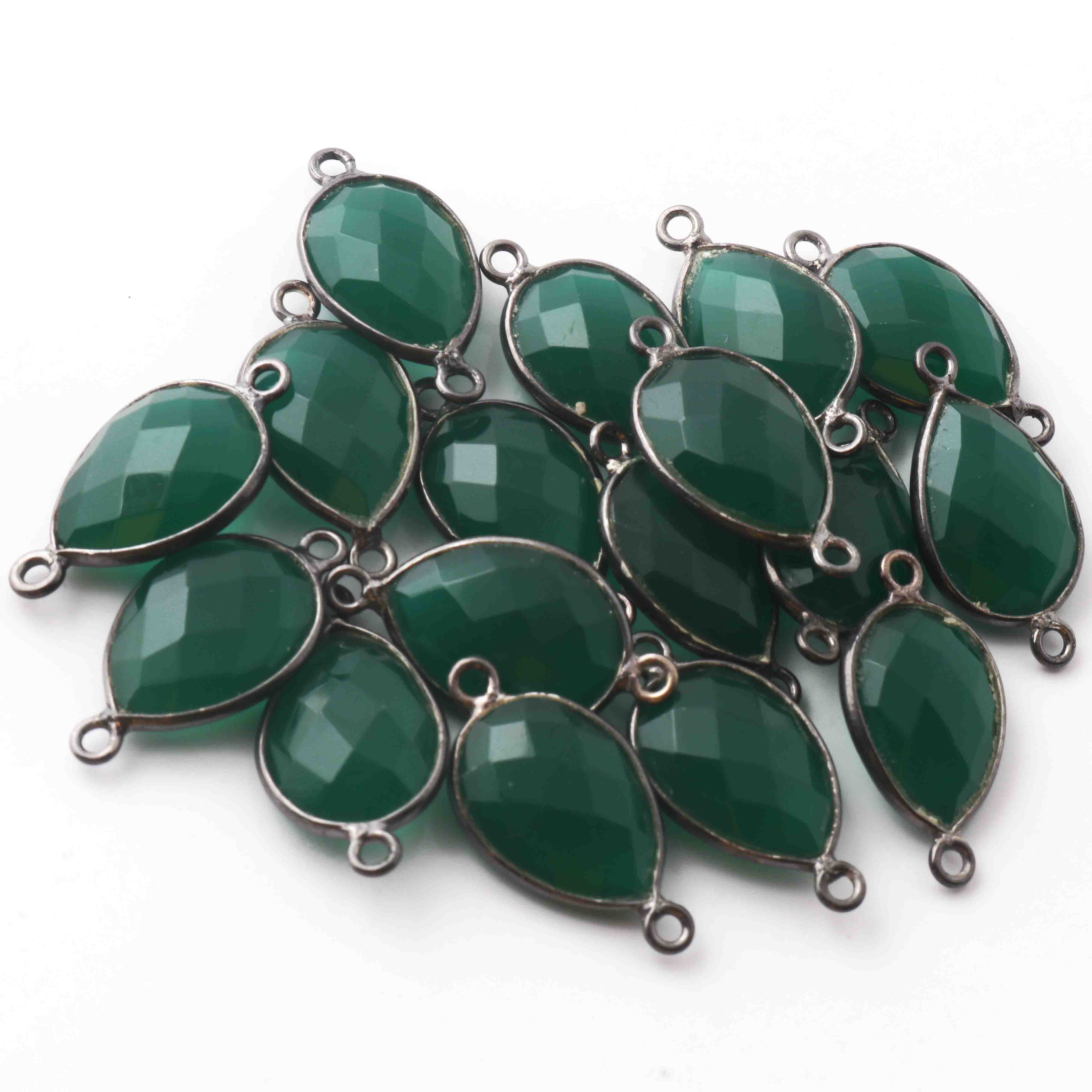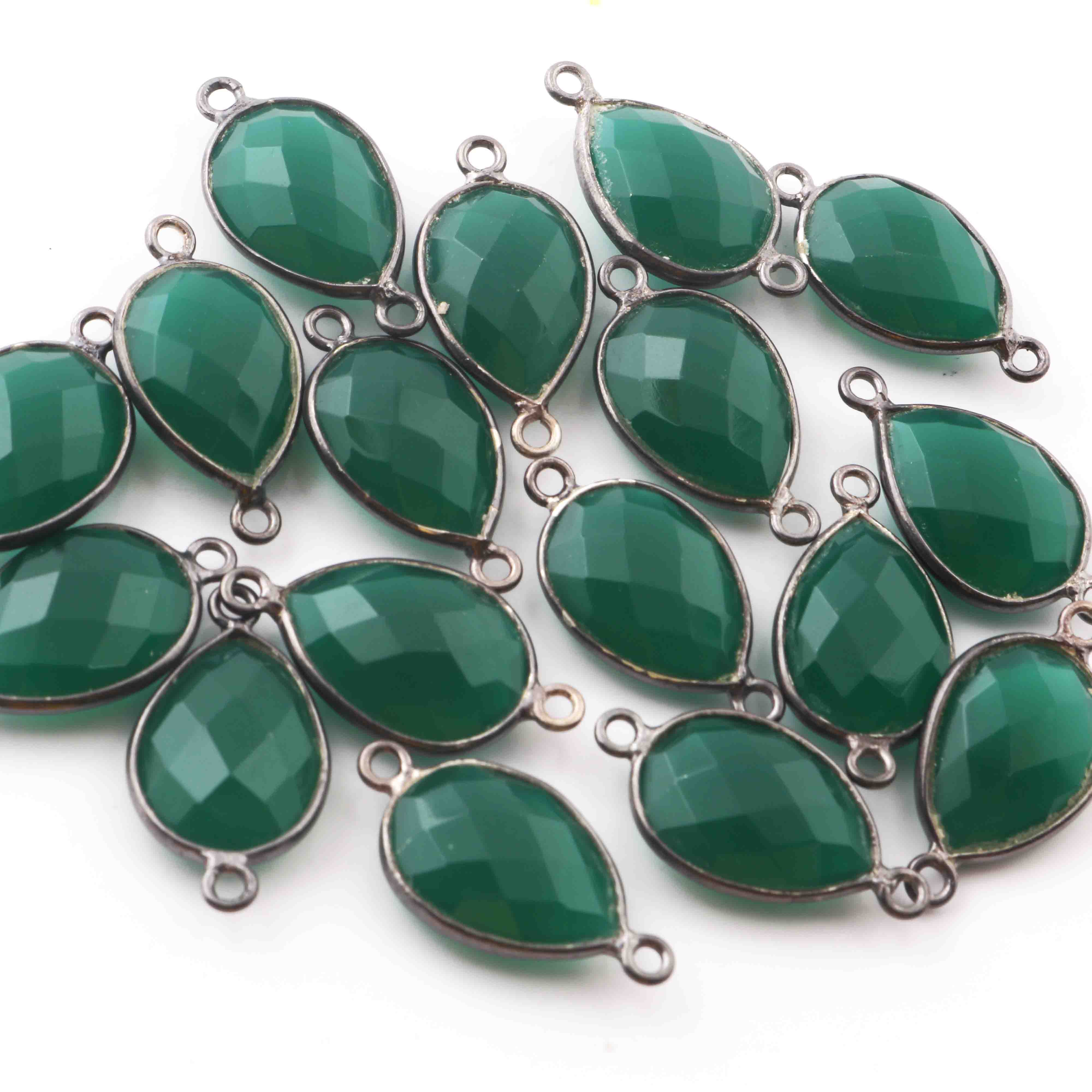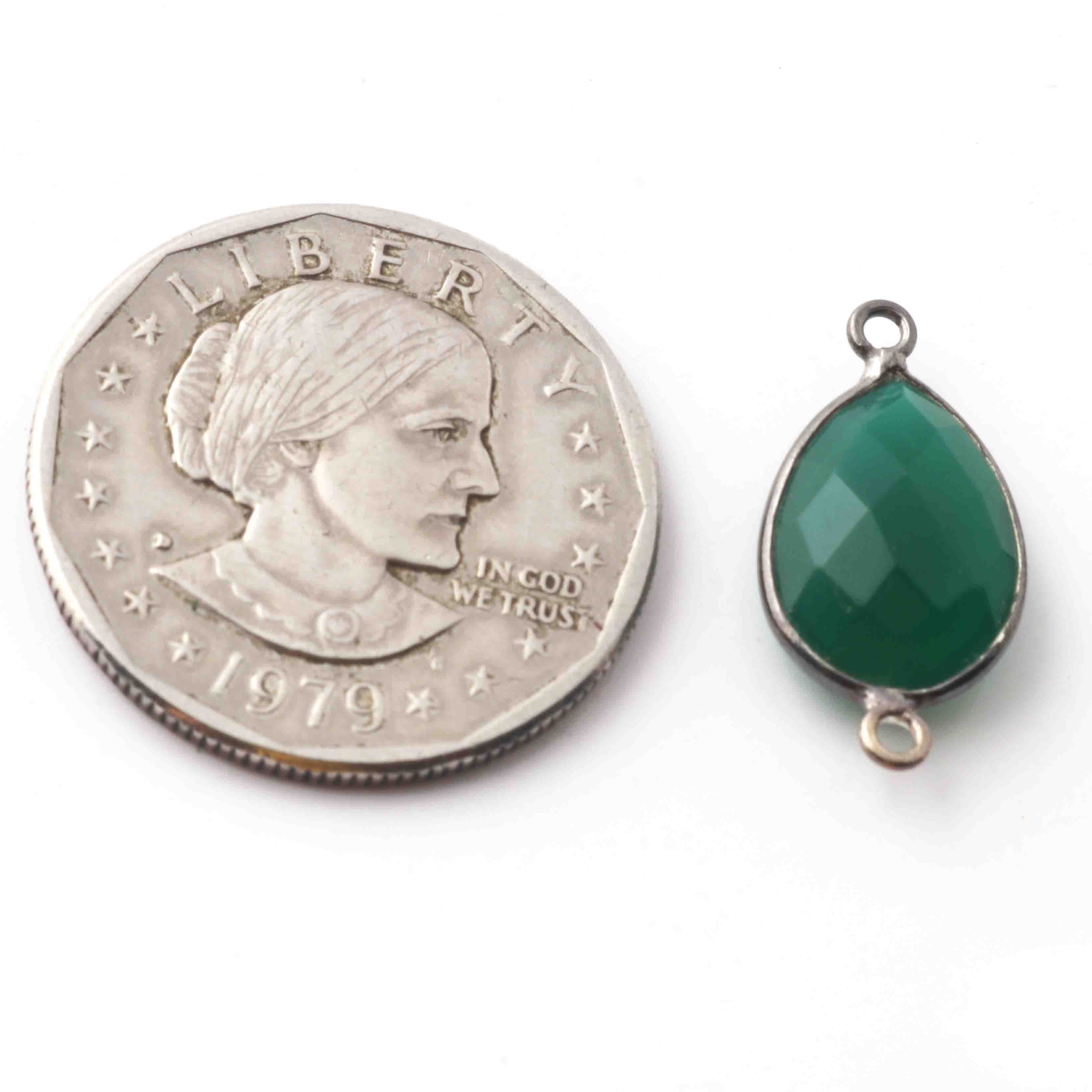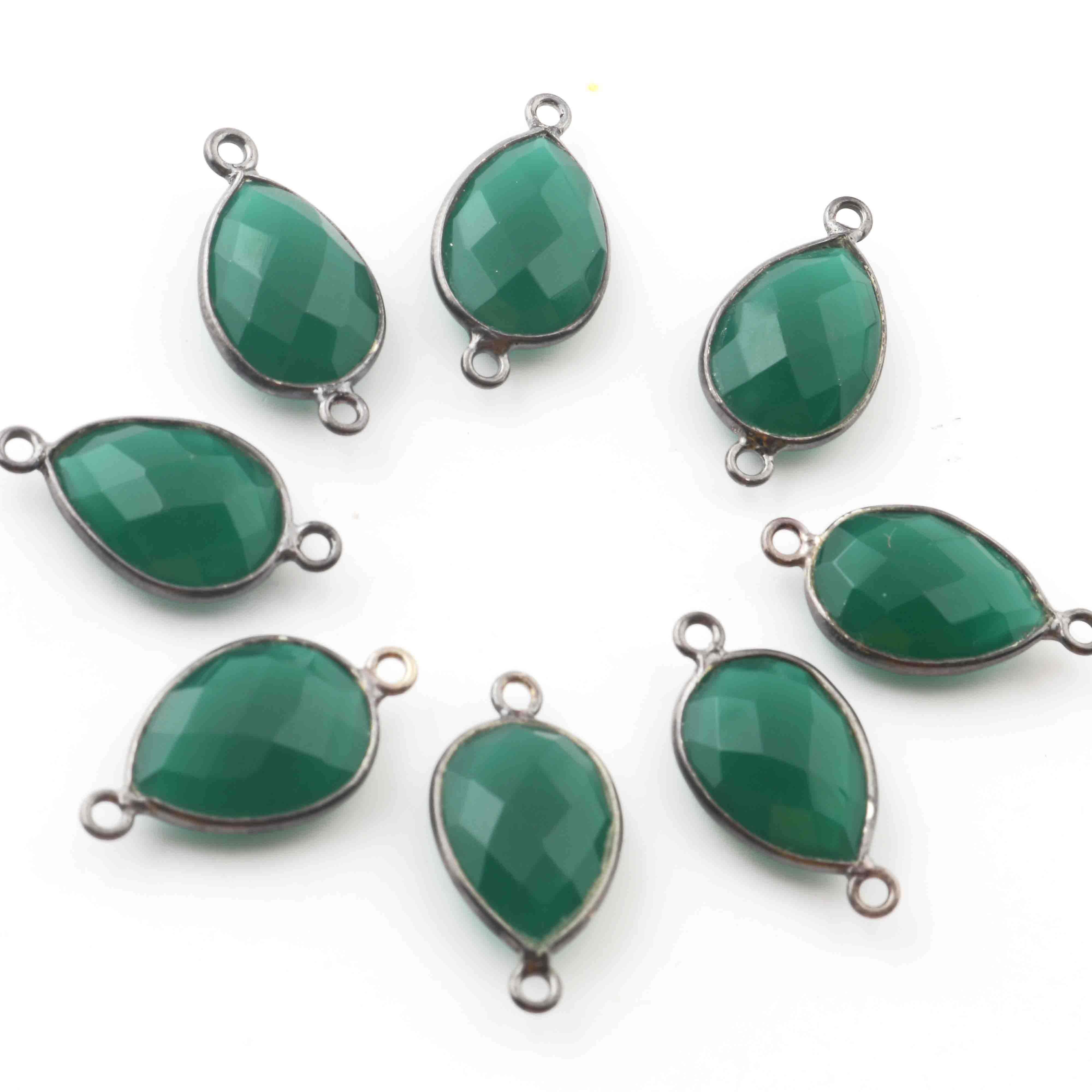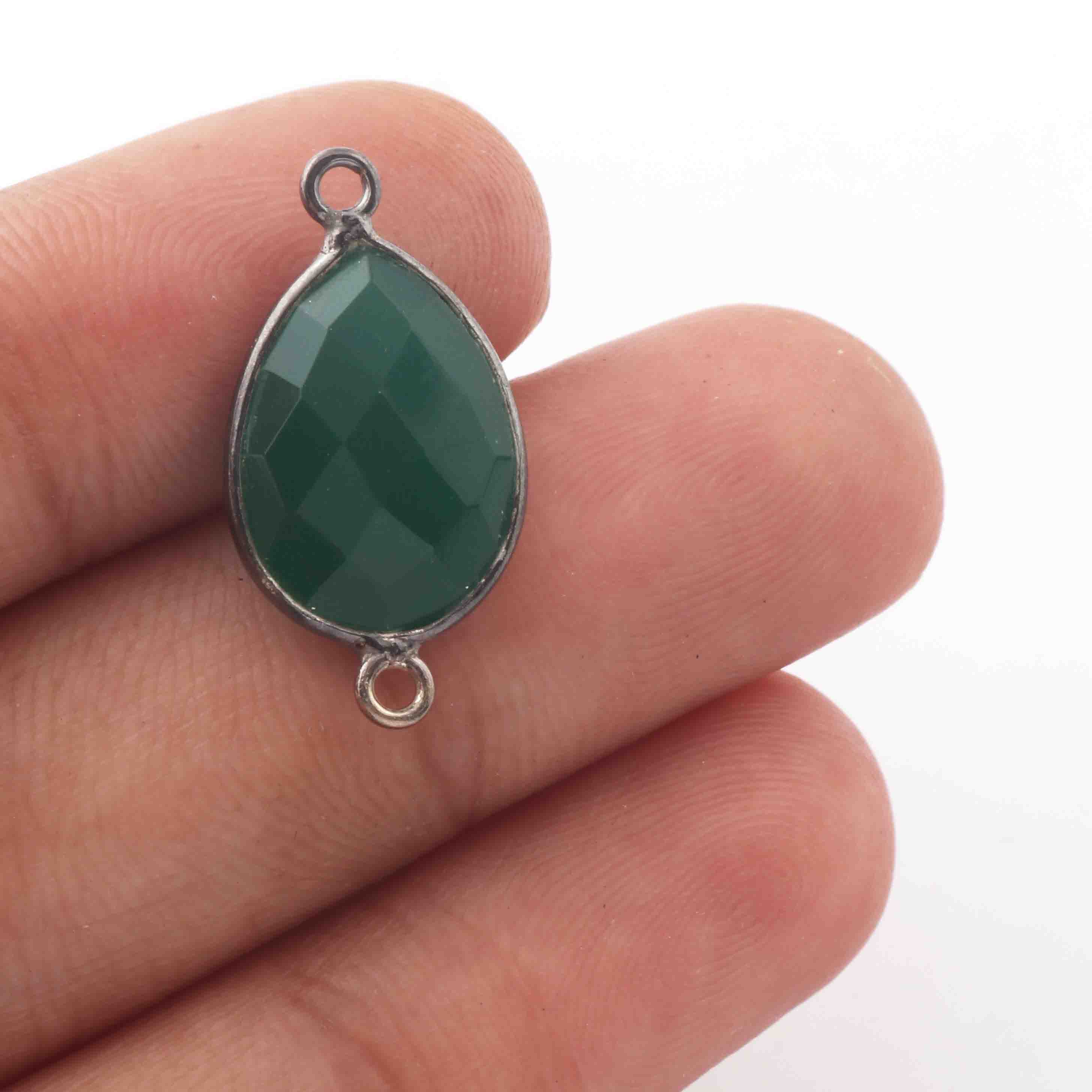 Listing is For - 17 Pcs Green Onyx Oxidized Sterling Silver Gemstone Faceted Pear Shape Double Bail Connector -