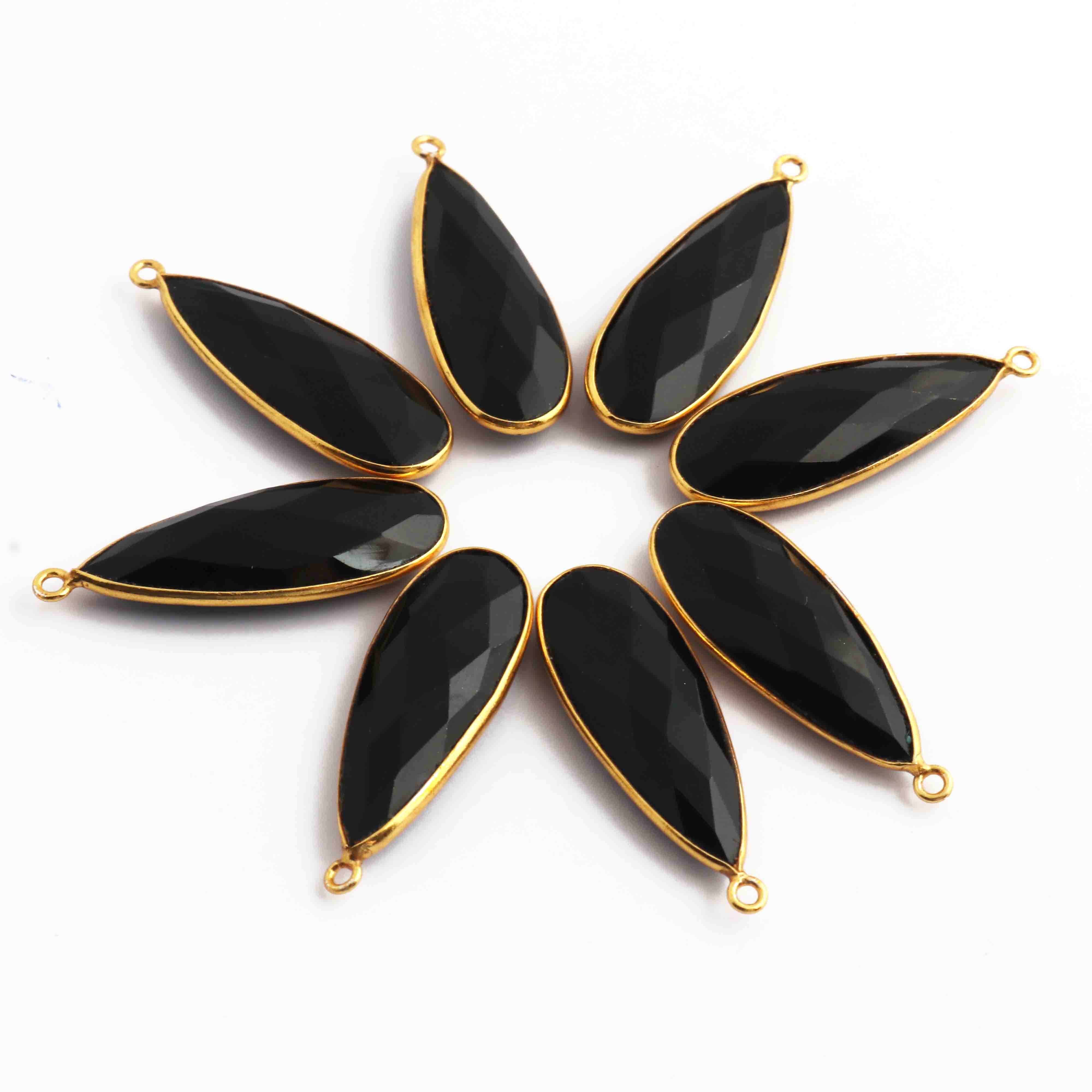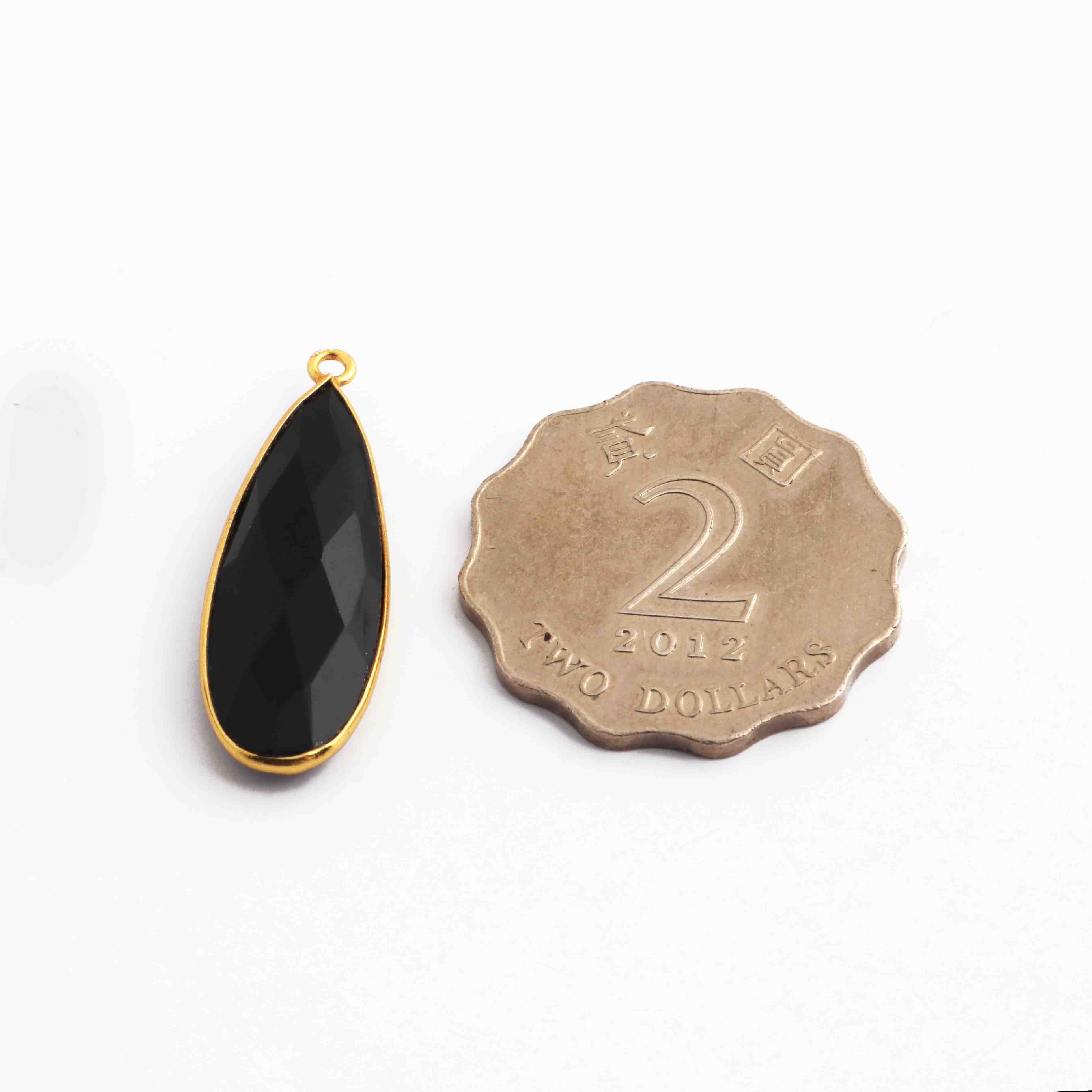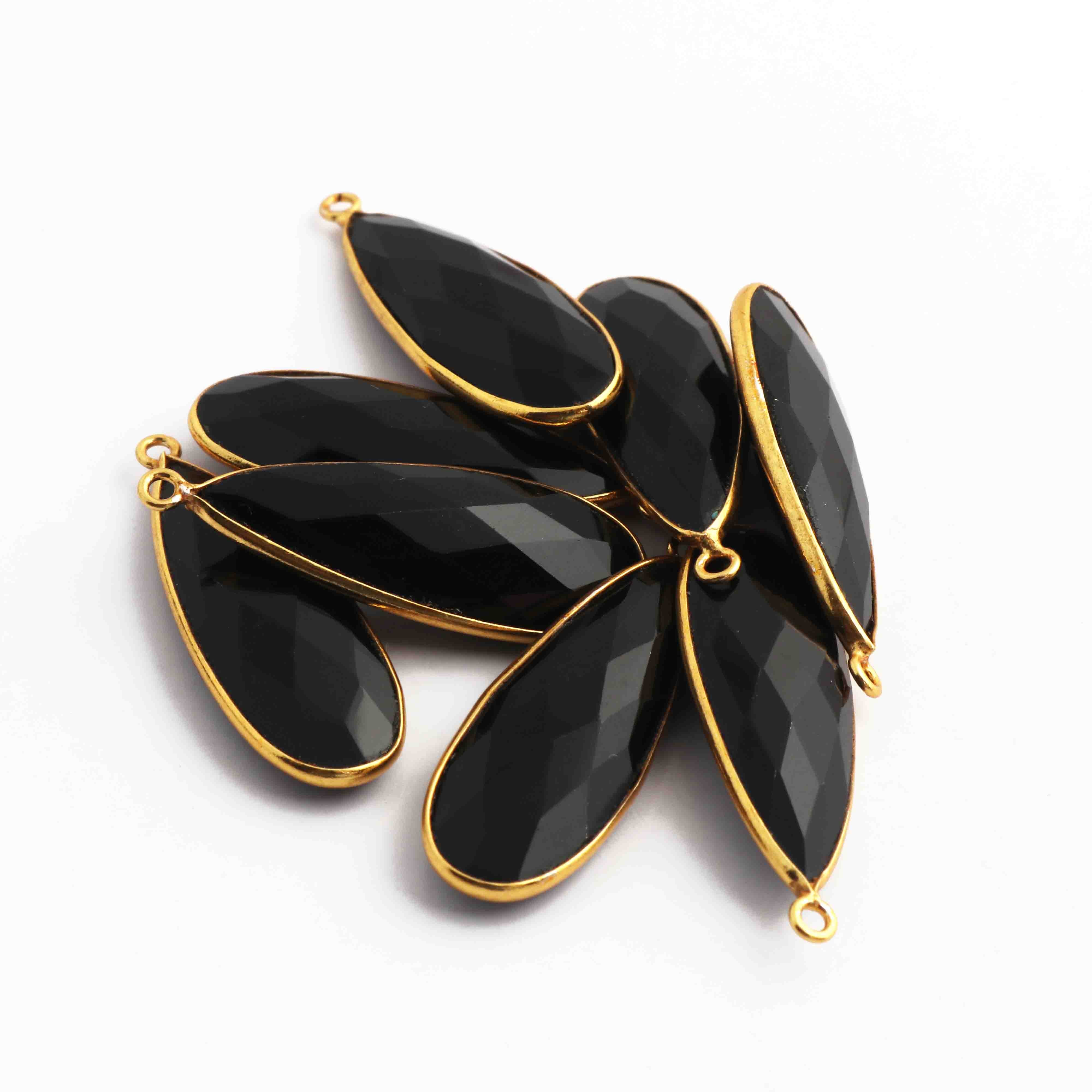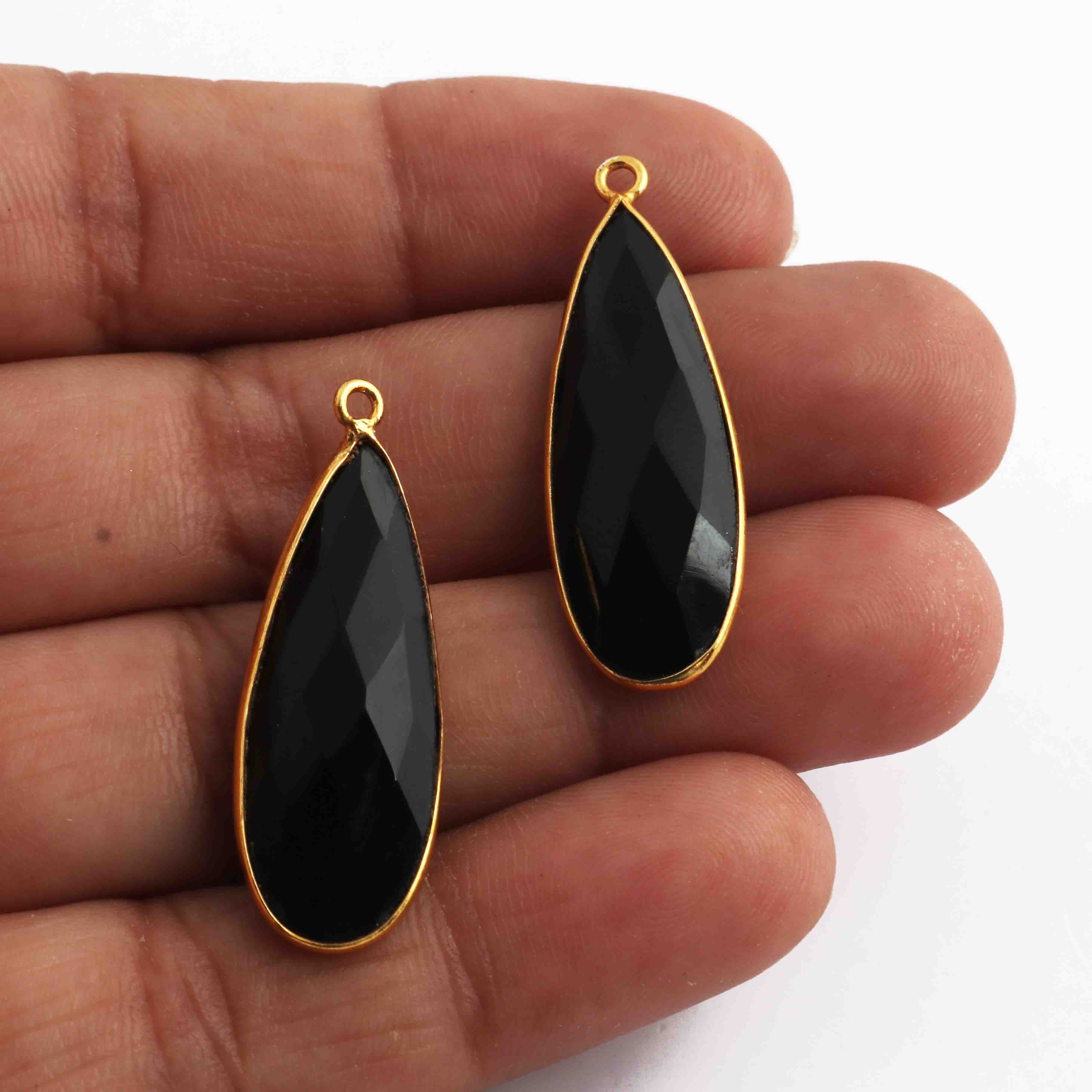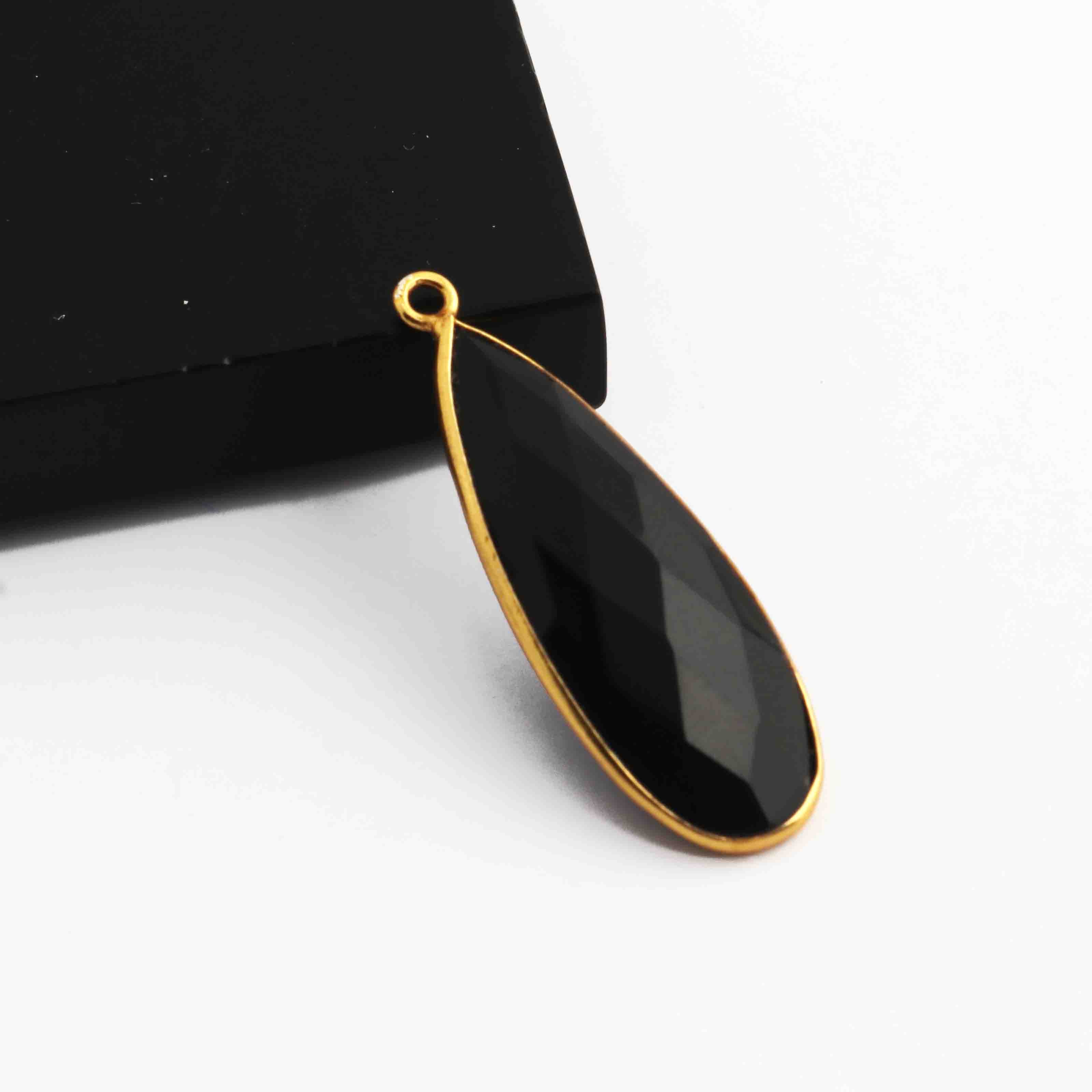 5 Pcs Black Onyx  Faceted 925 Sterling Vermeil Pear Shape Single Bali  Pendant -32mmx11mm SS909