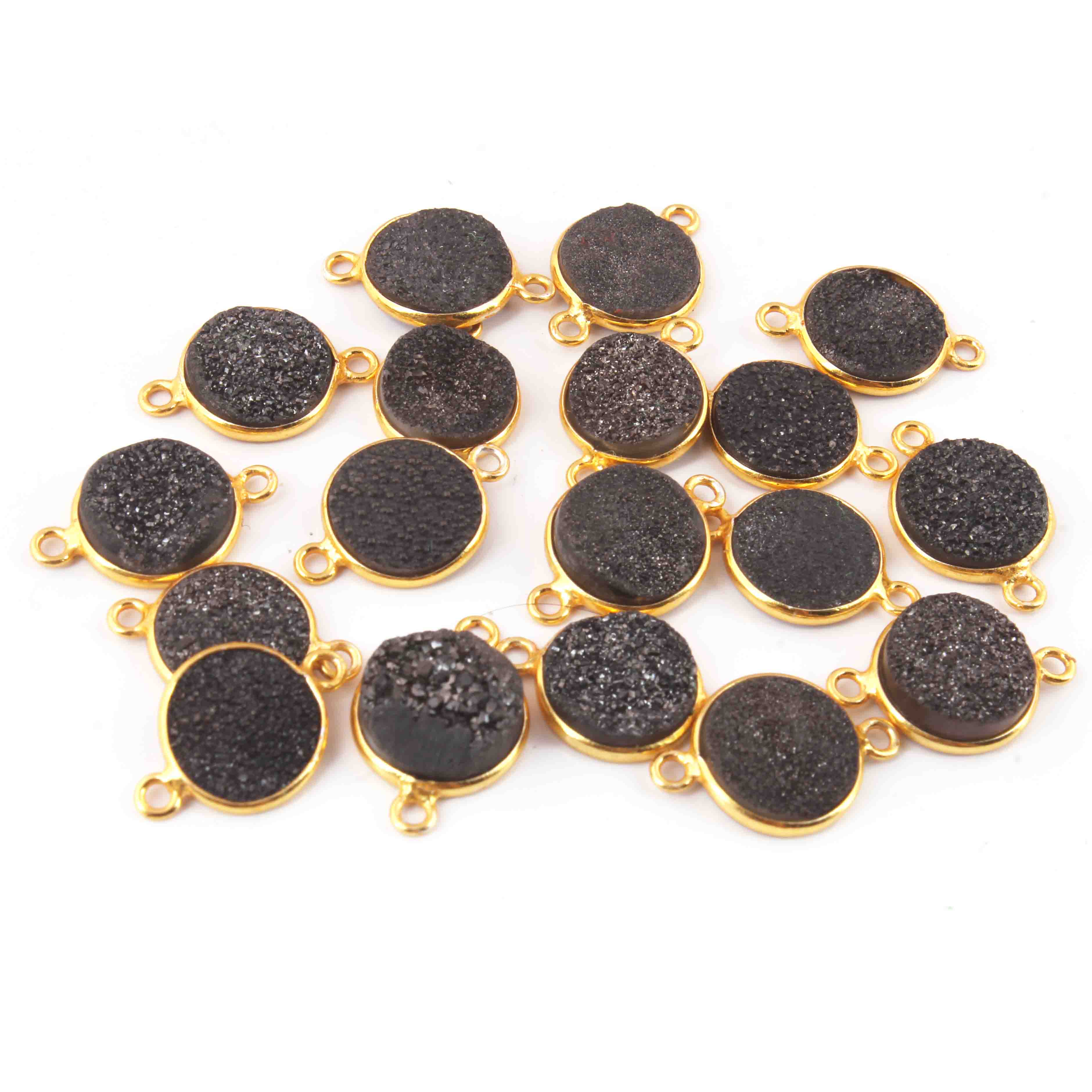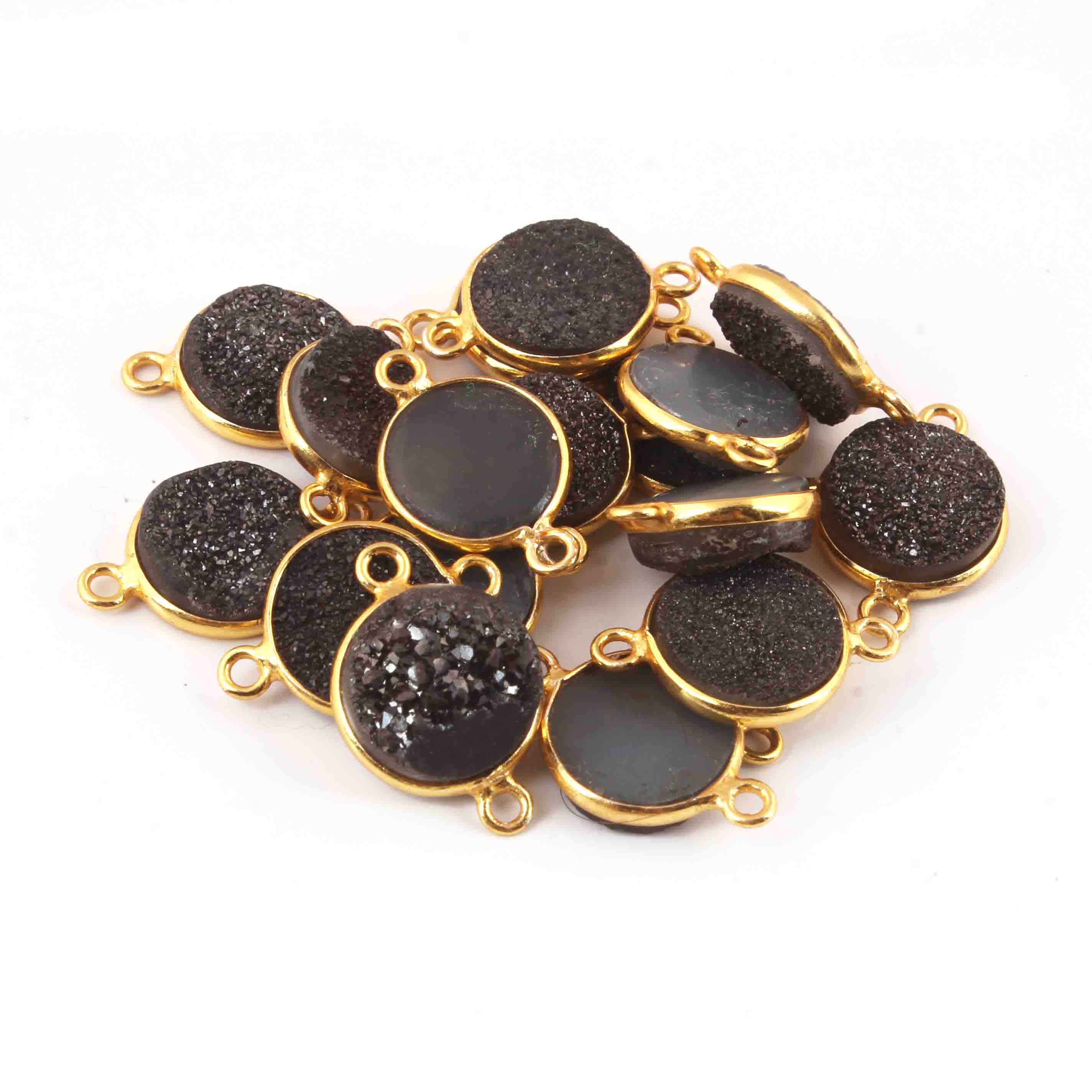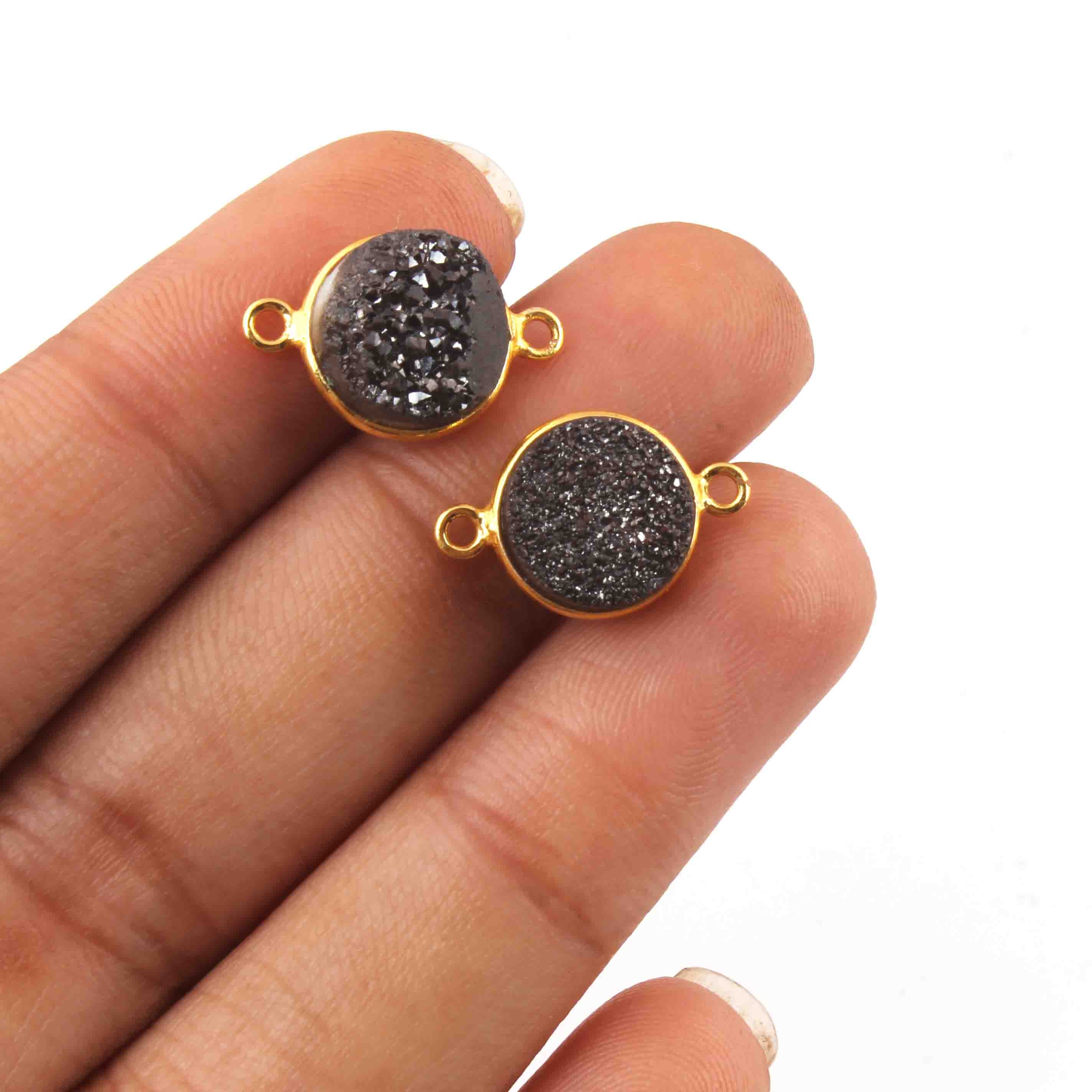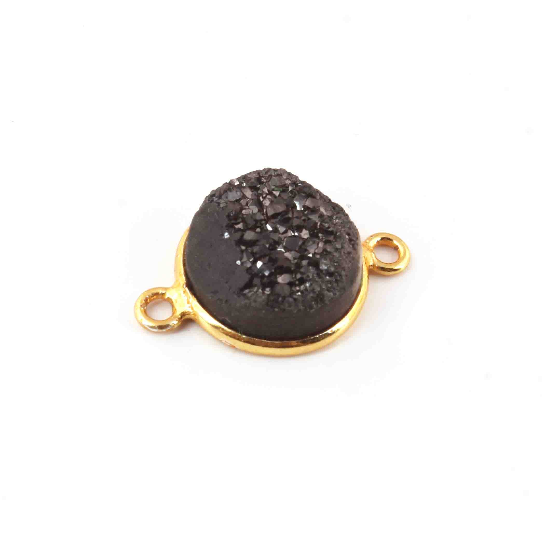 9 Mystic Black Druzy Round 925 Sterling Vermeil Double Bail Connector - 10mmx16mm-11mmx17mm SS668