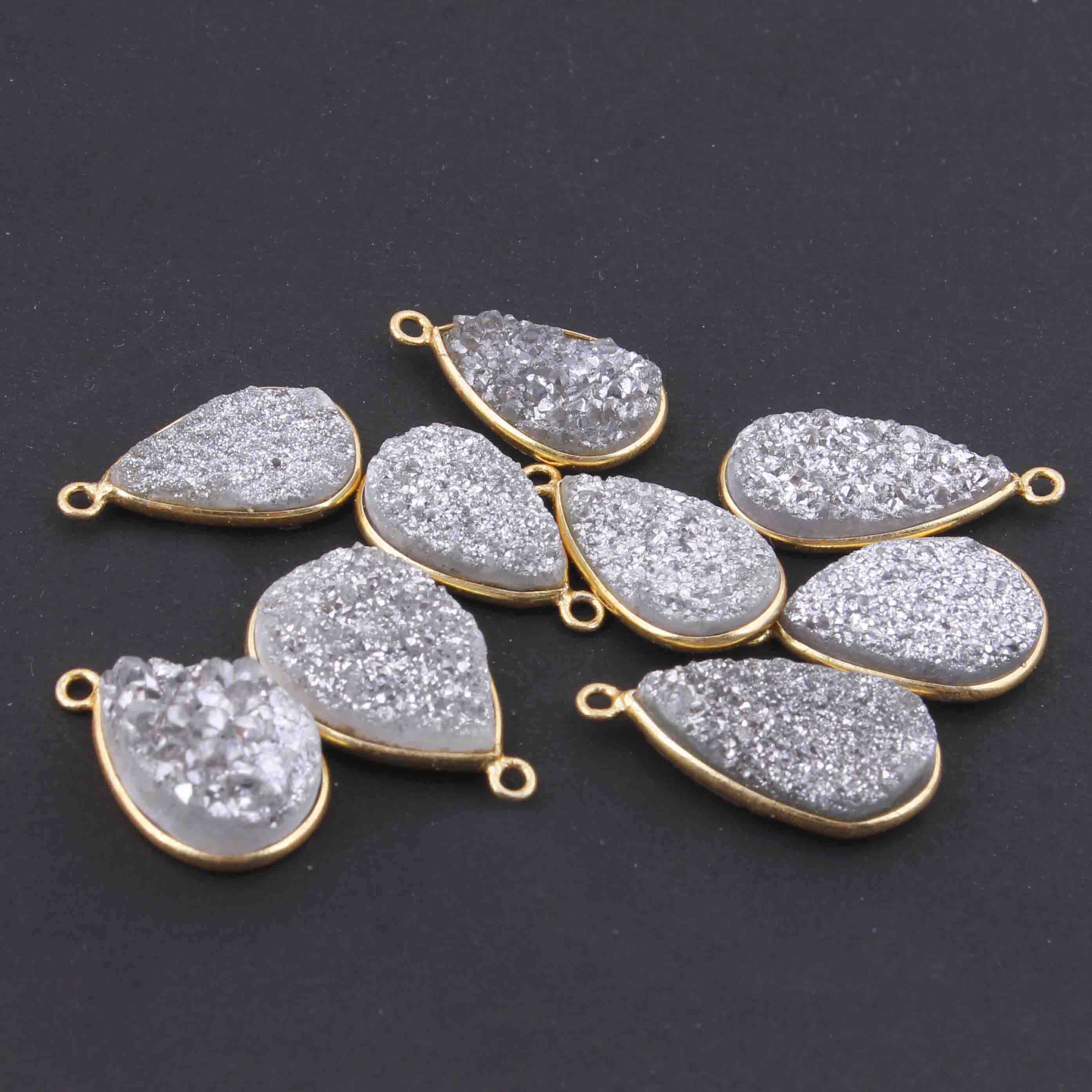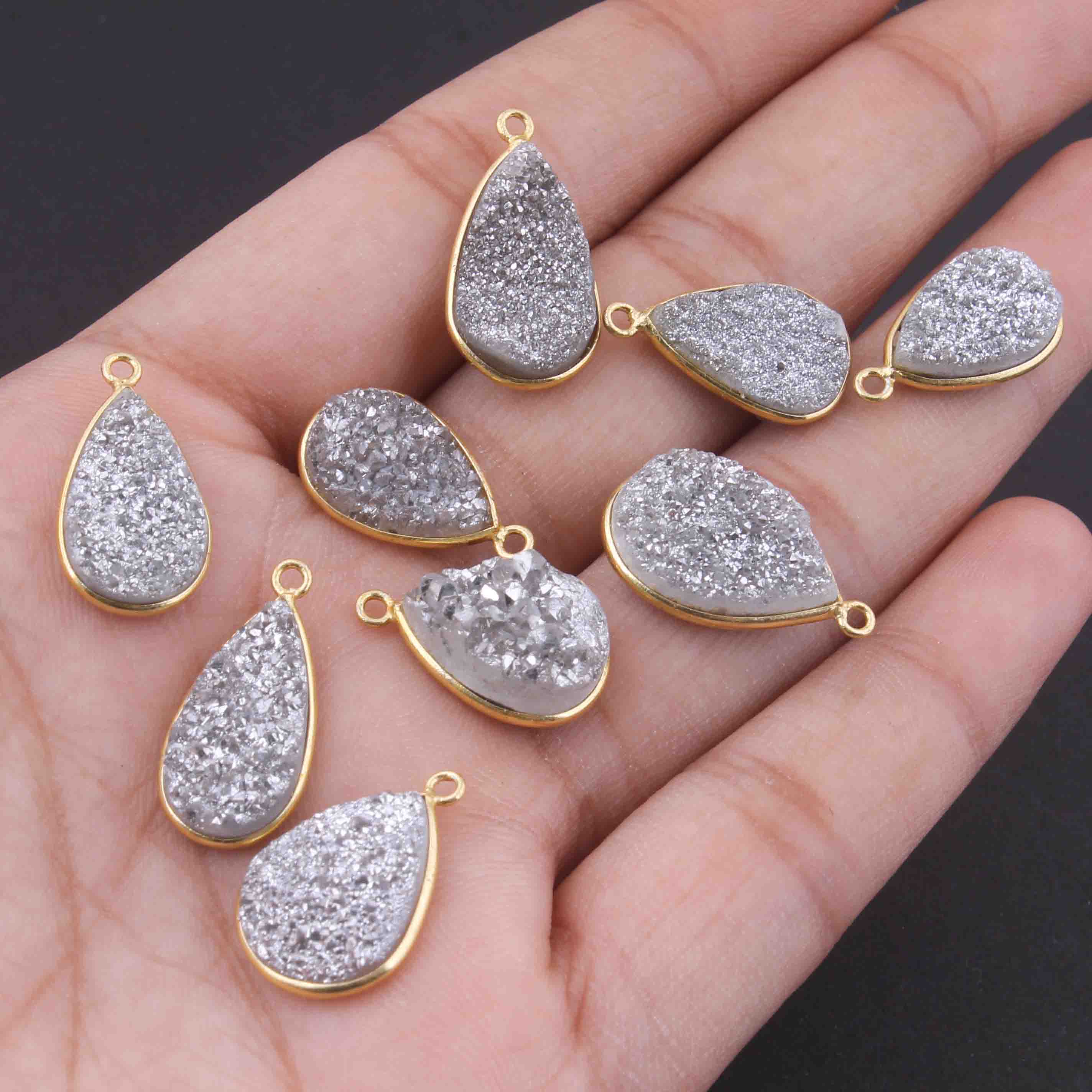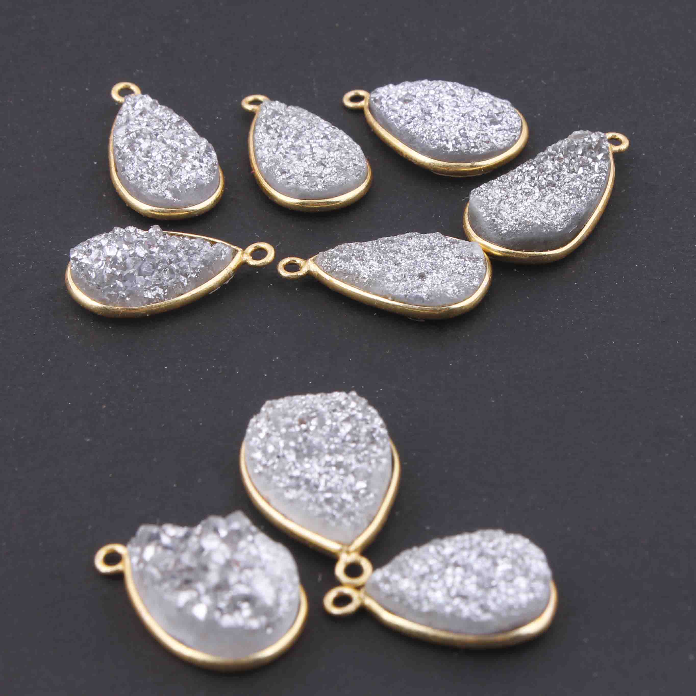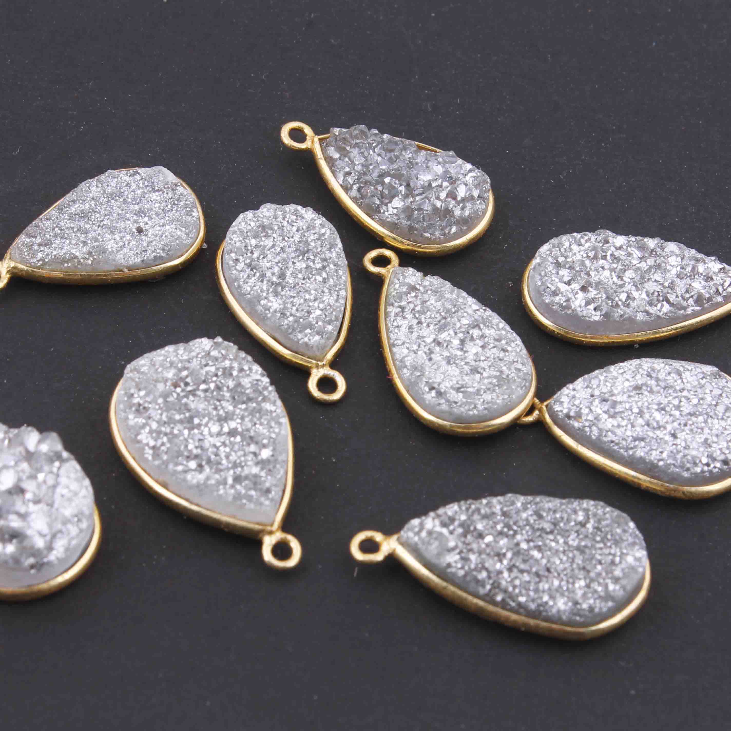 9 Pcs Mystic Titanium Druzy Pear , Gold Plated , Single Bail Pendant Bezel Pear Pendant , 22mmx10mm-18mmx10mm PC1219