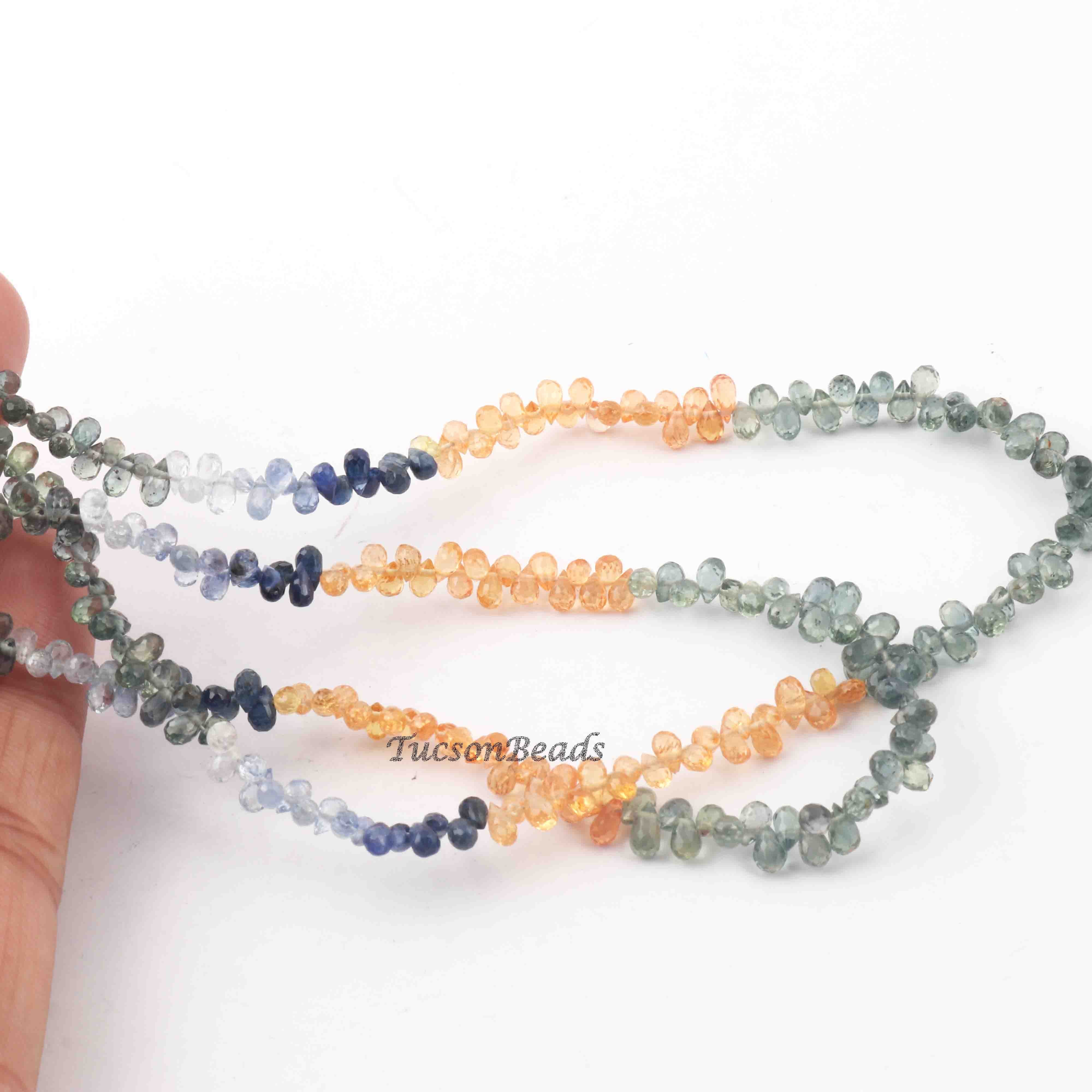 1 Long Strand Beautiful Multi Sapphire Faceted Tear Drop Shape Briolettes -Precious GemStone Tear Drop Shape Briolettes 1mm-3mm -16 Inches BR3033
