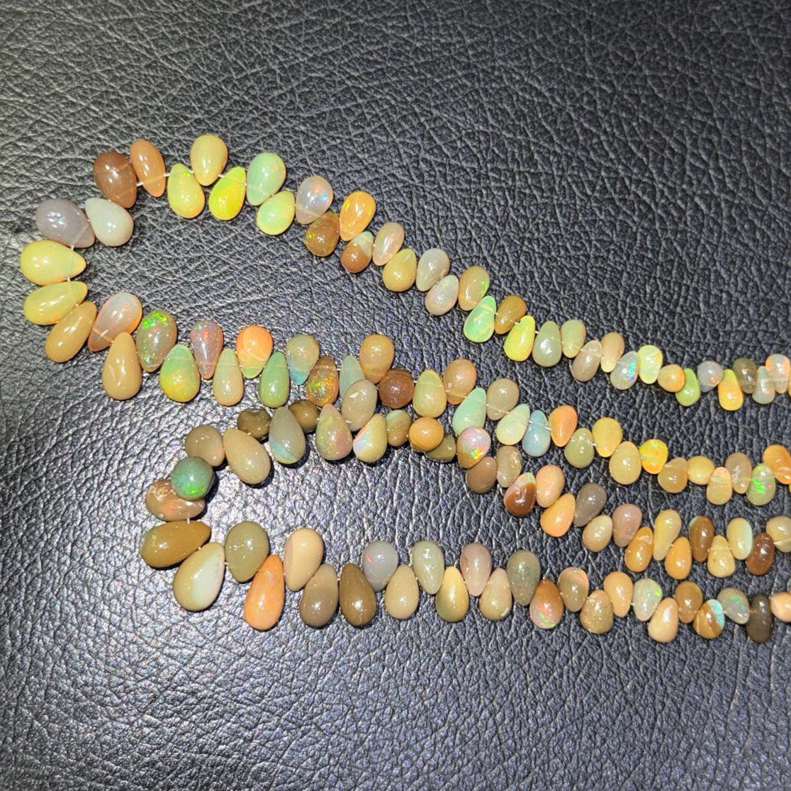 1 Strand 100% Natural Top Quality Ethiopian Welo Opal Smooth Tear Drop Briolettes- 4mm-10mm--13 Inches BR02208