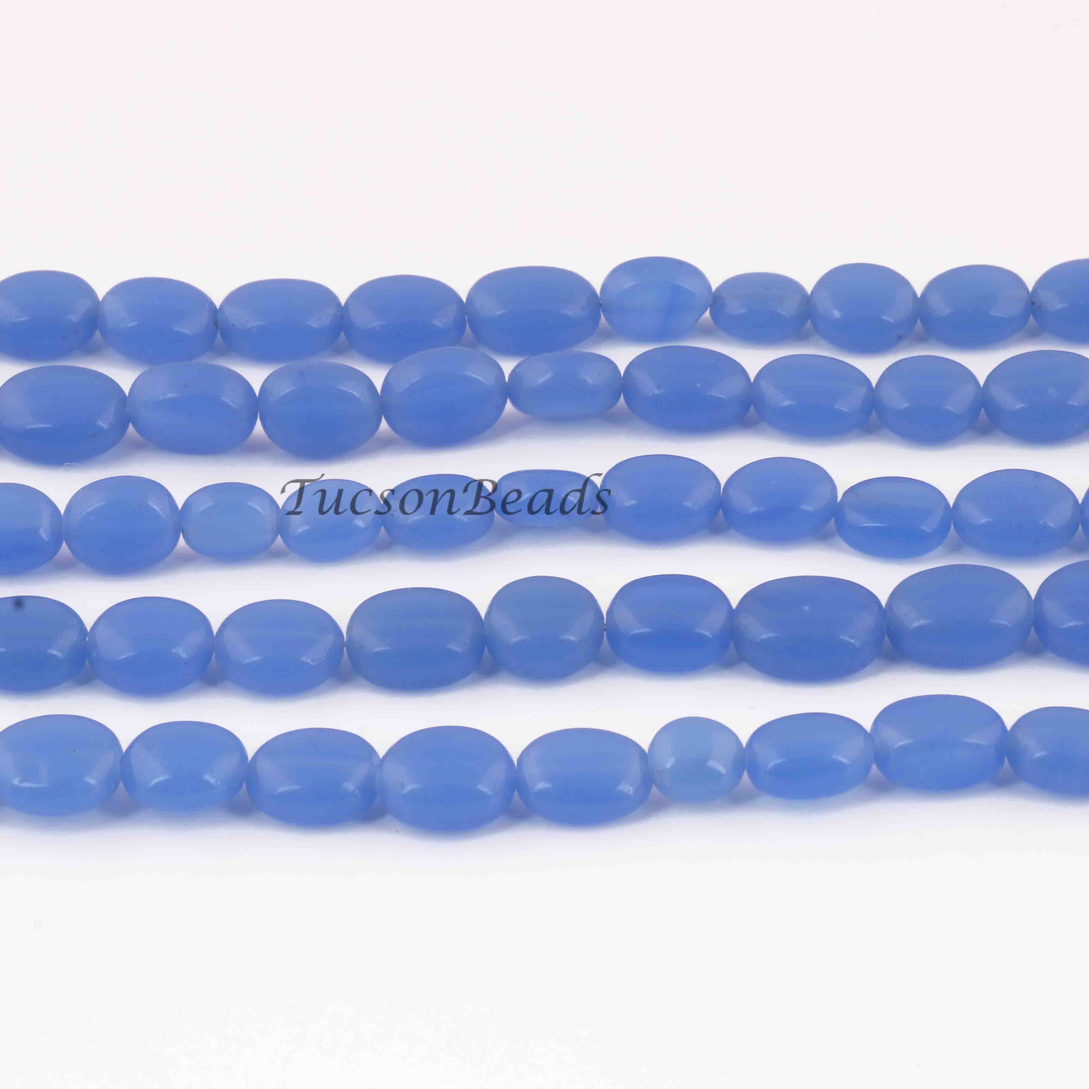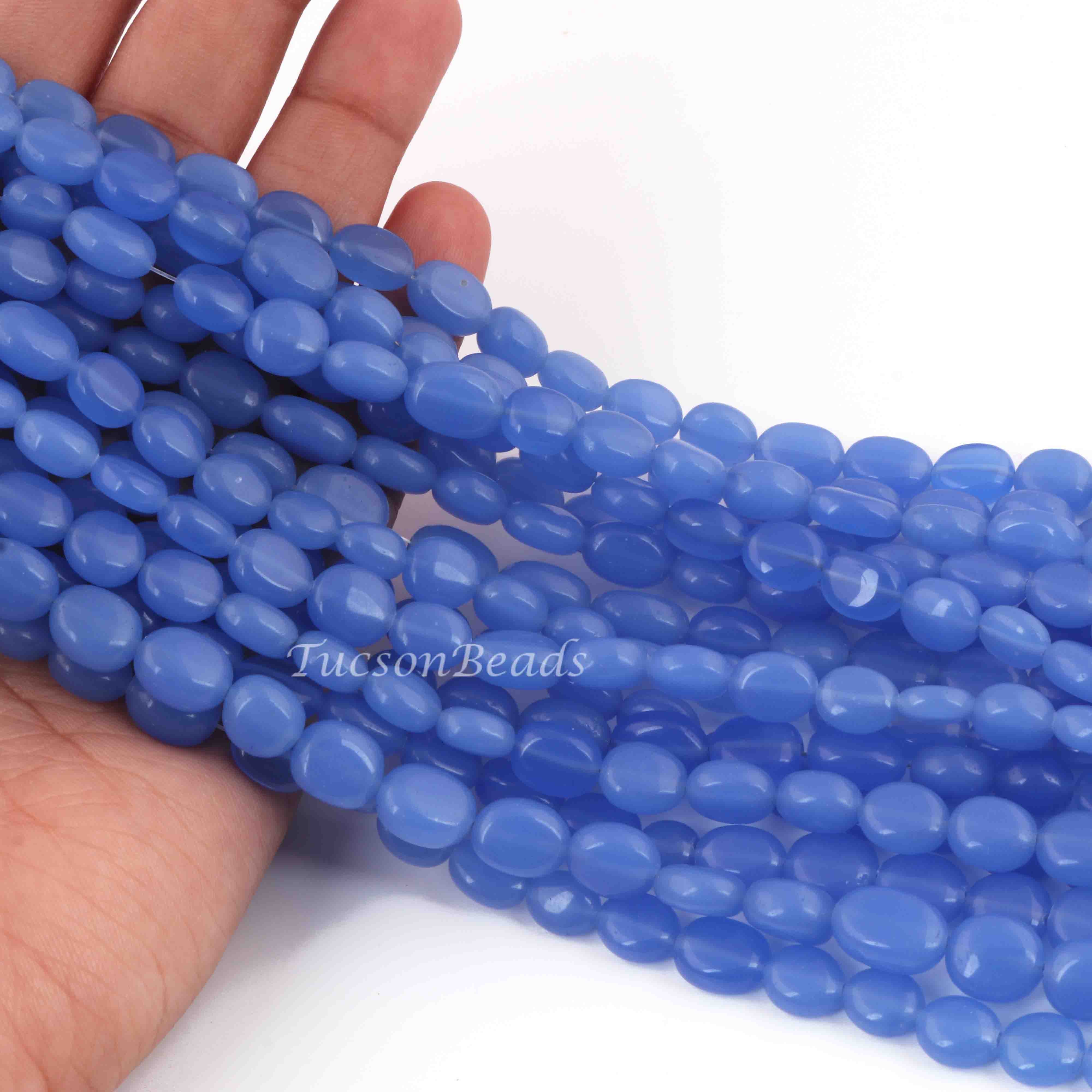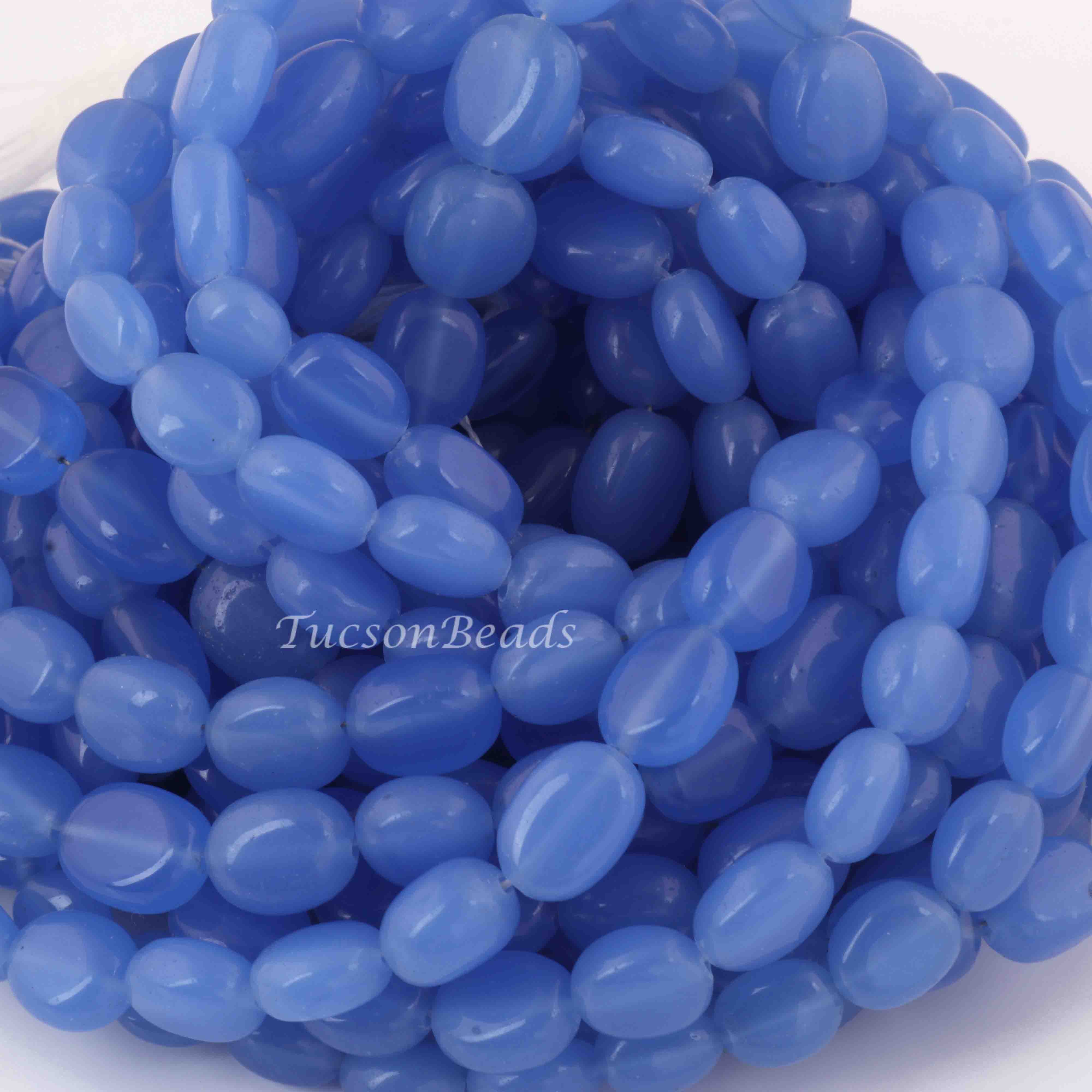 1 Long Strand Blue Chalcedony Smooth Briolettes -Oval Shape Briolettes - 7mmx7mm-12mmx10mm - 12 Inches BR0533
