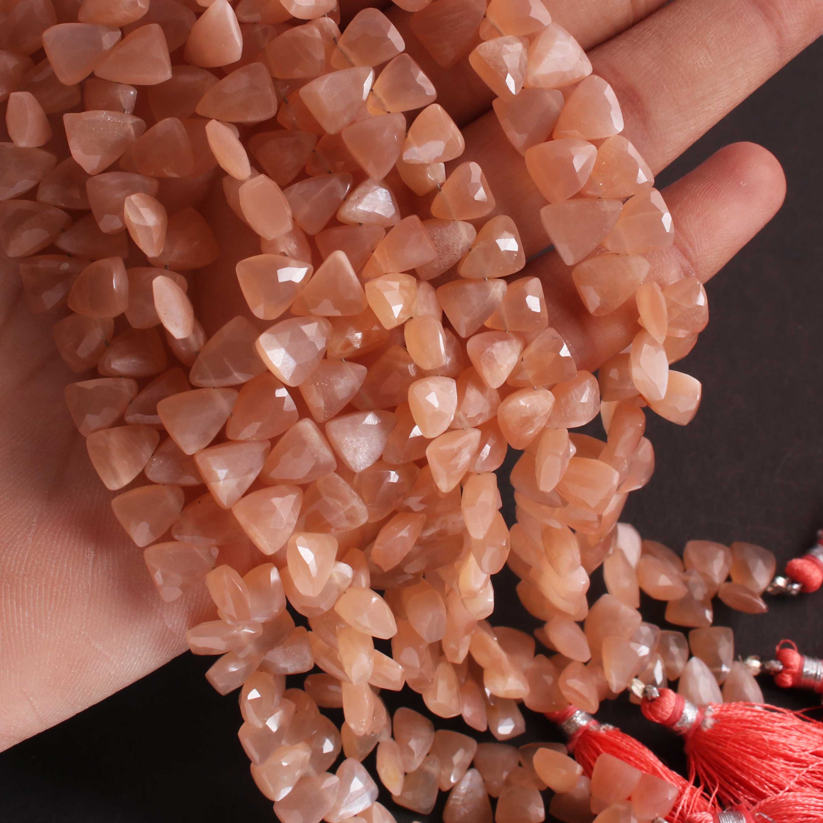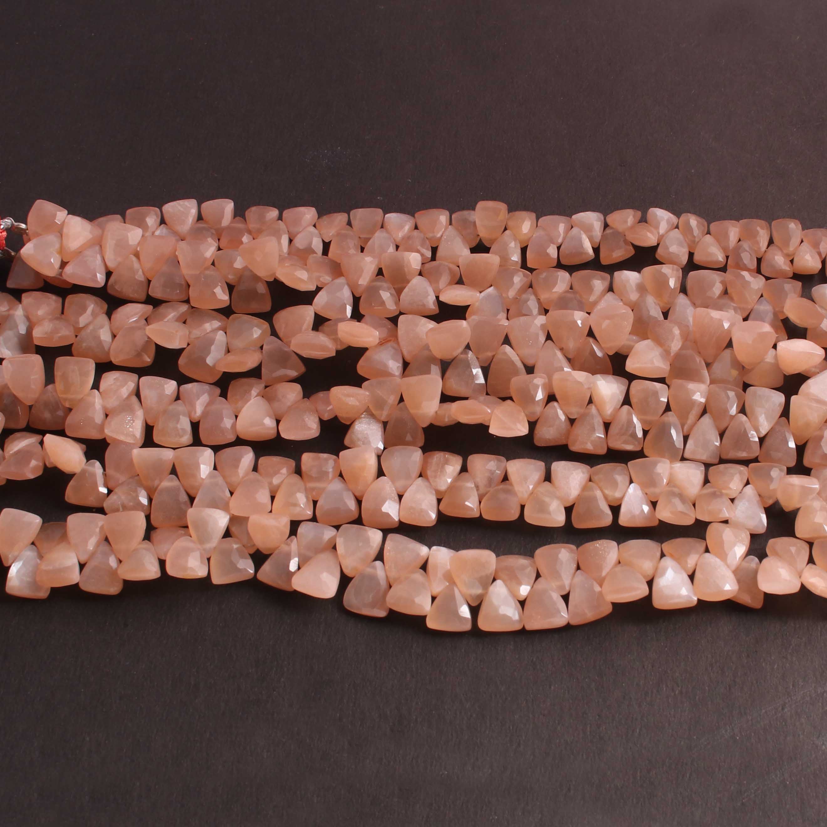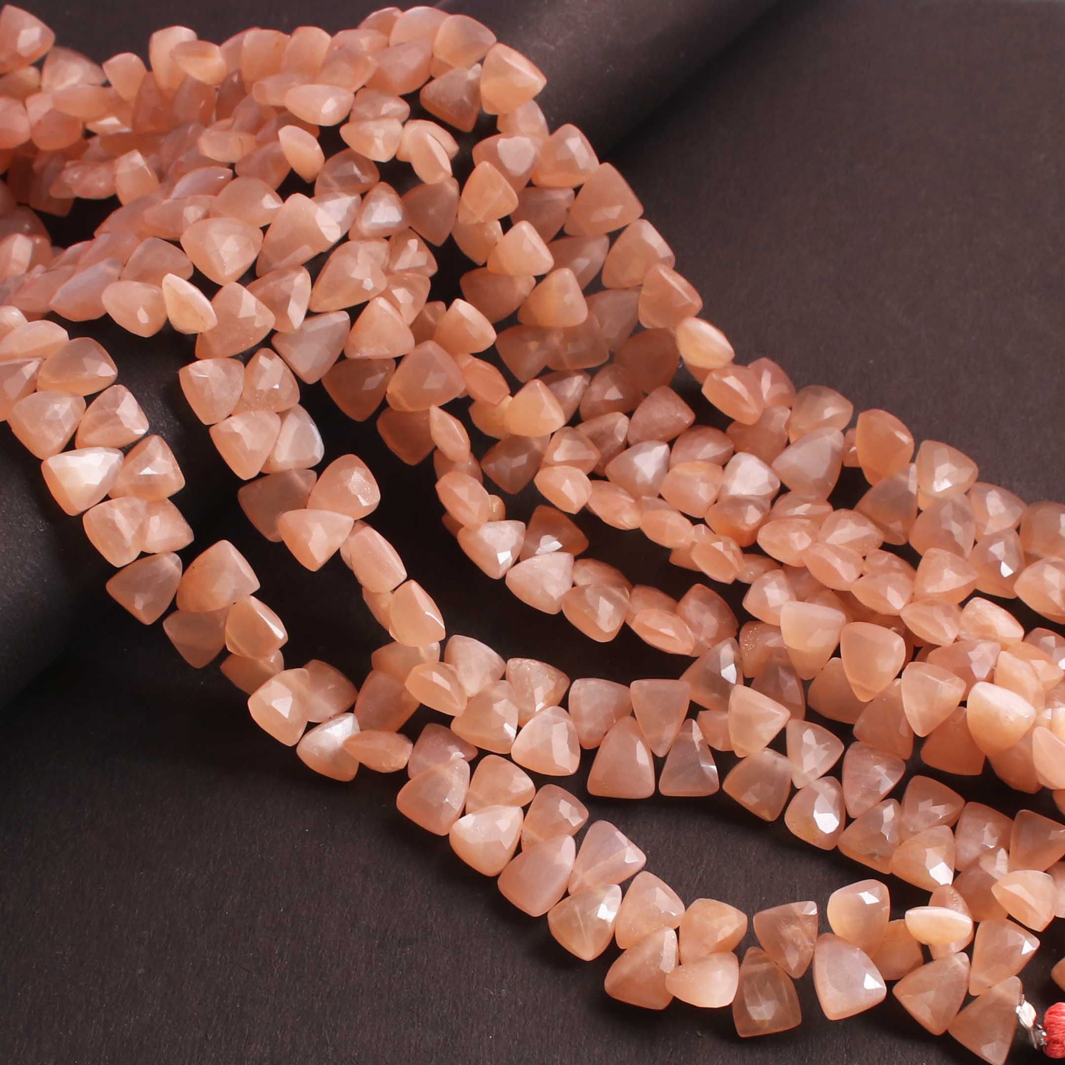 1  Long Strand Peach Moonstone Faceted Briolettes Trillion Shape Briolettes  8mmx6mm-8  Inches BR02448