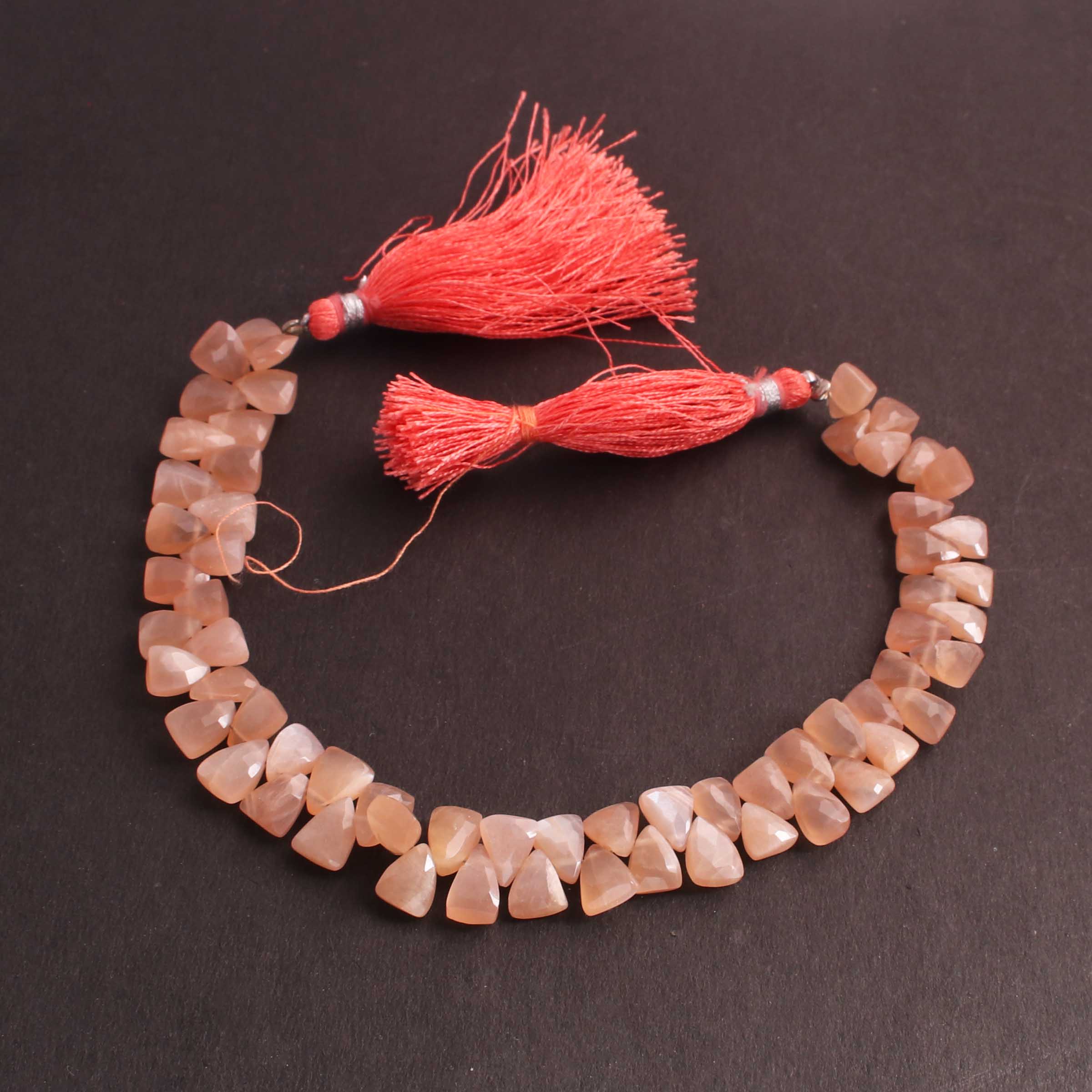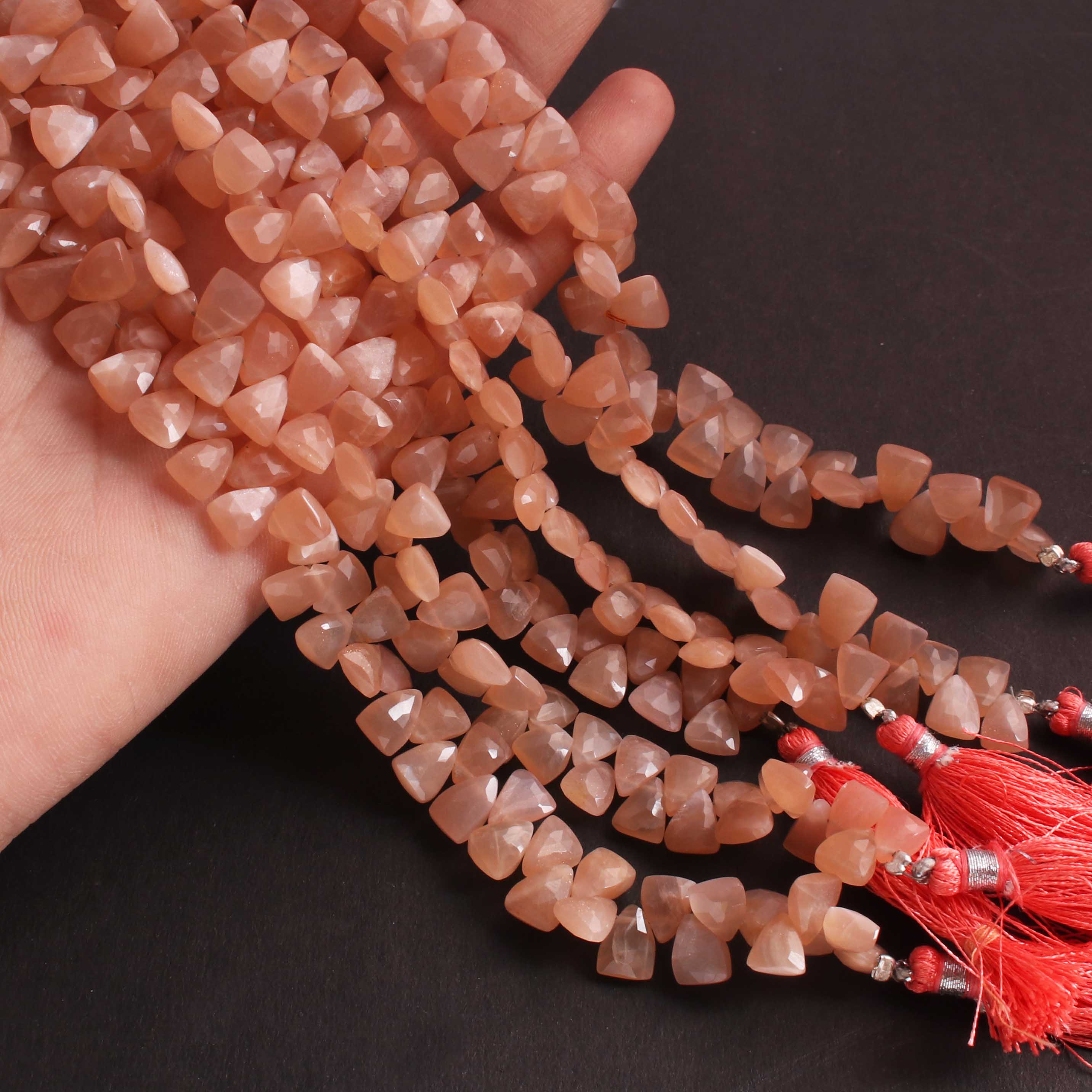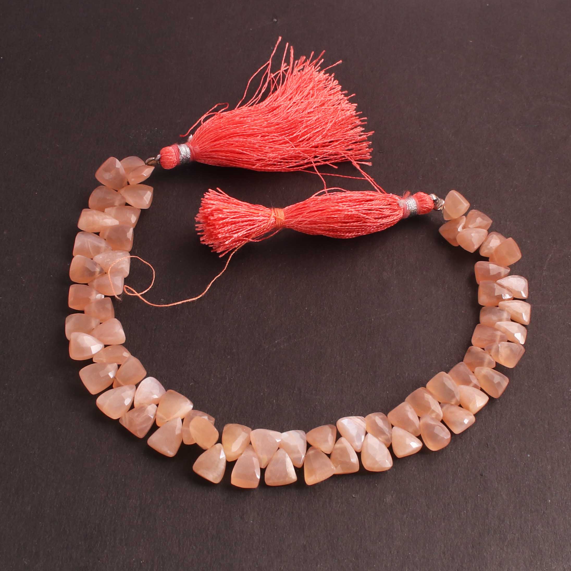 1  Long Strand Peach Moonstone Faceted Briolettes Trillion Shape Briolettes  8mmx6mm-8  Inches BR02448