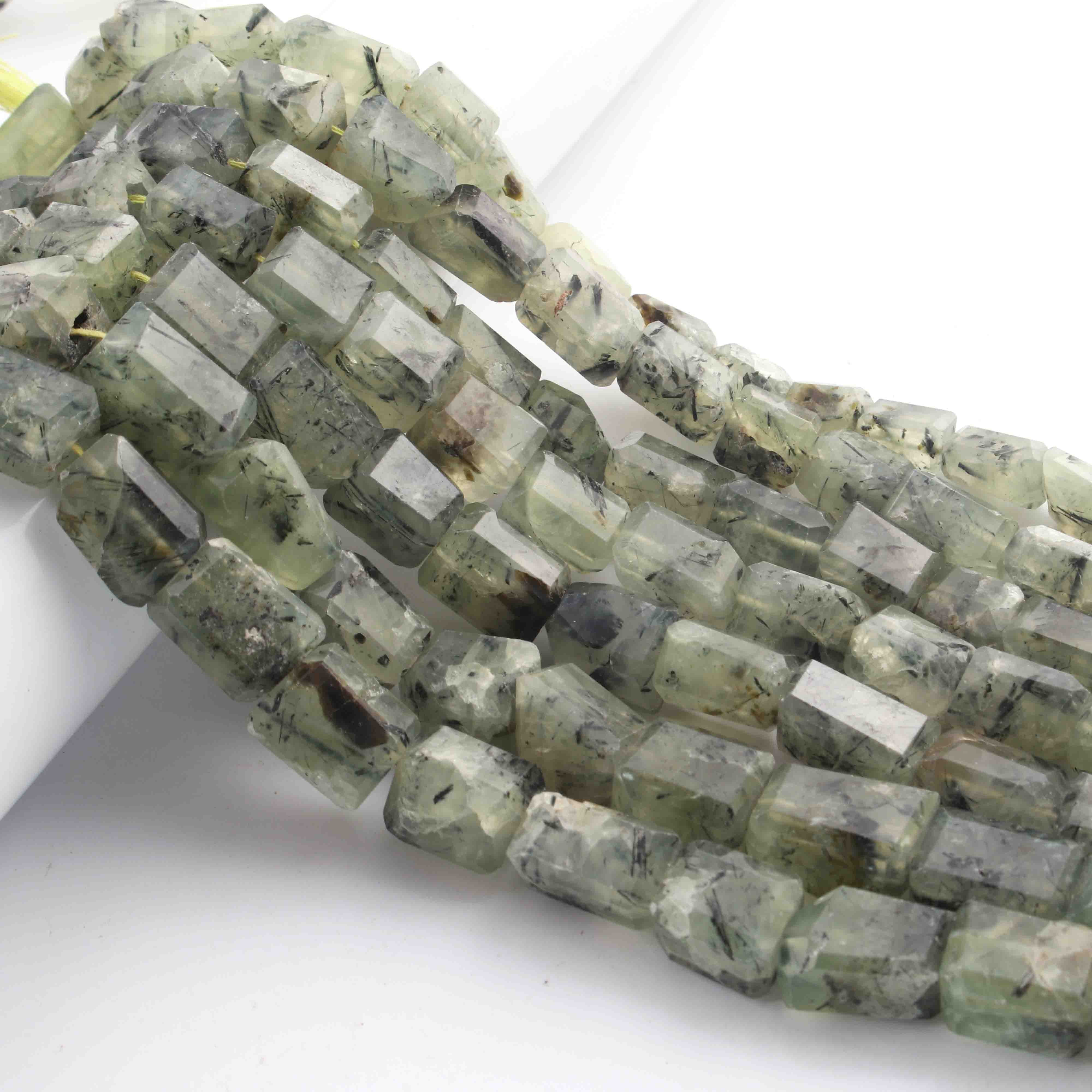 1 Long Strand Prehnite Faceted Tumbled Shape, Nuggets Beads , Step Cut , Briolettes - 12mmx9mm-16mmx10mm- 10 inches BR01510