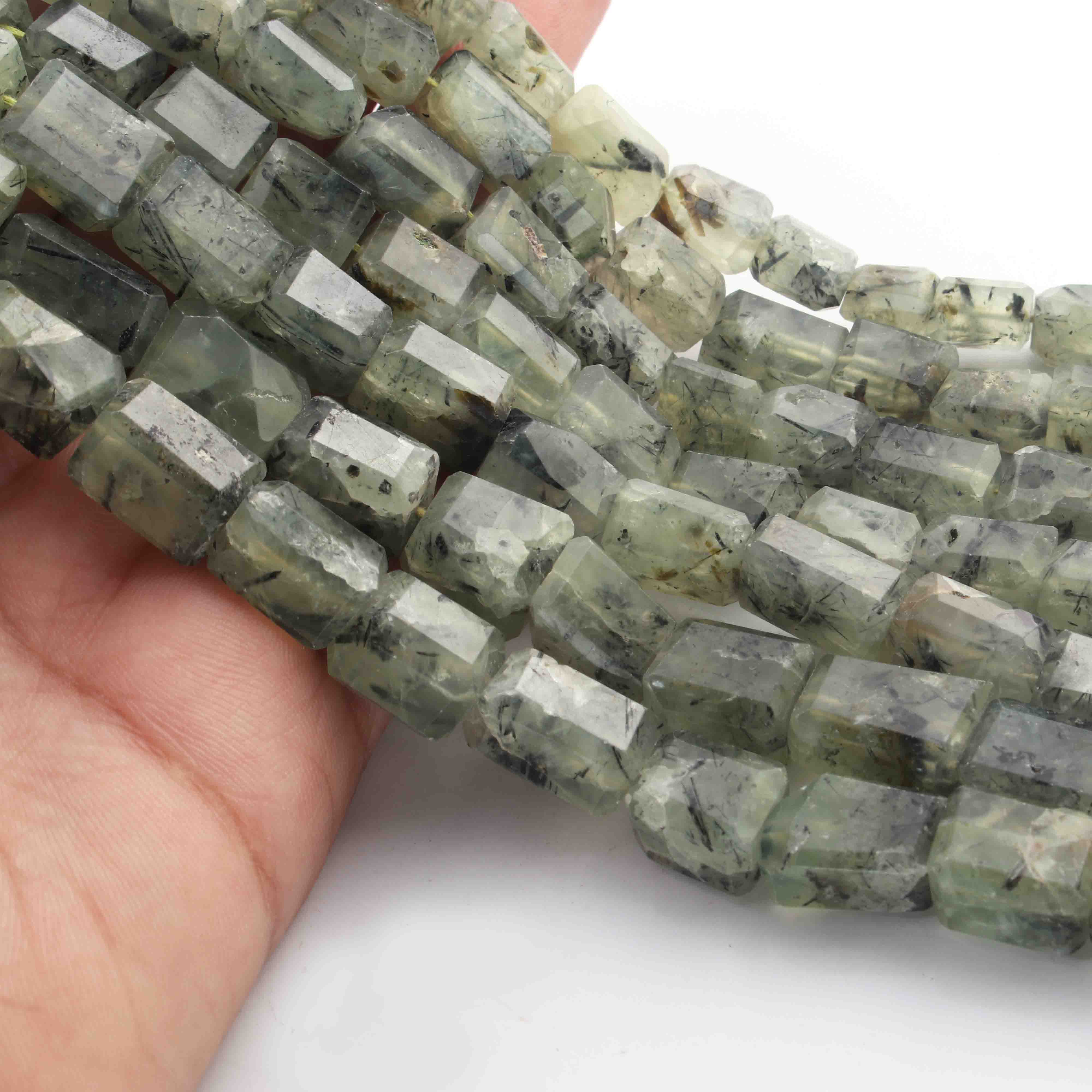 1 Long Strand Prehnite  Faceted Tumbled Shape, Nuggets Beads , Step Cut , Briolettes - 12mmx9mm-16mmx10mm- 10 inches BR01510
