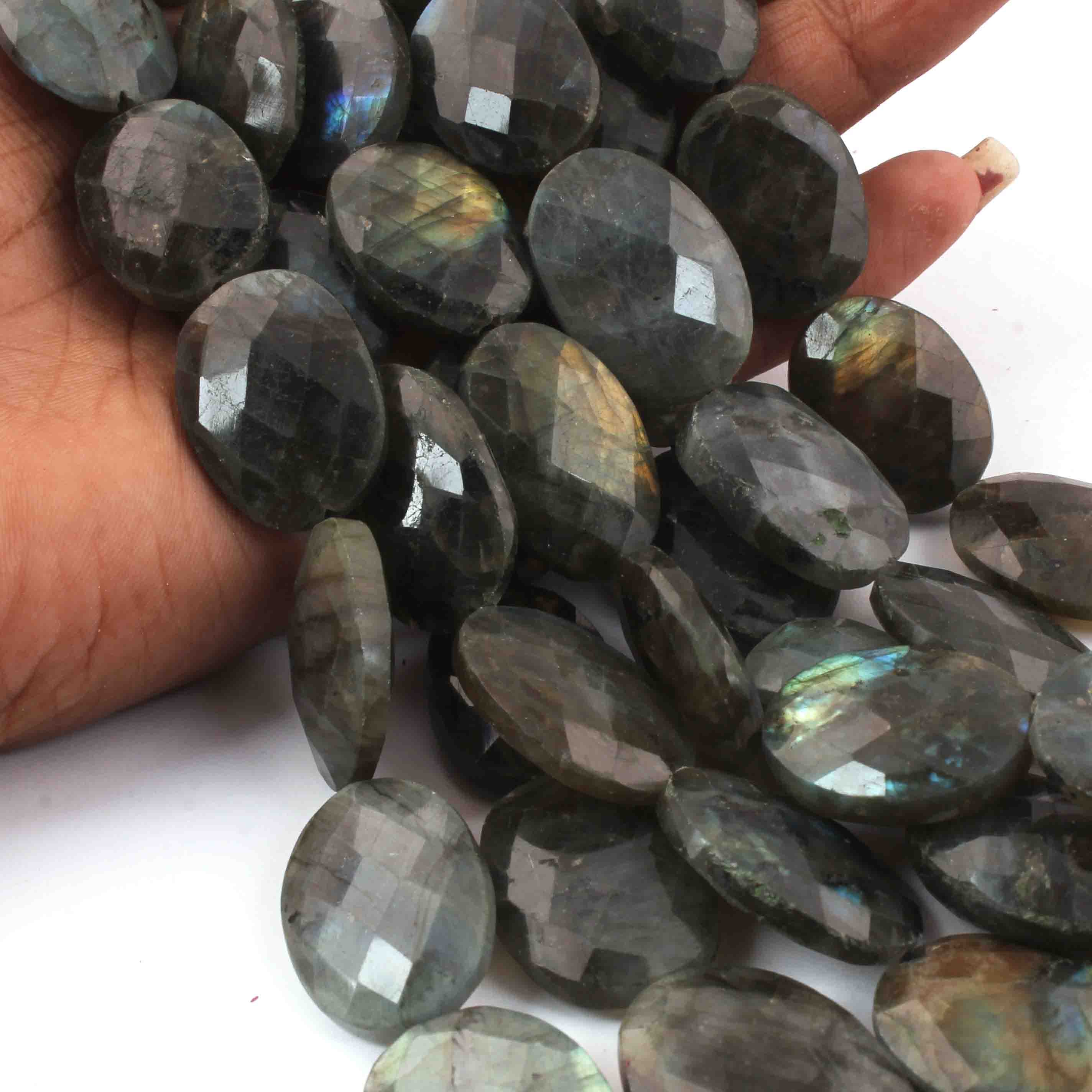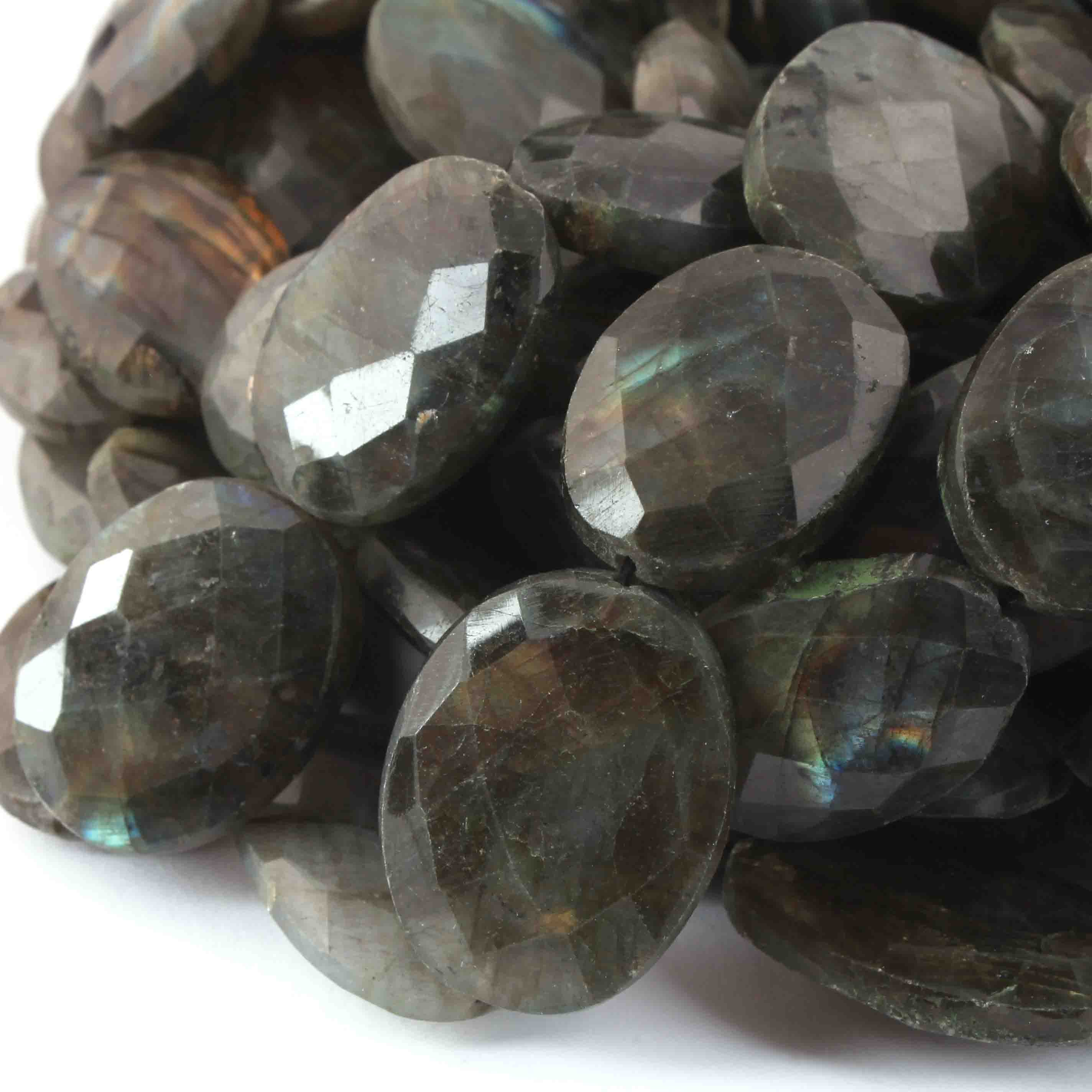 1 Strand Labradorite Faceted Briolettes -Oval Shape Briolettes 20mmx27mm - 20mmx28mm 10 Inches BR0588
