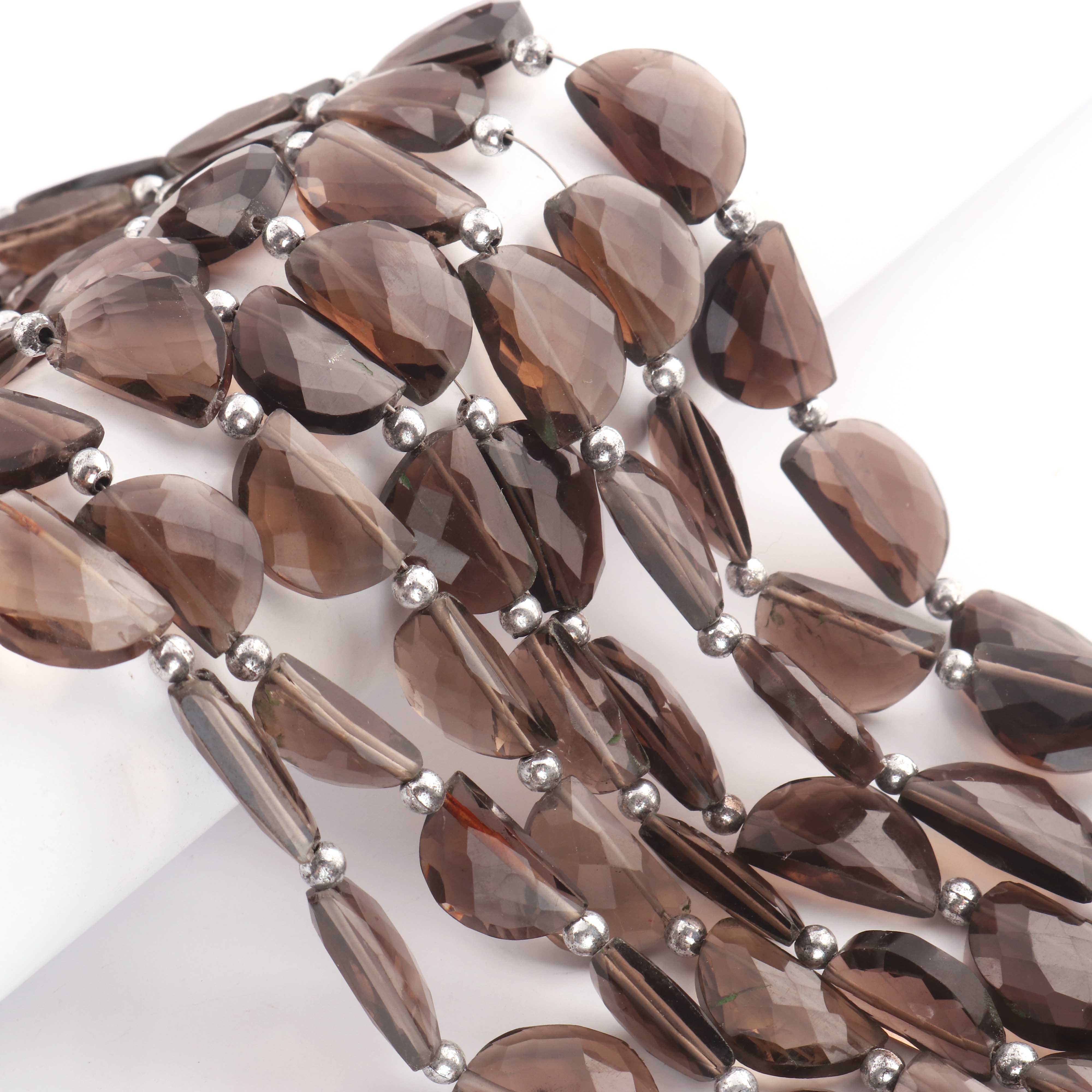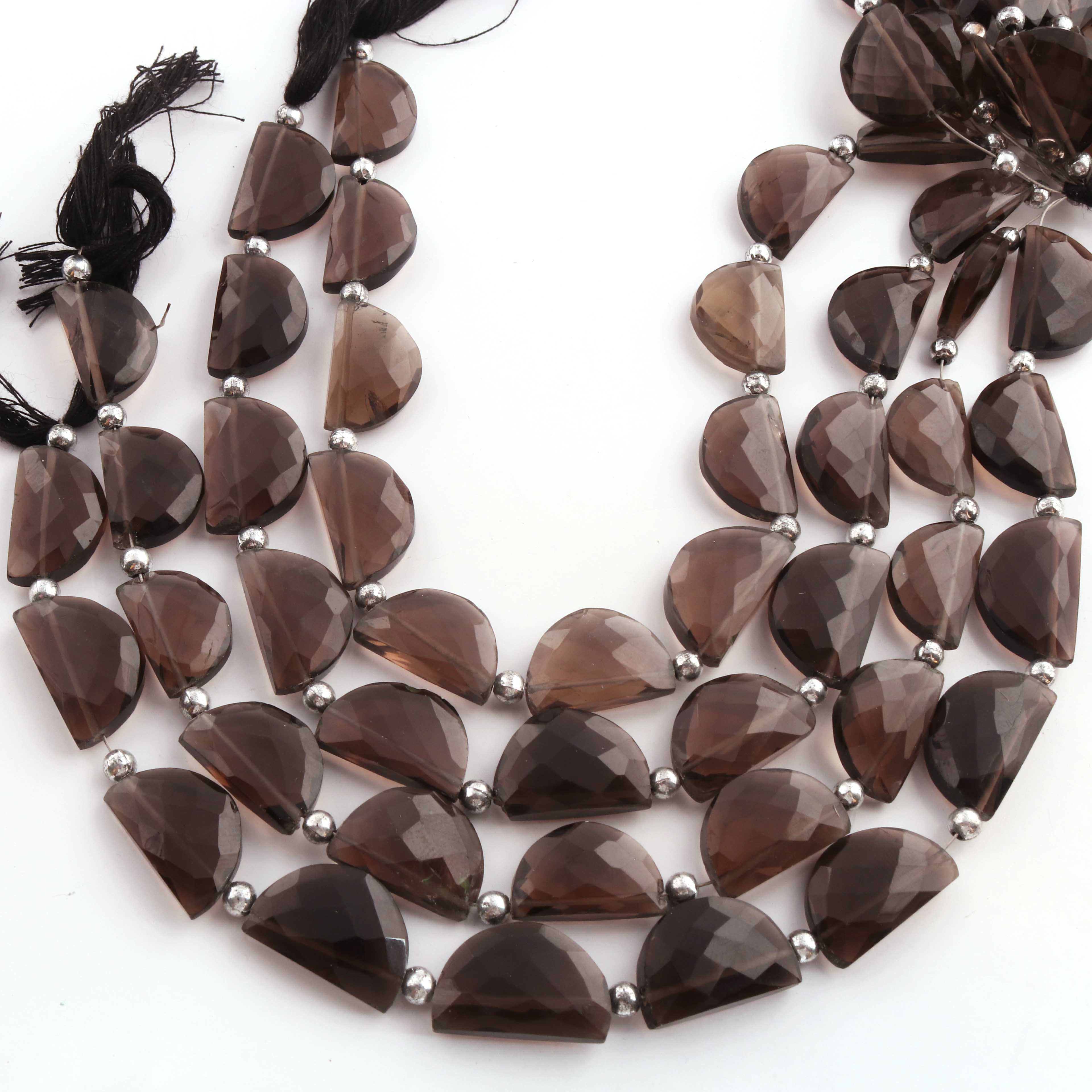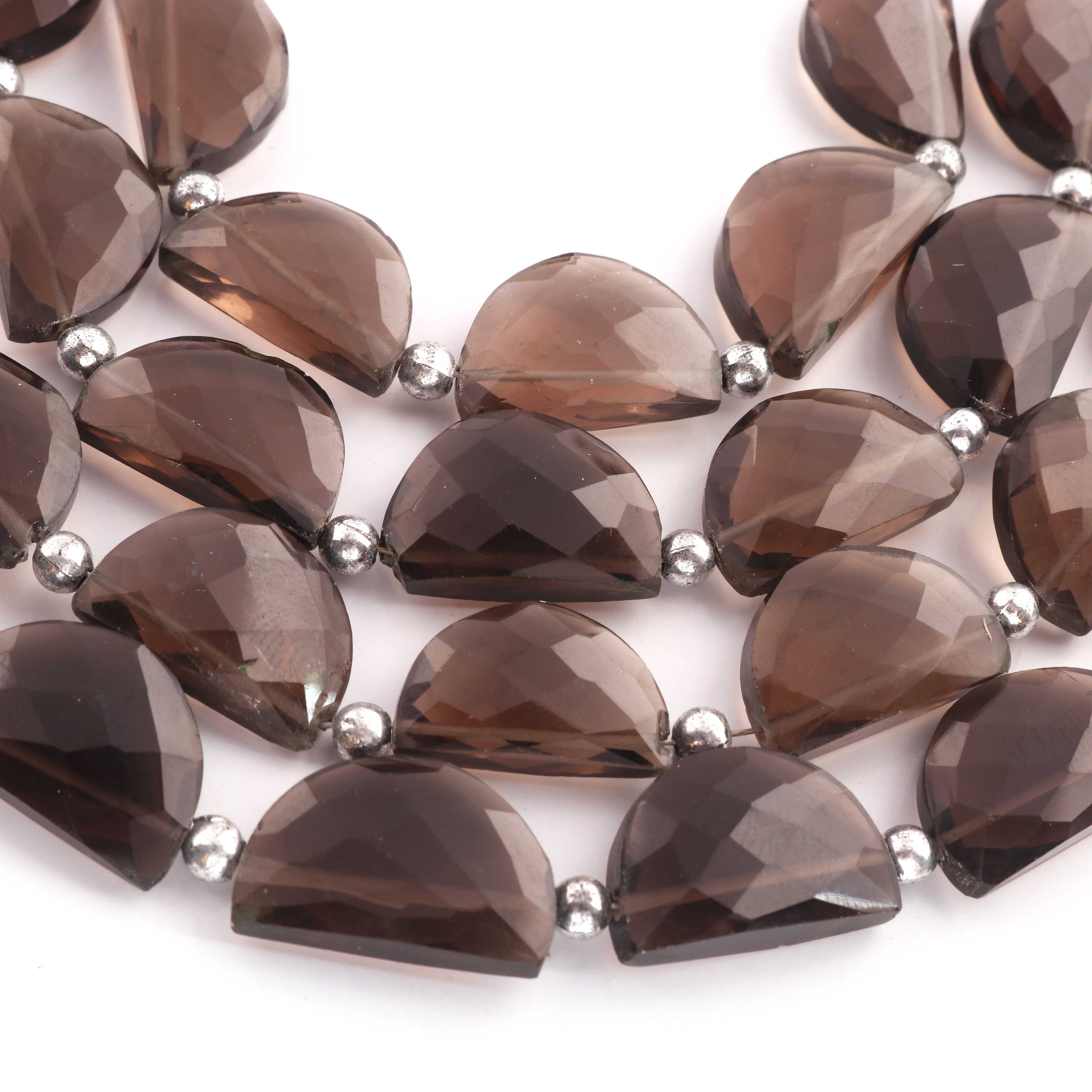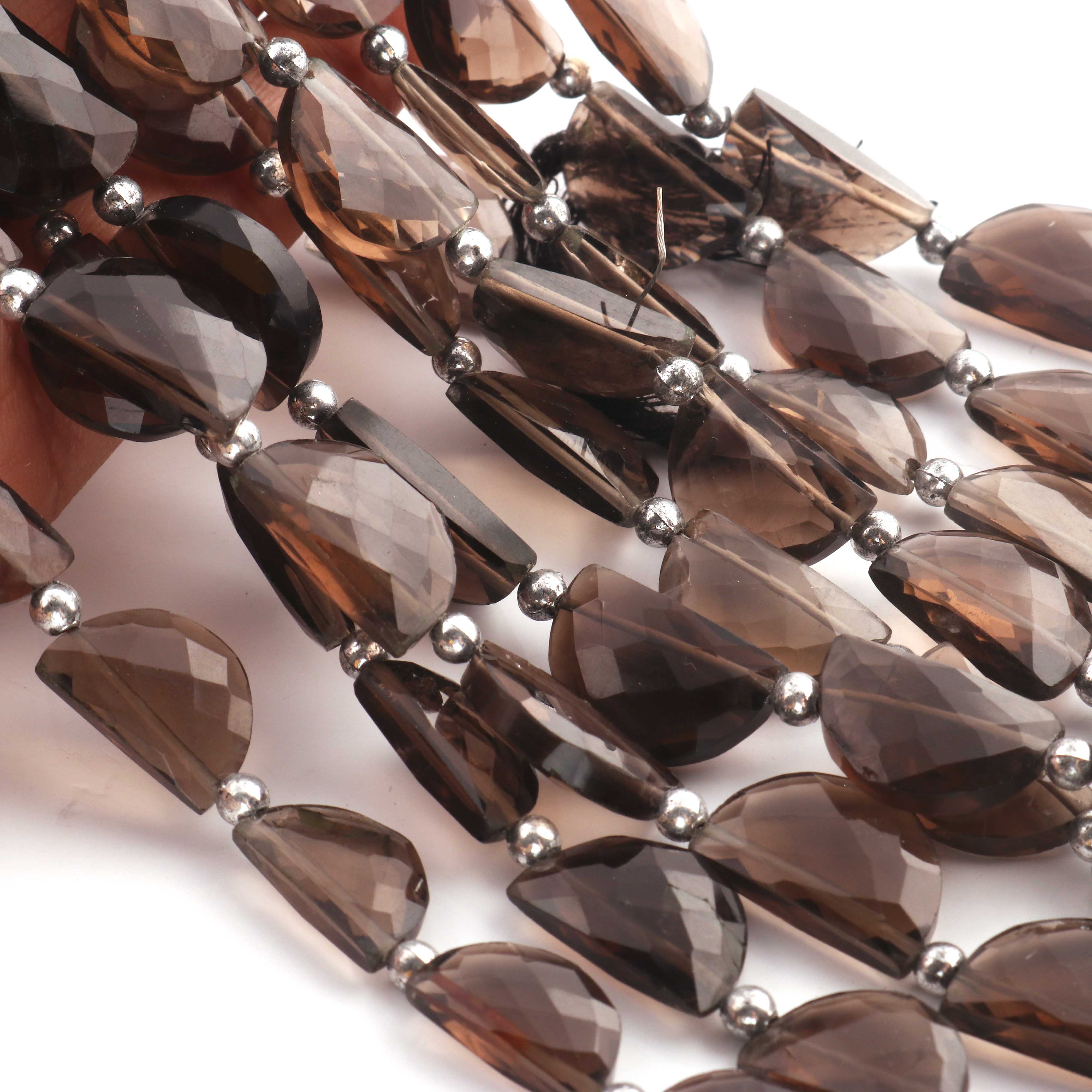 1 Strand Smoky Quartz Faceted "D"Shape Briolettes -Semi Precious Briolettes Beads 15mm-x16mm -18mmx12mm -8.5 Inches BR02166