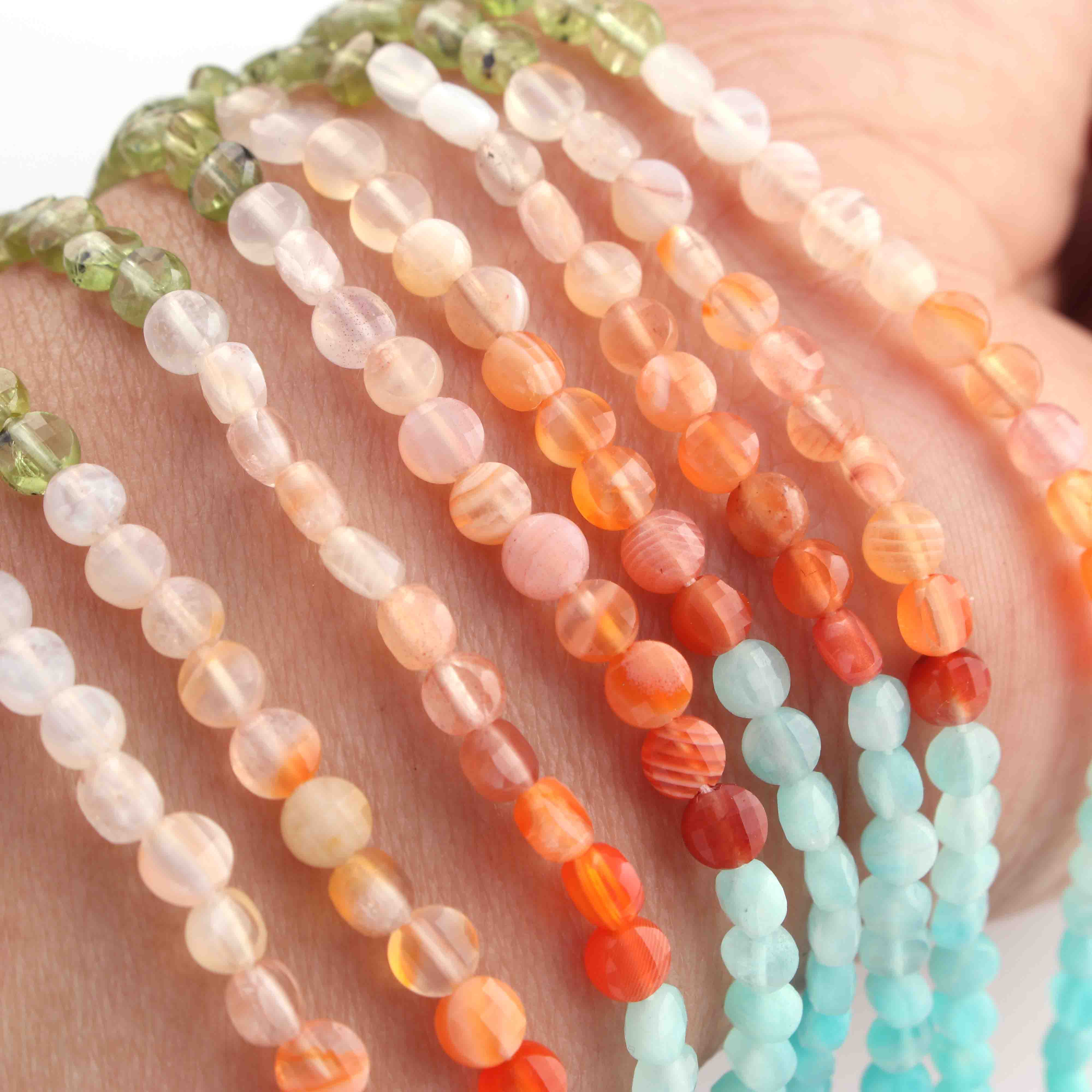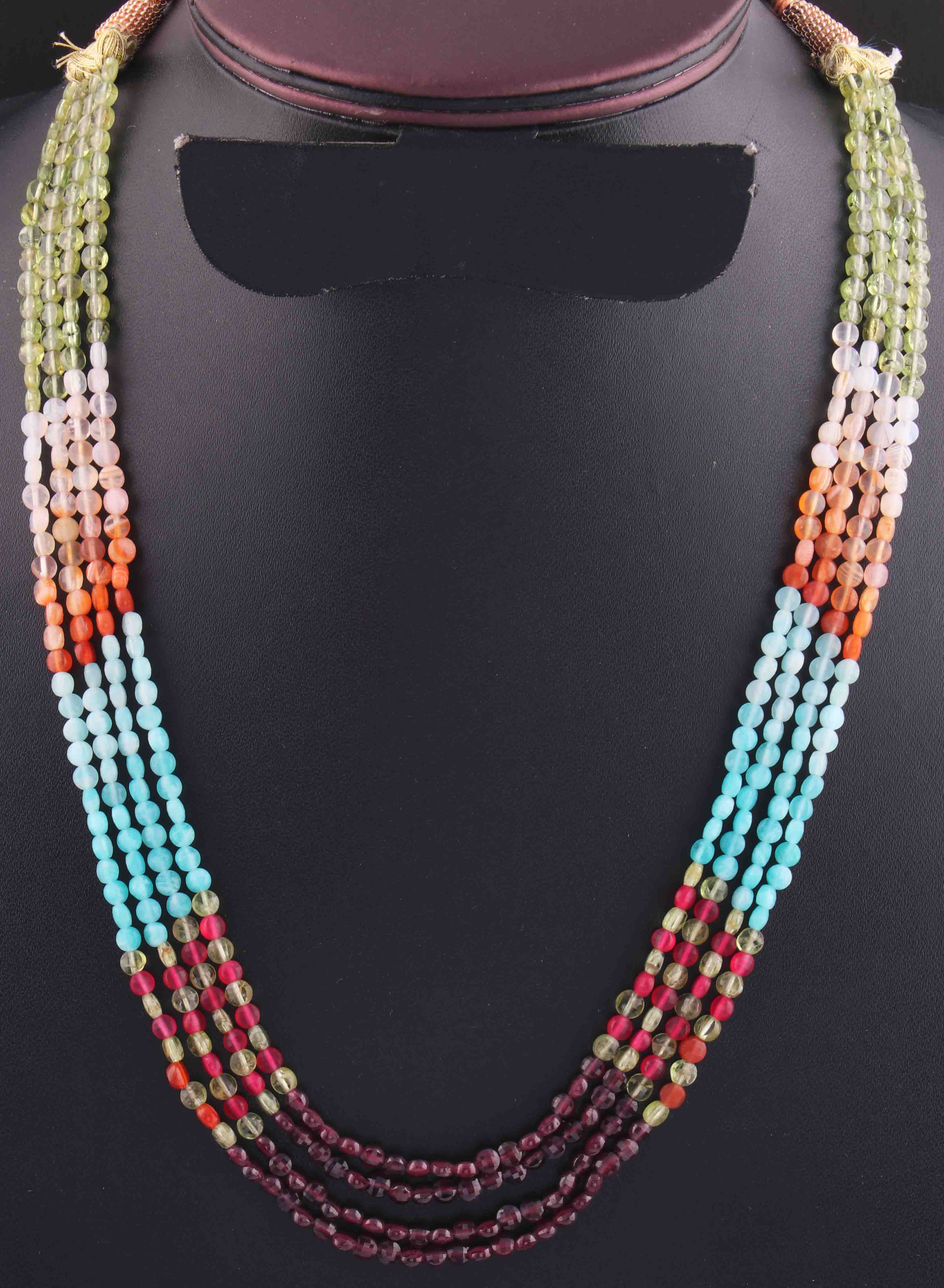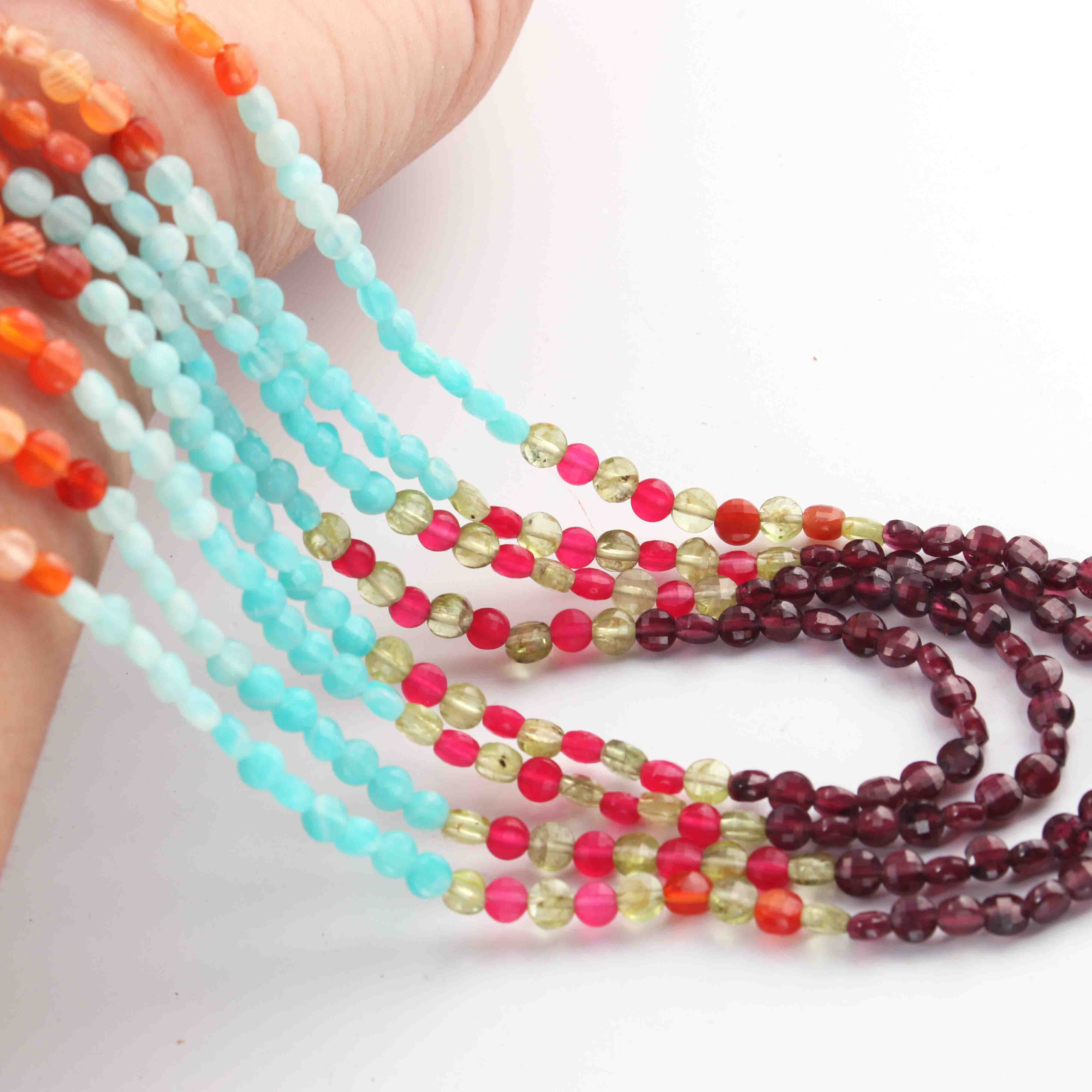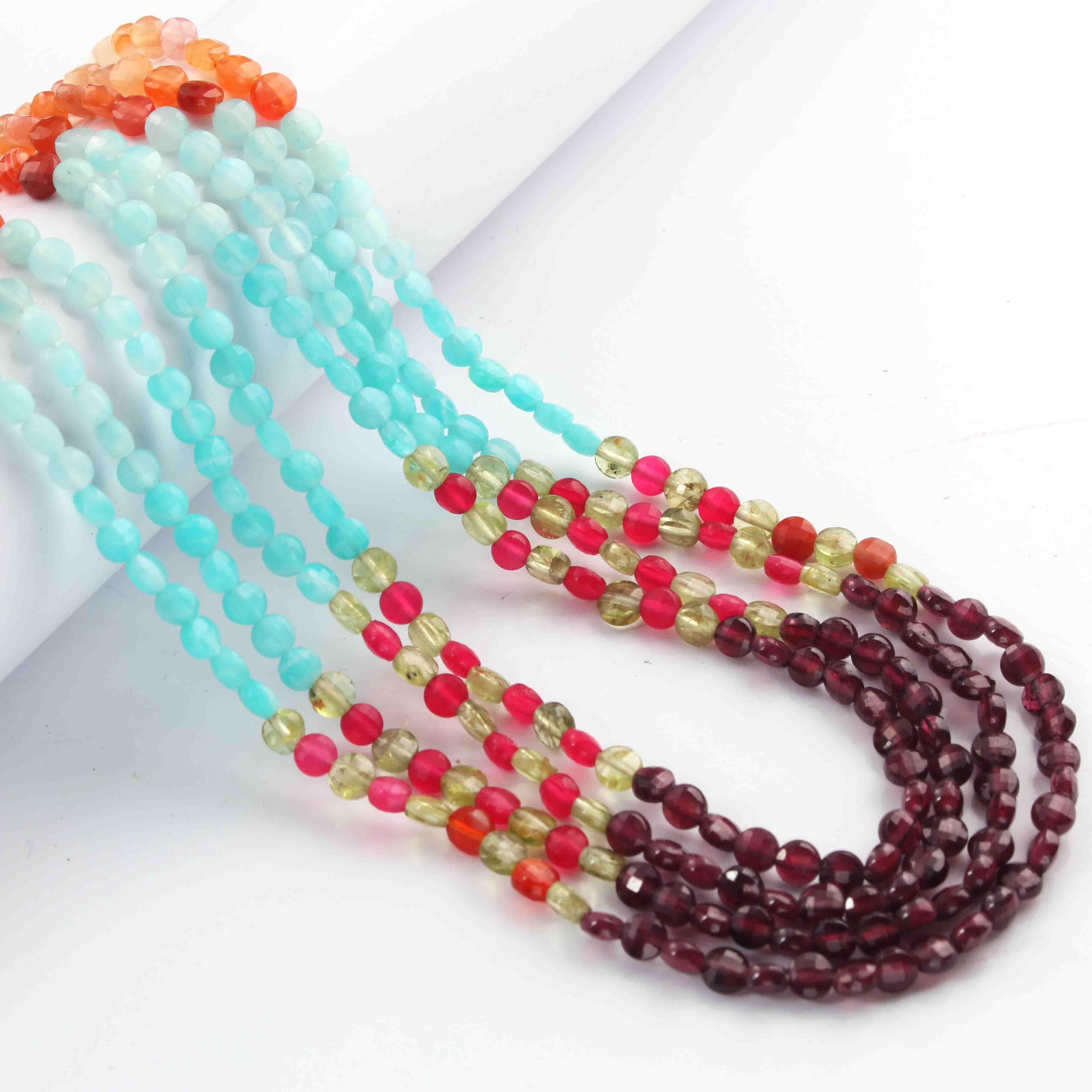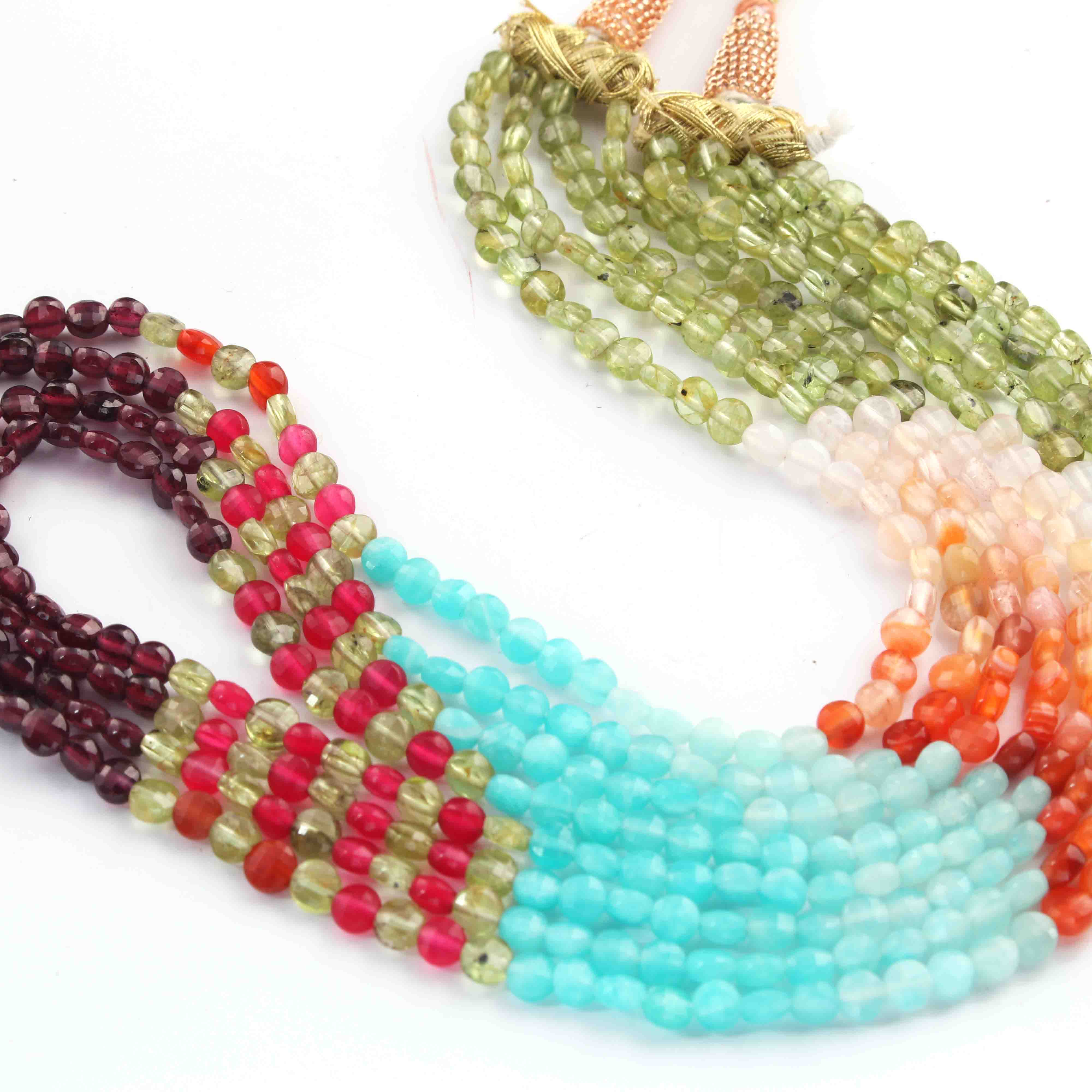 5 Strand AAA Quality Multi Color Faceted Coin beads Ready To Wear Necklace - Coin Beads 4mm- 16 Inch BRU207
