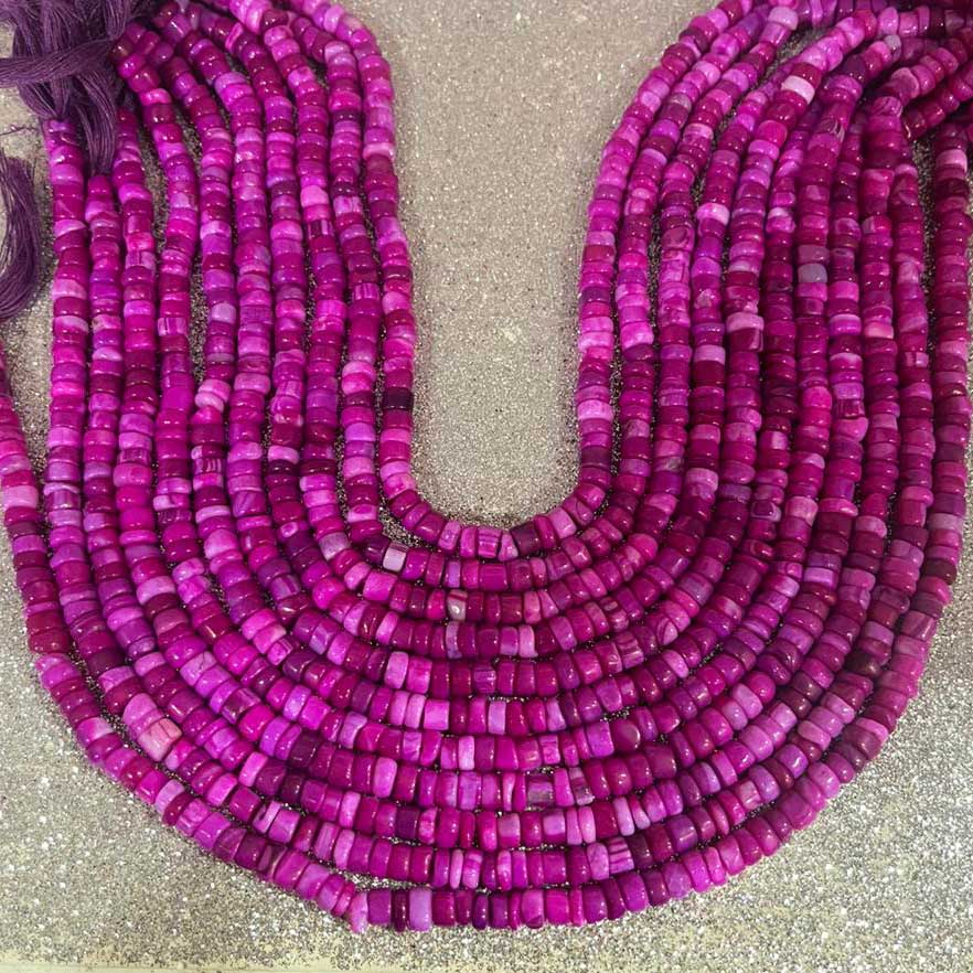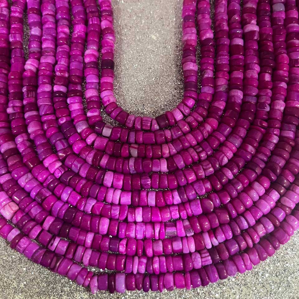 1 Long Strand Beautiful Shaded Hot Pink Opal Smooth Heishi Tyre Beads -Hot pink Opal Gemstone Beads- 4mm-6mm-13 Inches BR02985