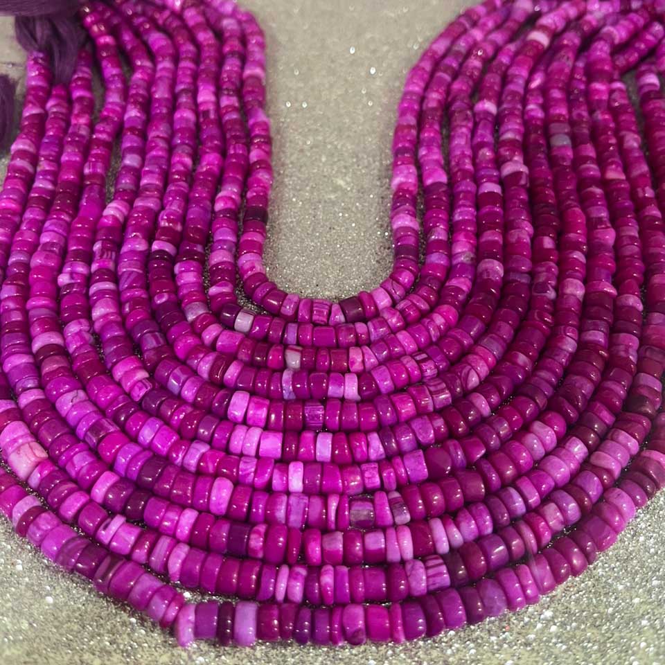 1  Long Strand Beautiful Shaded Hot Pink Opal Smooth Heishi Tyre Beads -Hot pink Opal Gemstone Beads- 4mm-6mm-13 Inches BR02985