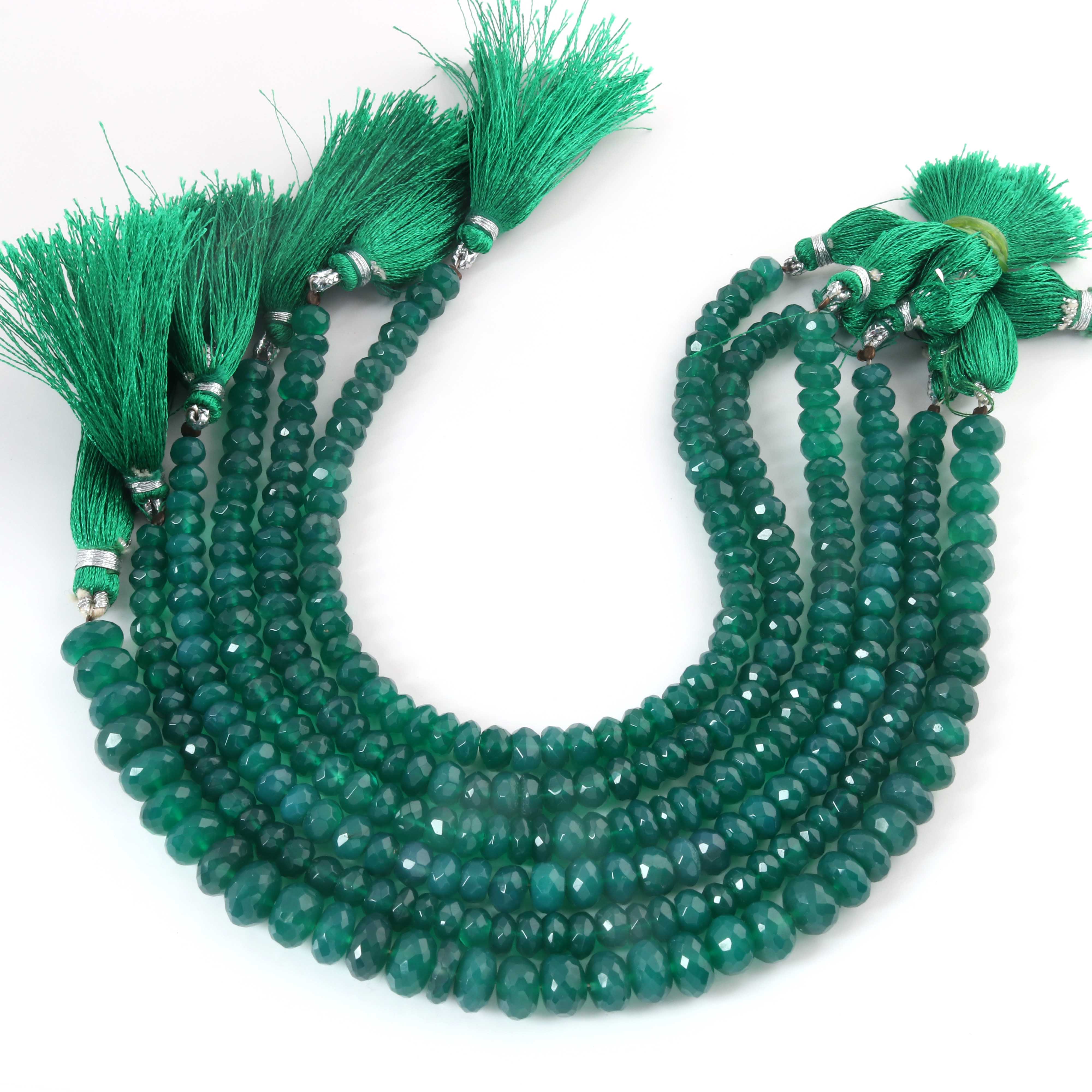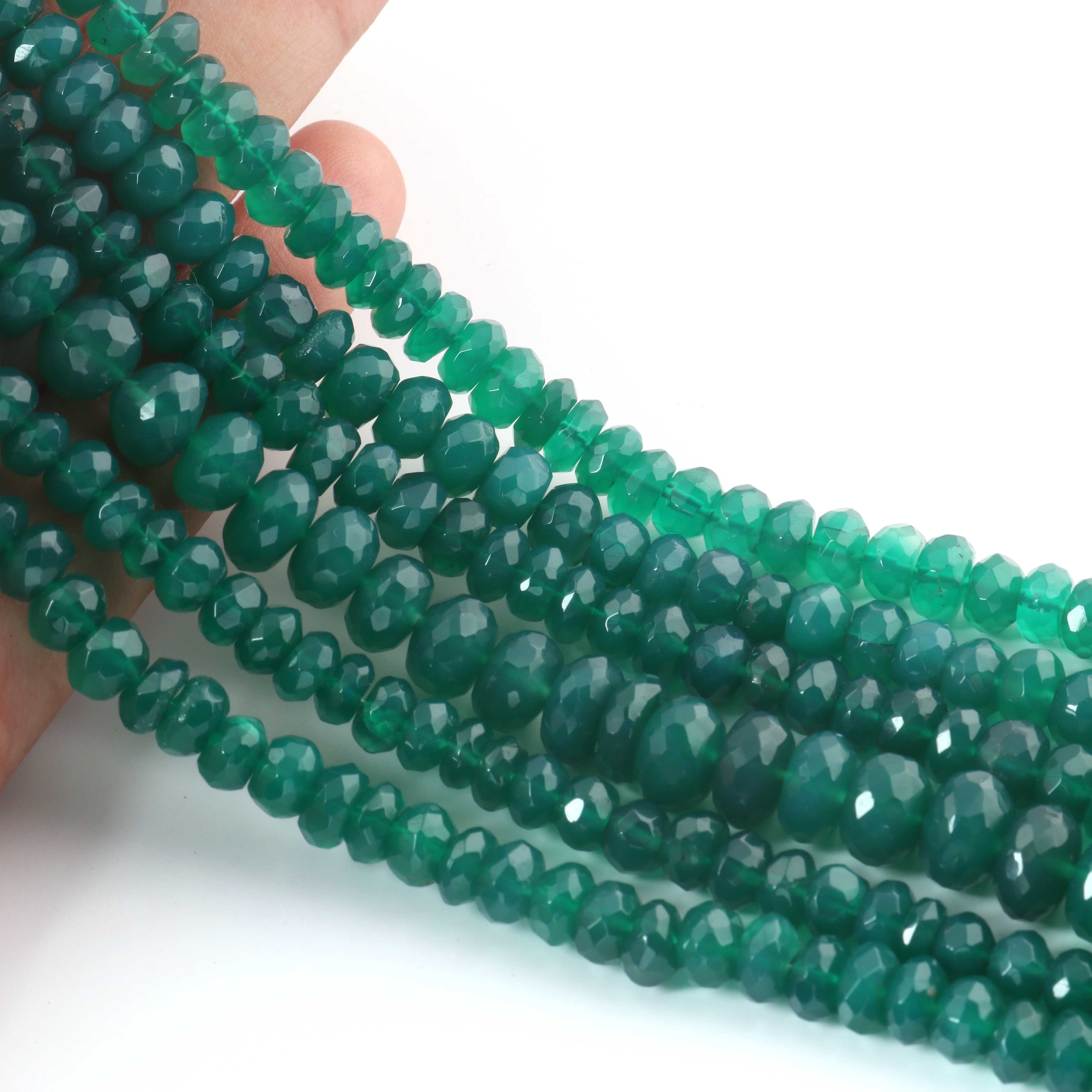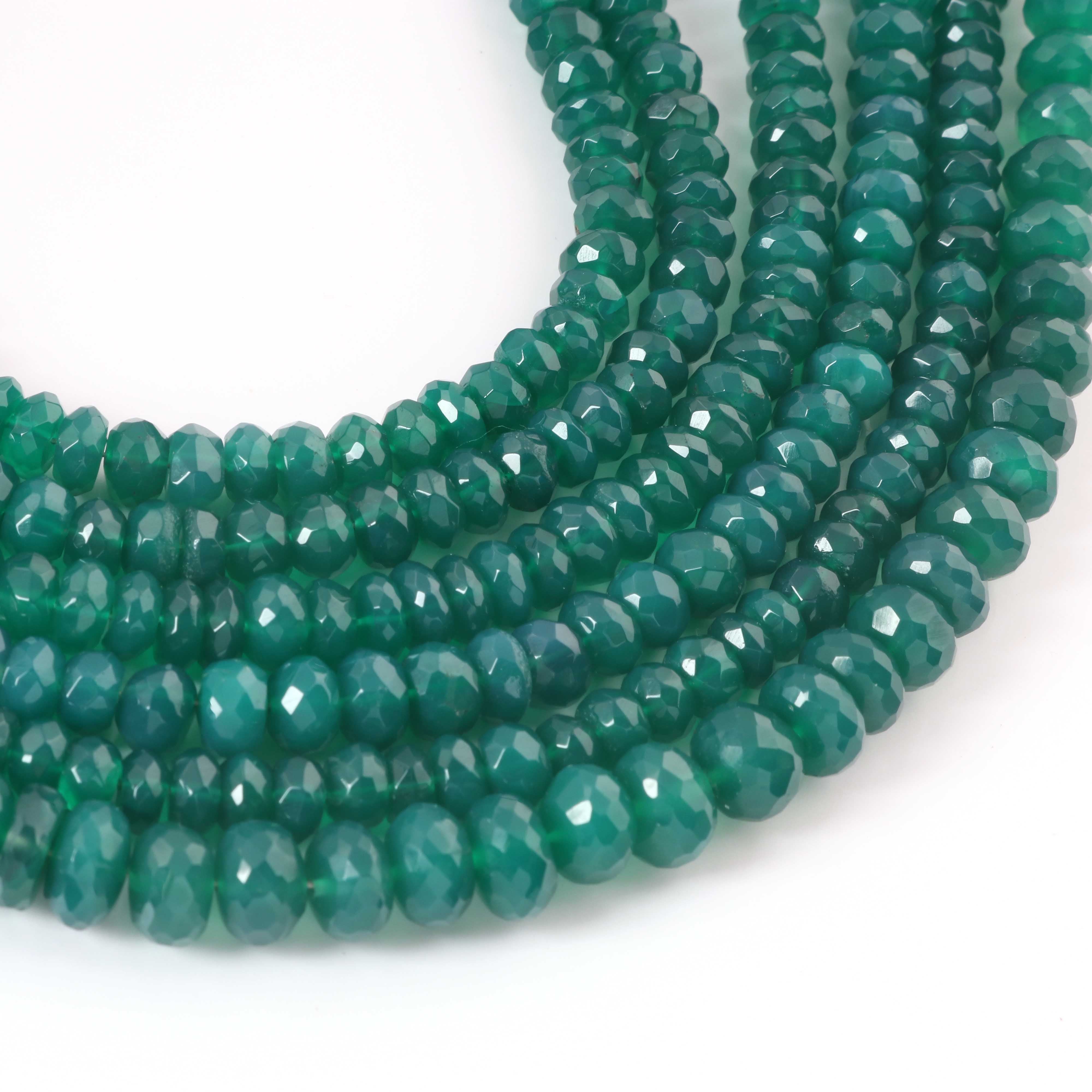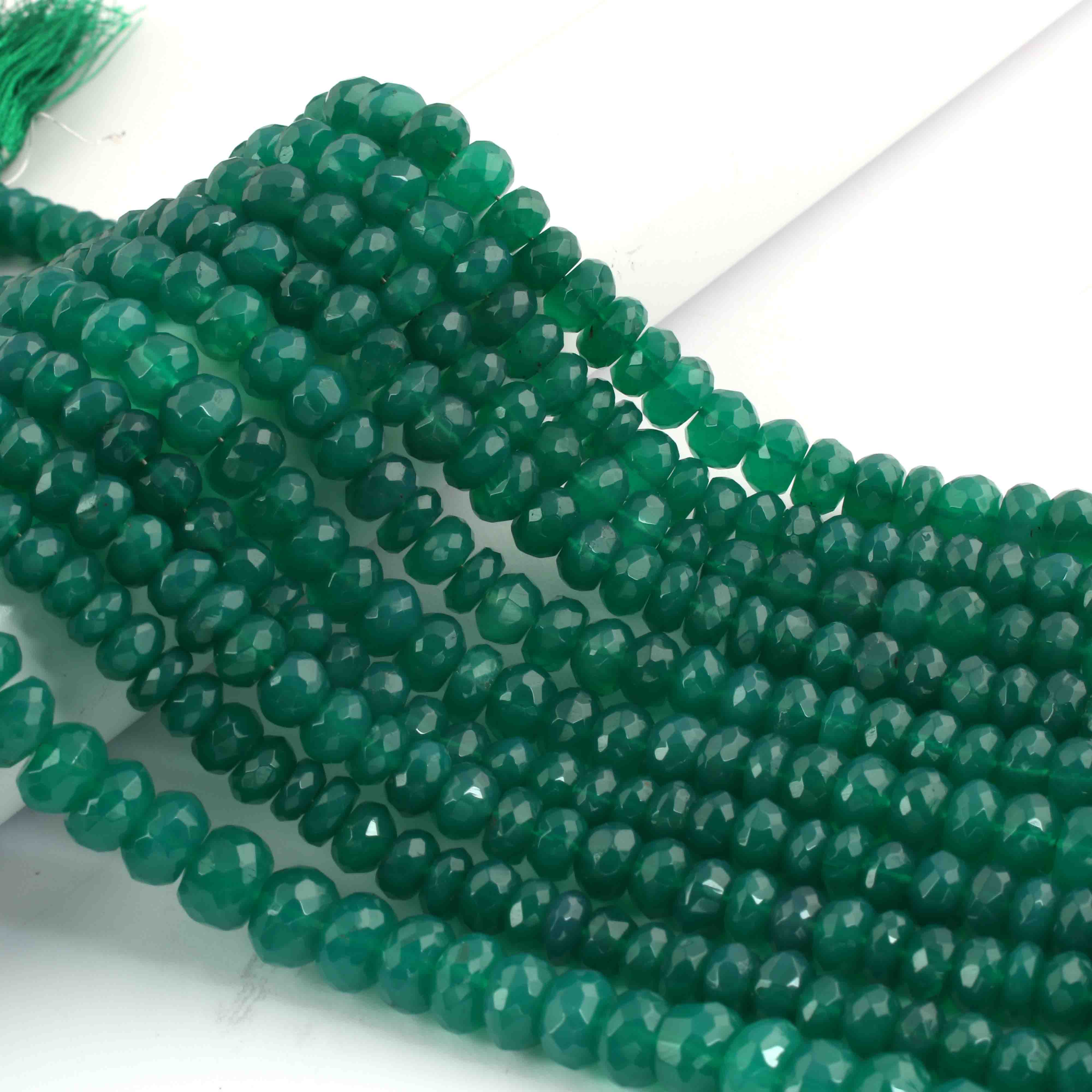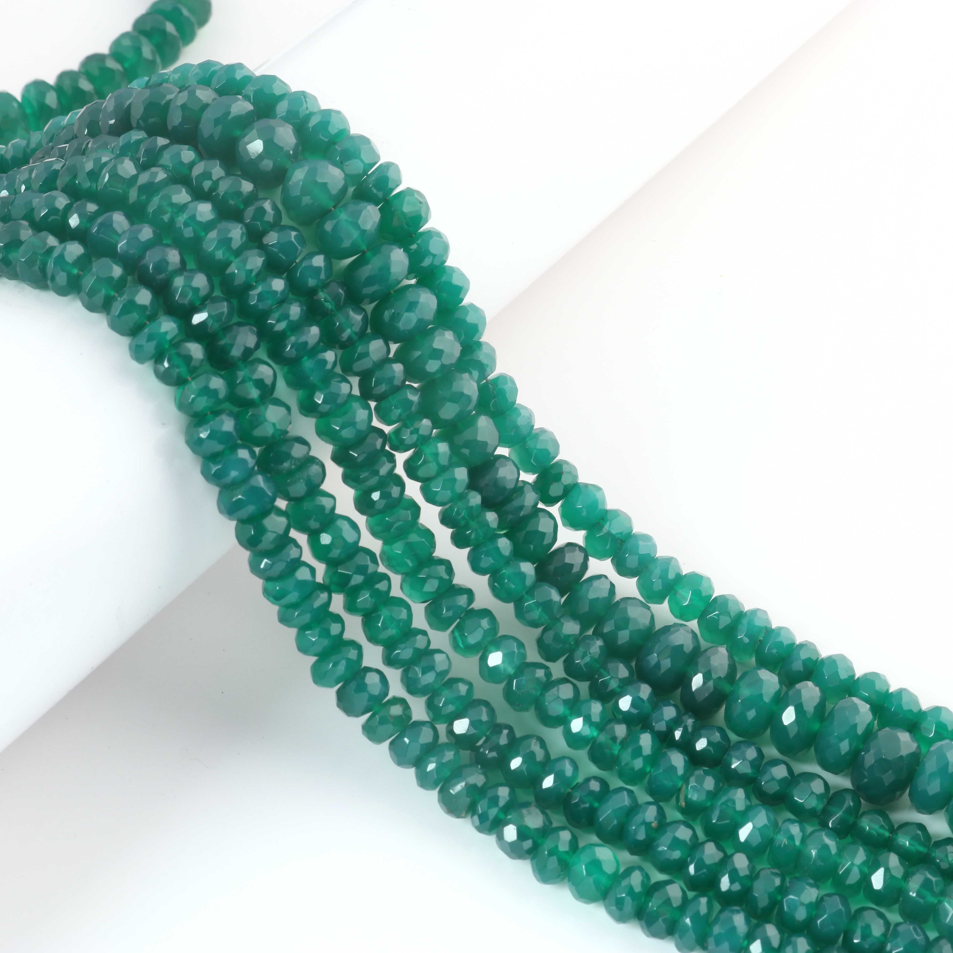 1 Strand Green Onyx Faceted Rondells -5mm-9mm-8 Inches BR03352