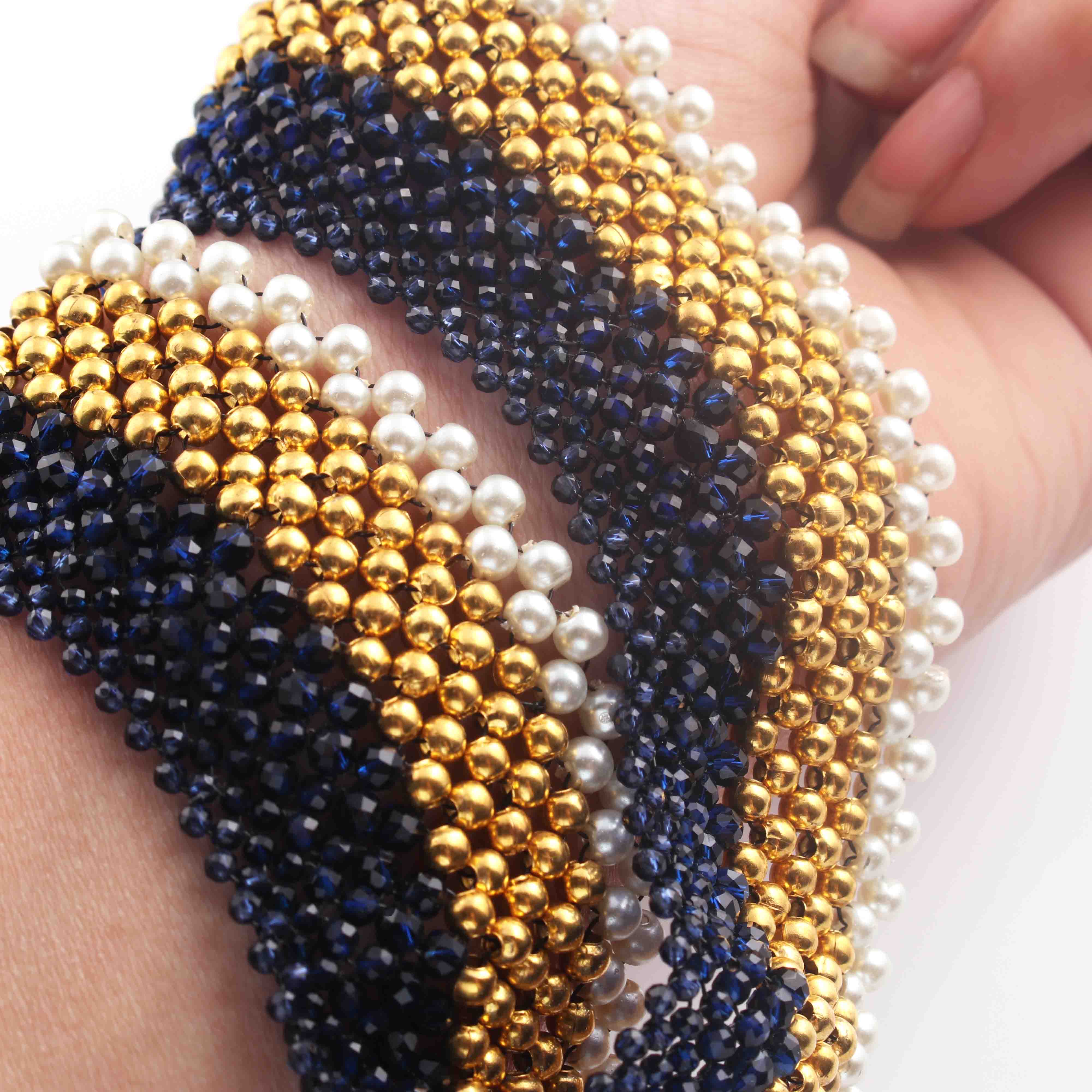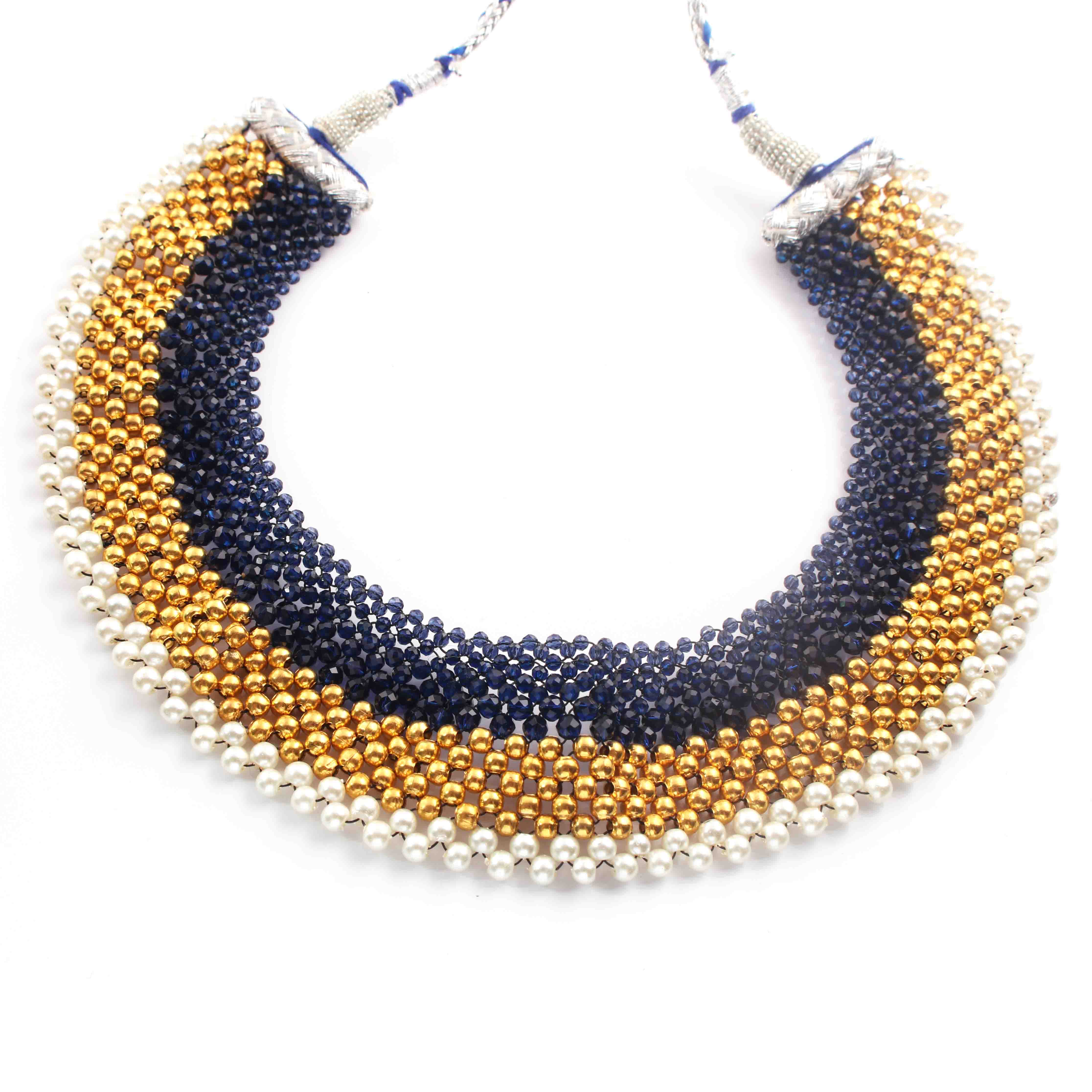 Blue Hydro With Pearl & Gold Pyrite Beaded Necklace AAA Quality Gemstone Necklace Blue Mat Necklace -3mm-4mm- 8 Inches - SPB0130