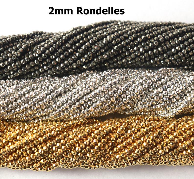 AAA Gold Pyrite Micro Faceted 2mm Beads - RB195