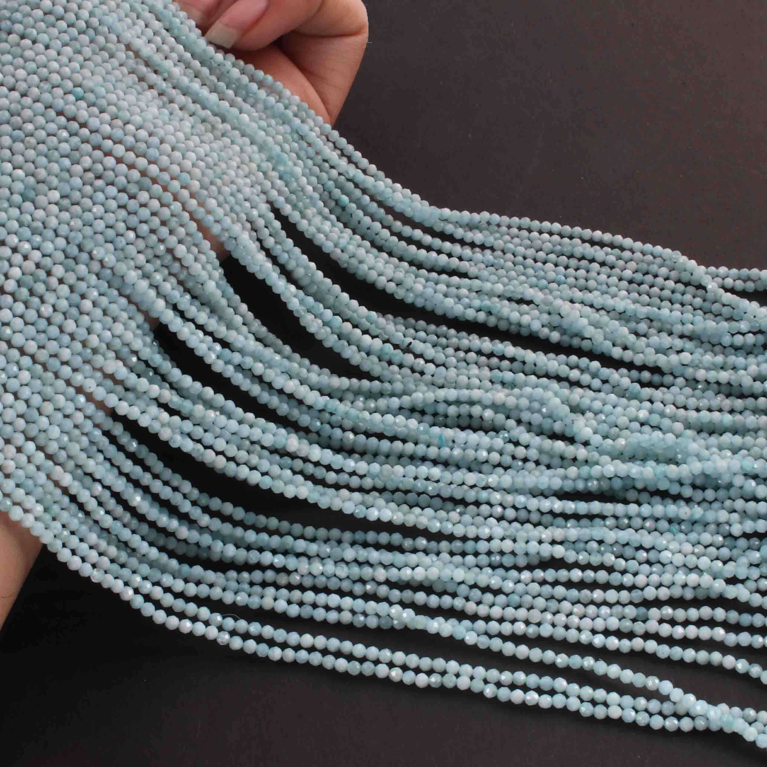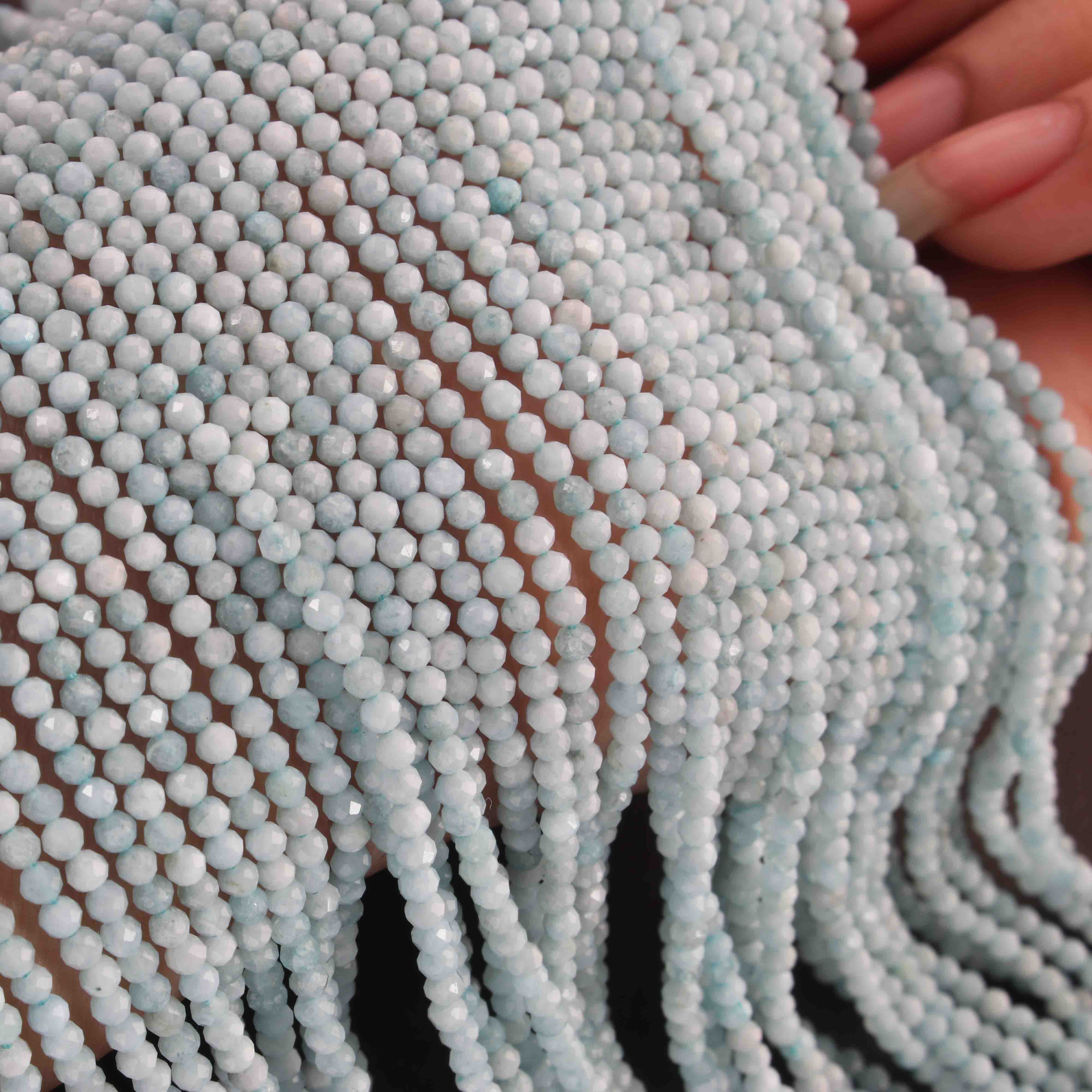 AAA Aquamarine Micro Faceted 3mm Beads -RB489