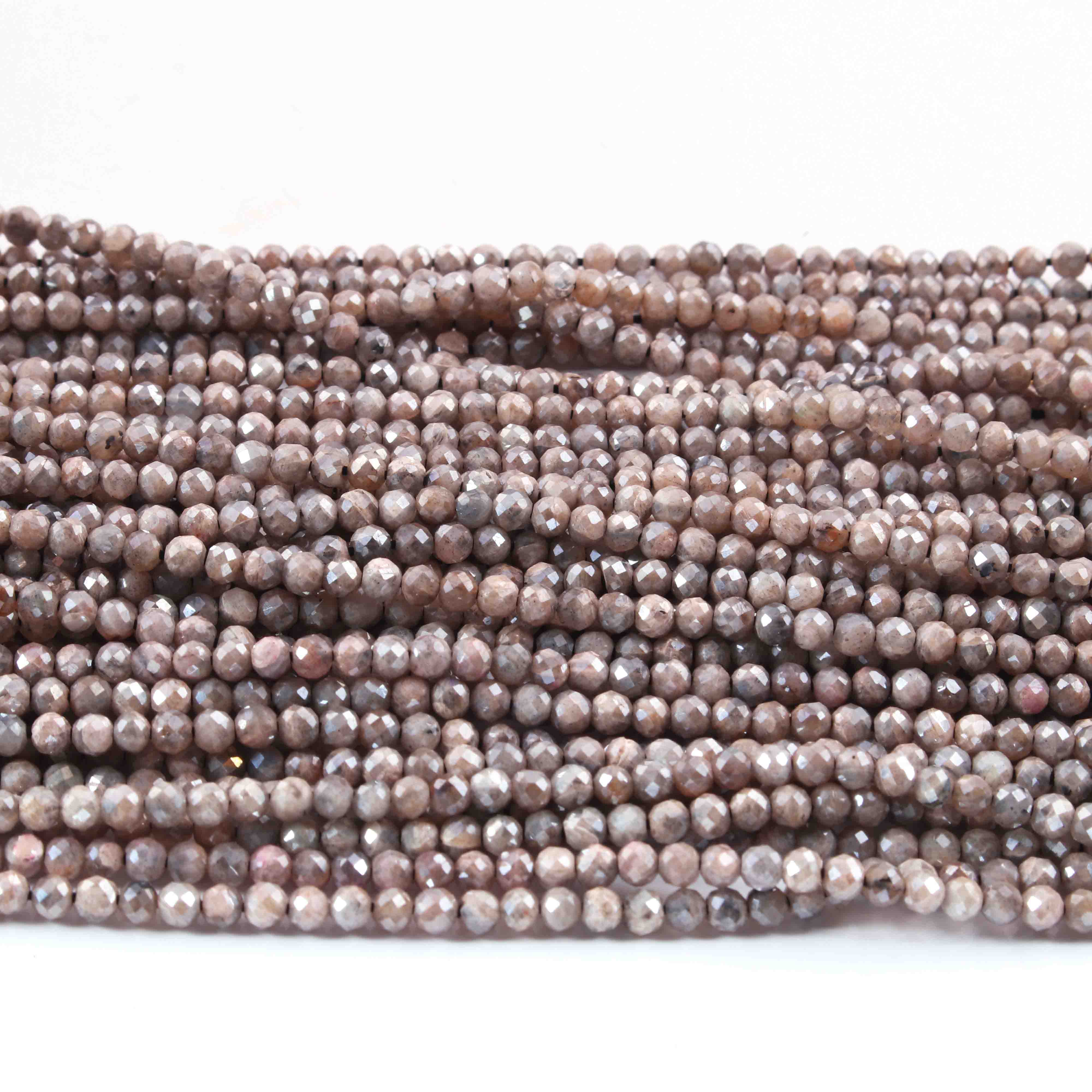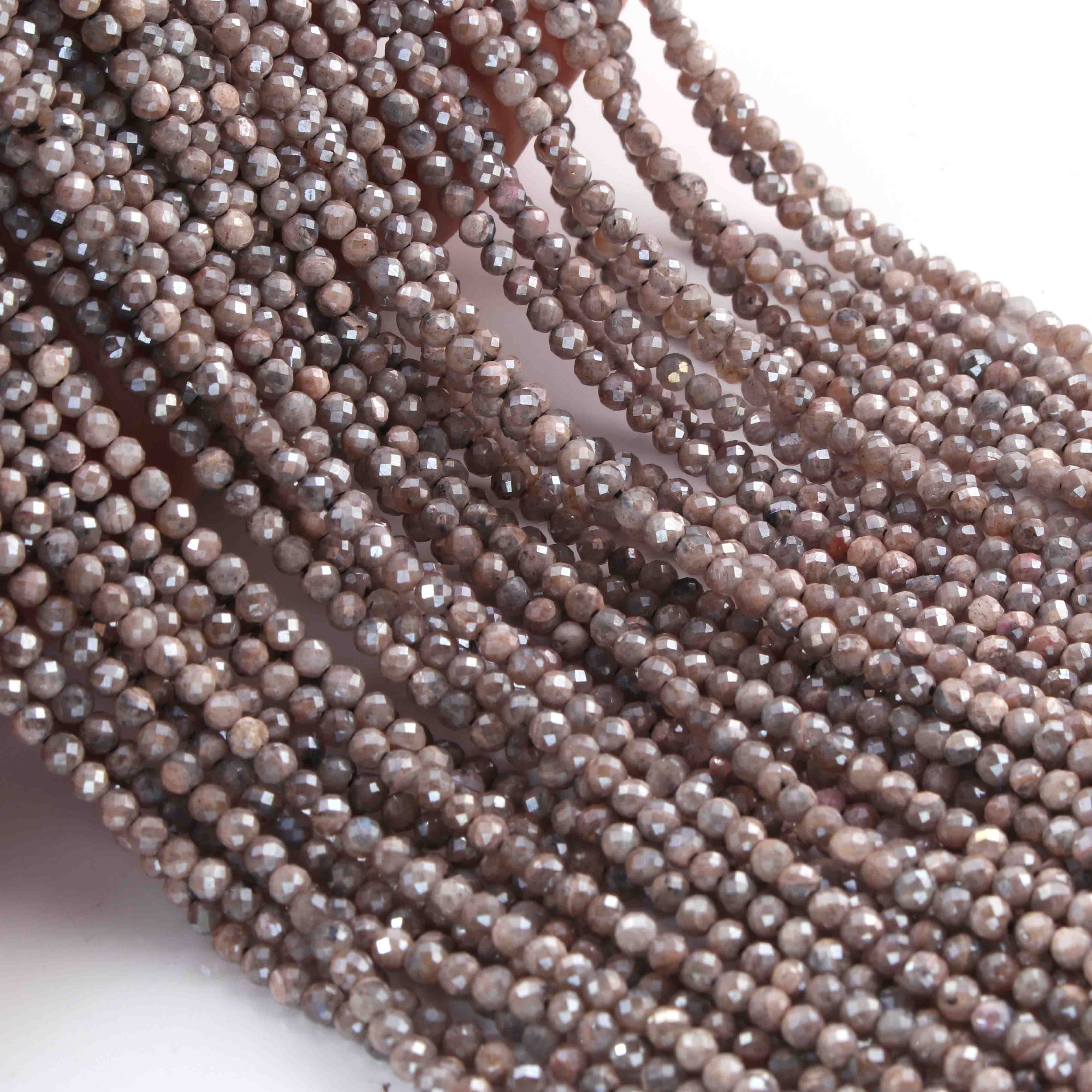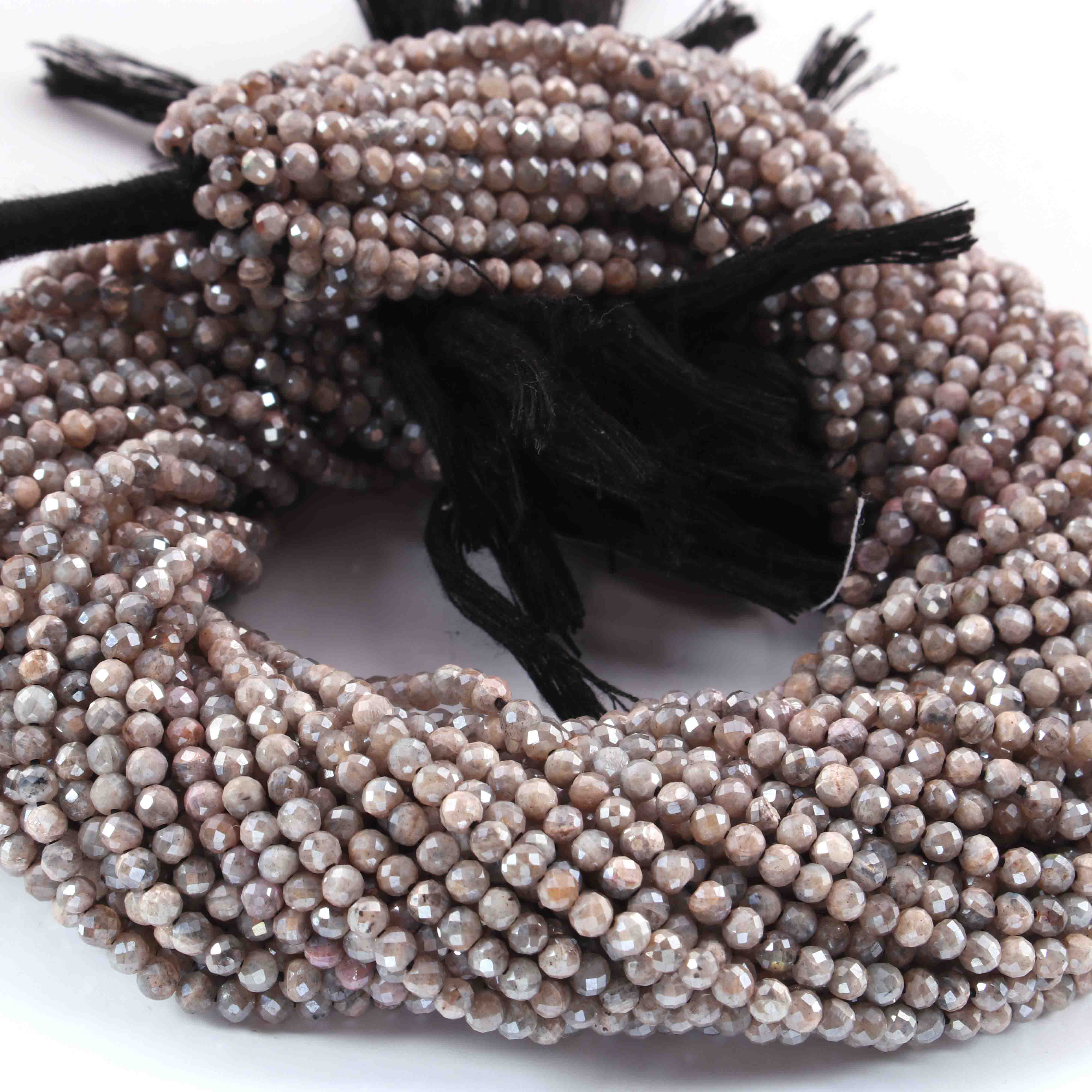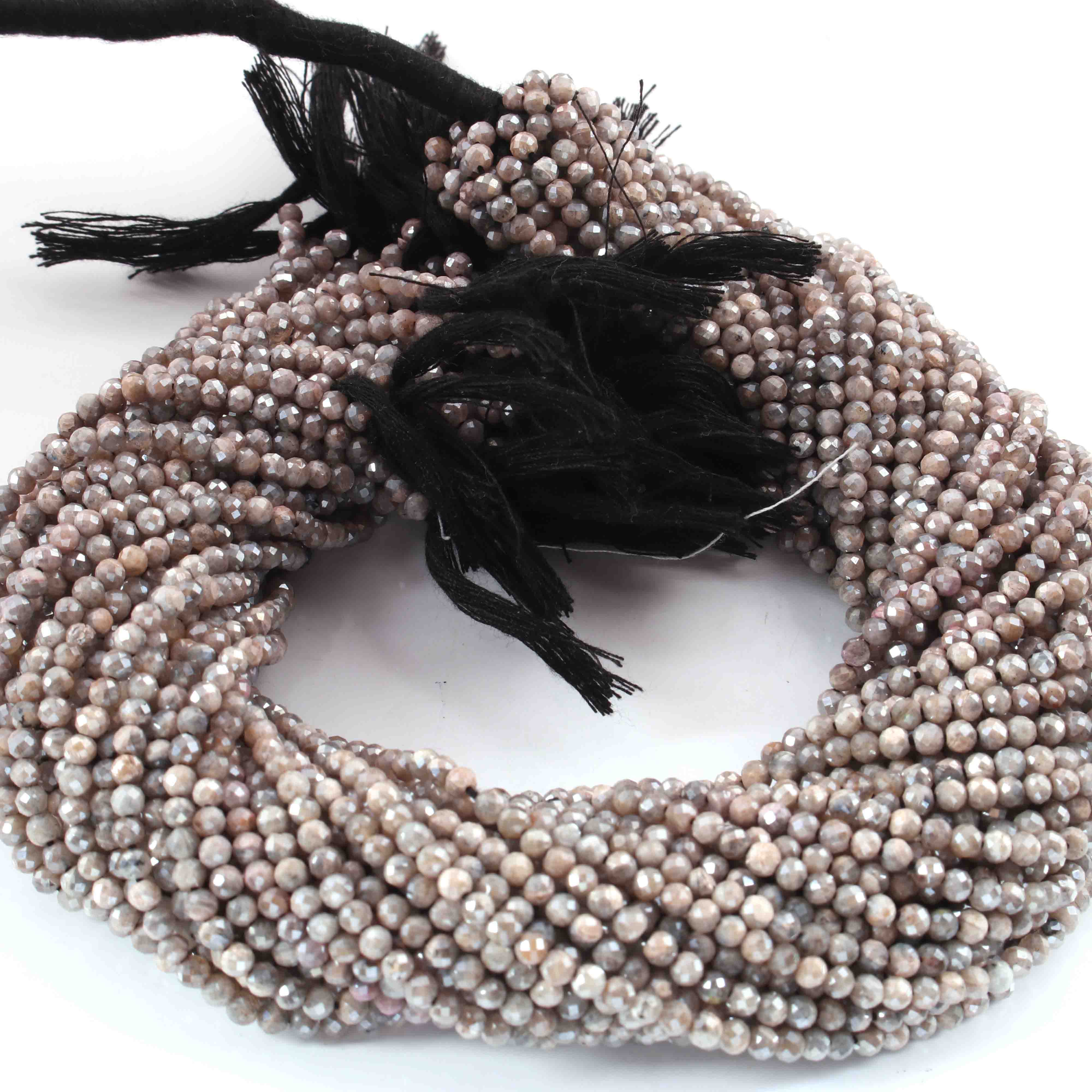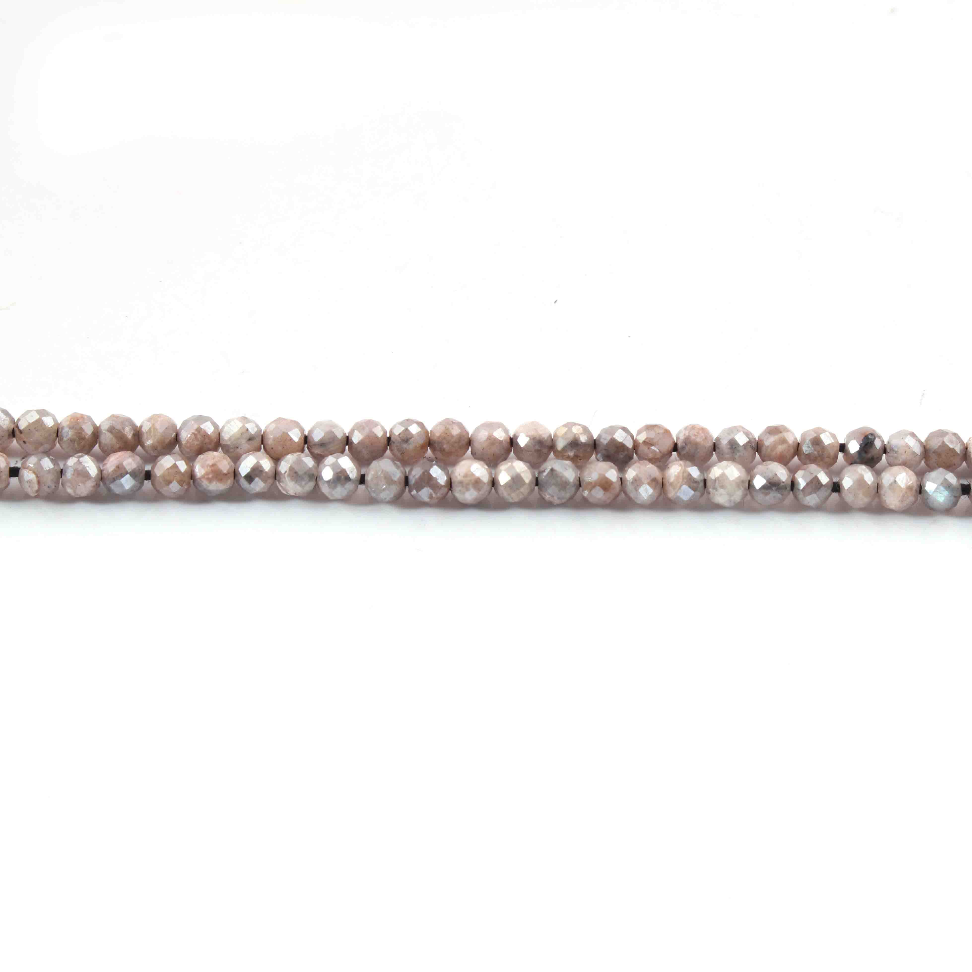 AAA Gray Moonstone Silver Coated Micro Faceted 3mm Beads -RB0289