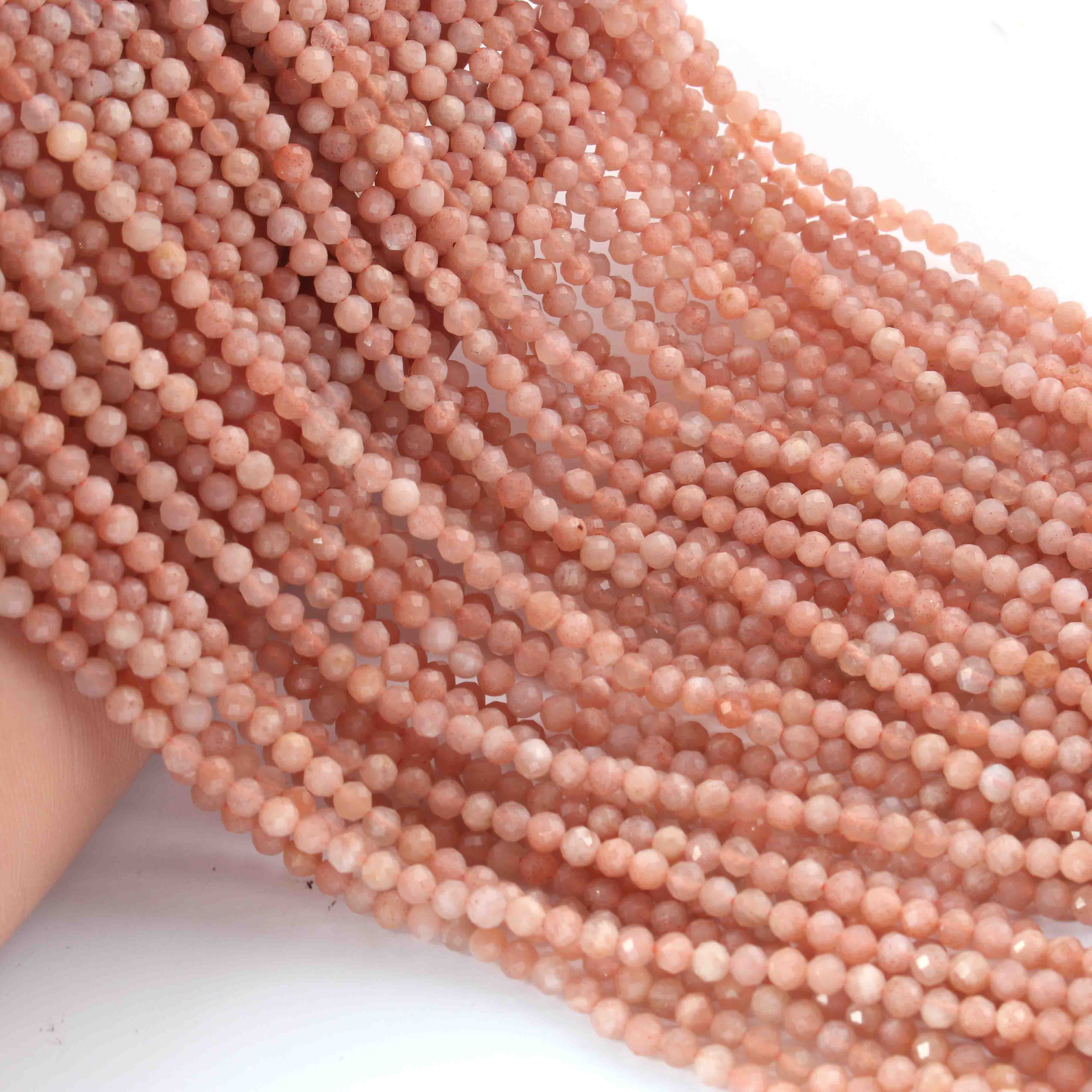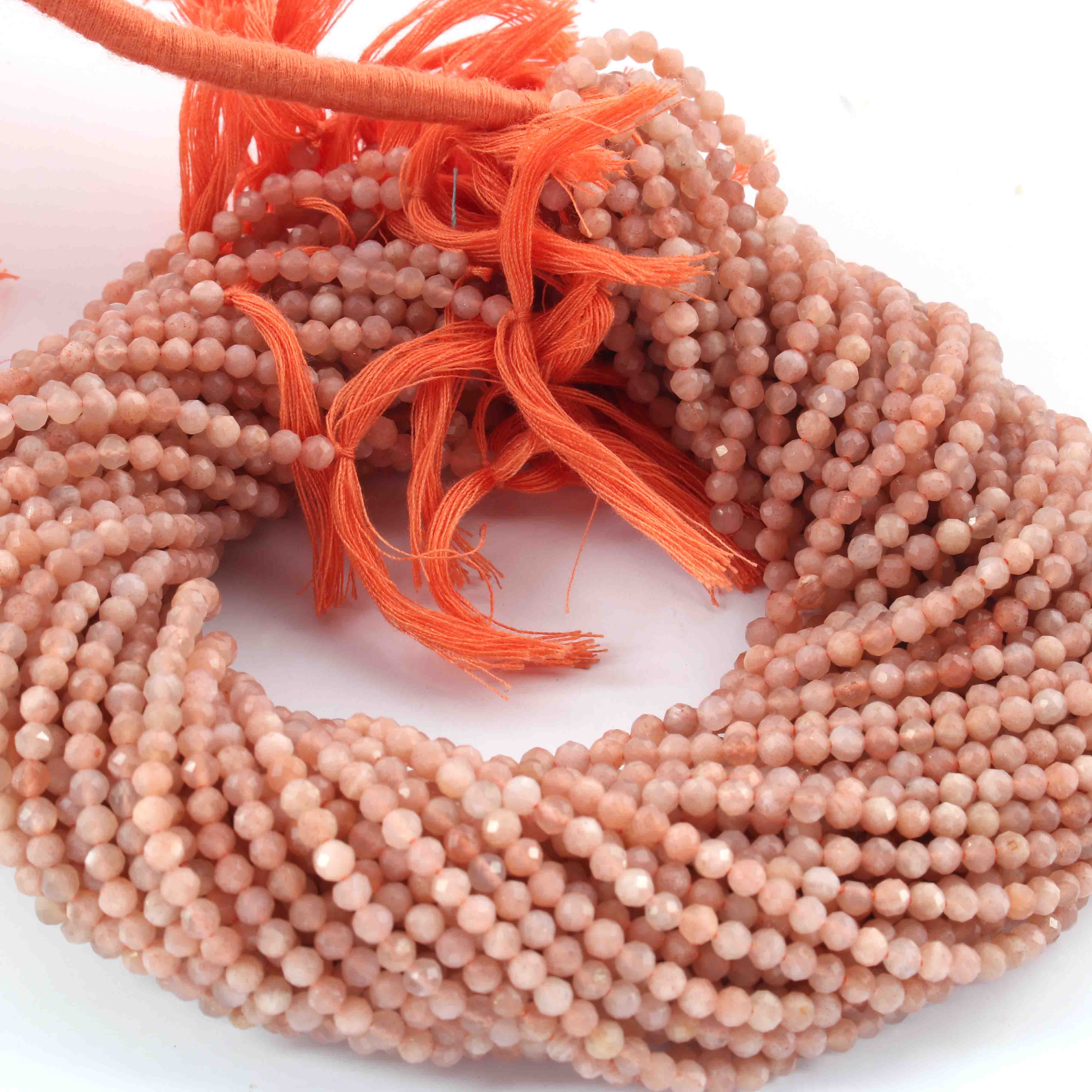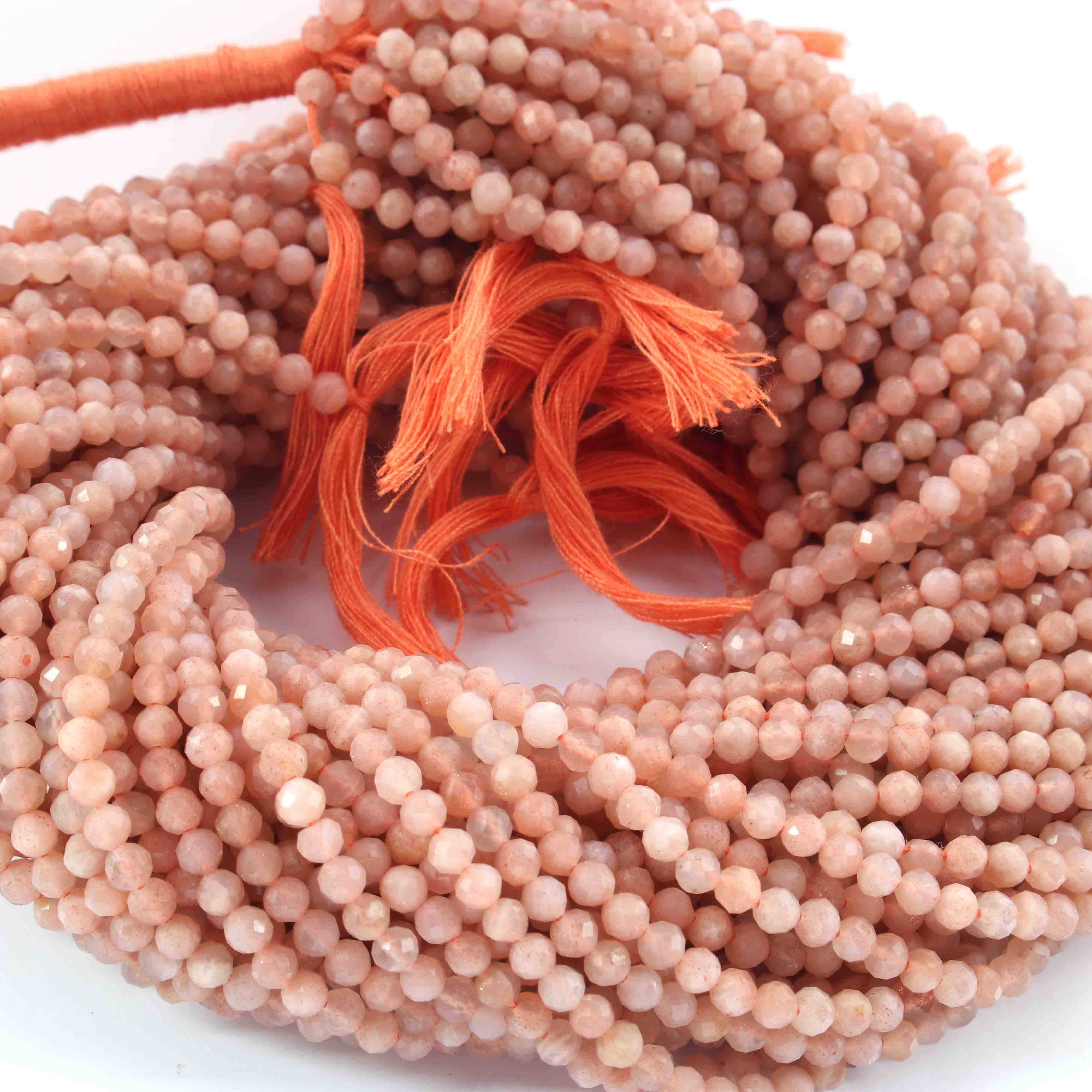 AAA Peach Moonstone Micro Faceted 3mm Beads -RB0291