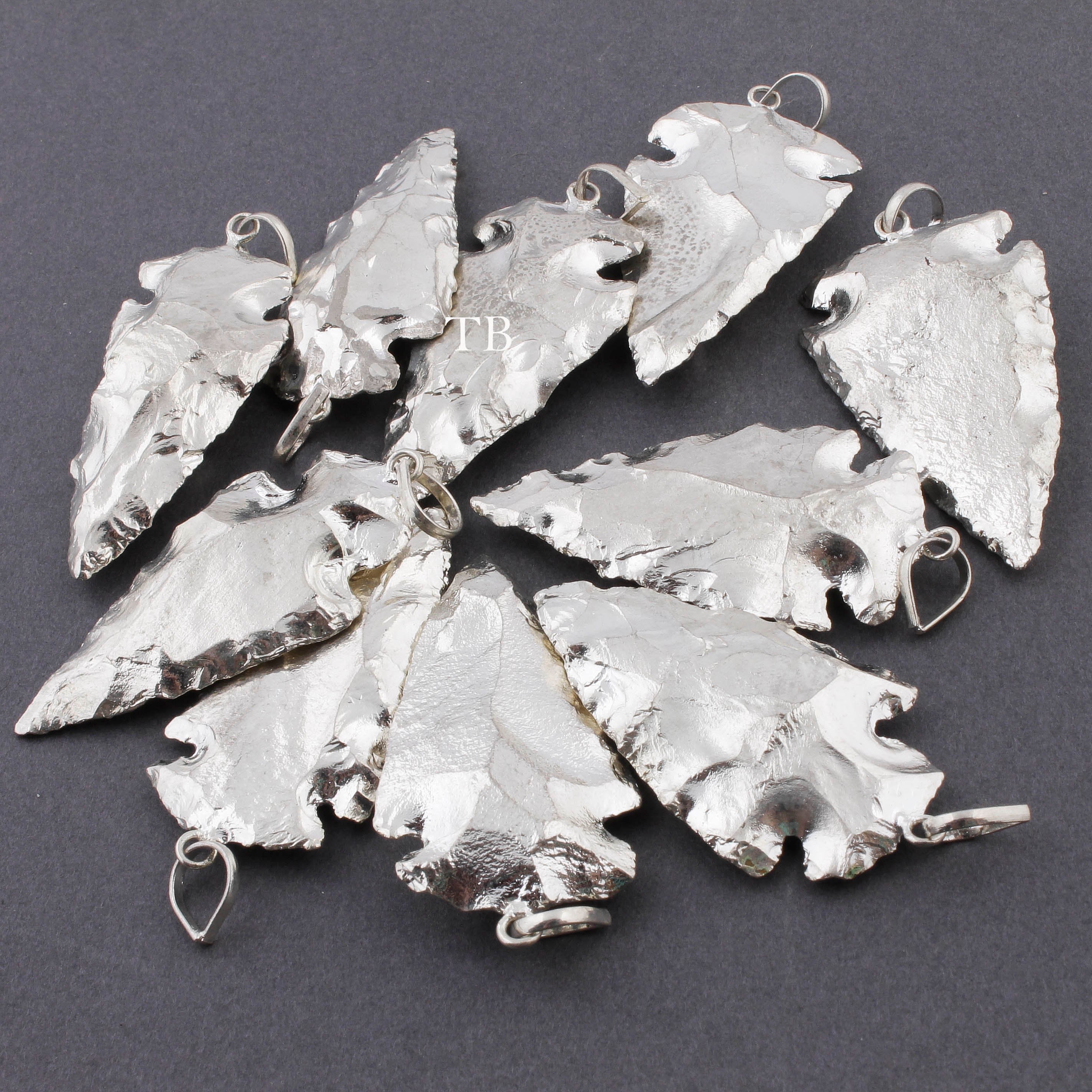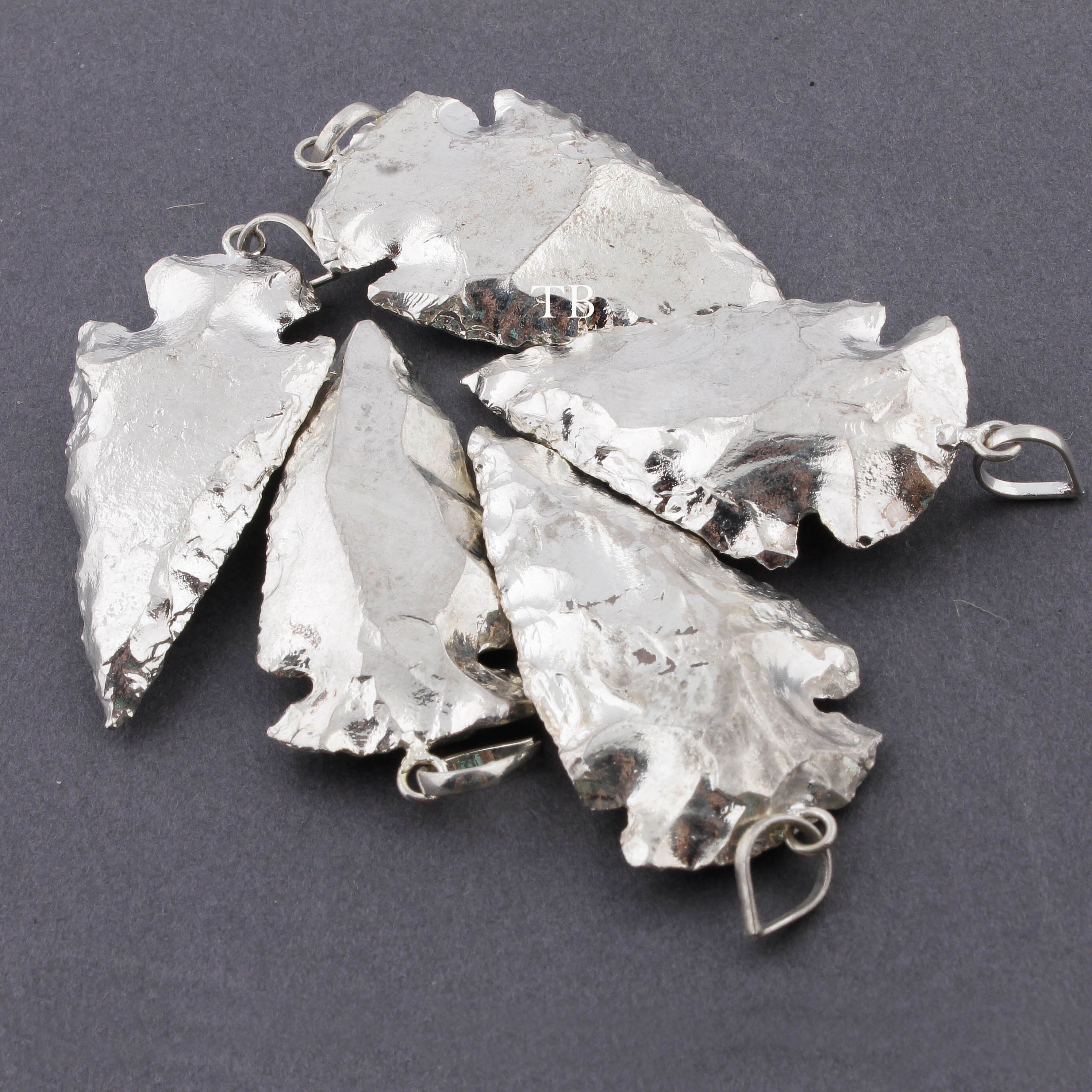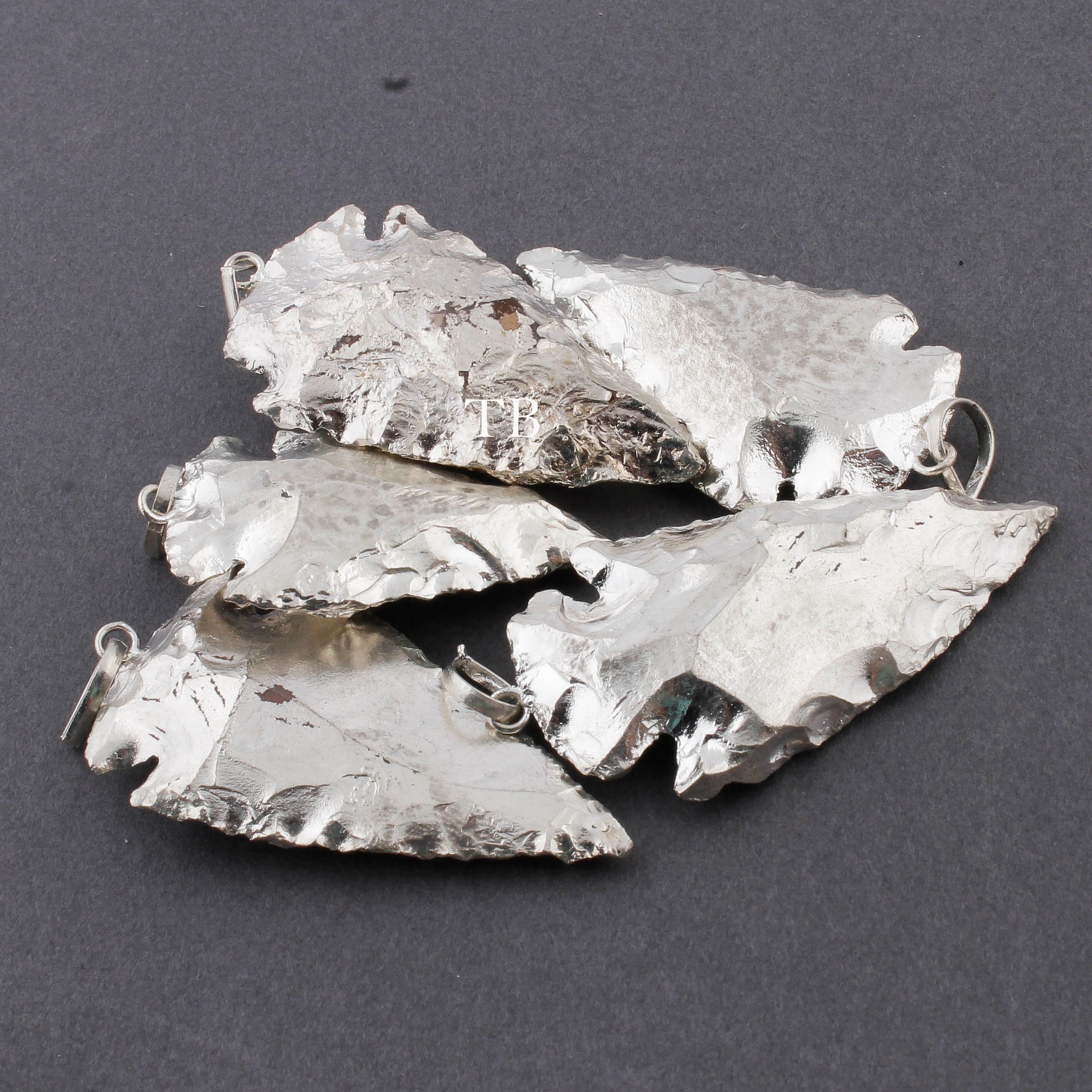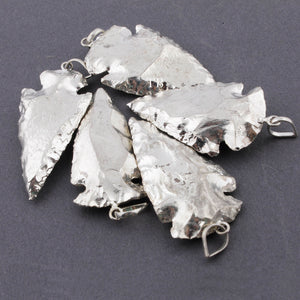 4 PCS Silver Jasper Arrowhead Fully Silver Plated Pendant - Electroplated With Silver Edge - AR193