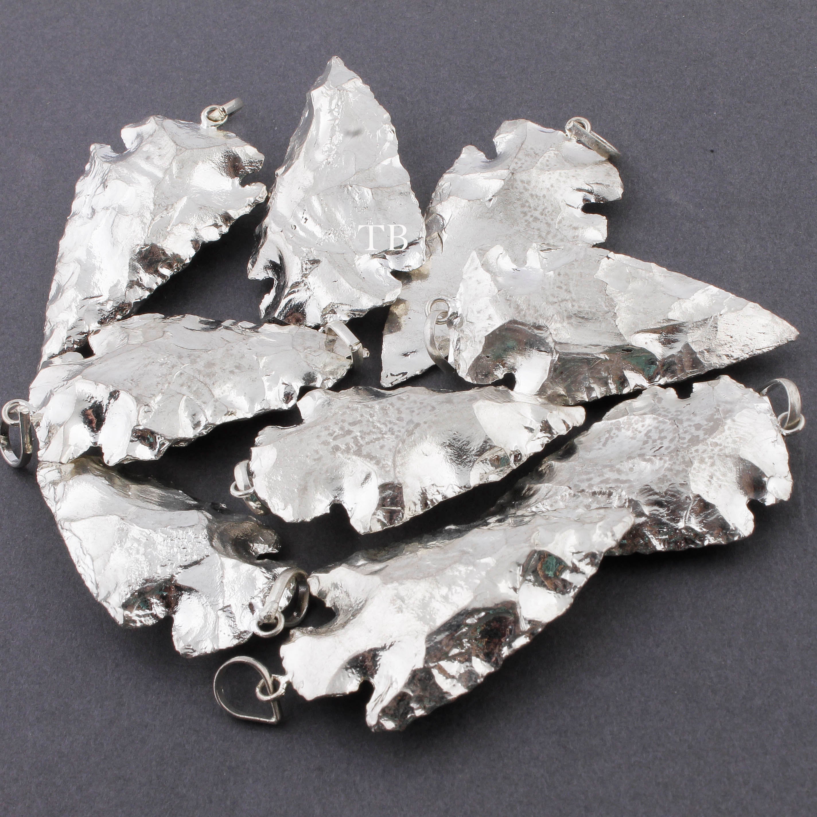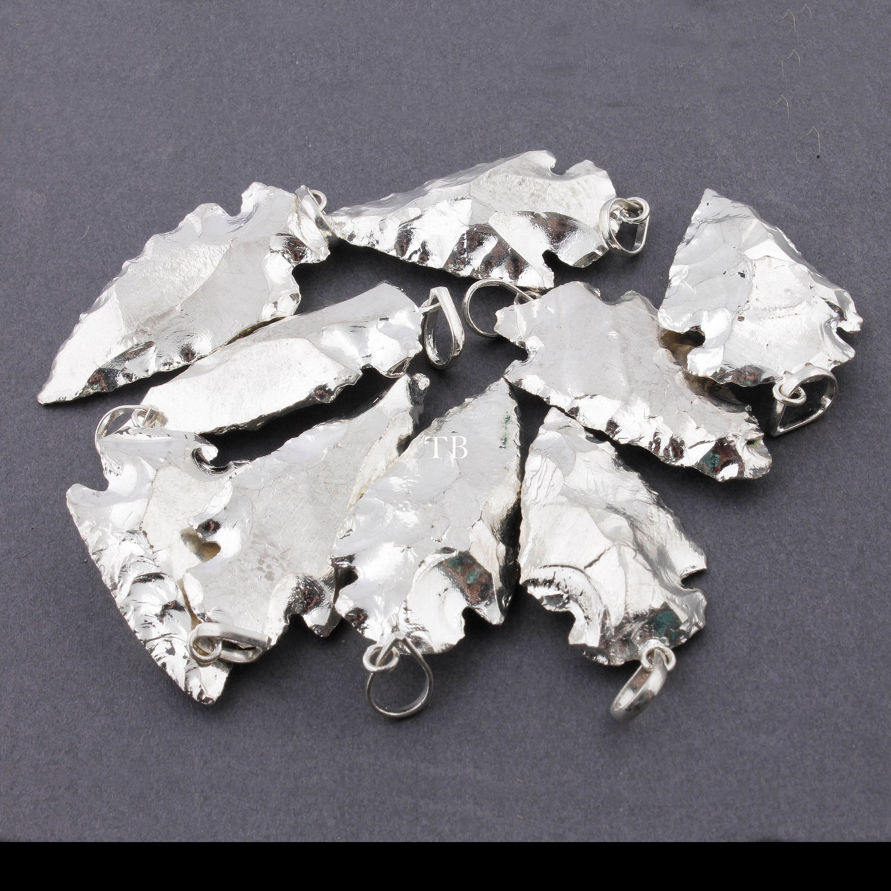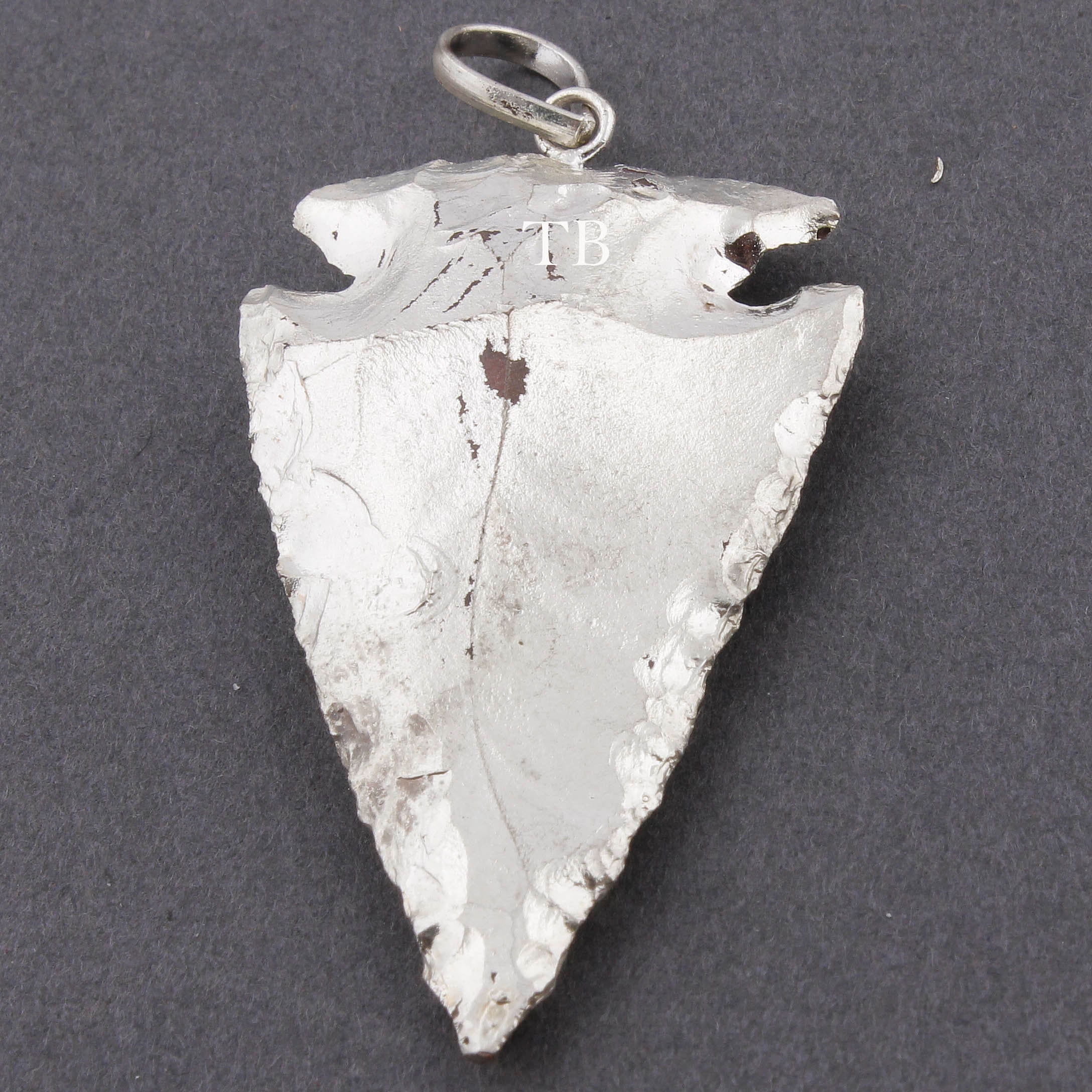 4 PCS Silver Jasper Arrowhead Fully Silver Plated Pendant - Electroplated With Silver Edge - AR193