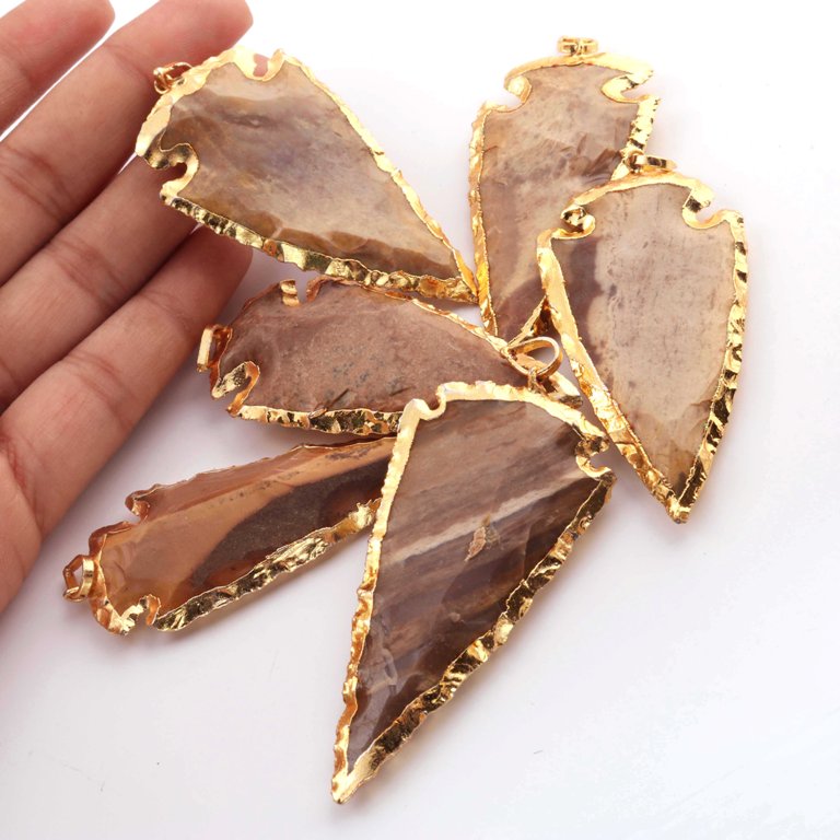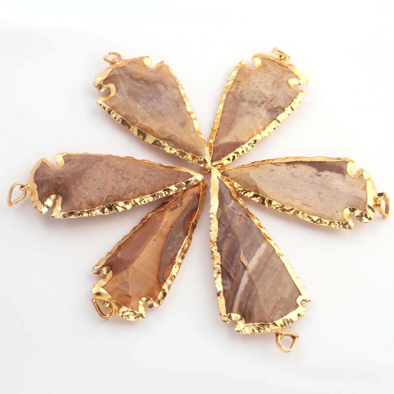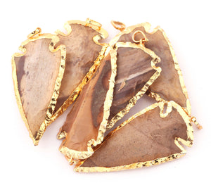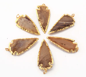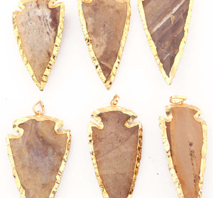 6 pcs Jasper Arrowhead 24k Gold Plated Pendant - Electroplated With Gold Edge 2.5 Inches AR316