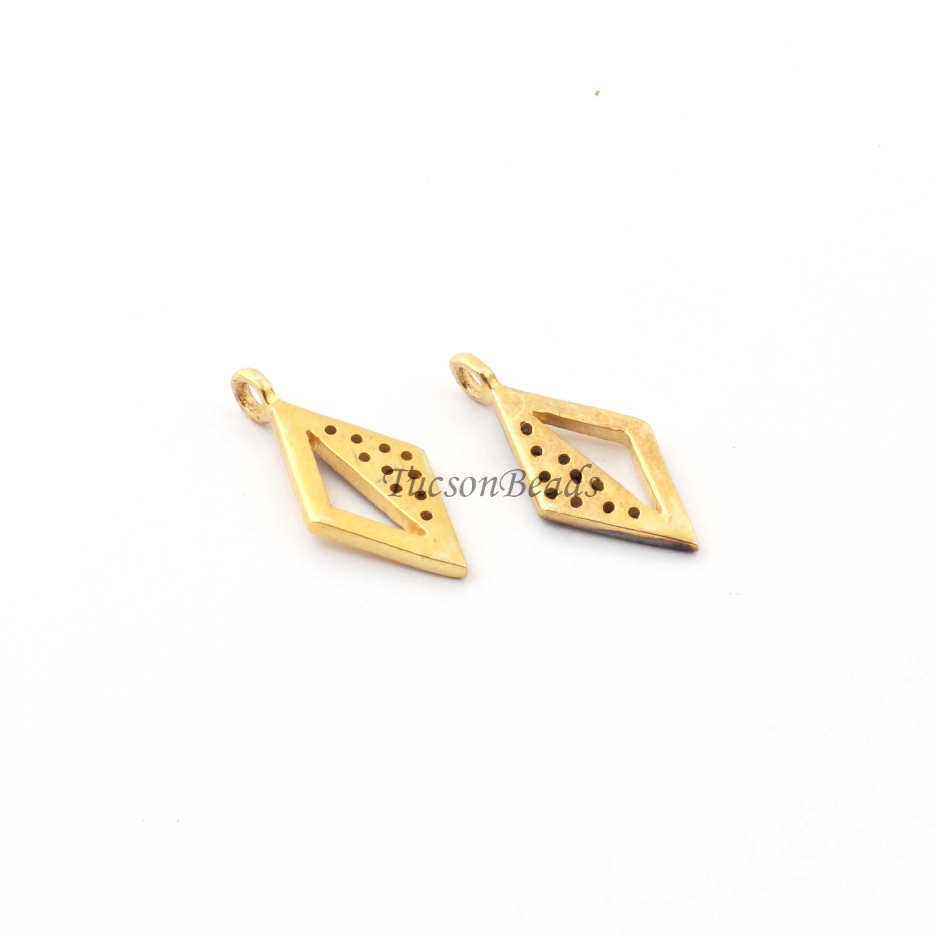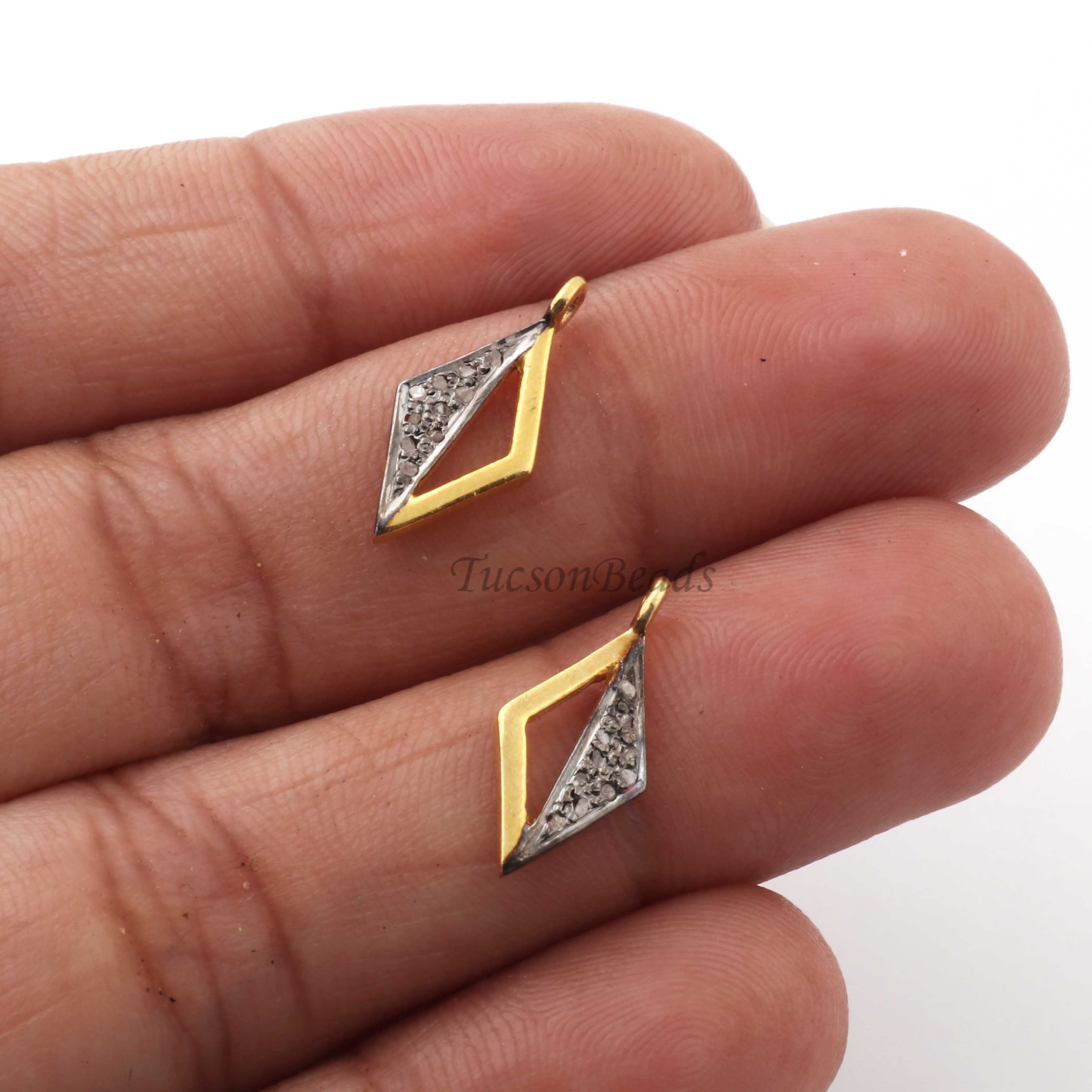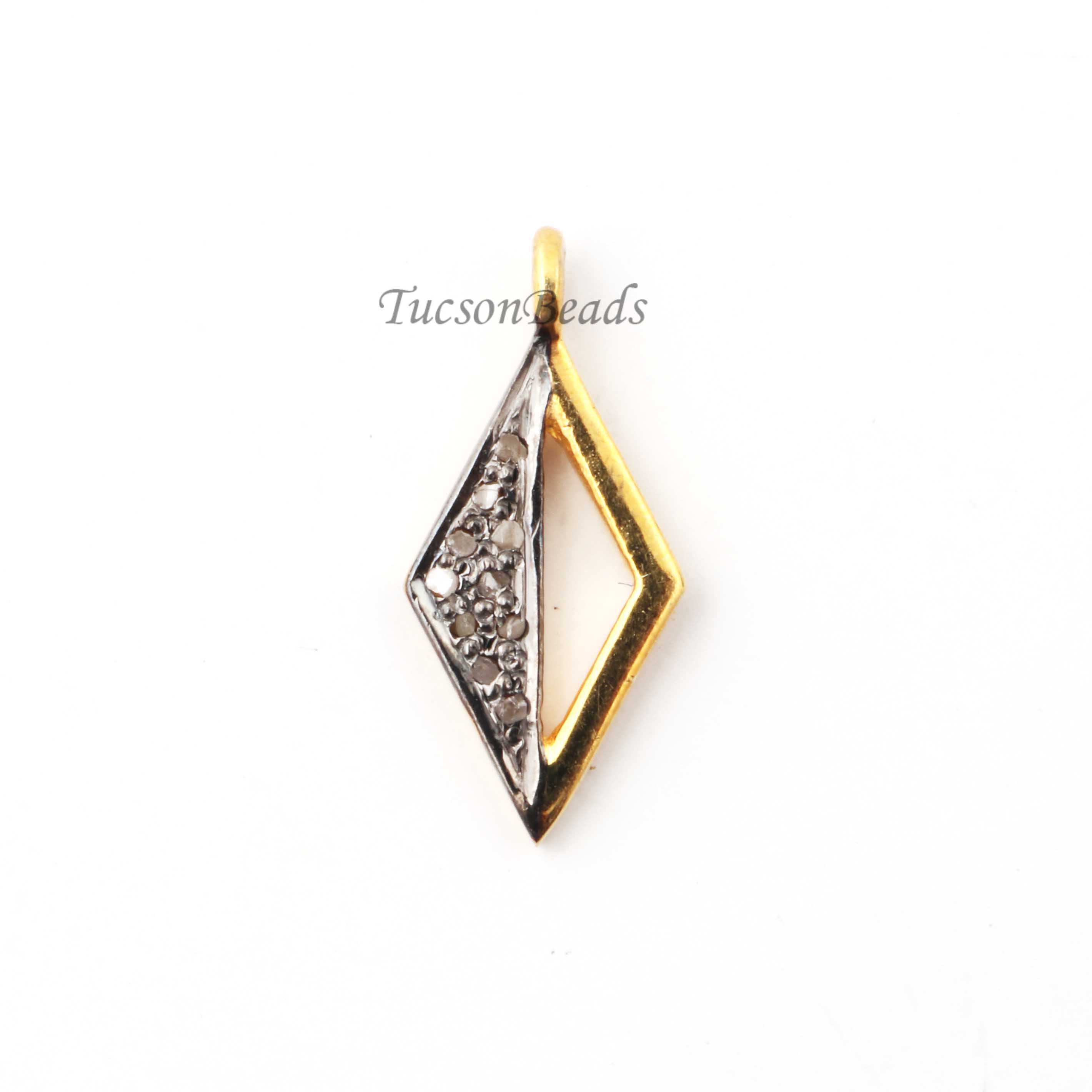 Listing Is For One (1) Pc Pave Diamond Designer Rhombus Shape Charm Pendant -925 Sterling Vermeil 16mmX7mm PDC1338