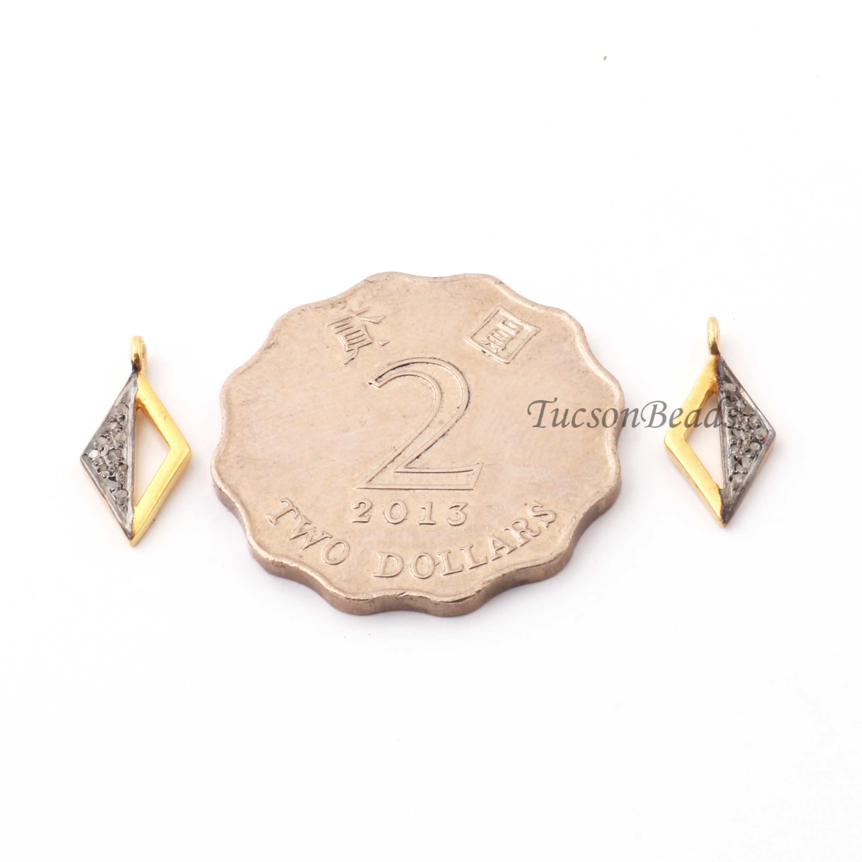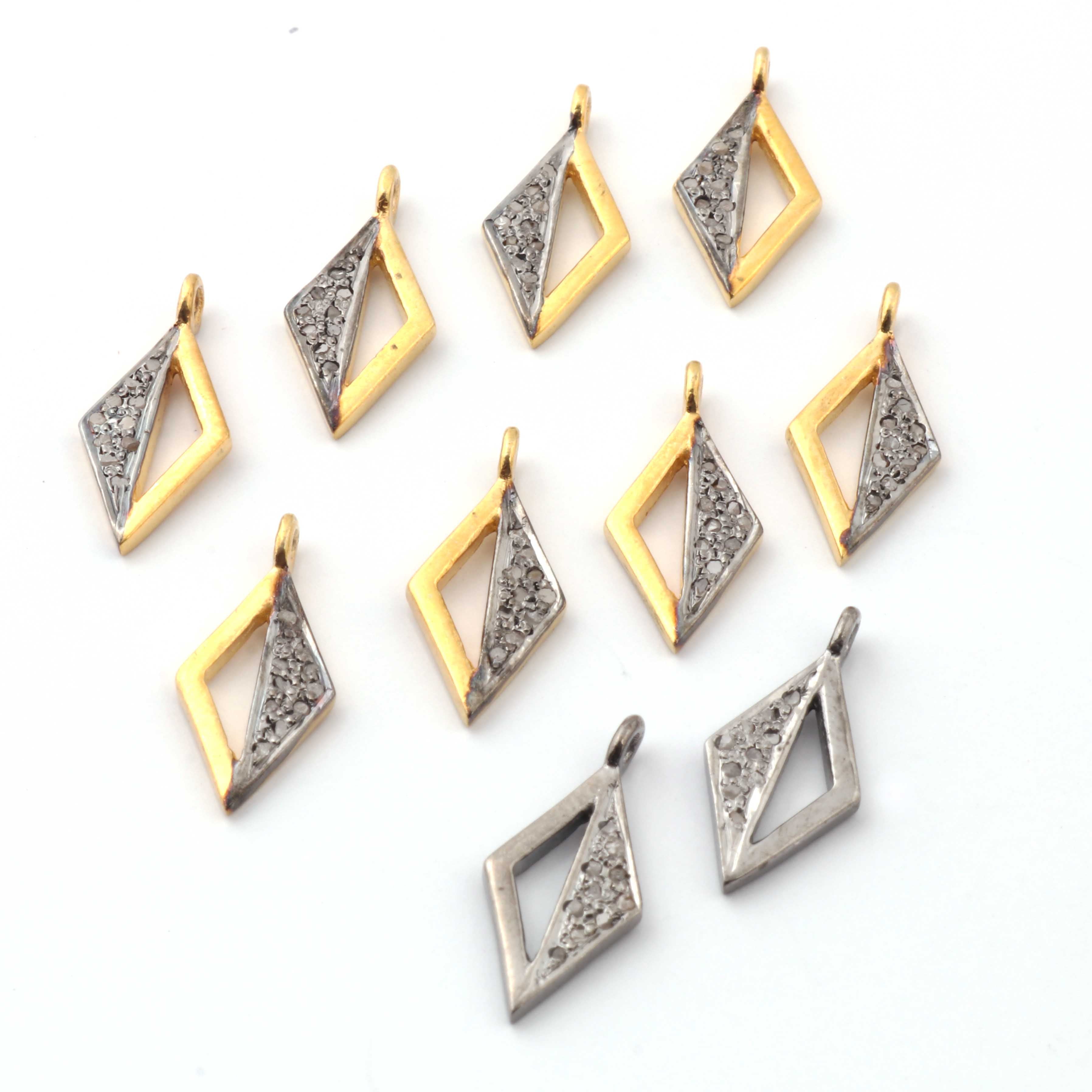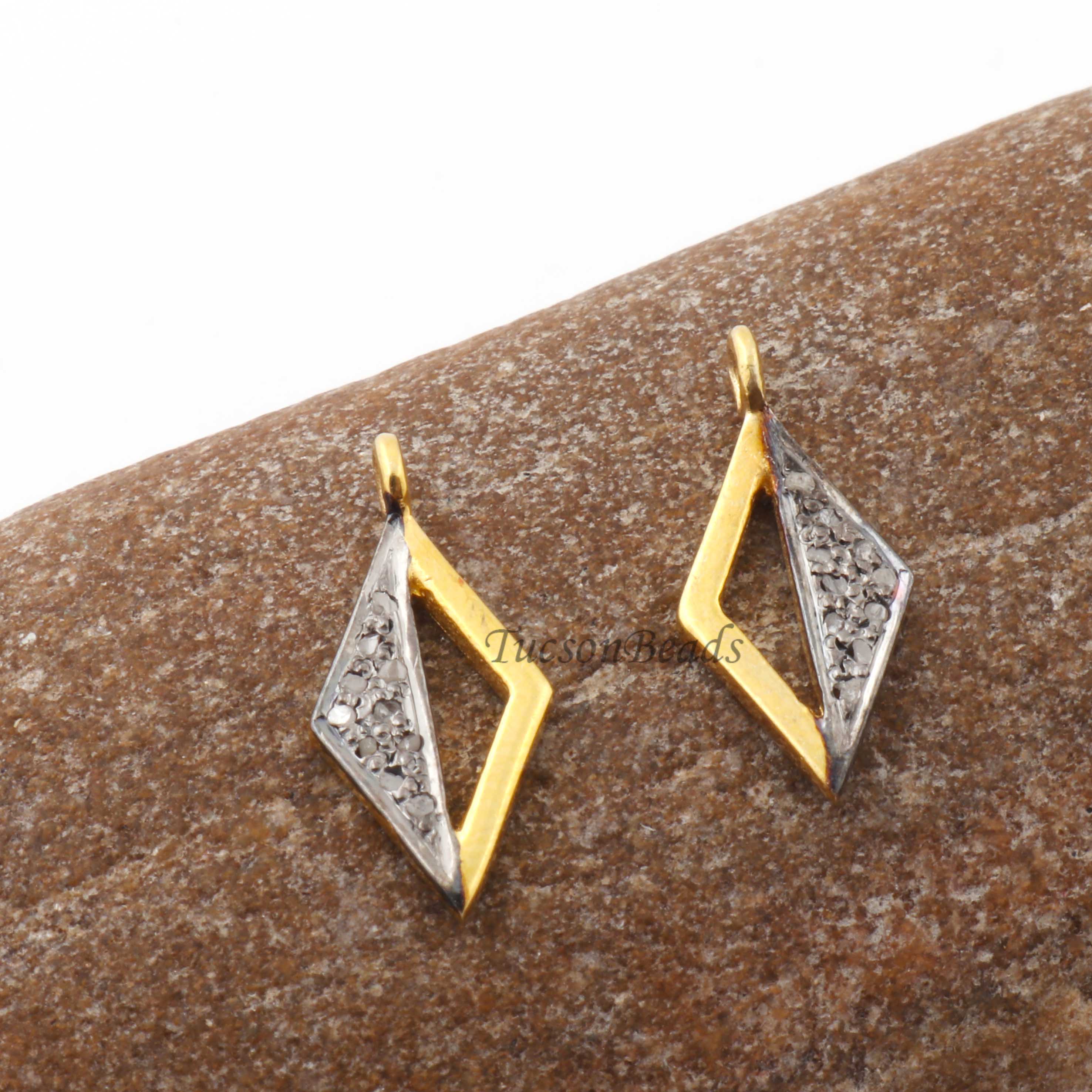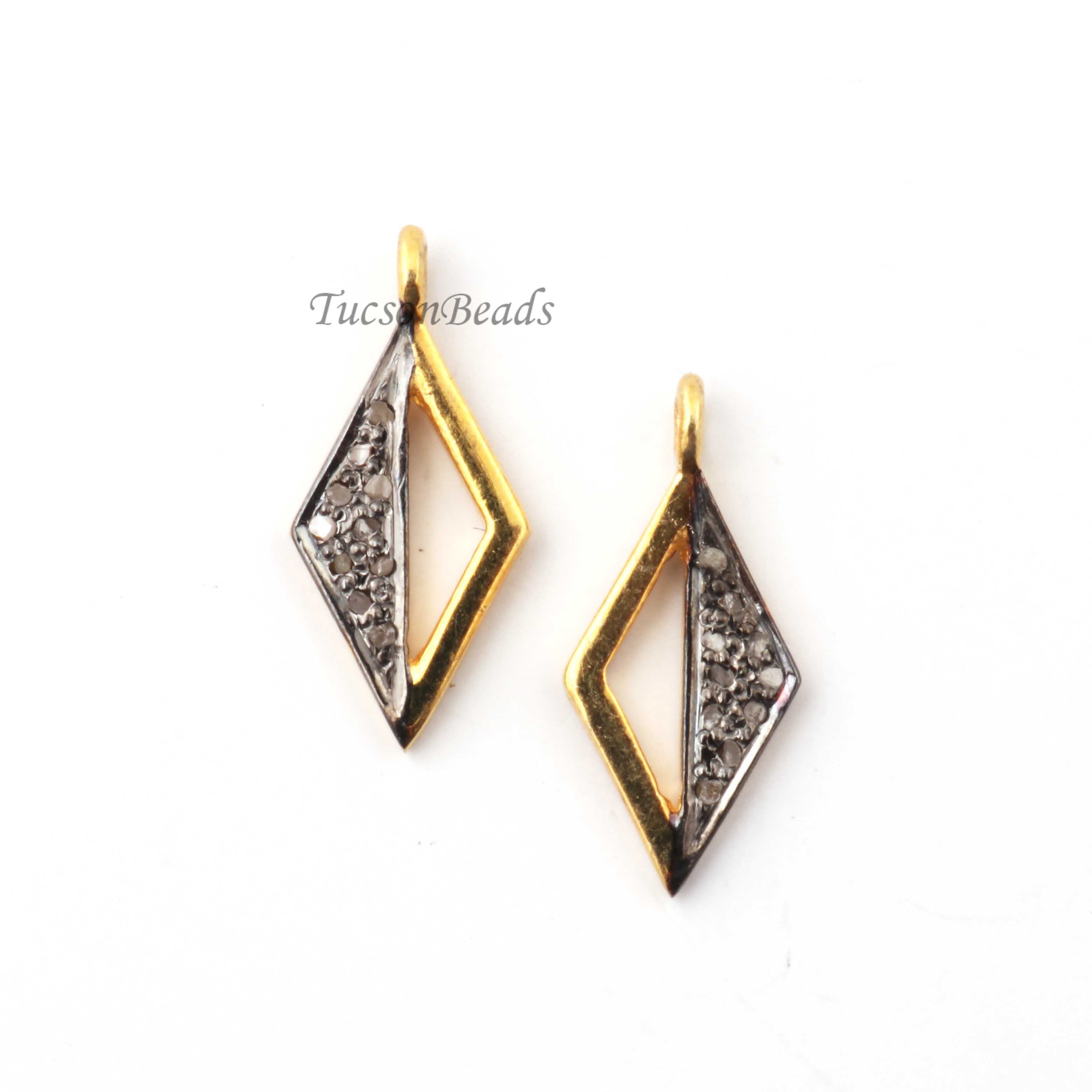 Listing Is For One (1) Pc Pave Diamond Designer Rhombus Shape Charm Pendant -925 Sterling Vermeil 16mmX7mm PDC1338