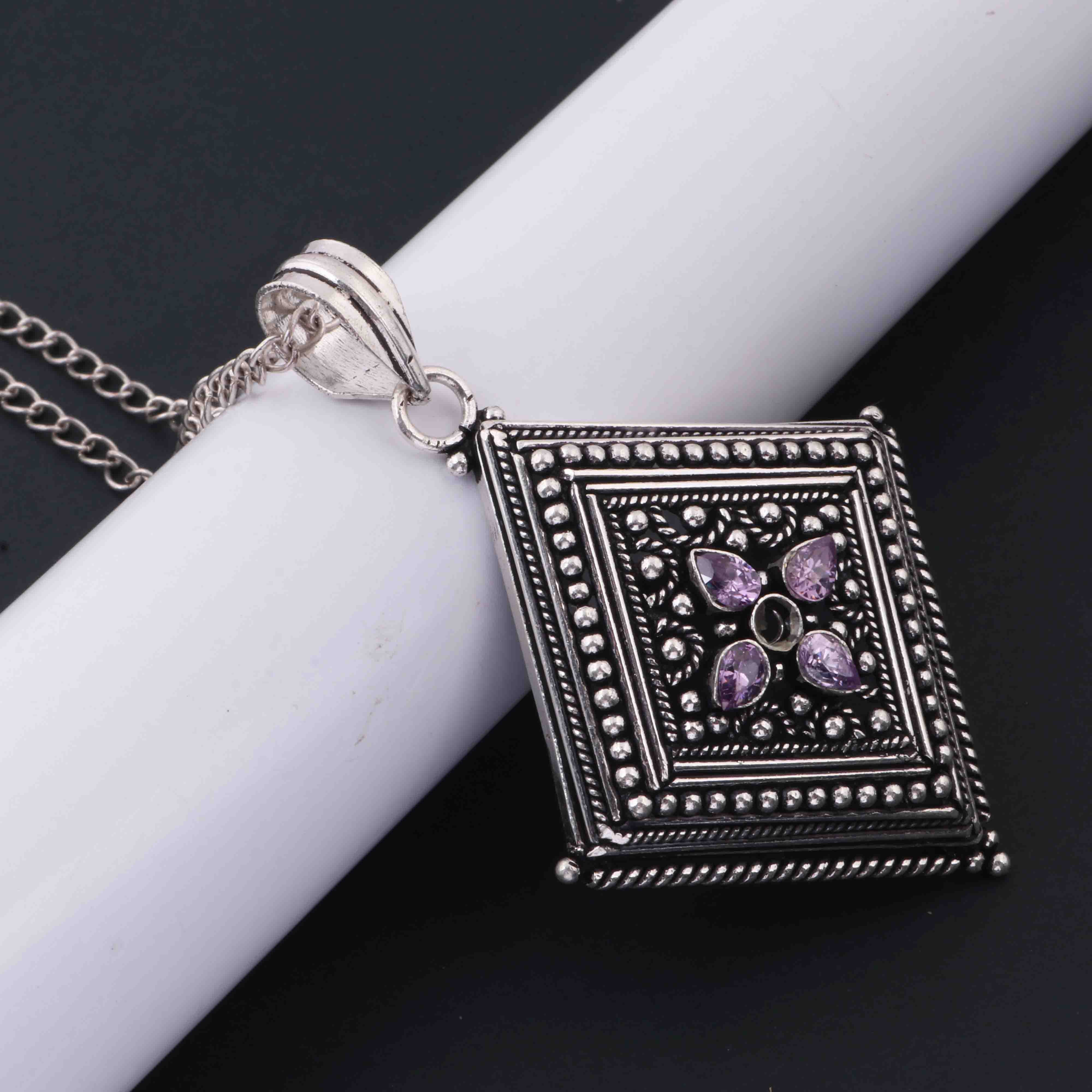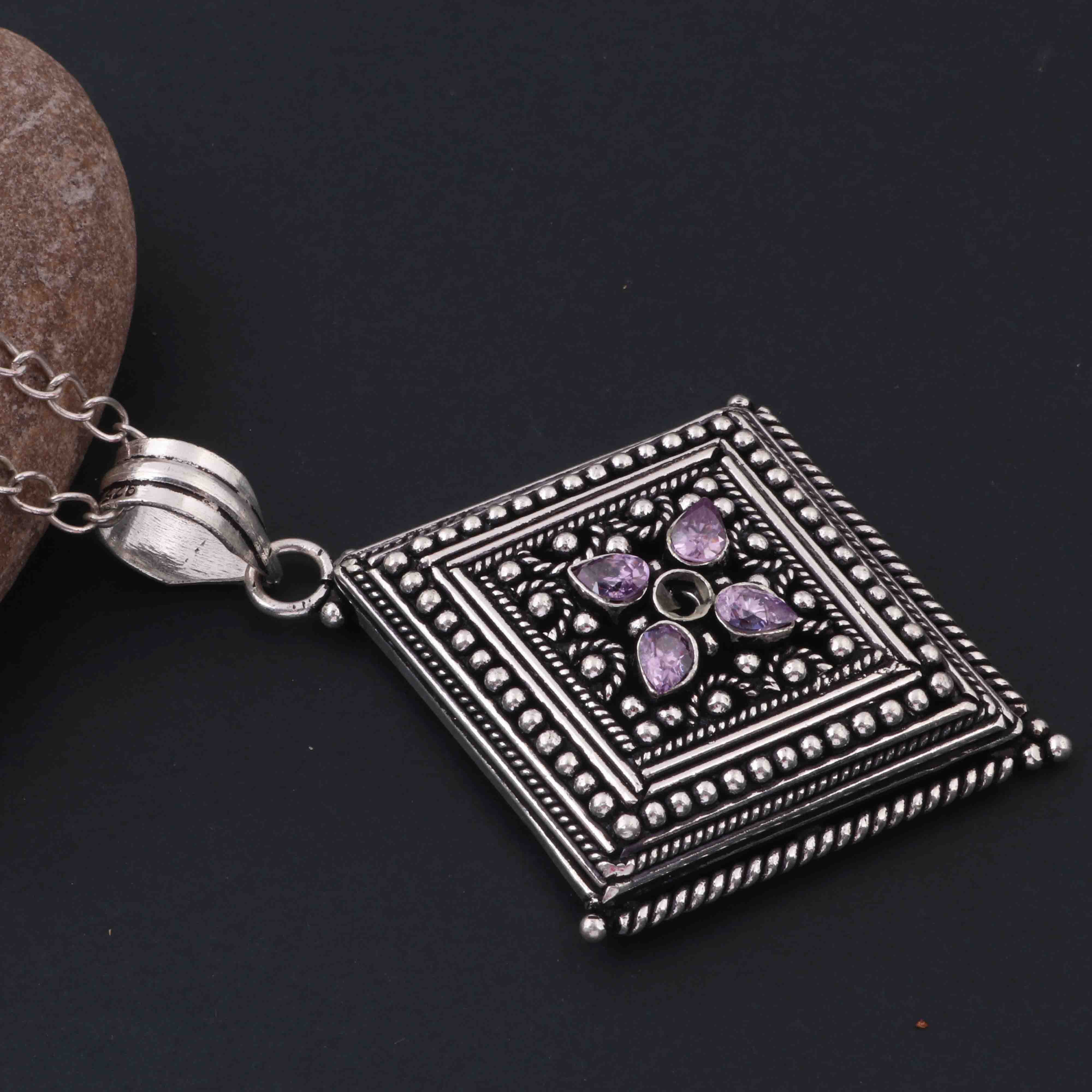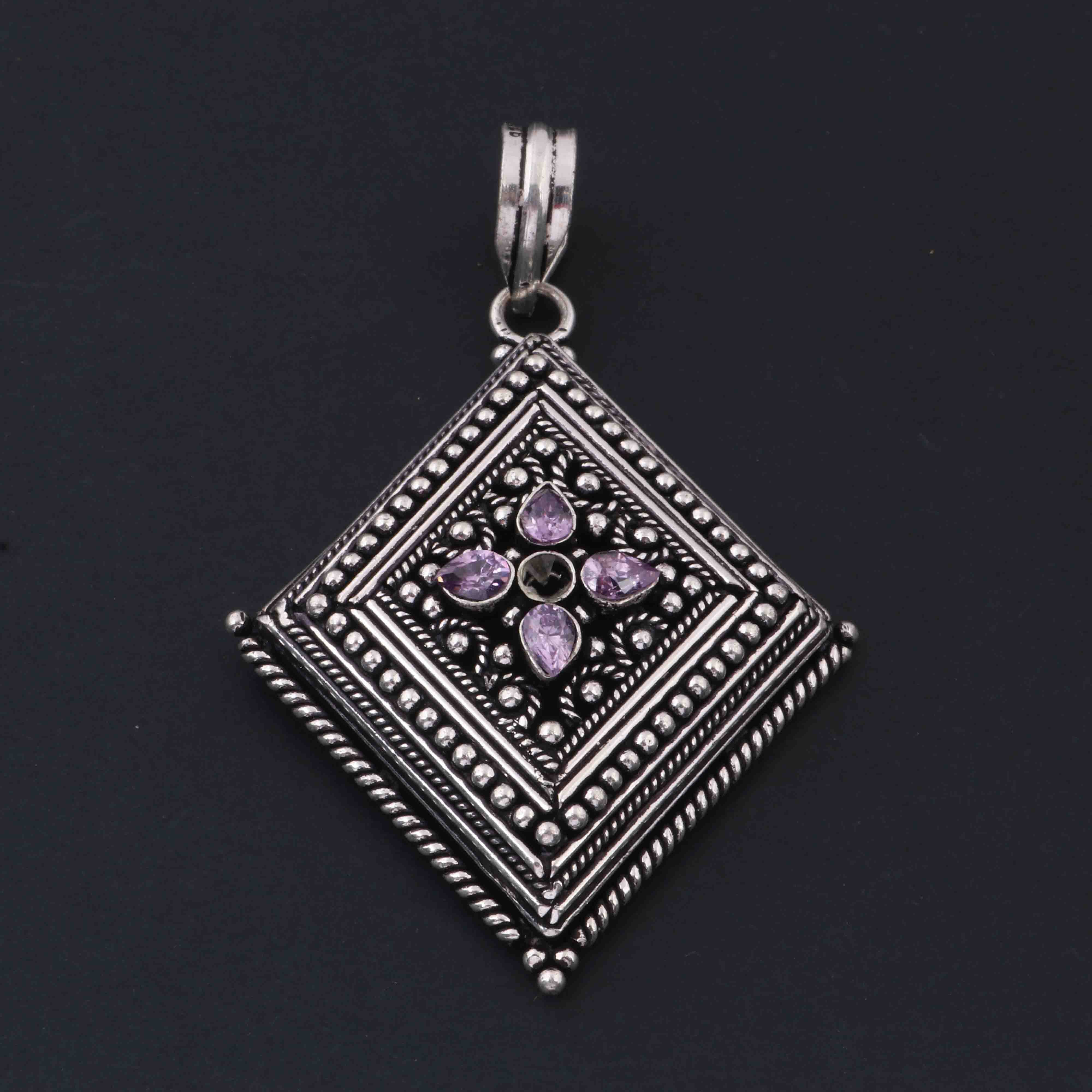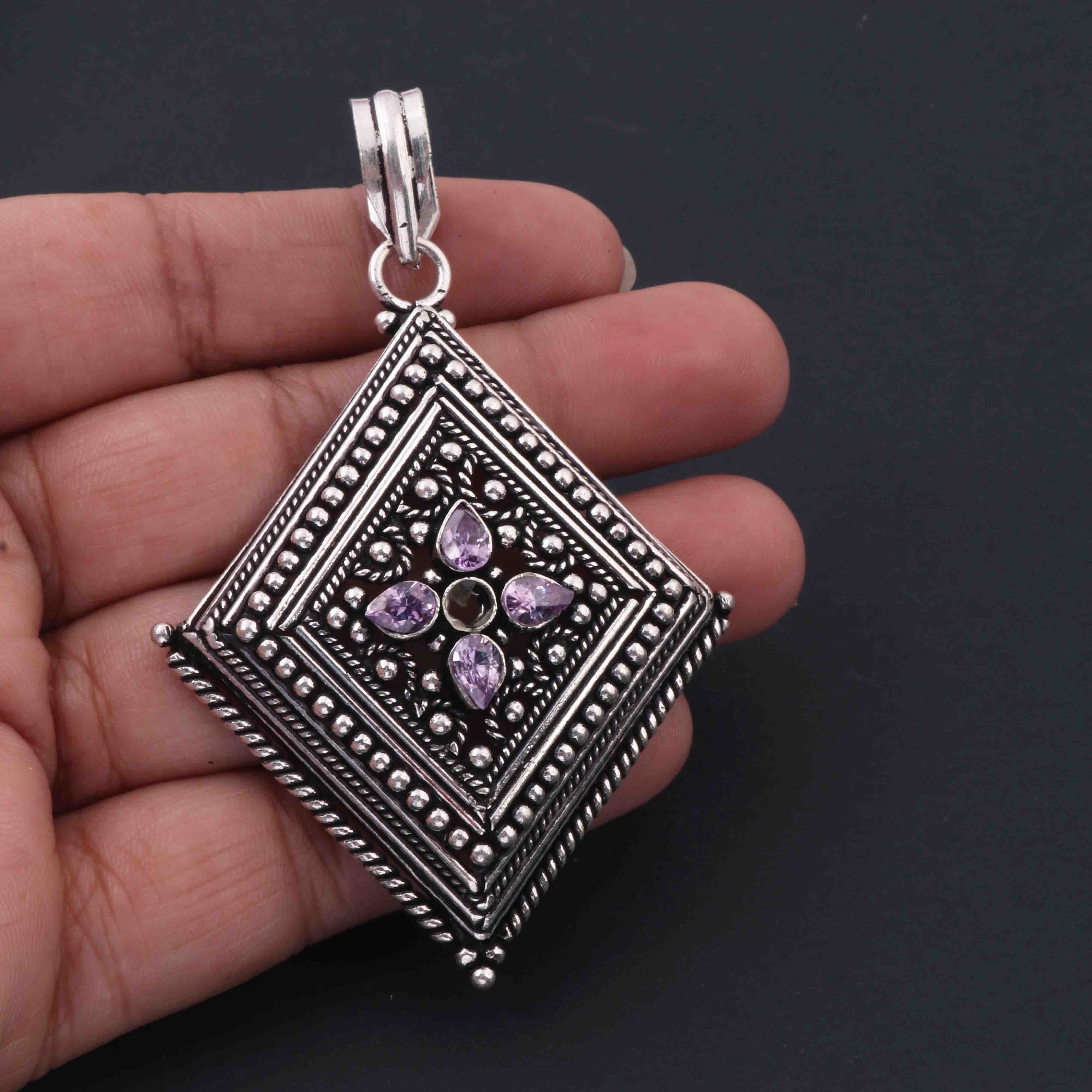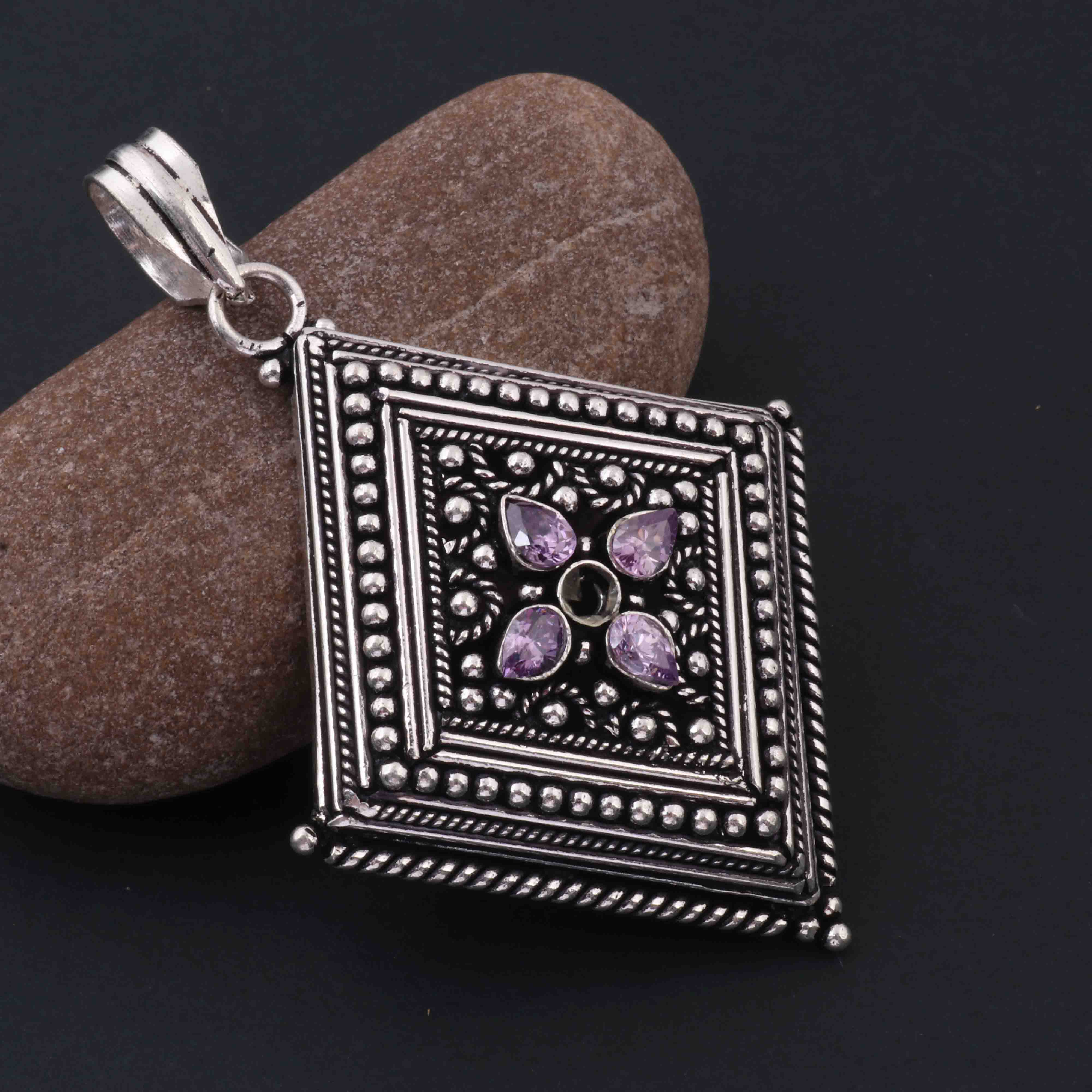 1 Pc Oxidized Silver Plated Multi Gemstone Kite Pendant, 66mmx50mm Oxidized Metal Jewelry Pendant - OS007
