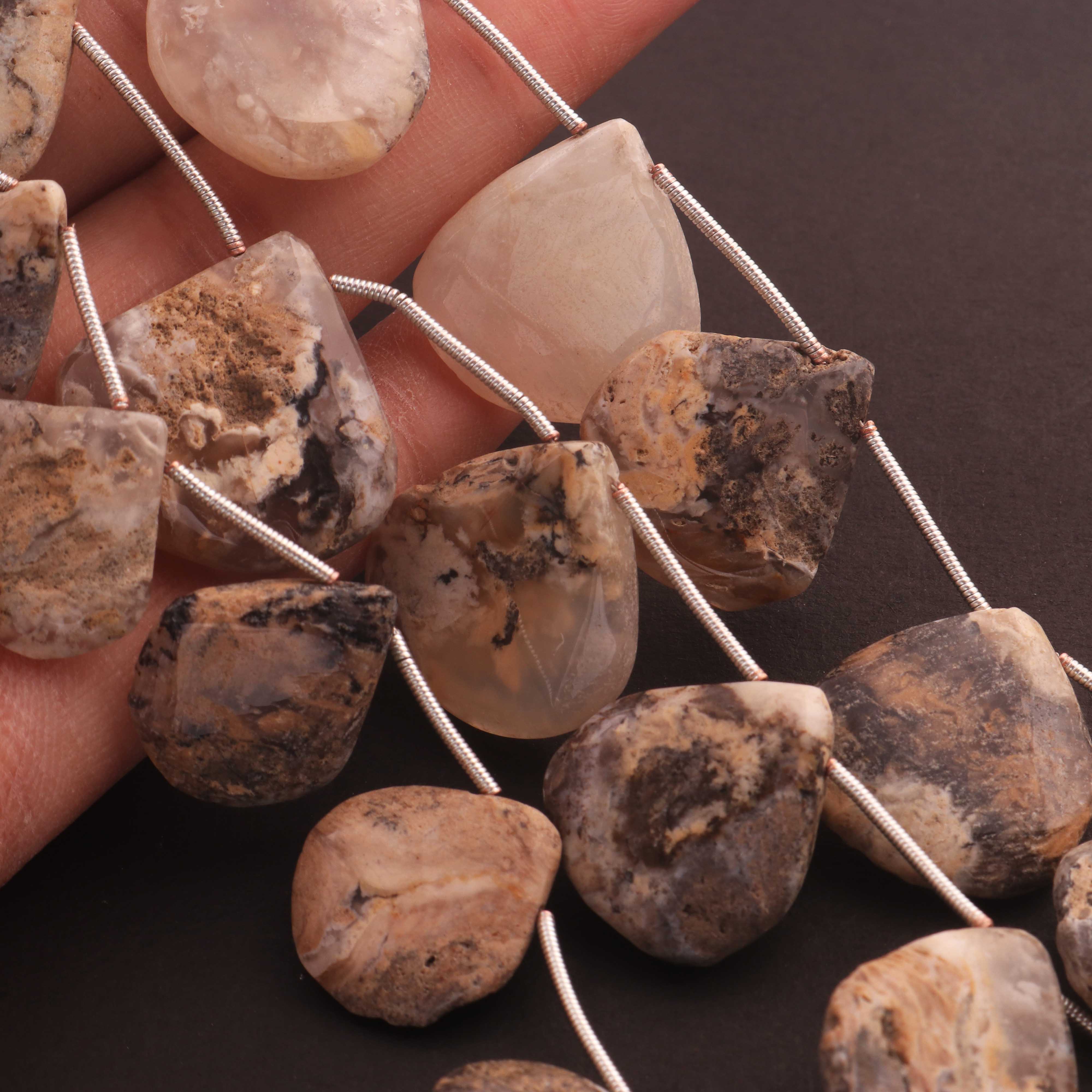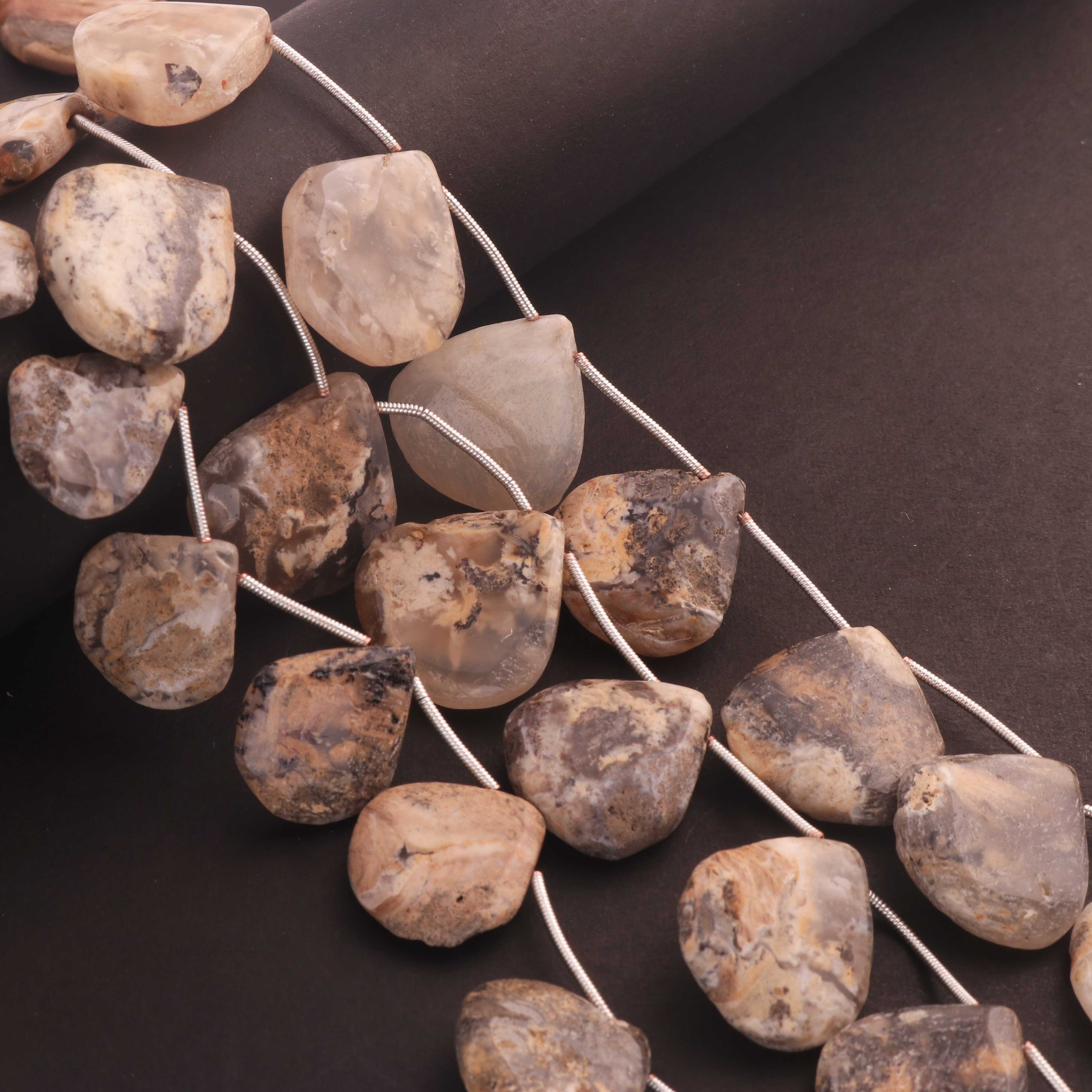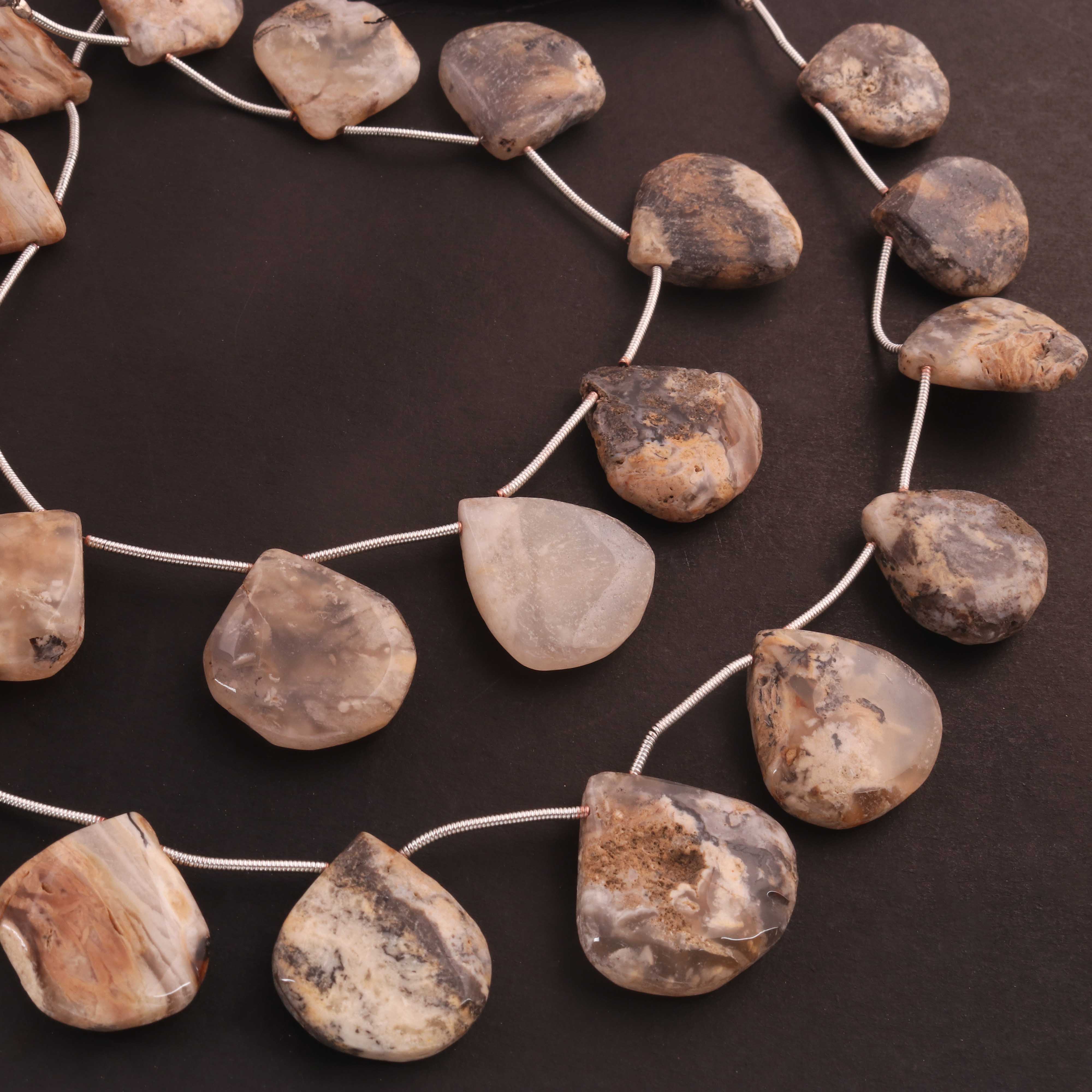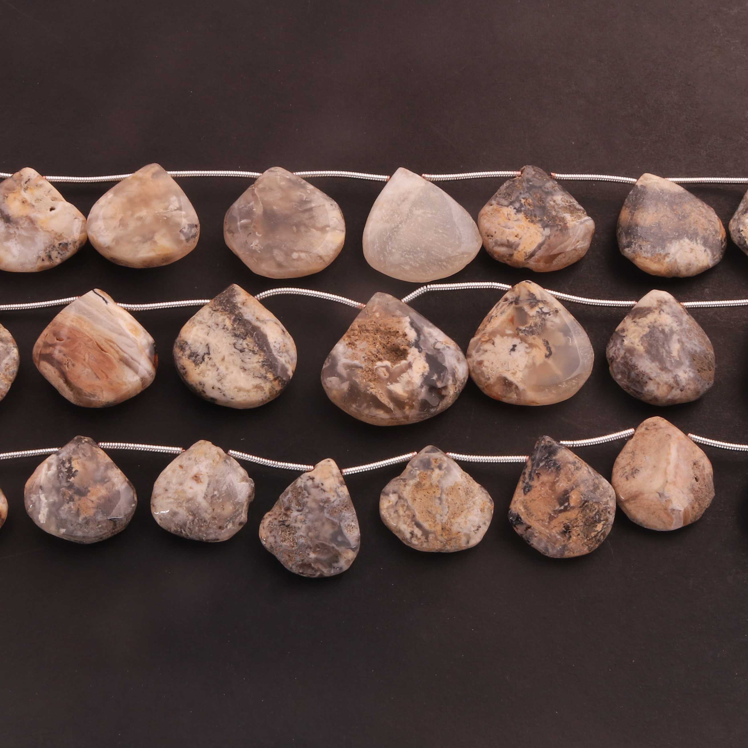 1 Strand Landscape Jasper Smooth Briolettes -Heart Shape Briolettes - 12mmx11mm-25mmx24mm 10.5 Inches BR03552