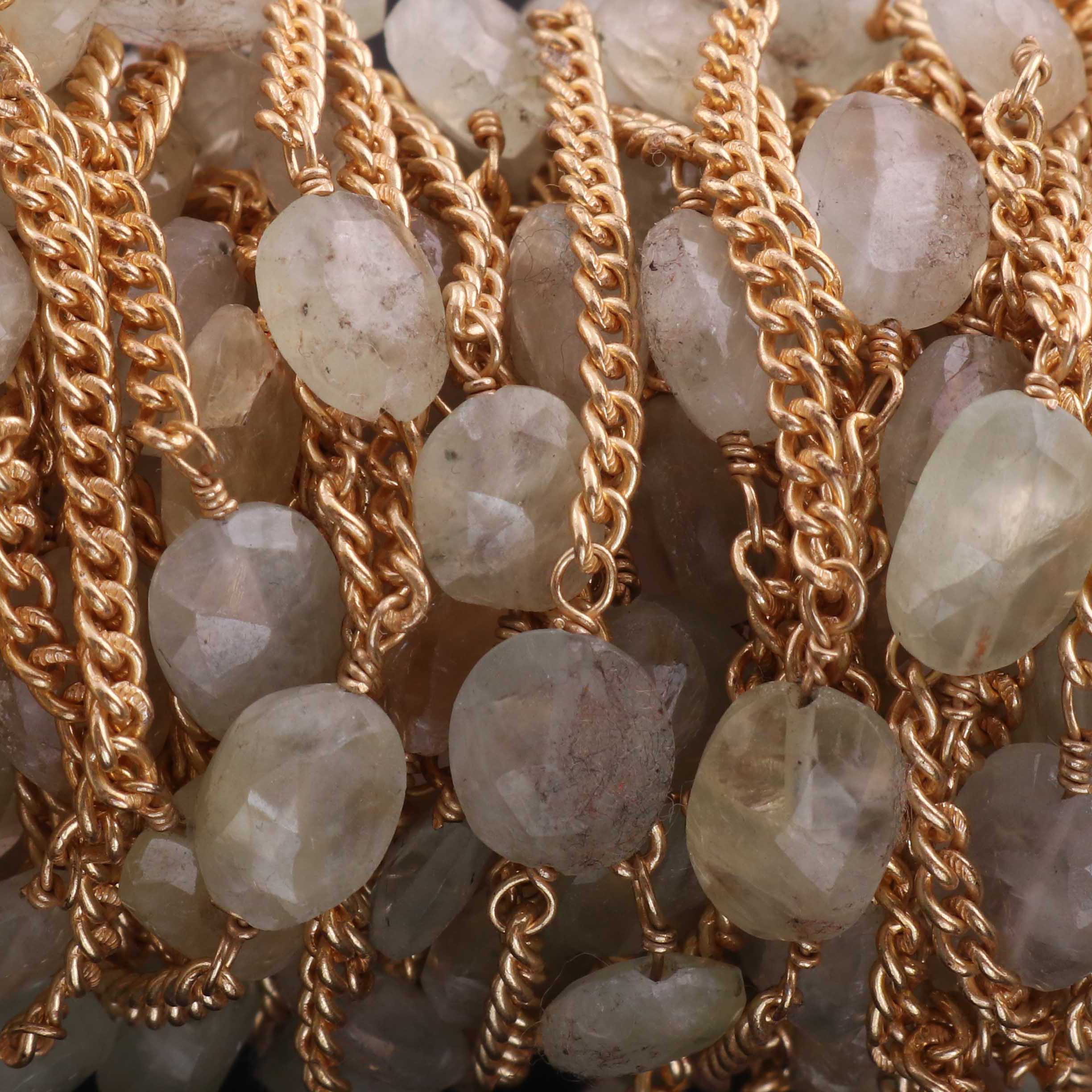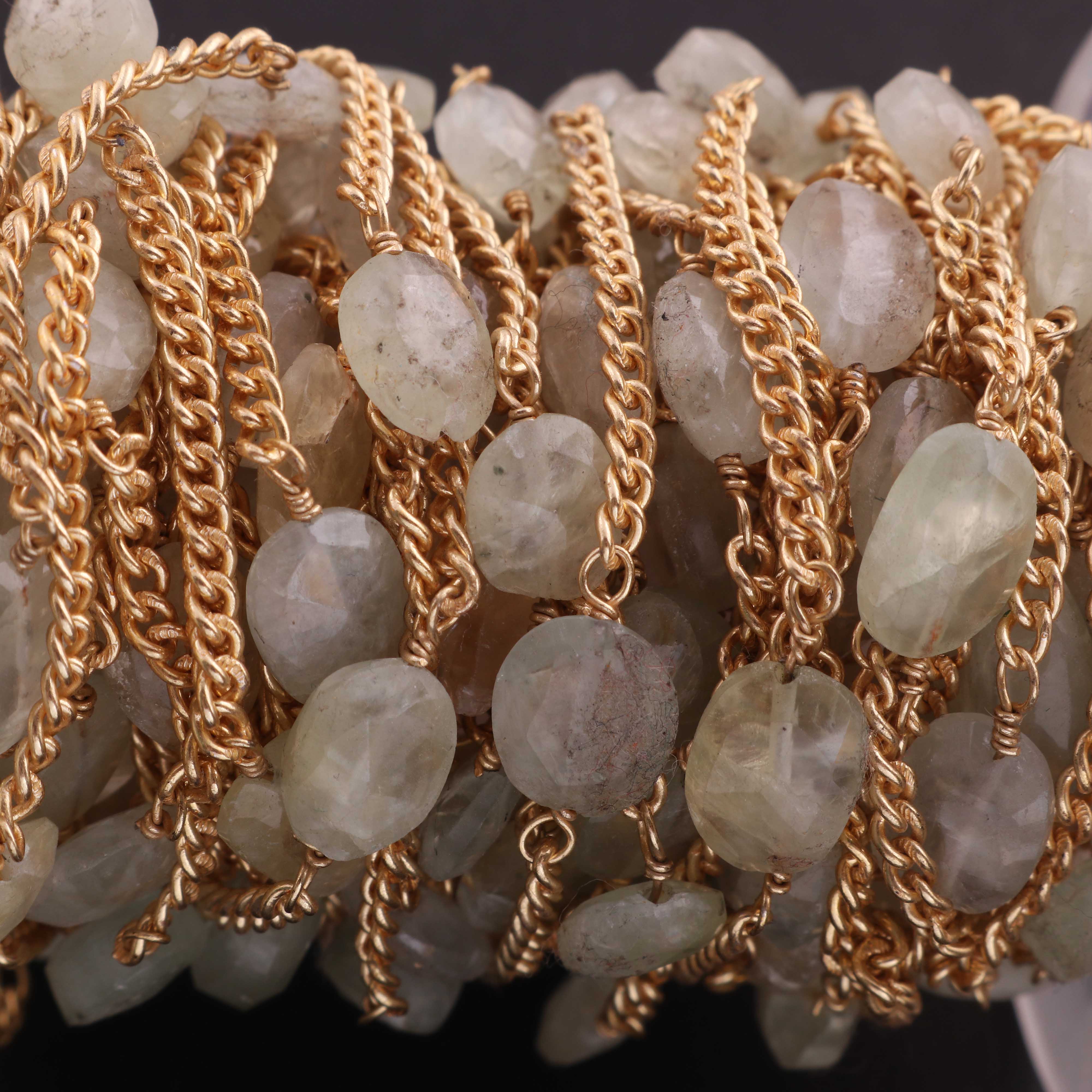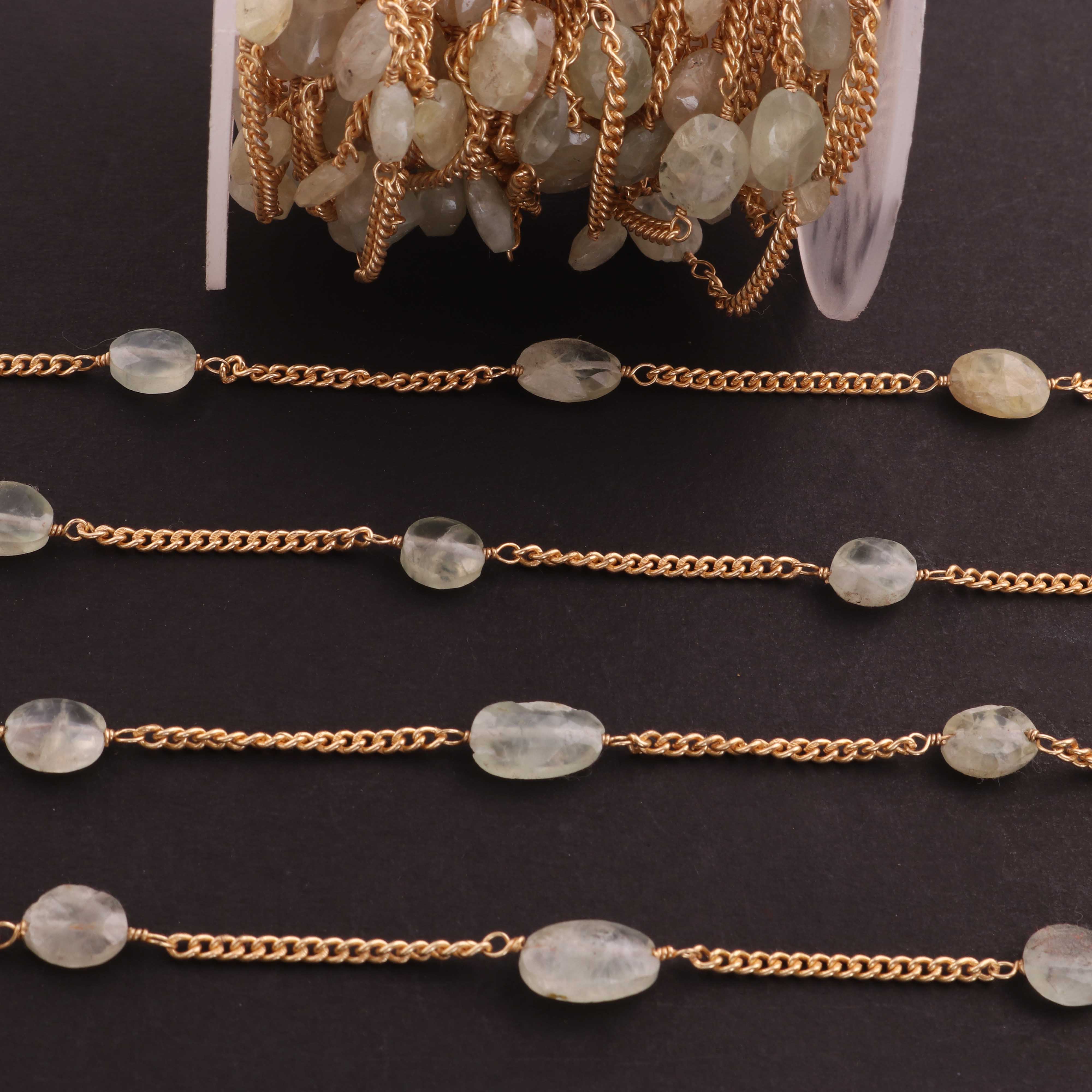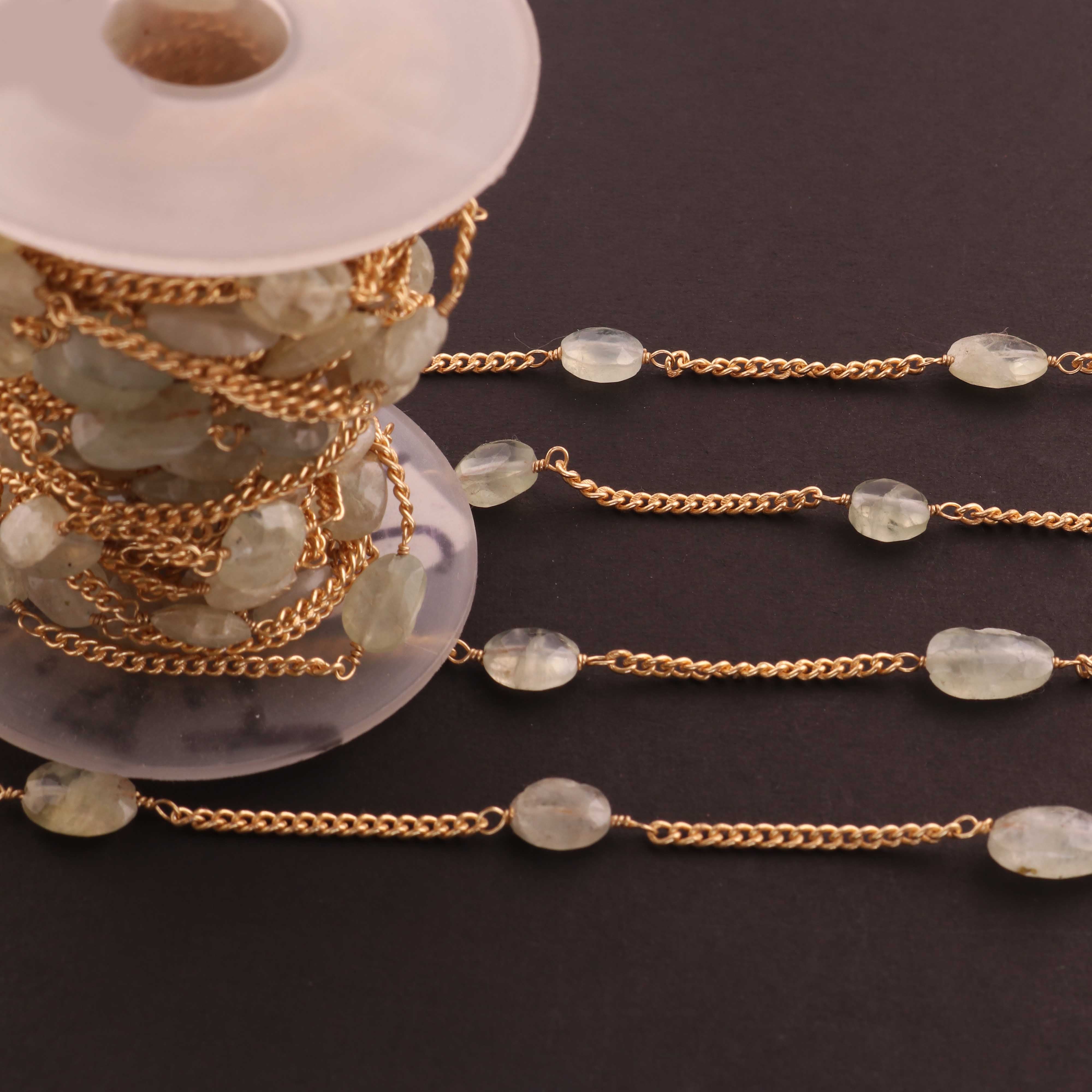 2 Feet Prehnite Oval Shape Connector Chain - 24k Gold Plated Bezel Continuous Connector Beaded Chain 12mmx6mm